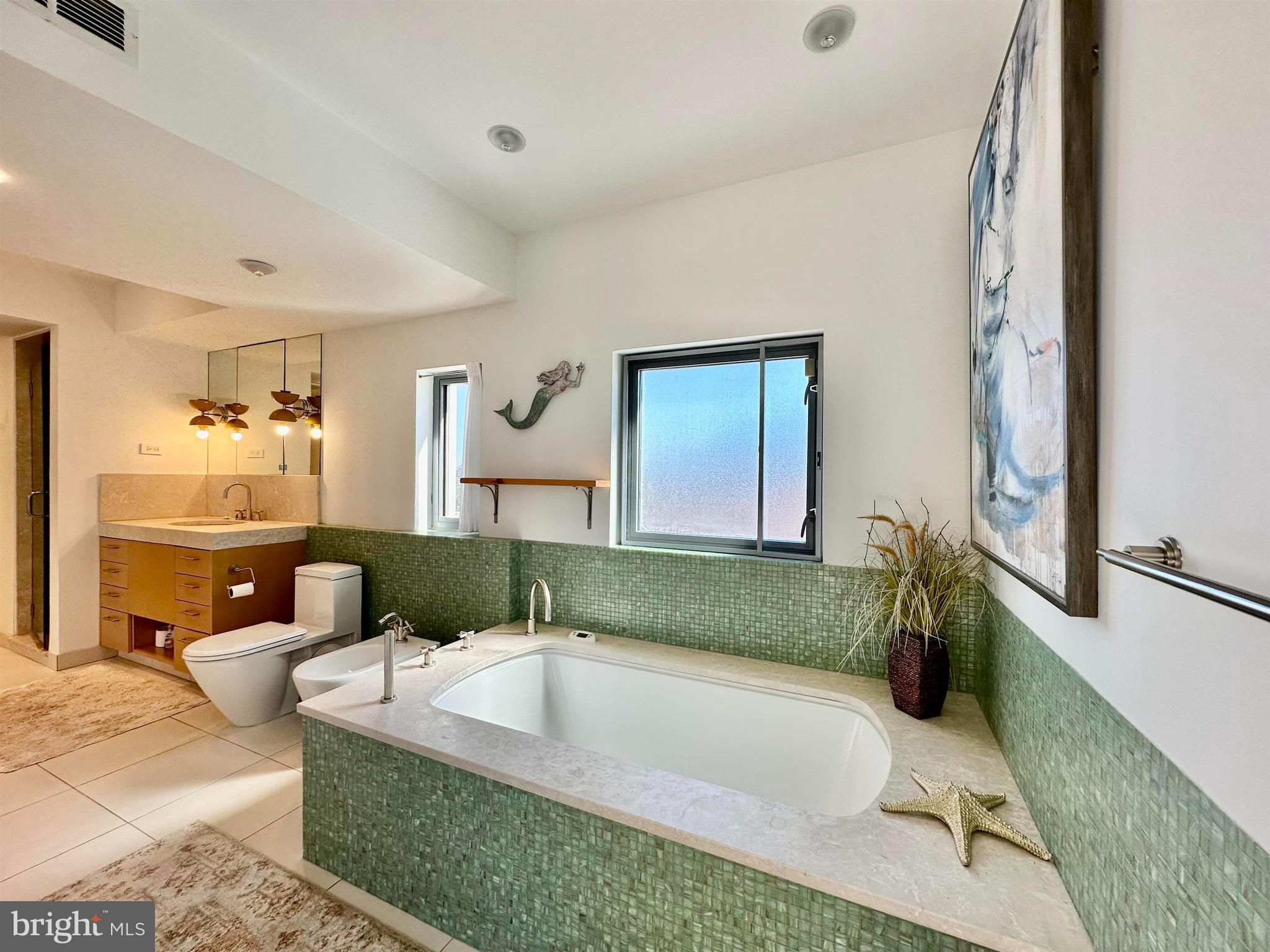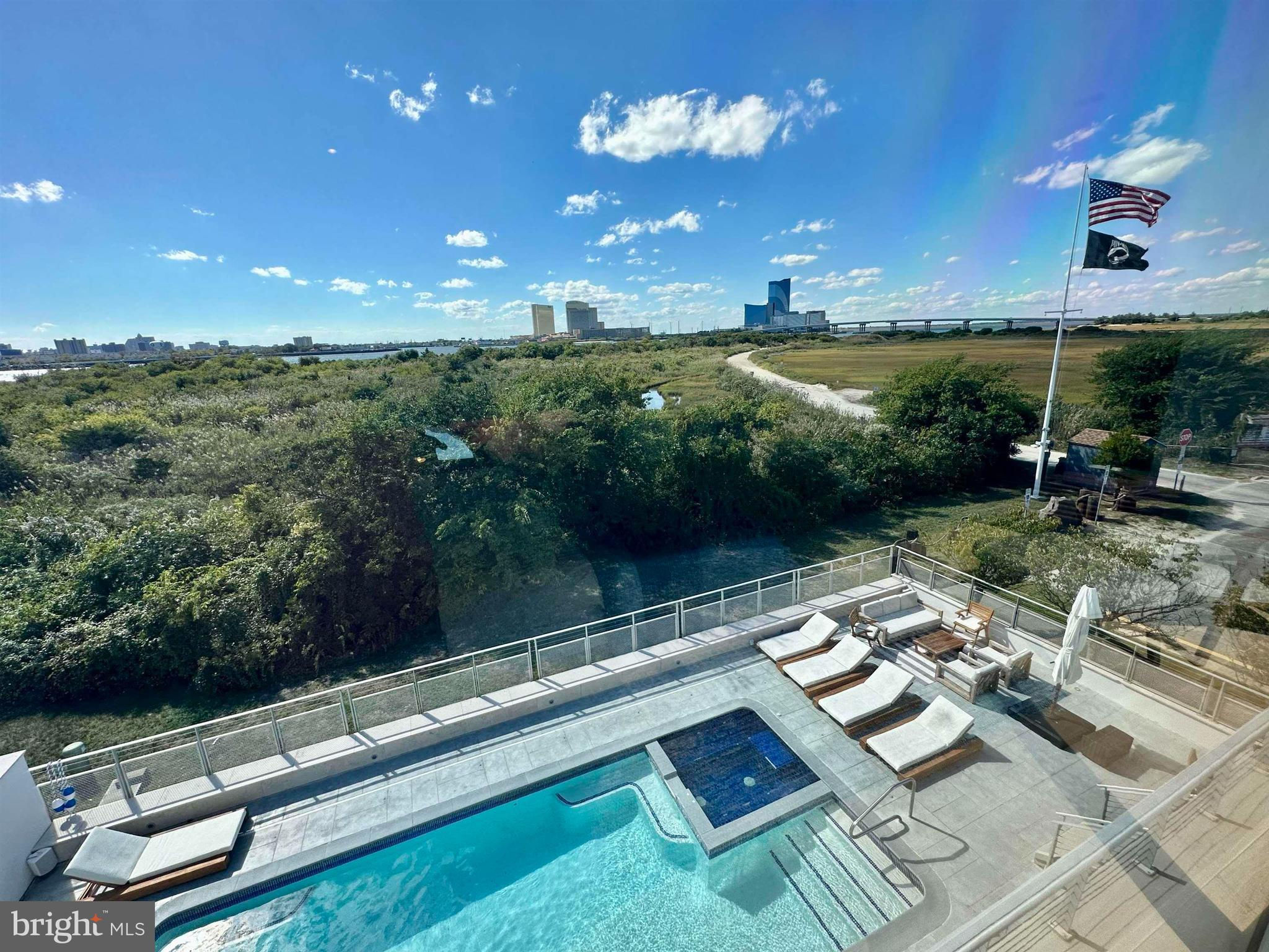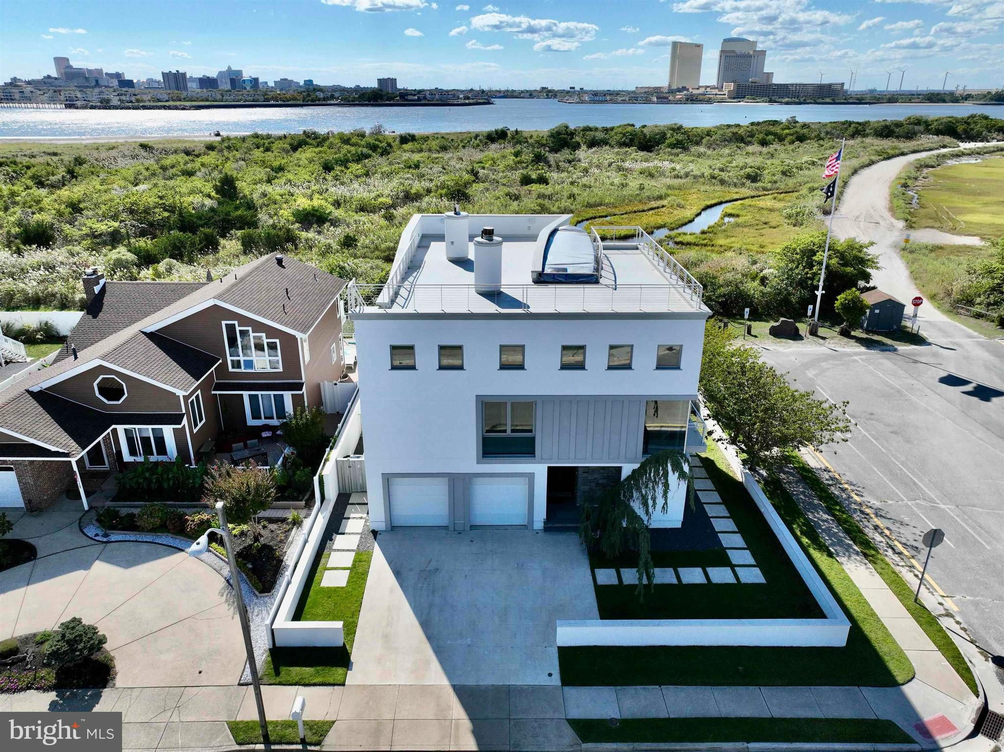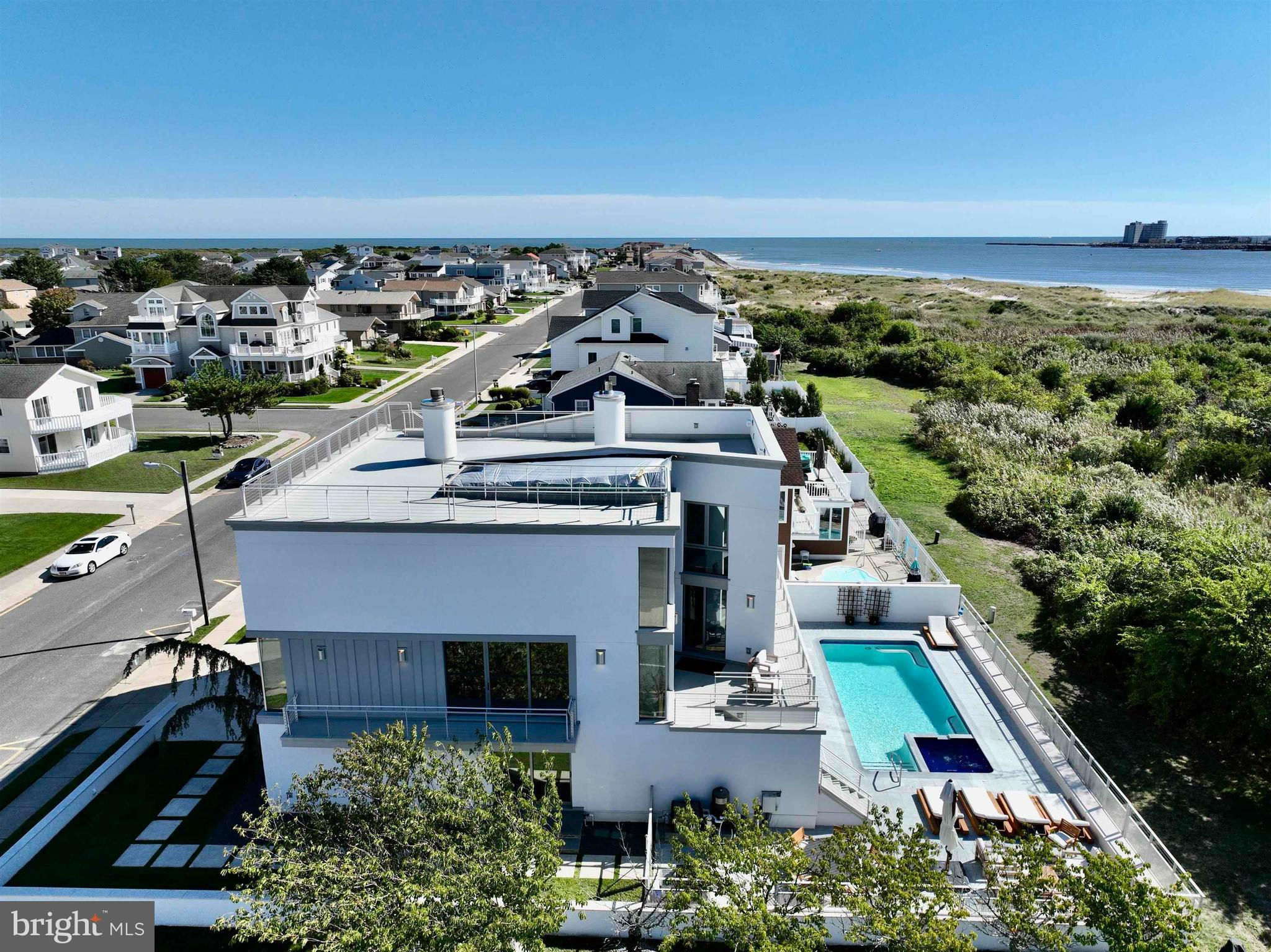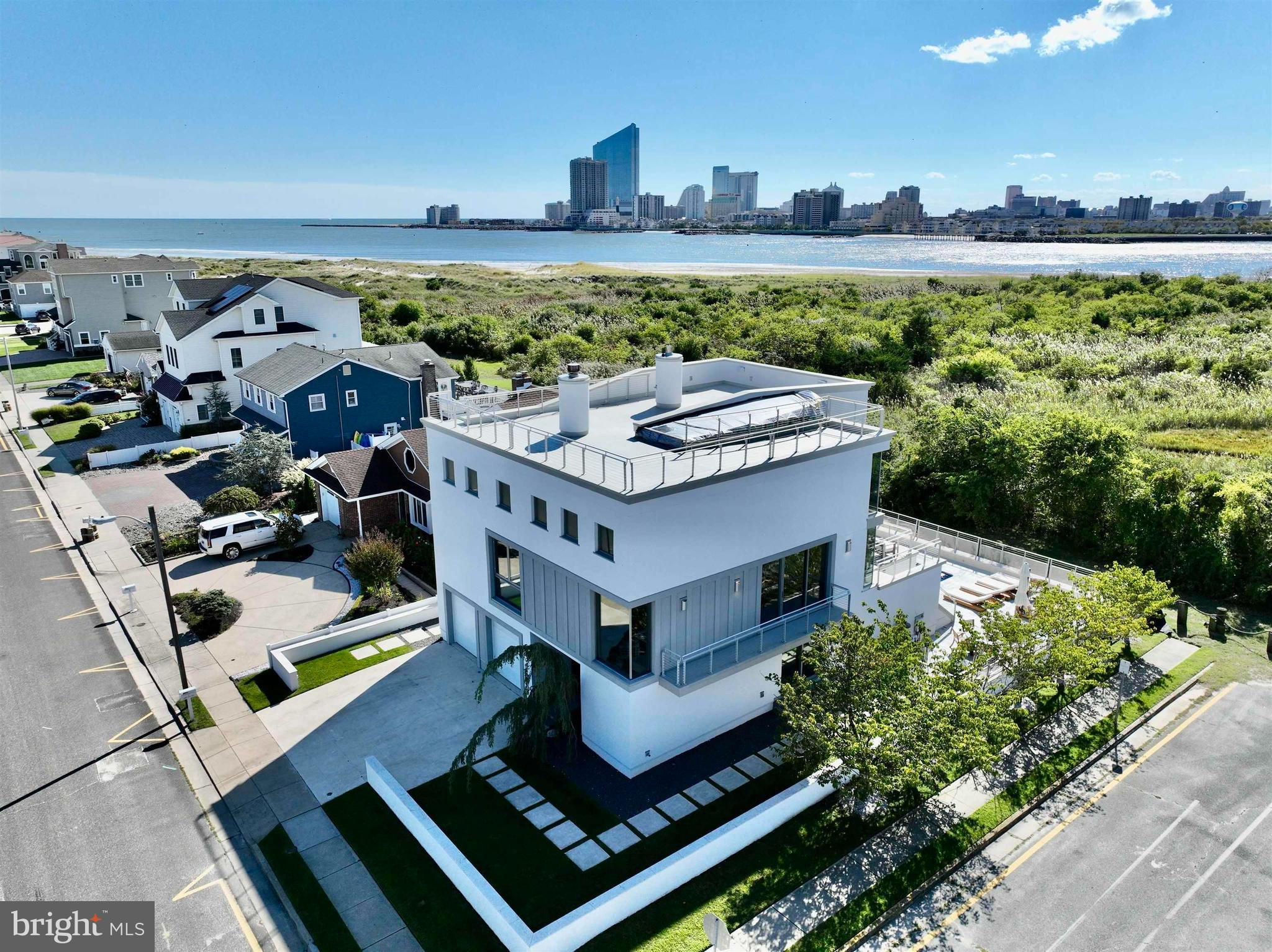 NEW PRICE! STUNNING ULTRA- CUSTOM Contemporary 5 BD/4.5 BA. BEACH home located in beautiful SEA POINT! Situated on a corner lot, with direct access to the popular Cove Beach, this- one -of- a kind LUXURY landmark designed by Italian architect Leopoldo Rosati will exceed yourexpectations! Dramatic 3 -story foyer entry w/ limestone flooring! Three- levels plus a roof-top deck captures spectacular sunsets & VIEWS of the Atlantic City & Marina district casino skylines. First level features a laundry room, two guest bedrooms, one an ensuite w/access to the inground heated pool/spa area & private, enclosed outdoor shower. Second Level: Open floor plan w/ Gourmet chef's kitchen featuring Carrera marble counters, WOLF, SUB-ZERO & Asko appl., Renato wood- fired pizza/bread oven, custom cabinetry, pantry, center island, commercialsinks, two dishwashers, full-size built- in wine fridge plus a separate prep kitchen! The dining area boasts floor-to ceiling windows, a relaxing living room area with a gas log double- sided firelpace & adjoining media/ movie room complete with surround sound. The third level houses the gorgeous master suite with private spa bath, walk-in closet storage & views of the pool, Absecon Inlet, & BEACHES! Two additional ensuite bedrooms are included & entrance to the expansive roof-top deck that offers 360 degree views of beautiful Brigantine! Call today to preview this unique & amazing home!