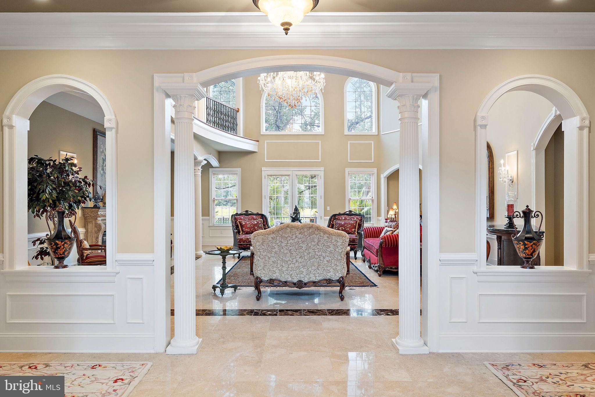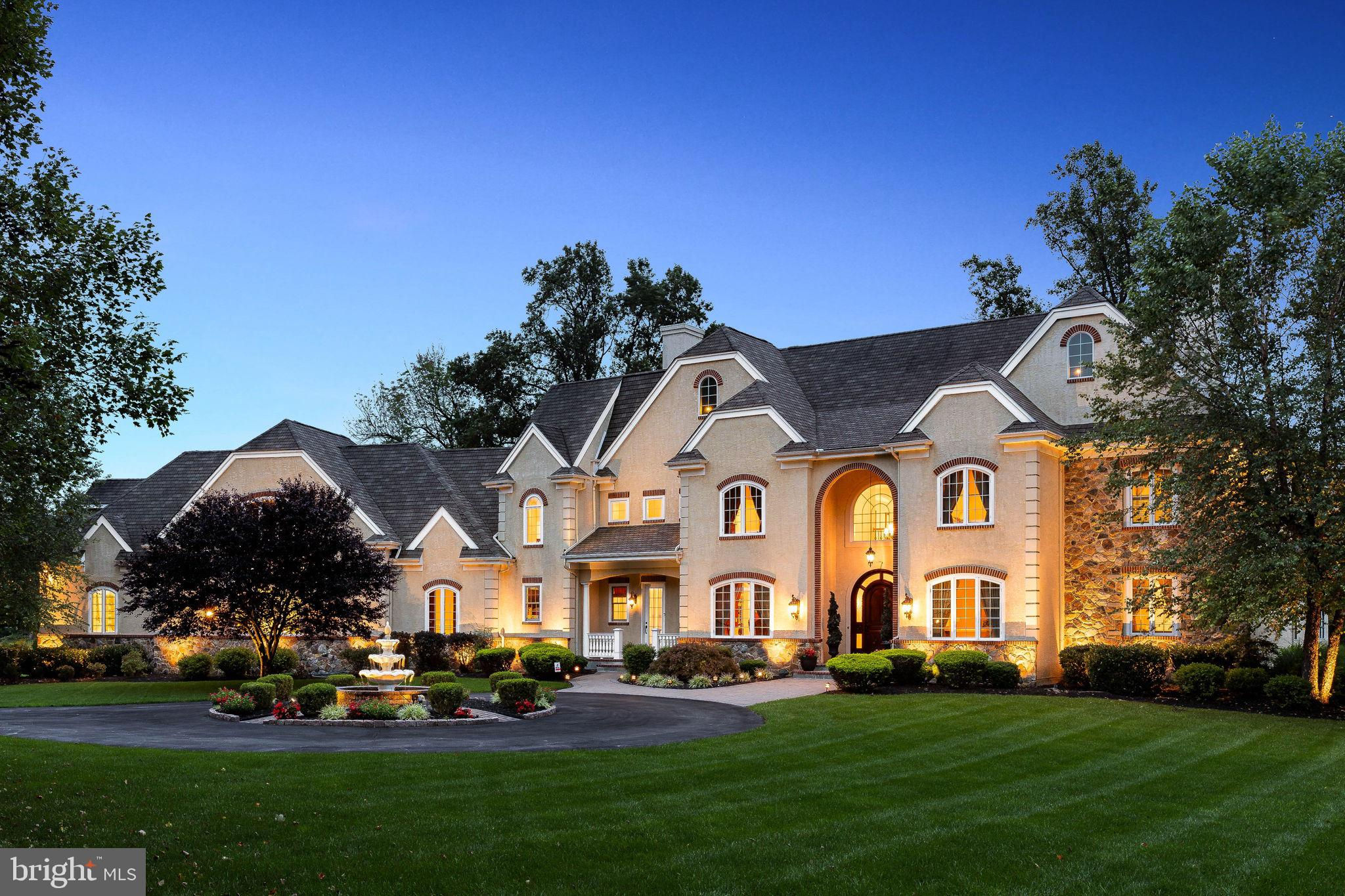 Welcome to this truly exceptional custom-built home located in the prestigious Chateau Country of Greenville, Delaware. This architectural masterpiece mansion offers an unparalleled blend of luxury, sophistication, and functionality. With its exquisite design, high-end finishes, and prime private location, this home is a true gem. Professionally designed landscaping with manicured lawn and mature ornamental trees add to the magnificent curb appeal. A large four tier fountain and an automatic double driveway gate welcome you and your guests into the property. As you enter the home, you are greeted by an impressive entry foyer adorned with Emperador marble flooring, setting the tone for the grandeur that awaits. The main level boasts a parlor, a formal dining room with a butler's pantry, and a two-story grand living room that has been specially designed to give the feel of a rotunda with crystal chandelier, architectural columns and marble floors creating a truly awe-inspiring space that invites you to a royal setting. The heart of the home is the open floor plan between the gourmet kitchen and the family room. The gourmet kitchen is a dream come true for any culinary enthusiast, featuring top-of-the-line appliances, ample counter space, and a center island perfect for meal preparation or casual dining. The adjacent family room is two stories high and features a gas fireplace, creating a cozy and inviting atmosphere. Additional highlights of the main floor include a sunroom with vaulted ceilings, a luxurious primary bedroom suite and sitting room with vaulted ceiling, two sided gas fireplace, and a private primary bathroom with an oversized shower, spa tub, and dual sinks. Two home offices provide the perfect space for remote work or study. A full bathroom, laundry room, and powder room complete the main level. All rooms on the main floor lead to a beautiful 3000 sqft wrap around patio with an outdoor kitchen that will make this your summer oasis. The expansive lawn, kept green all season with a sprinkler system, and a private meadows at the side and rear of the home provide exceptional vistas. Upstairs, you will find four guest bedrooms, each thoughtfully designed with their own unique charm and access to full bathrooms. A second laundry room ensures convenience and ease. Additionally, there is a suite of rooms consisting of a sitting room with rough-in for a kitchen, a family room, a bedroom, and a full bathroom, offering flexibility and versatility for extended family or guests. The lower level of this home is a true entertainer's paradise. It features a fully equipped media room, a wet bar, a recreation room, an exercise room, and a full bathroom. French doors lead to the exterior, where you will find a sweeping terrace with multiple conversation areas, perfect for hosting gatherings or simply enjoying the serene meadow views. This home is equipped with an elevator that provides access to all three levels, ensuring convenience and accessibility. A generator offers peace of mind during any power outages. The soaring ceilings and high-end finishes throughout add to the overall sense of luxury and elegance. A four-car garage with epoxy flooring and organizational cabinet system provides ample space for parking and storage. The location of this home is truly unbeatable, situated across the street from the prestigious Greenville Country Club, offering access multiple racquet sports, swimming pool and other amenities. This home truly offers everything you need for a comfortable and fulfilling lifestyle, making it the perfect sanctuary for you and your loved ones.