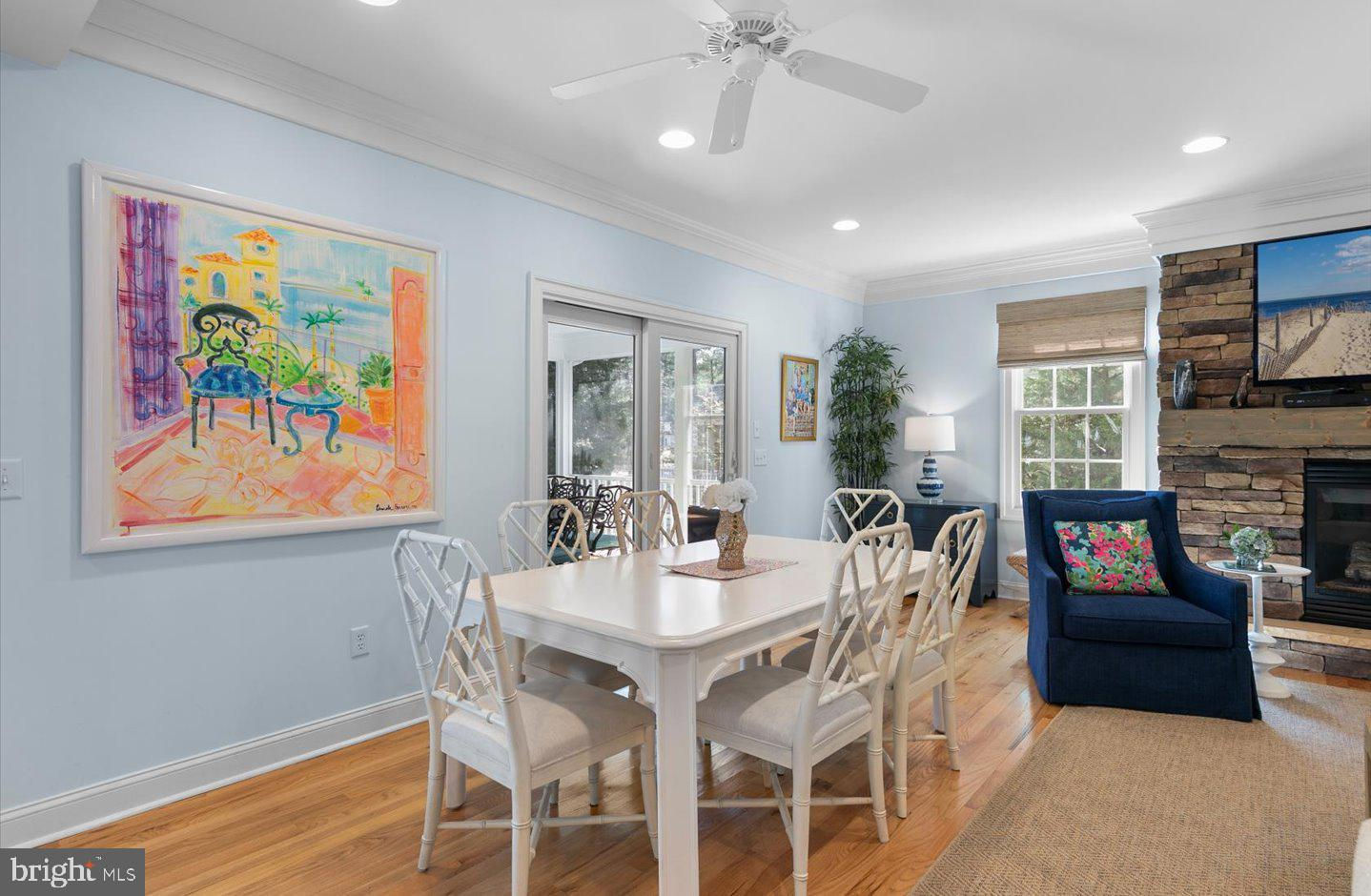 Nestled in the prestigious North Shores community, this beautifully maintained home offers an inviting blend of timeless charm and modern elegance. Thoughtfully furnished and tastefully updated in 2022-2024, this spacious home boasts 5 bedrooms and 3.5 baths, including two primary suites, one conveniently located on the first level and a second, more expansive suite on the upper level. The popular open-concept floor plan is perfect for relaxed coastal living, featuring a welcoming family room with a gas fireplace framed by a stunning stone surround. The adjacent kitchen is a chef’s delight, complete with stainless steel appliances, a large breakfast bar, and easy access to the oversized sun deck and screened porch—the ideal setting for outdoor entertaining. A separate den on the first floor provides flexible space for a home office, movie room, or music room. Upstairs, three cozy guest bedrooms share a well-appointed hall bath, while the second primary suite offers a true retreat, complete with a private sitting room, a custom walk-in closet, and a spa-inspired bath featuring a double vanity, jetted soaking tub, and a tiled walk-in shower. Situated on a generous lot surrounded by mature trees, this home enjoys a large front yard and a fully fenced rear yard perfect for a future pool, providing both privacy and space to enjoy the outdoors. This home also features an outdoor shower and storage shed that has been grandfathered in, perfect for bikes and beach gear. As part of the exclusive North Shores community, residents benefit from a private beach, pool, marina, tennis courts, and 24/7 security. Additionally, this exceptional location places you just moments from Gordon’s Pond and the vibrant shops and dining of downtown Rehoboth Beach. Experience the best of coastal living in this rare North Shores offering!