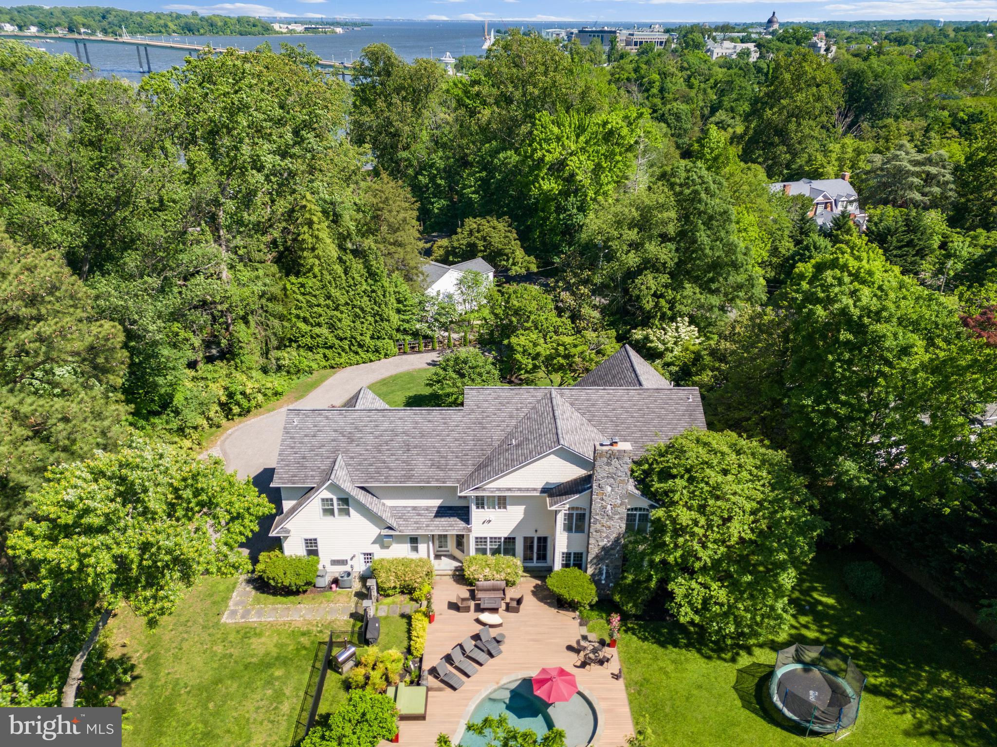 Location, location, location! This exceptional Wardour Estate with pool sets the standard for luxe living in the heart of Annapolis. This stunning 3 level spacious home boasts a grand 2 story marble entry with a curved staircase, setting the tone for the refined elegance that awaits. The traditional floor plan offers a cozy family room with exquisite molding details and luxurious Living room with stunning architectural details including coffered ceiling and you'll find comfort and warmth with fireplaces gracing both spaces. The heart of this home is the expansive kitchen featuring high end appliances, an abundance of cabinets and counter space and large curved island, ideal for culinary enthusiasts. The adjoining dining room and the breakfast nook in the kitchen provide plenty of gathering space for the largest of dinner parties. The music room/sunroom bathes in natural light, creating an inviting atmosphere for relaxation. Step outside to your own paradise; a heated, saltwater pool surrounded by expansive decking and an integrated hot tub, perfect for entertaining or unwinding in style. The finished basement adds to the allure, offering a bedroom, full bath, and an additional 2400 sqft of livable space. Upstairs, discover a haven of tranquility with 5 bedrooms. With soaring ceilings and tons of natural light the bedrooms are sure to please a large family or guests. Two bedrooms enjoy private ensuites while the additional 2 bedrooms share a well appointed bathroom with enormous shower. The primary bedroom suite is a masterpiece of luxury. Cozy up in front of the fireplace on a chilly evening, relax in the sitting area and unwind after a long day in the spa-like bathroom with dual vanities, walk-in shower, make-up area. Wardour's charm extends beyond the property lines, with a voluntary HOA providing access to the Severn River and a community beach. This home is a testament to refined living, where every detail has been carefully considered to create a residence that exceeds expectations. Welcome home, where luxury meets lifestyle.