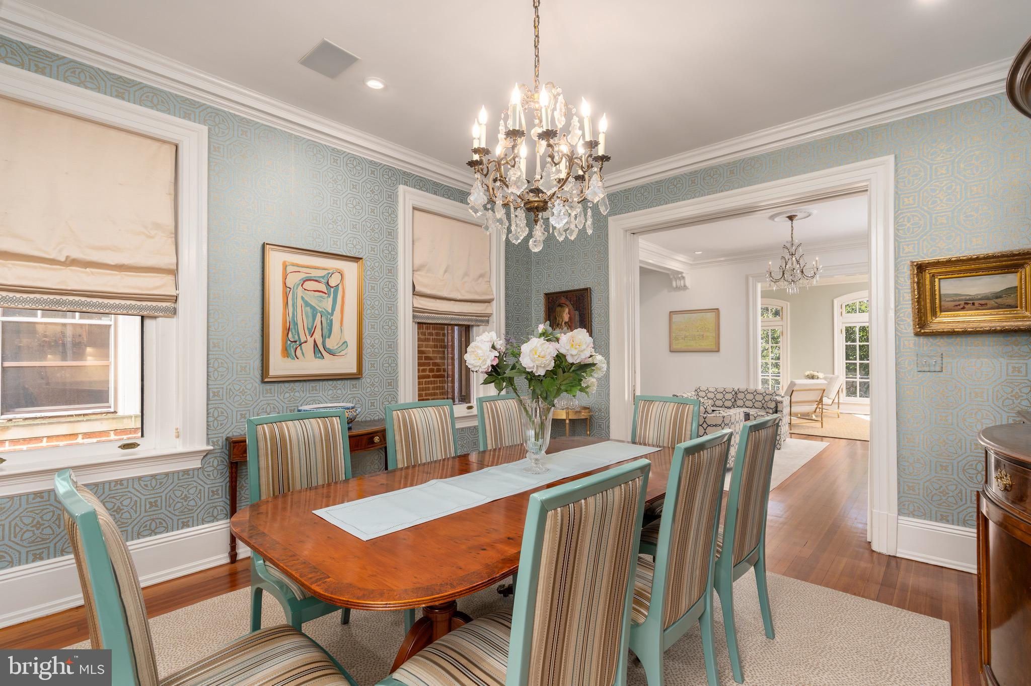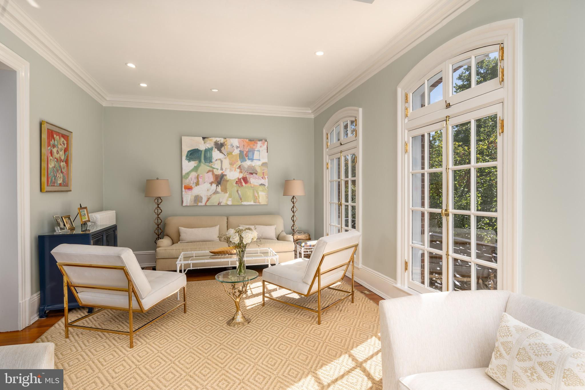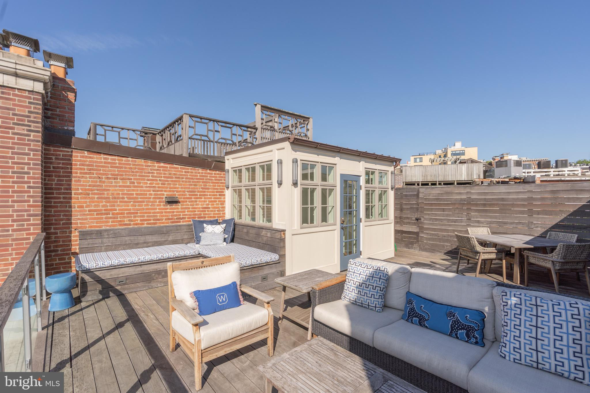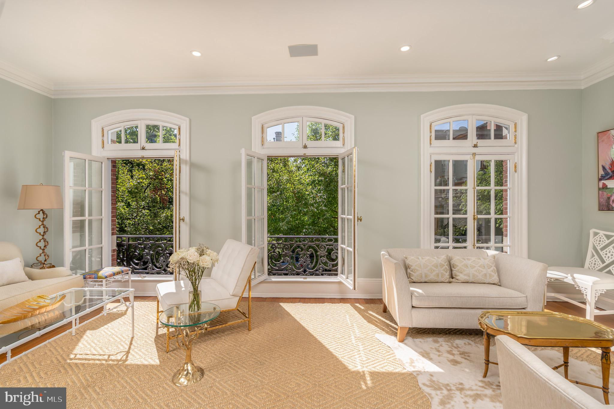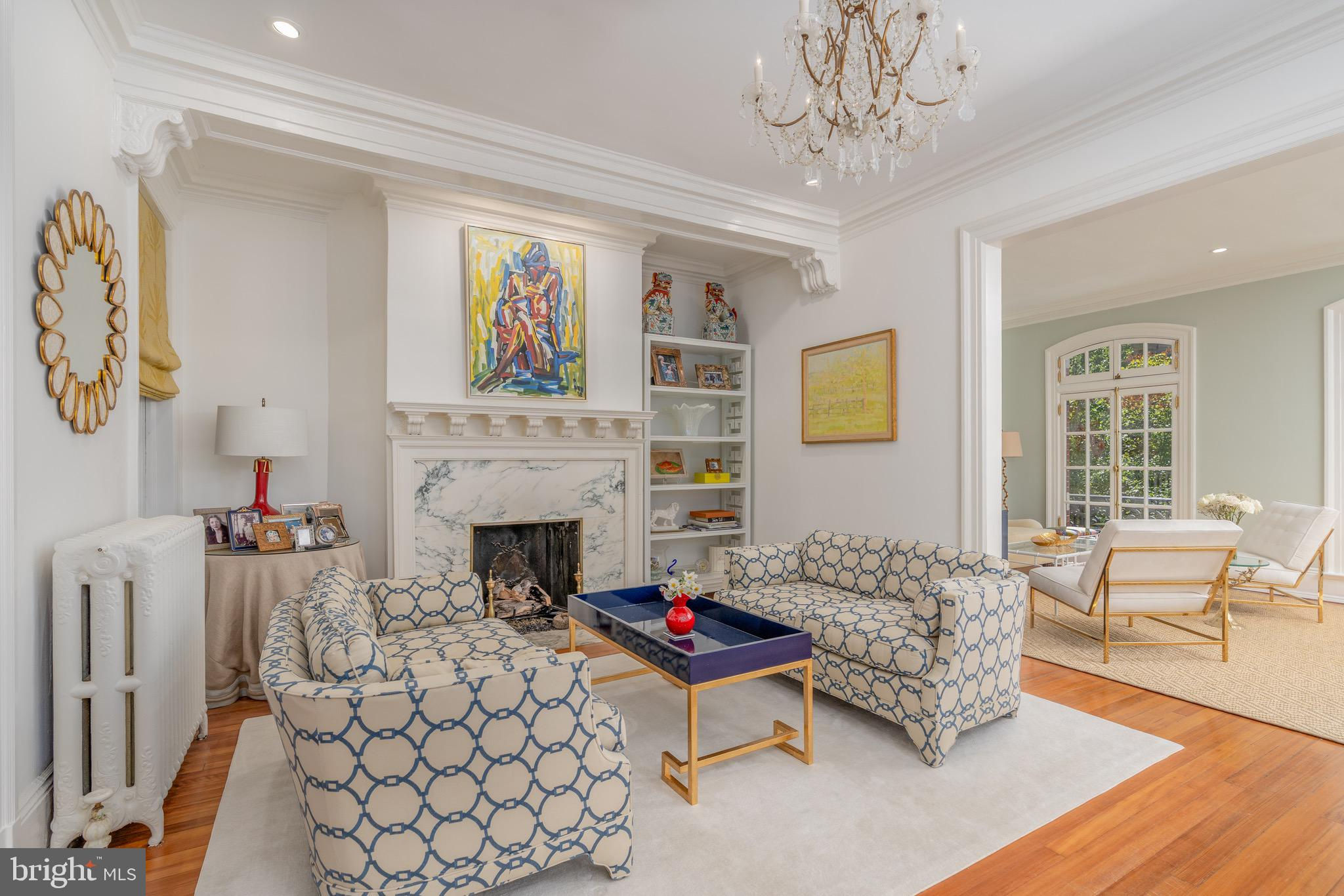 Nestled on one of Kalorama’s most distinguished blocks, this stately 1908 Beaux-Arts townhome was designed by noted architect Frederick B. Pyle for department store magnate Samuel Woodward. Blending timeless elegance with thoughtful modern updates spanning four expansive levels, the residence offers four bedrooms and three-and-a-half baths across a floor plan designed for both grand entertaining and comfortable daily living. The entry level opens with a light-filled sitting room that flows into a gourmet kitchen, outfitted with striking marble counters, custom cabinetry, and space for casual, fireside dining. Above, the Piano Nobile level - with soaring ceilings, two fireplaces, and magnificent French windows - provides a luminous backdrop for large-scale gatherings. Elegant entertaining rooms unfold in sequence, enriched by original moldings, trim, and south-facing exposures. A butler’s pantry with rear access to the kitchen completes this level. The third floor hosts the spacious primary suite, bathed in natural light and featuring a marble bath with dual showers, a custom dressing room, an adjoining office or sitting room and two more fireplaces. The top floor offers three additional bedrooms and two full baths, including one ensuite. A newly redesigned roof deck (2021) crowns the home with sweeping city views, perfect for al fresco entertaining. Recent updates include a new roof (2020), water heater (2024), and upper-zone AC (2020), along with a comprehensive security system. Seven fireplaces - five with gas inserts - add warmth and character throughout. Private rear parking (with EV charger) further enhances convenience, while the location places you within walking distance of Dupont Circle, Embassy Row, and Kalorama’s cafés and parks. 2131 Bancroft Place NW embodies the best of Kalorama - historic architecture elevated by refined, contemporary luxury.