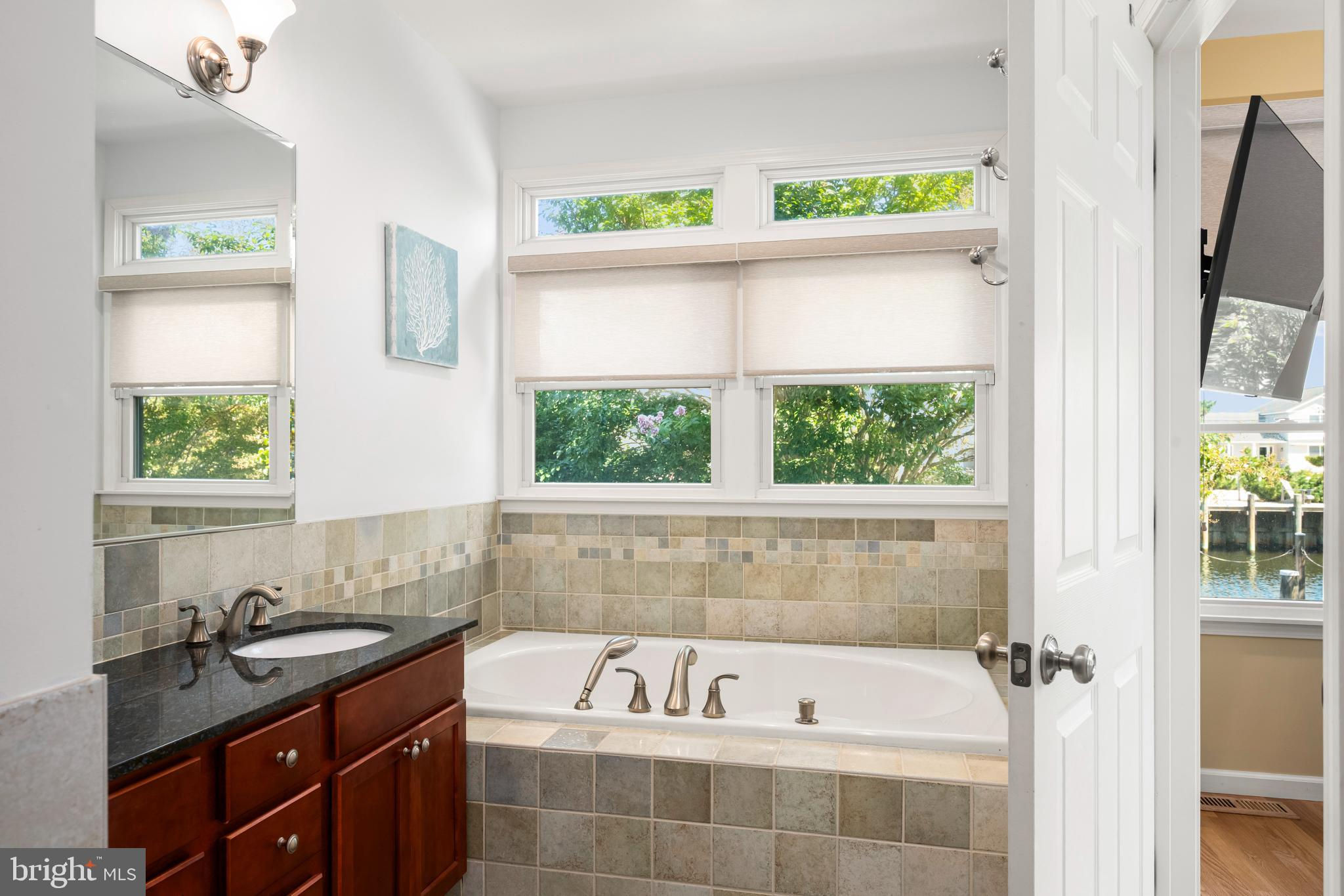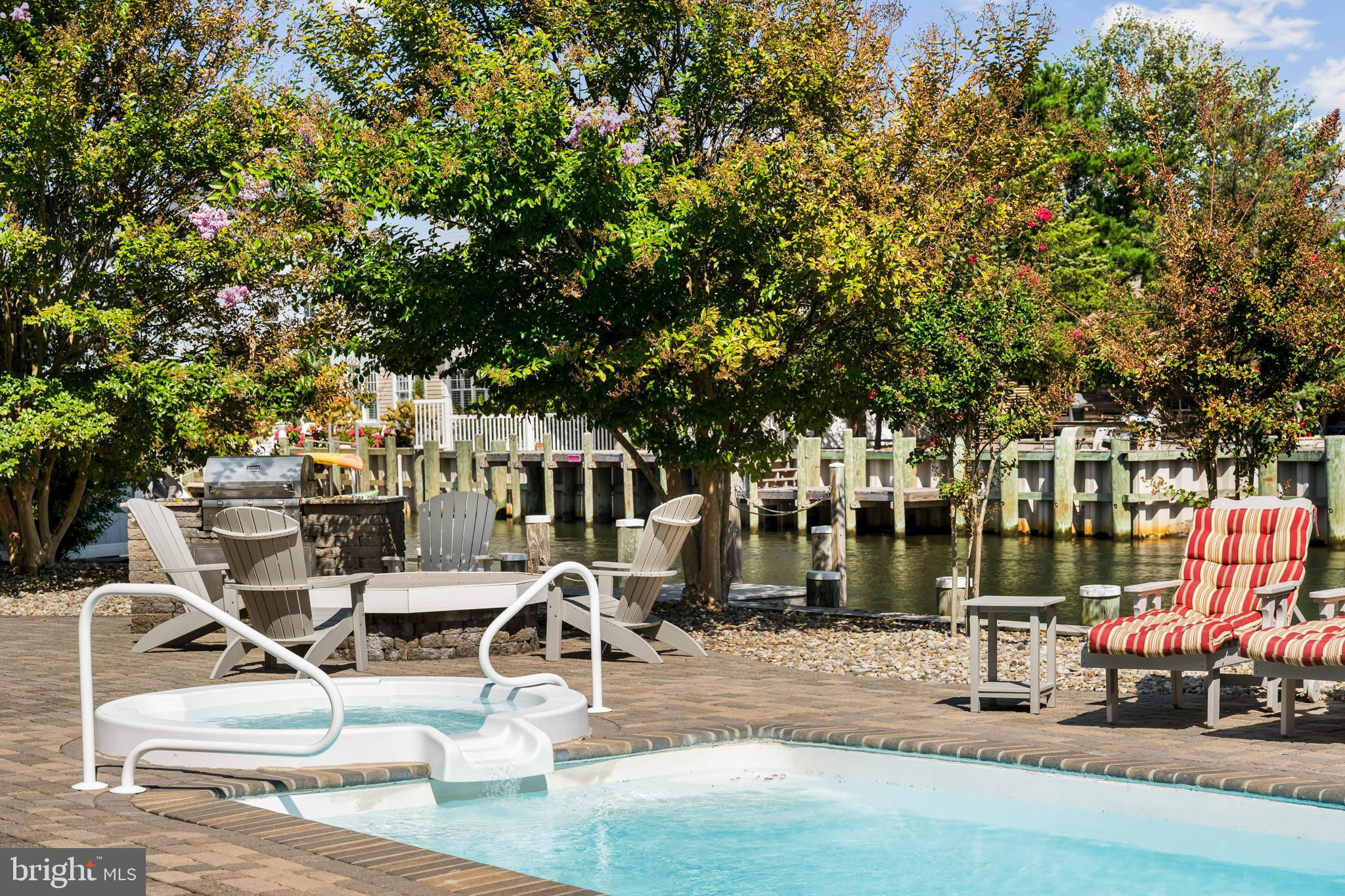 LOVELADIES - LAGOONFRONT: Feature packed lagoonfront home in pristine condition with 5 bedrooms; 3.5 baths; light filled great room with fireplace, soaring two story ceiling, and expansive glass doors that seamlessly connect indoor and outdoor living spaces; spacious and inviting screen porch; cook's kitchen with double island and pantry; upper level family room with wet bar and surround sound system, perfect for enjoying family movie nights; central stereo with indoor and outdoor speakers; large main floor primary suite with sitting area, walk in closet, double vanity, soaking tub, shower, and direct outdoor access; laundry room with 2 sets of washer dryers; convenient stack washer/dryer on upper level; two upper level guest bedroom wings with Jack and Jill bath for the west side wing; hardwood floors through the main level, passageways, and family room; and two car garage with EV charger and extra full size refrigerator and freezer units. Outdoor highlights include a heated in-ground salt water pool with integrated spa, large pool patio, grill station, gas firepit, 100' of lagoon frontage with vinyl bulkhead and dock, outdoor shower with dressing area, beautiful landscaping adorned with magnificent Crepe Myrtles, automated irrigation system, and circular brick paved drive. This considerable offering is being conveyed fully furnished and ready for you to move in and enjoy!.
