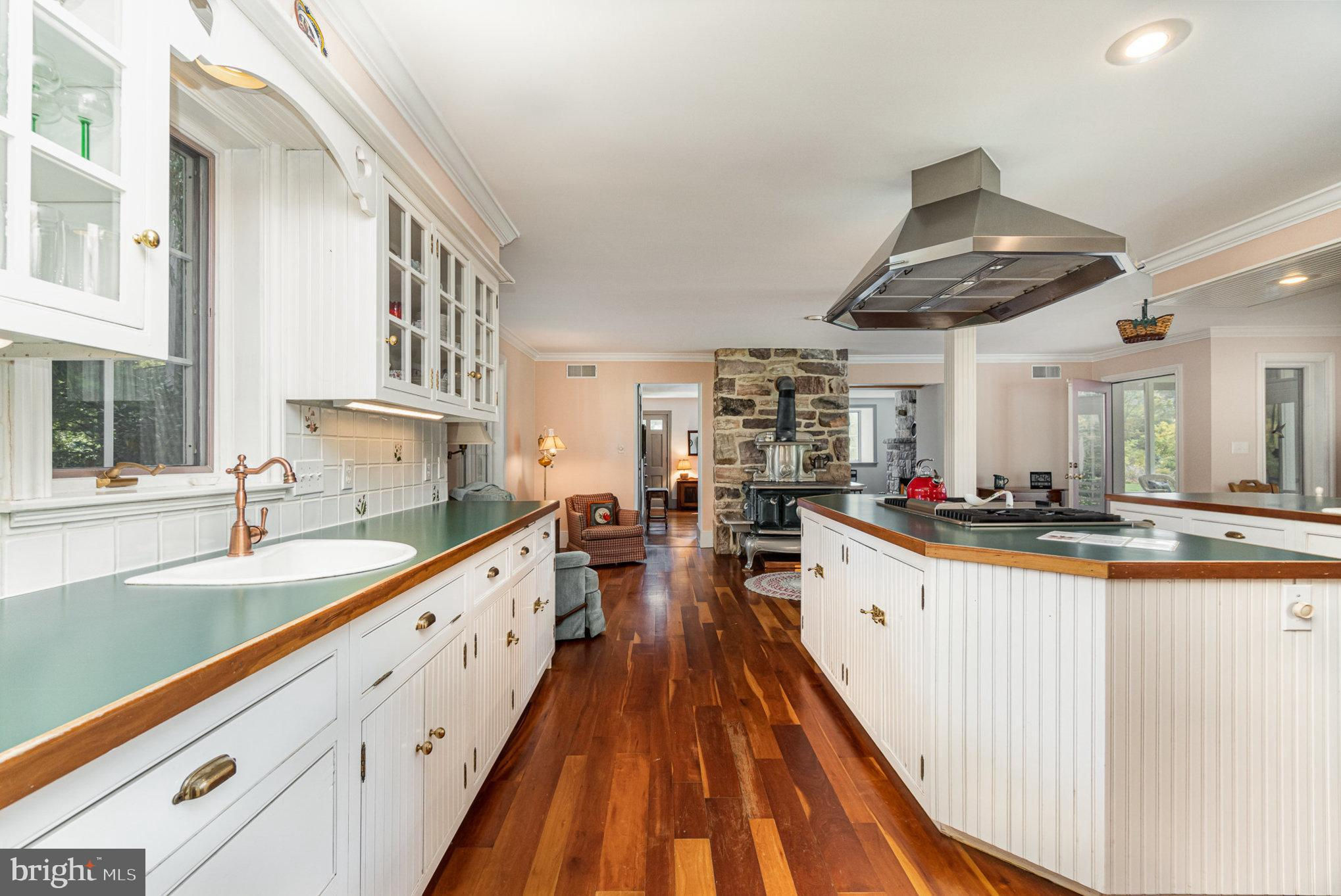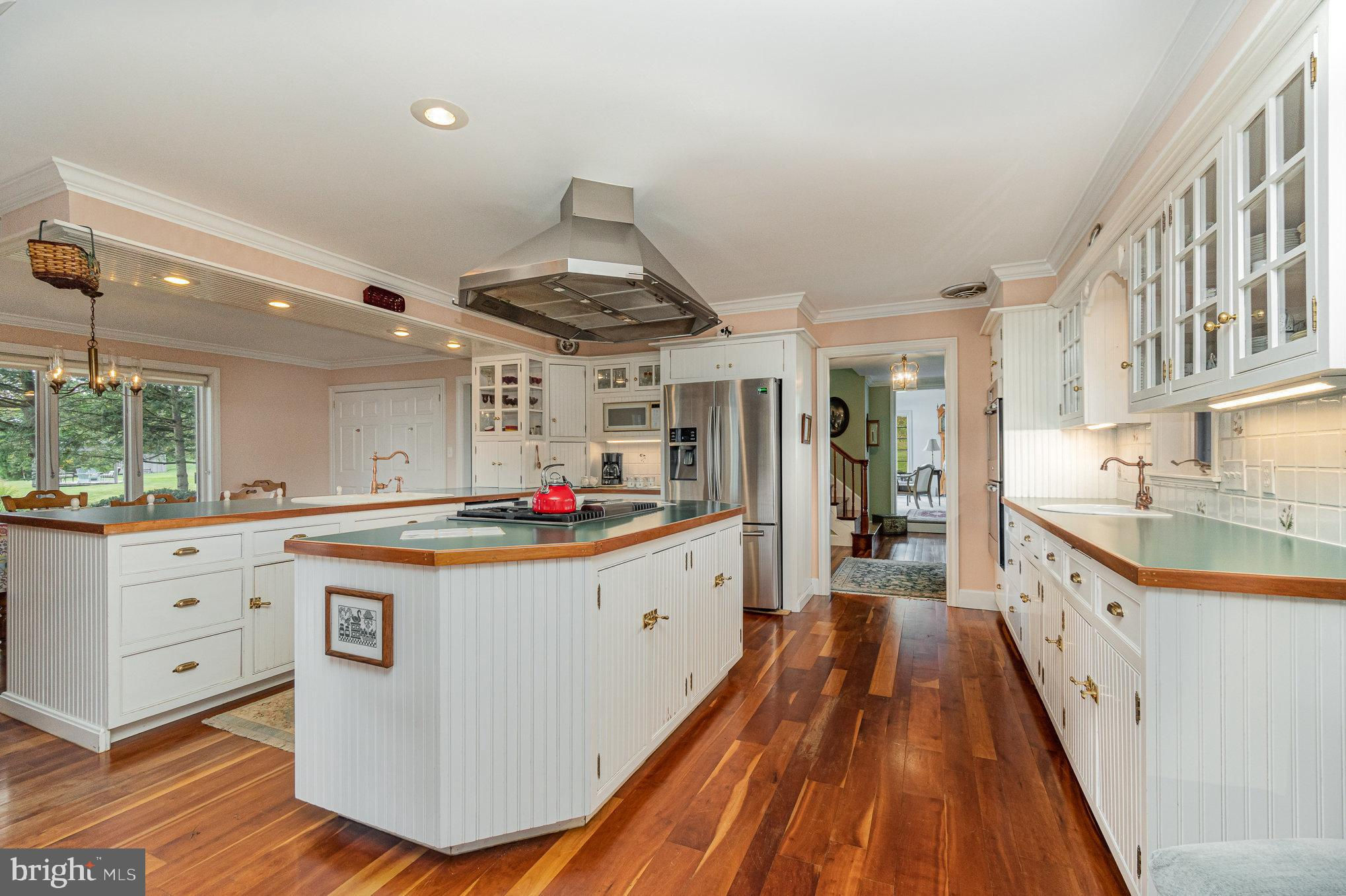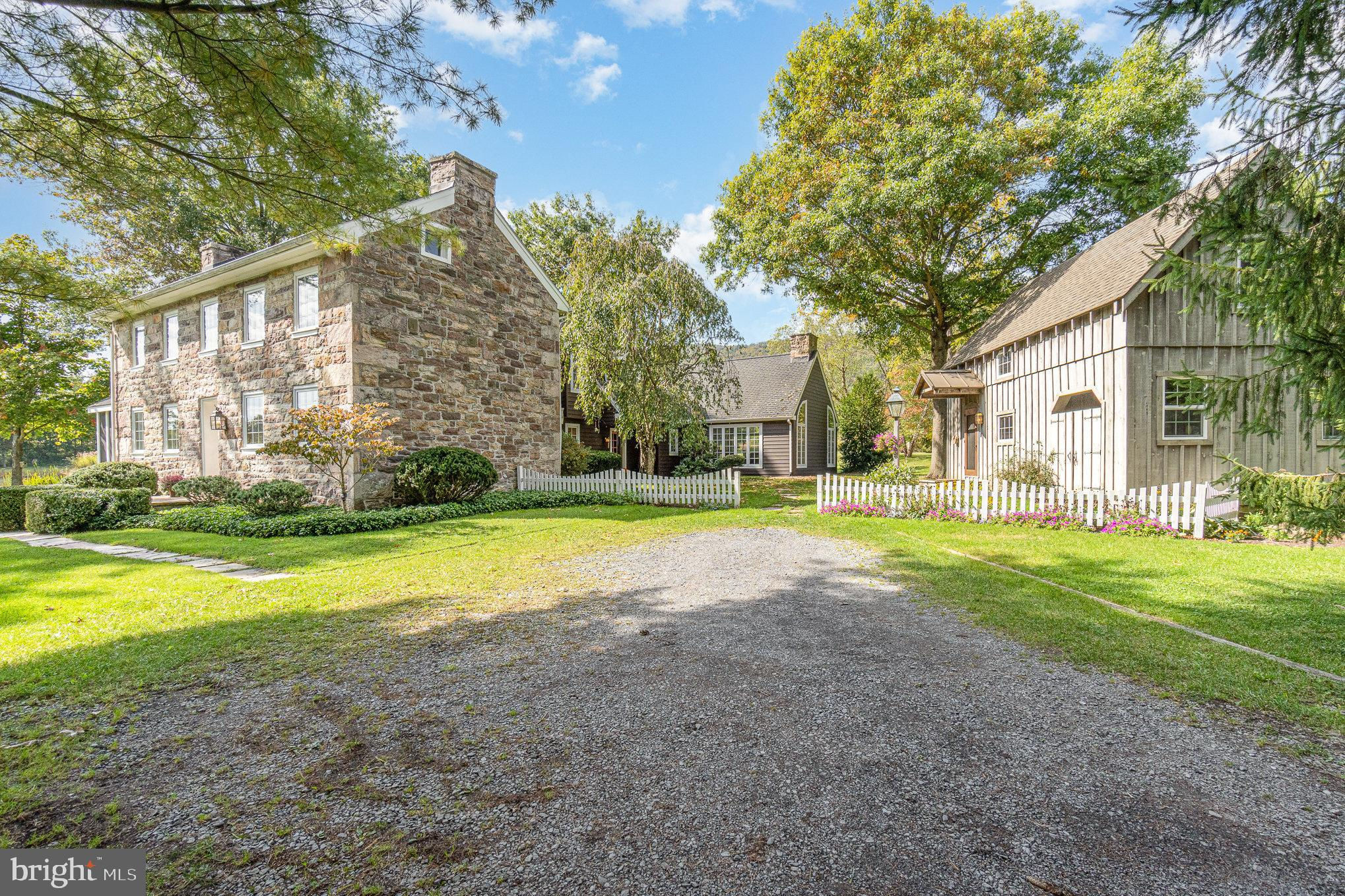Welcome to your new oasis at 21951 Amberson Rd! This property boasts 120 acres of land, a carriage house, a 4 stall horse barn, complete with a tack room and finished loft, an outdoor kitchen, 2 ponds, a workshop, multiple outbuildings, and much more! The main home was built in approximately 1765, and the home was remodeled in 1990. In the main home you will find a spacious open floor plan. The living room boasts a large custom built stone fireplace, and has a built in bar & sink for your convenience. There's no lack of natural lighting in this home! The large eat in kitchen provides access to the screened in porch, and overlooks the pond. On the main level you will also find an office, powder room, and a spacious laundry room. Upstairs, you will find a spacious primary suite overlooking the pond, with 2 walk-in closets, as well as 2 additional bedrooms and a second full bathroom. There are 6 heating zones in the home. The Carriage House to the right of the main house was rebuilt from the ground up in 2013 and offers plenty of additional space for your guests. The carriage house has a wood stove, as well as electric heating. The carriage house & the loft above the barn will be sold furnished. The outdoor kitchen was built in 2021 and is complete with electric, a custom built pizza oven, sink, refrigerator, reclaimed wood countertops, and a live-edge oak and poplar bar, overlooking the panoramic view of the mountainside. The 4 stall barn was built in 2018 and includes a tack room & feed room, as well as a finished loft with lots of additional space for your guests. The finished loft has propane heaters and a tankless hot water heater. There is 1 acre of fenced pasture area, with room for pasture expansion. The bank barn was completely redone in 1990, and has a heated & insulated workshop, with plenty of room for all of your projects, as well as lots of open space on the lower level. This property has approximately 50 wooded acres, and 70 open acres, abounding in all kinds of wildlife. The large pond is 1.6 acres and is stocked with many types of fish. The second pond is .6 of an acre. There is a native trout stream that runs through the property. 45 acres of the property are in the CREP program until September of 2026, and the owners receive $11,250 a year for it. 20 minutes from exit 201, Blue Mountain 18 minutes from exit 189, Willow Hill 35 minutes to Chambersburg 30 minutes to Shippensburg