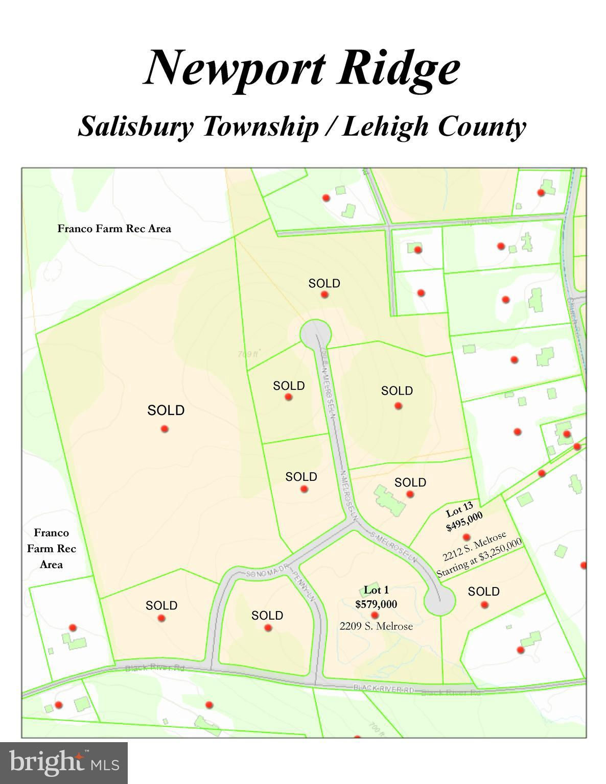 Myron Haydt, winner of the Top Pennsylvania Custom Home Builder Award, offers this custom home package for homeowners who require nothing less than extraordinary quality, design and location. Meticulously designed, the 5700 square foot luxury home boasts a rare combination of beauty and functionality. A massive great room includes the kitchen, with dual islands and seating for five, top- of-the- line appliances, and windowed breakfast room as part of a sun-kissed family room with fireplace and generous built-ins. A wall of doors from this great room opens to an elegant 32’ covered porch – perfect for elegant garden parties, barbecues or dinners al fresco. A generously sized dining room and a study flank the 2-story foyer. Multiple walk-in closets, butler’s pantry, full bath, a walk-in pantry and wood floors are the hallmarks of the first floor. Two wide staircases access the second floor. There are 4-bedroom suites and laundry. The primary suite has a wall of windows and massive walk-in closet with island, second walk-in closet and sumptuous bath with oversized shower and a soaking tub. This 2-acre lot is one of only two remaining lots in the award-winning neighborhood of Newport Ridge. The land offers plenty of room for pools and sports courts, all within an easy drive to Bethlehem, Allentown, New York City, Philadelphia and New Jersey. Adjacent is Black River Sanctuary, a preserve of 187 acres in Salisbury and Upper Saucon townships, with seven different trails, covering 3 miles,