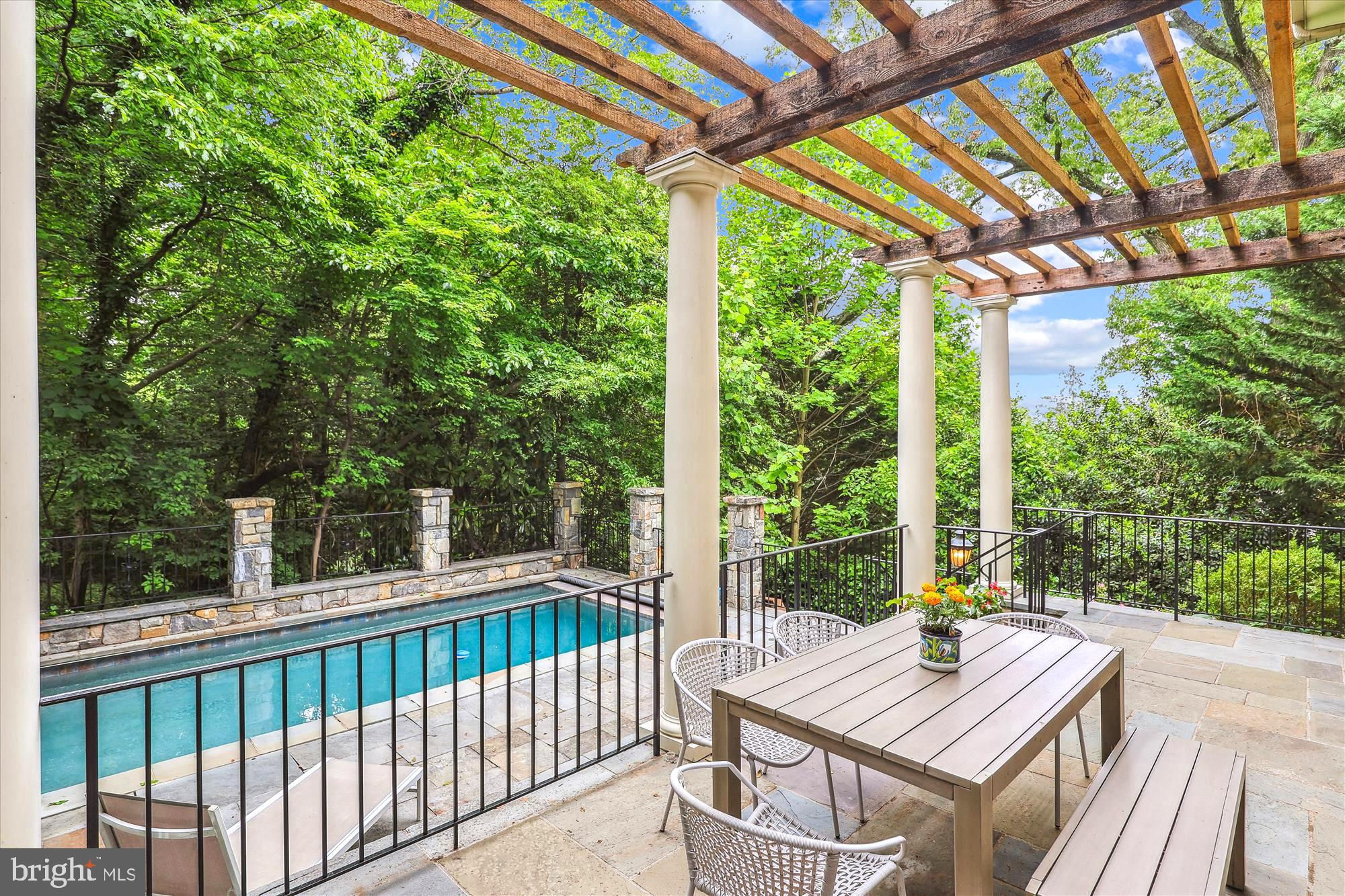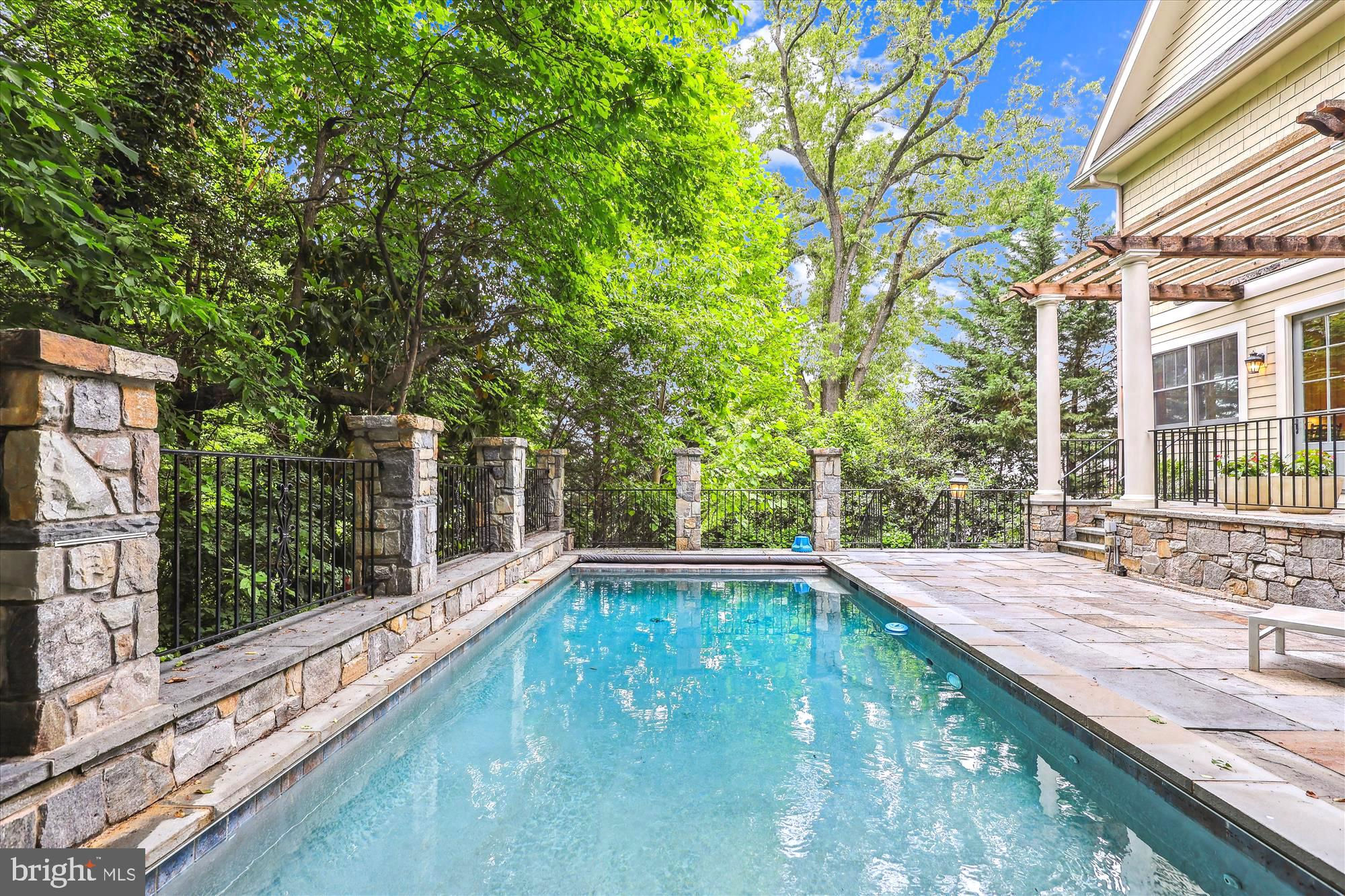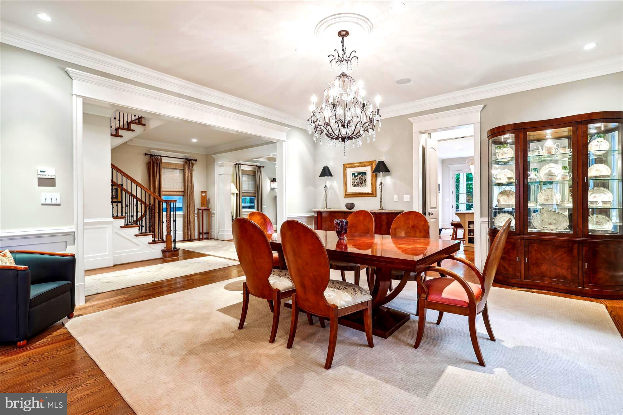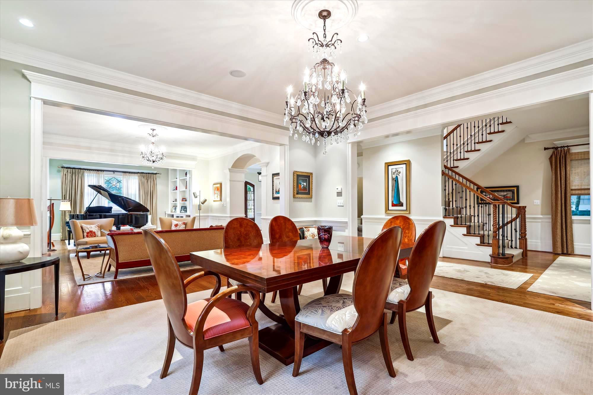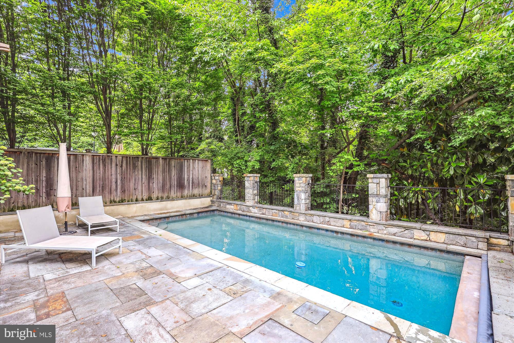 Exquisitely detailed and thoughtfully designed, this custom 7 bedroom, 6 full bath, 2 half bath, 7000+ square foot home by Chryssa Wolfe of Hanlon Design and Build is located on sought after King Place NW, a low traffic street in the Berkley neighborhood. Attention to detail is evident in the exceptional millwork that permeates the entire home, setting a tone of refined sophistication and timeless elegance. The impressive grand foyer invites you in to view the home. Off the foyer is the embassy size dining room, formal living room with gas fireplace and sun-filled library/music room with built-ins and view of the landscaped front. Handsome powder room. The professional chef’s kitchen boasts Wood Mode cabinetry, granite counters, 36” 6 burner Wolf gas range top, two full size Dacor ovens, Sub zero refrigerator & freezer, Bosch dishwasher, Fisher & Paykel one drawer dishwasher, 2 sinks, 2 pantries, large island, and a built-in banquette. French door leads to the covered stone deck with built-in gas grill and al fresco stone cooking area. The amazing family room with coffered ceiling features a gas fireplace, and built-in custom bar with two refrigerated drawers. Custom staircase with wrought iron/wood rails to the second level. It features four bedrooms, all with en suite bathrooms and large closets, including the sweeping primary bedroom with huge custom-fitted dressing room/closet and luxury marble spa-like bath featuring a separate Steamist shower, dual vanity, and soaking tub. The laundry with full Whirlpool washer & dryer, laundry tub and cabinets complete this level. The third level offers a spacious bonus room/second family room /bedroom 2 closets & a tray ceiling, 5th bedroom with closet, full bath, and large exercise room with TV and plenty of storage in the eaves. The finished lower level with unique tile floors features a delightful recreation room with gas fireplace, game room, wet bar with U-line beverage cooler. And Atrium doors that open to the side yard. This level also boasts a half bath, 6th bedroom, full bath, mud room and a fully equipped catering kitchen. The versatility of the lower level makes it perfect for additional entertainment space, or an in-law/au pair suite. The exterior of this magnificent residence offers an inground heated pool with automatic cover that is surrounded by flagstone decking and professionally designed grounds by a landscape architect. Lush year round bloom! No detail has been spared inside or outside. Conveniently located close to all the shops and dining on MacArthur Blvd. and Georgetown. Take nature walks through Battery Kemble Park as well as the Capital Crescent trail. This home and location offer all the “I wants”!