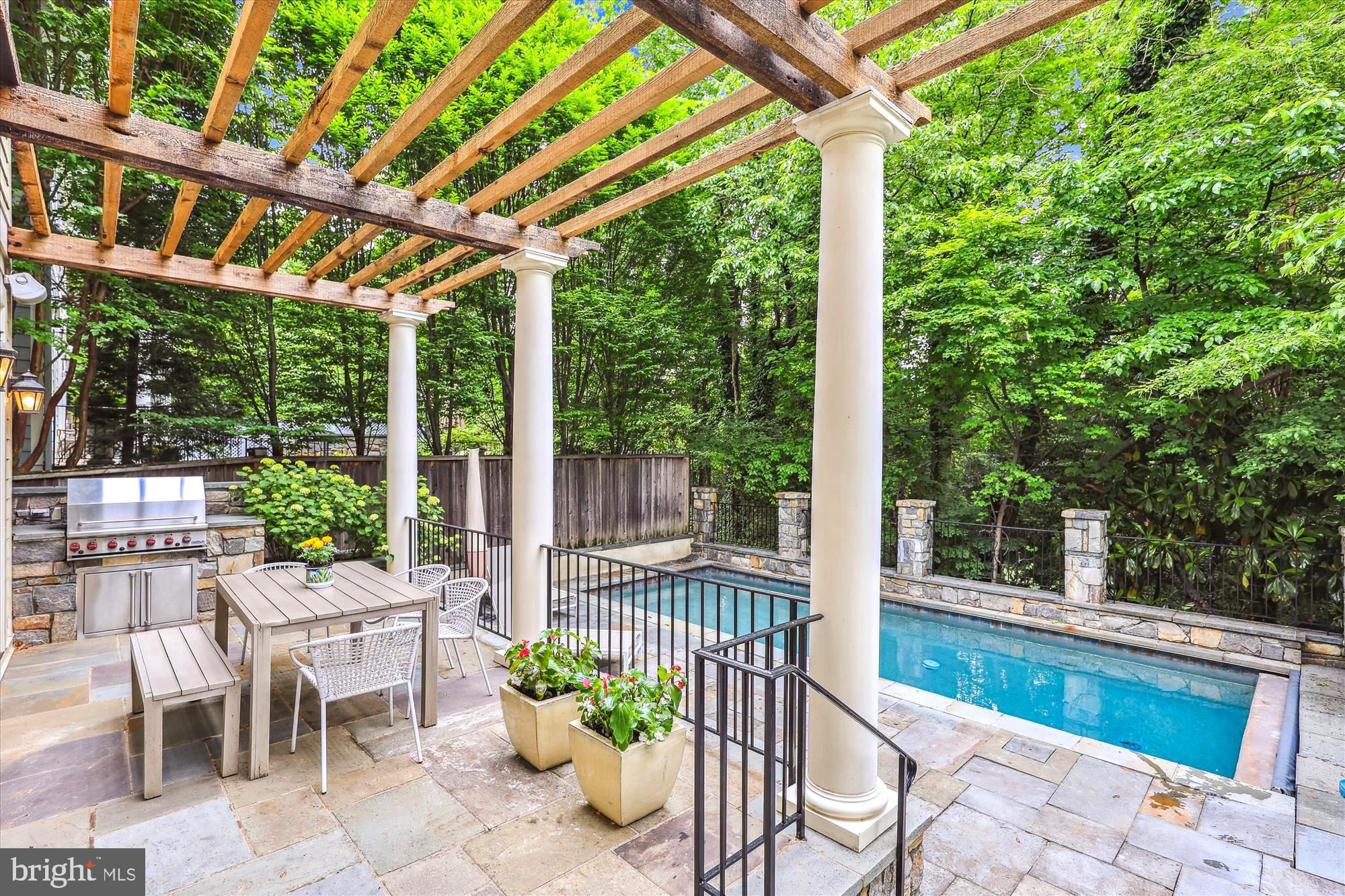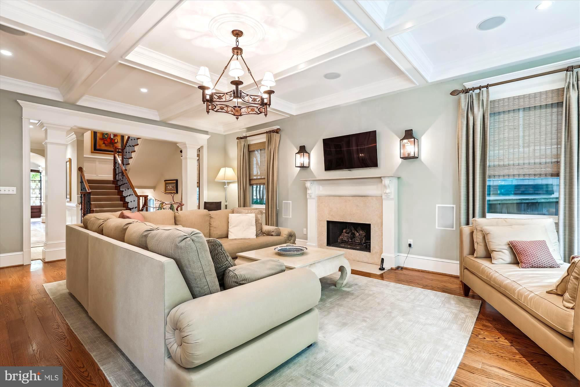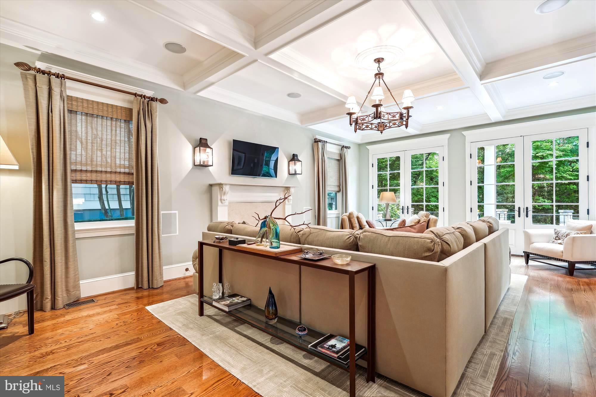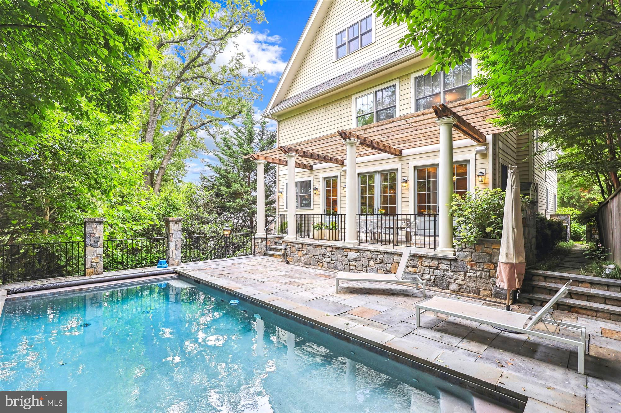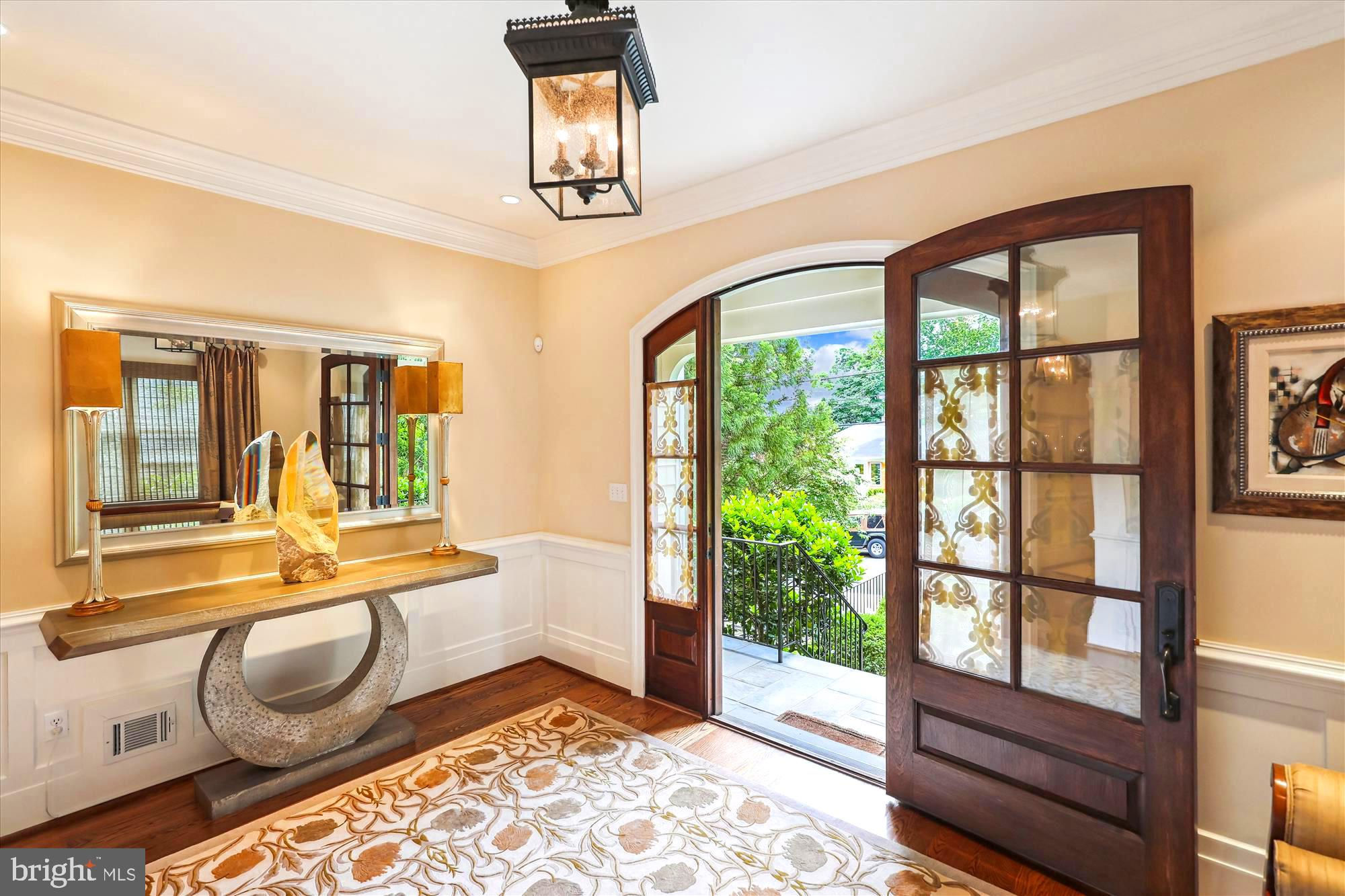 Exquisitely detailed and thoughtfully designed, this custom 7 bedroom, 6 full bath, 2 half bath, 7000+ square foot home by Chryssa Wolfe of Hanlon Design and Build is located on sought after King Place NW, a low traffic street in the Berkley neighborhood. Attention to detail is evident in the exceptional millwork that permeates the entire home, setting a tone of refined sophistication and timeless elegance. The impressive grand foyer invites you in to view the home. Off the foyer is the embassy size dining room, formal living room with gas fireplace and sun-filled library/music room with built-ins and view of the landscaped front. Handsome powder room. The professional chef’s kitchen boasts Wood Mode cabinetry, granite counters, 36” 6 burner Wolf gas range top, two full size Dacor ovens, Sub zero refrigerator & freezer, Bosch dishwasher, Fisher & Paykel one drawer dishwasher, 2 sinks, 2 pantries, large island, and a built-in banquette. French door leads to the covered stone deck with built-in gas grill and al fresco stone cooking area. The amazing family room with coffered ceiling features a gas fireplace, and built-in custom bar with two refrigerated drawers. Custom staircase with wrought iron/wood rails to the second level. It features four bedrooms, all with en suite bathrooms and large closets, including the sweeping primary bedroom with huge custom-fitted dressing room/closet and luxury marble spa-like bath featuring a separate Steamist shower, dual vanity, and soaking tub. The laundry with full Whirlpool washer & dryer, laundry tub and cabinets complete this level. The third level offers a spacious bonus room/second family room /bedroom 2 closets & a tray ceiling, 5th bedroom with closet, full bath, and large exercise room with TV and plenty of storage in the eaves. The finished lower level with unique tile floors features a delightful recreation room with gas fireplace, game room, wet bar with U-line beverage cooler. And Atrium doors that open to the side yard. This level also boasts a half bath, 6th bedroom, full bath, mud room and a fully equipped catering kitchen. The versatility of the lower level makes it perfect for additional entertainment space, or an in-law/au pair suite. The exterior of this magnificent residence offers an inground heated pool with automatic cover that is surrounded by flagstone decking and professionally designed grounds by a landscape architect. Lush year round bloom! No detail has been spared inside or outside. Conveniently located close to all the shops and dining on MacArthur Blvd. and Georgetown. Take nature walks through Battery Kemble Park as well as the Capital Crescent trail. This home and location offer all the “I wants”!