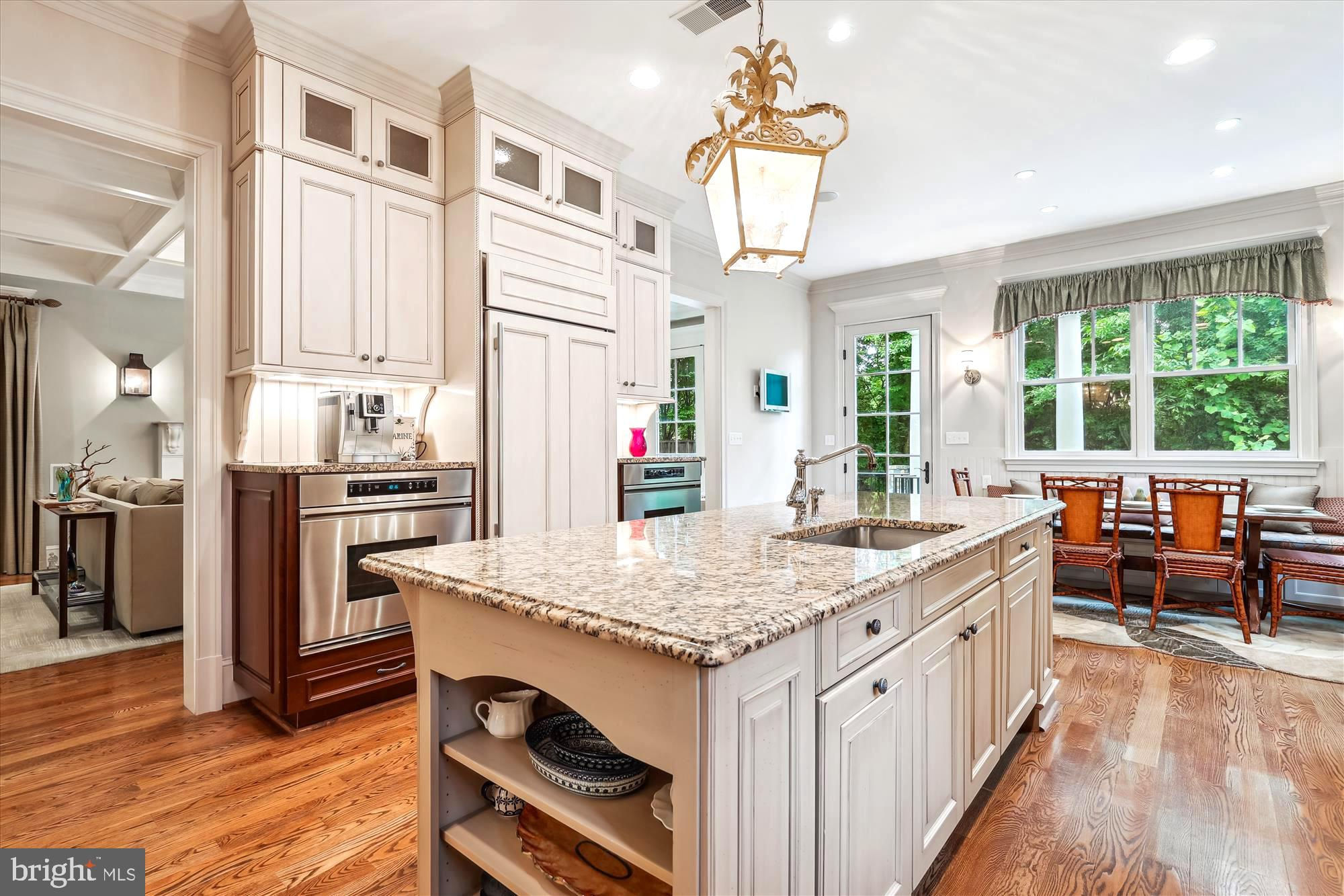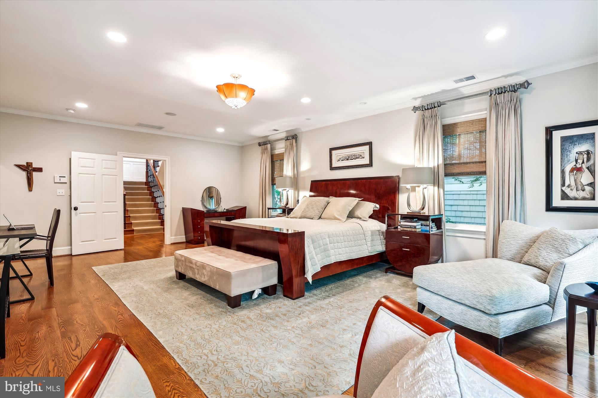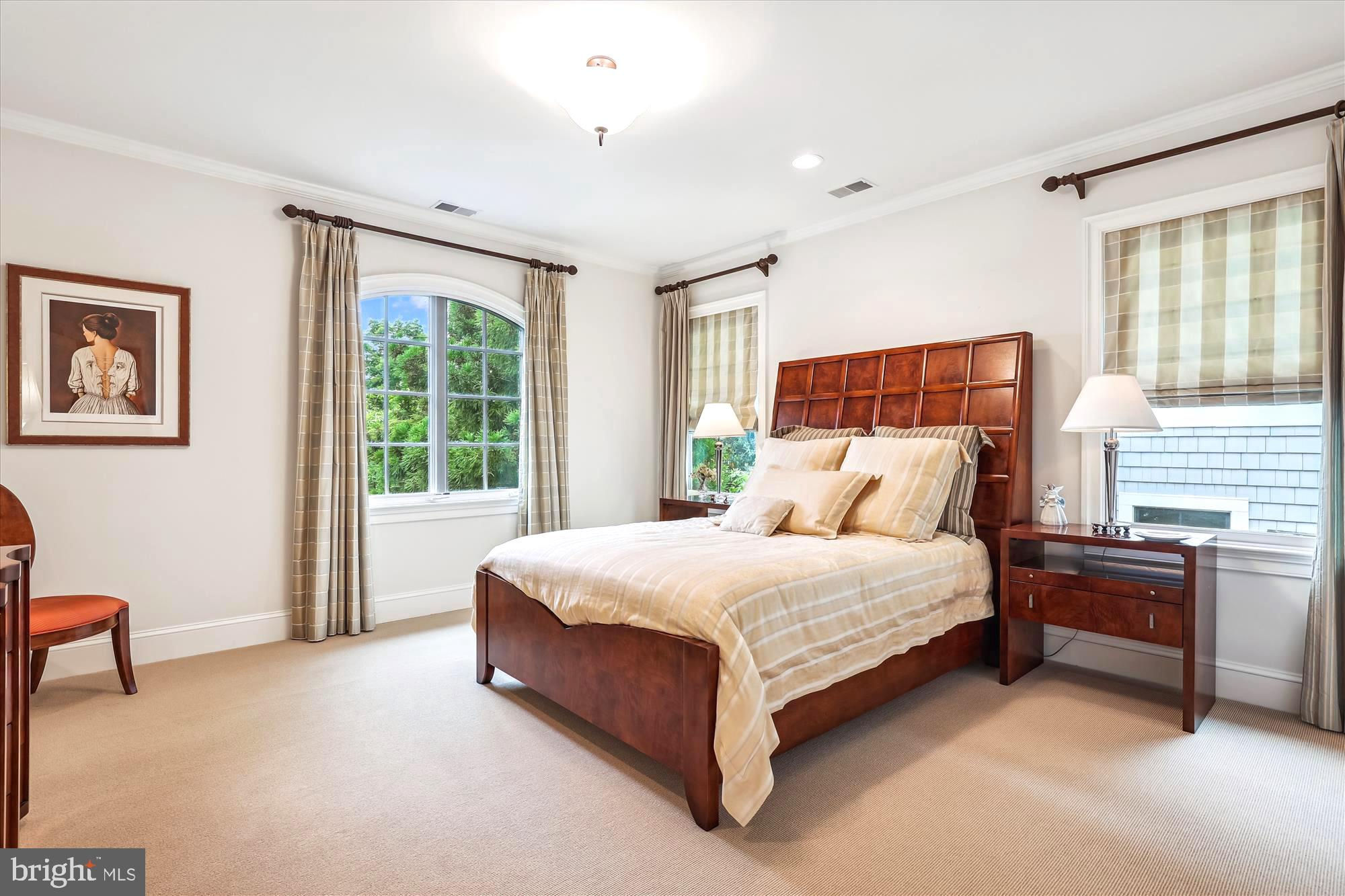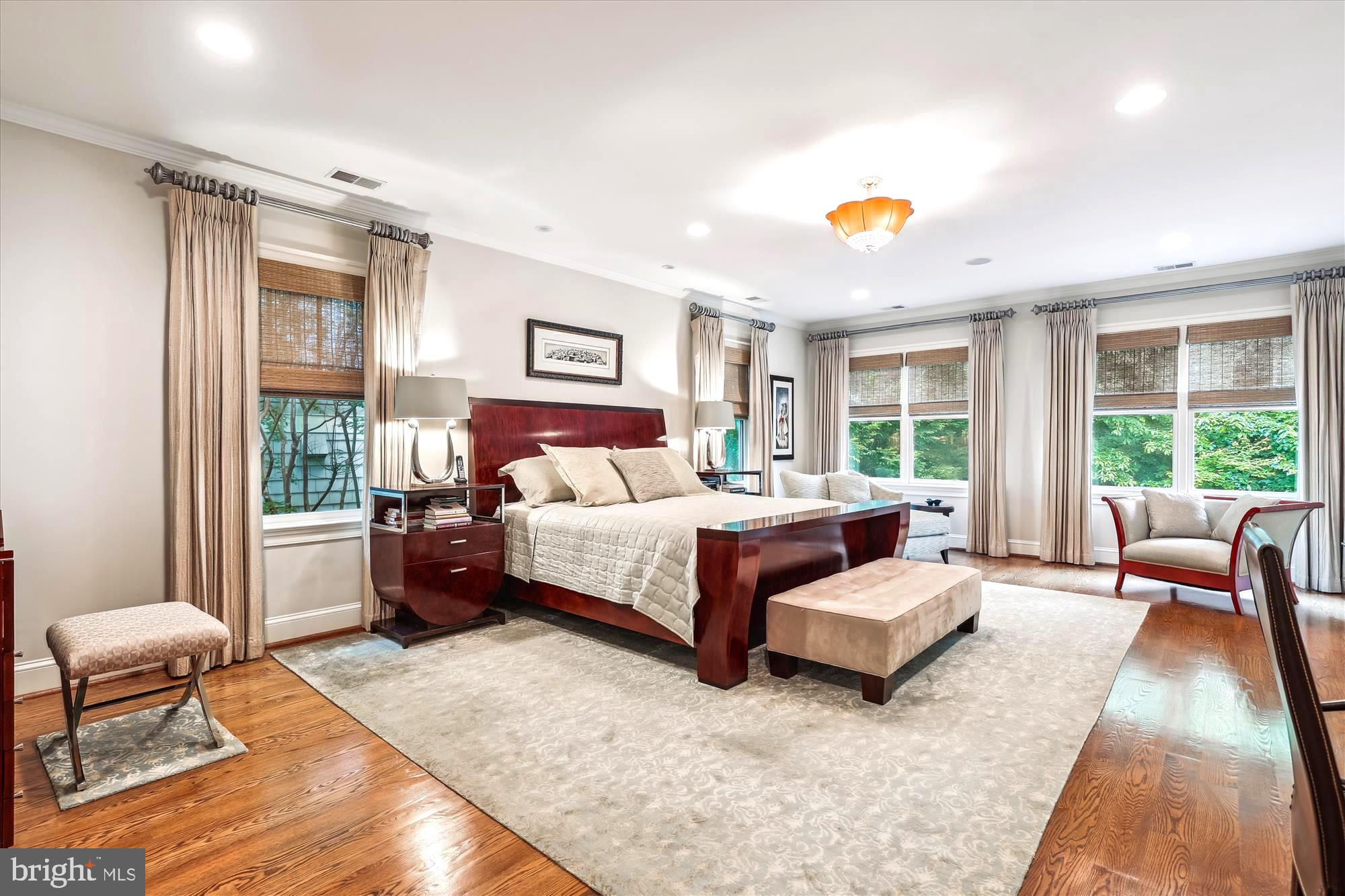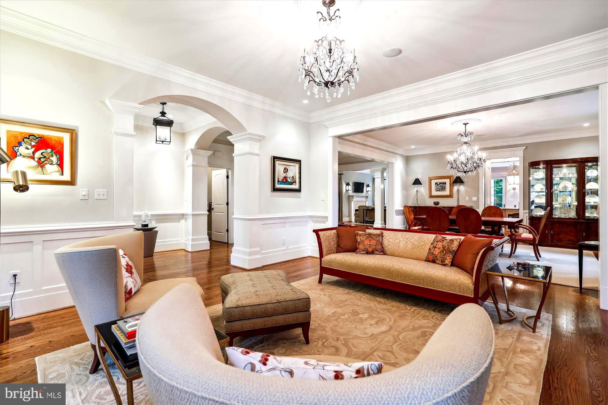 Exquisitely detailed and thoughtfully designed, this custom 7 bedroom, 6 full bath, 2 half bath, 7000+ square foot home by Chryssa Wolfe of Hanlon Design and Build is located on sought after King Place NW, a low traffic street in the Berkley neighborhood. Attention to detail is evident in the exceptional millwork that permeates the entire home, setting a tone of refined sophistication and timeless elegance. The impressive grand foyer invites you in to view the home. Off the foyer is the embassy size dining room, formal living room with gas fireplace and sun-filled library/music room with built-ins and view of the landscaped front. Handsome powder room. The professional chef’s kitchen boasts Wood Mode cabinetry, granite counters, 36” 6 burner Wolf gas range top, two full size Dacor ovens, Sub zero refrigerator & freezer, Bosch dishwasher, Fisher & Paykel one drawer dishwasher, 2 sinks, 2 pantries, large island, and a built-in banquette. French door leads to the covered stone deck with built-in gas grill and al fresco stone cooking area. The amazing family room with coffered ceiling features a gas fireplace, and built-in custom bar with two refrigerated drawers. Custom staircase with wrought iron/wood rails to the second level. It features four bedrooms, all with en suite bathrooms and large closets, including the sweeping primary bedroom with huge custom-fitted dressing room/closet and luxury marble spa-like bath featuring a separate Steamist shower, dual vanity, and soaking tub. The laundry with full Whirlpool washer & dryer, laundry tub and cabinets complete this level. The third level offers a spacious bonus room/second family room /bedroom 2 closets & a tray ceiling, 5th bedroom with closet, full bath, and large exercise room with TV and plenty of storage in the eaves. The finished lower level with unique tile floors features a delightful recreation room with gas fireplace, game room, wet bar with U-line beverage cooler. And Atrium doors that open to the side yard. This level also boasts a half bath, 6th bedroom, full bath, mud room and a fully equipped catering kitchen. The versatility of the lower level makes it perfect for additional entertainment space, or an in-law/au pair suite. The exterior of this magnificent residence offers an inground heated pool with automatic cover that is surrounded by flagstone decking and professionally designed grounds by a landscape architect. Lush year round bloom! No detail has been spared inside or outside. Conveniently located close to all the shops and dining on MacArthur Blvd. and Georgetown. Take nature walks through Battery Kemble Park as well as the Capital Crescent trail. This home and location offer all the “I wants”!