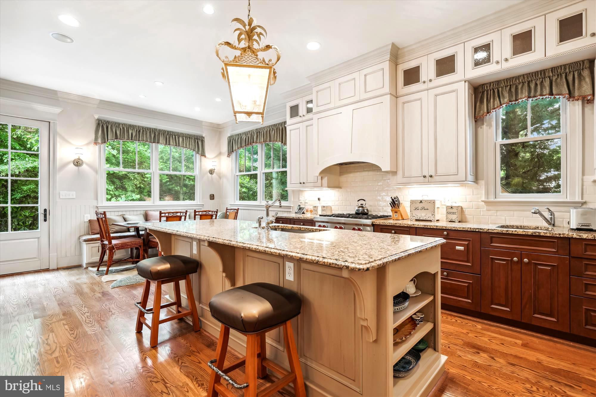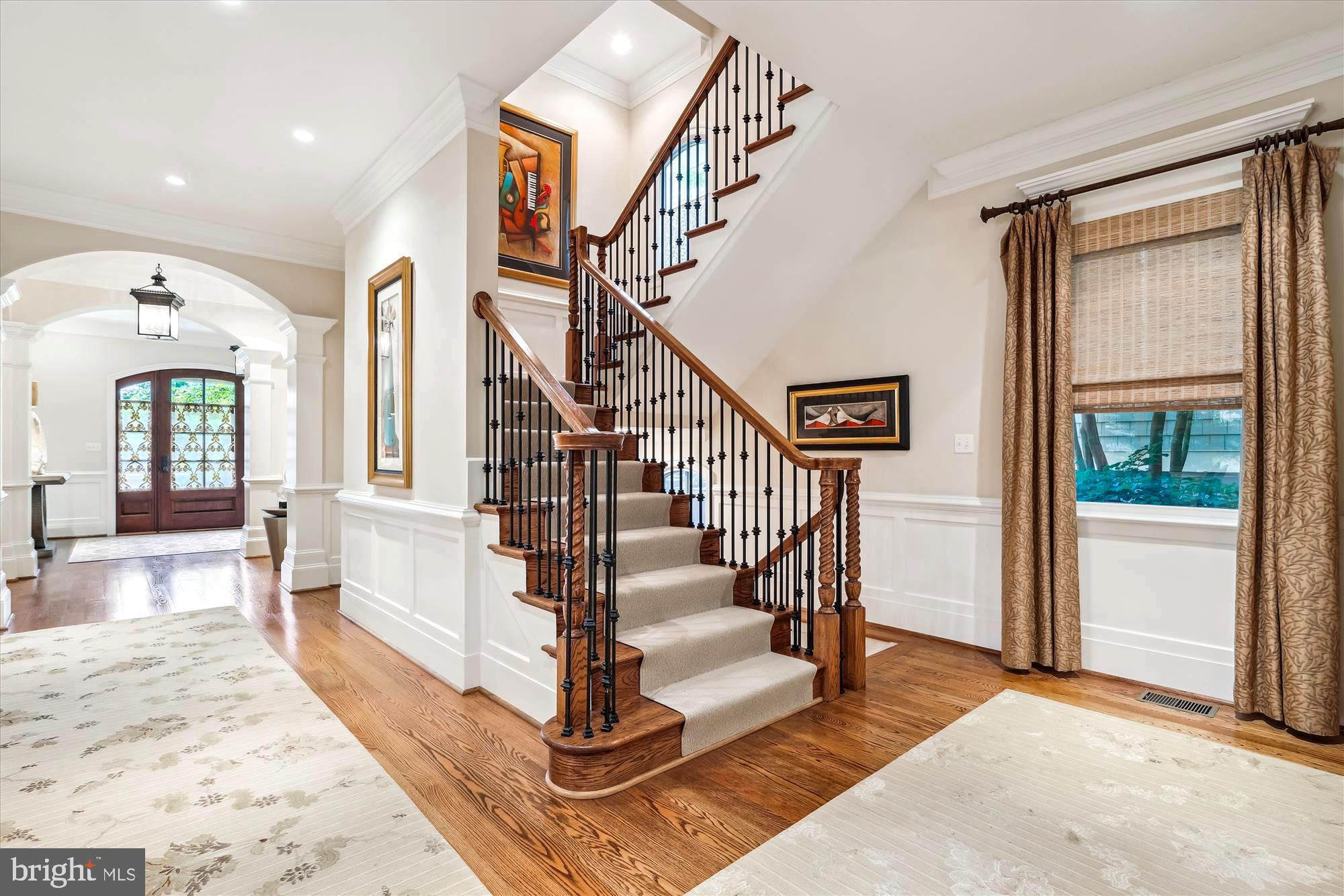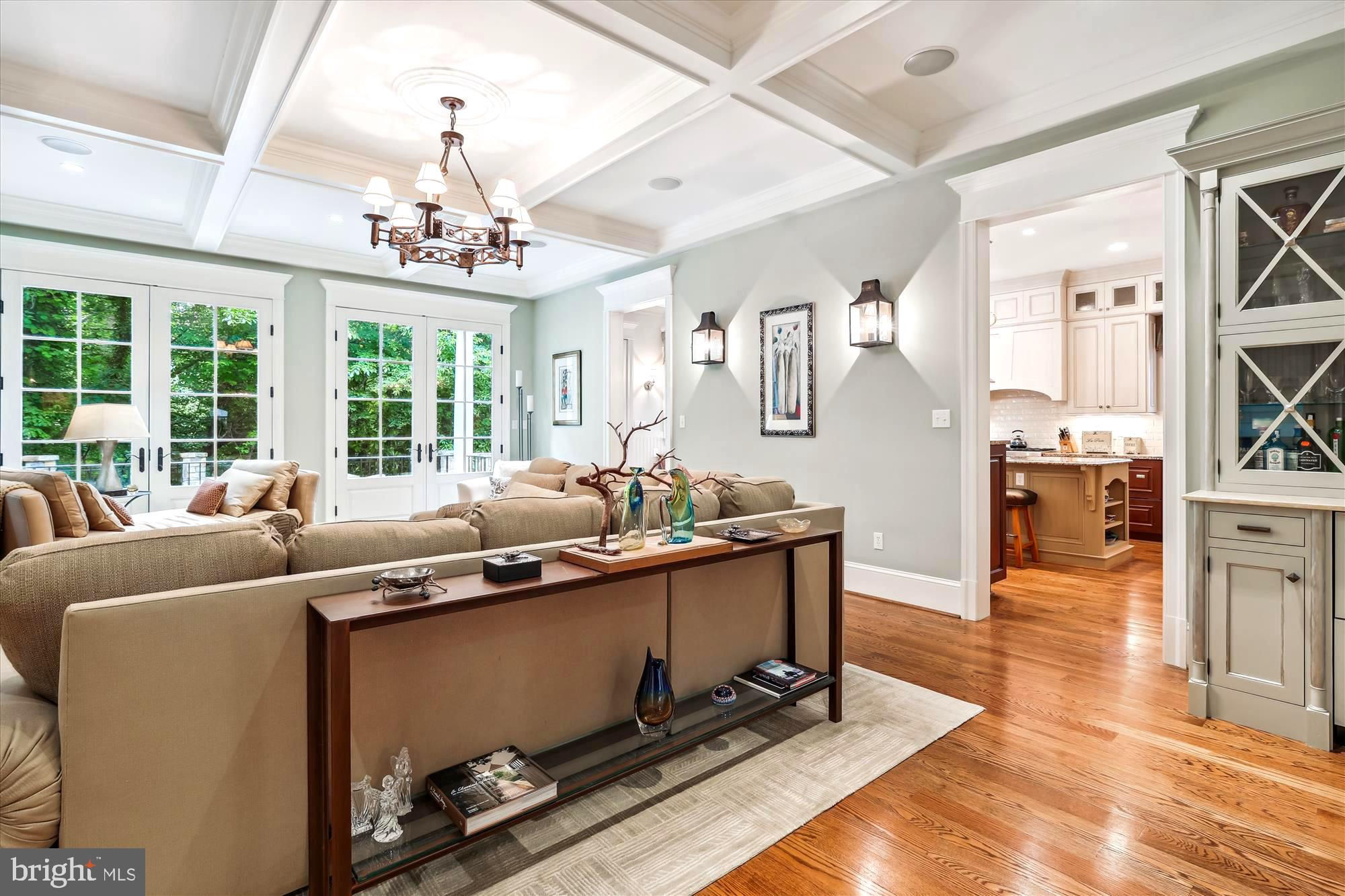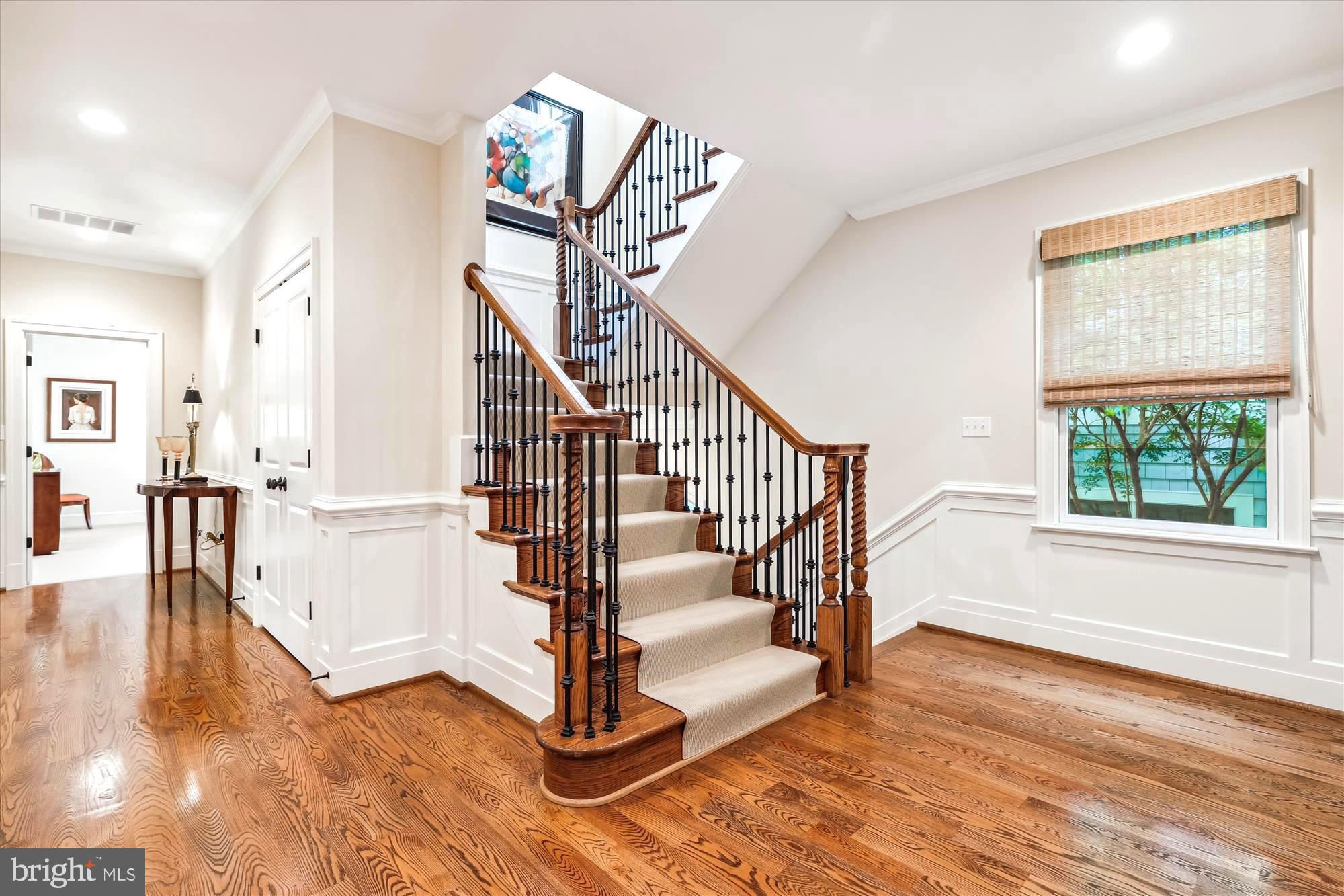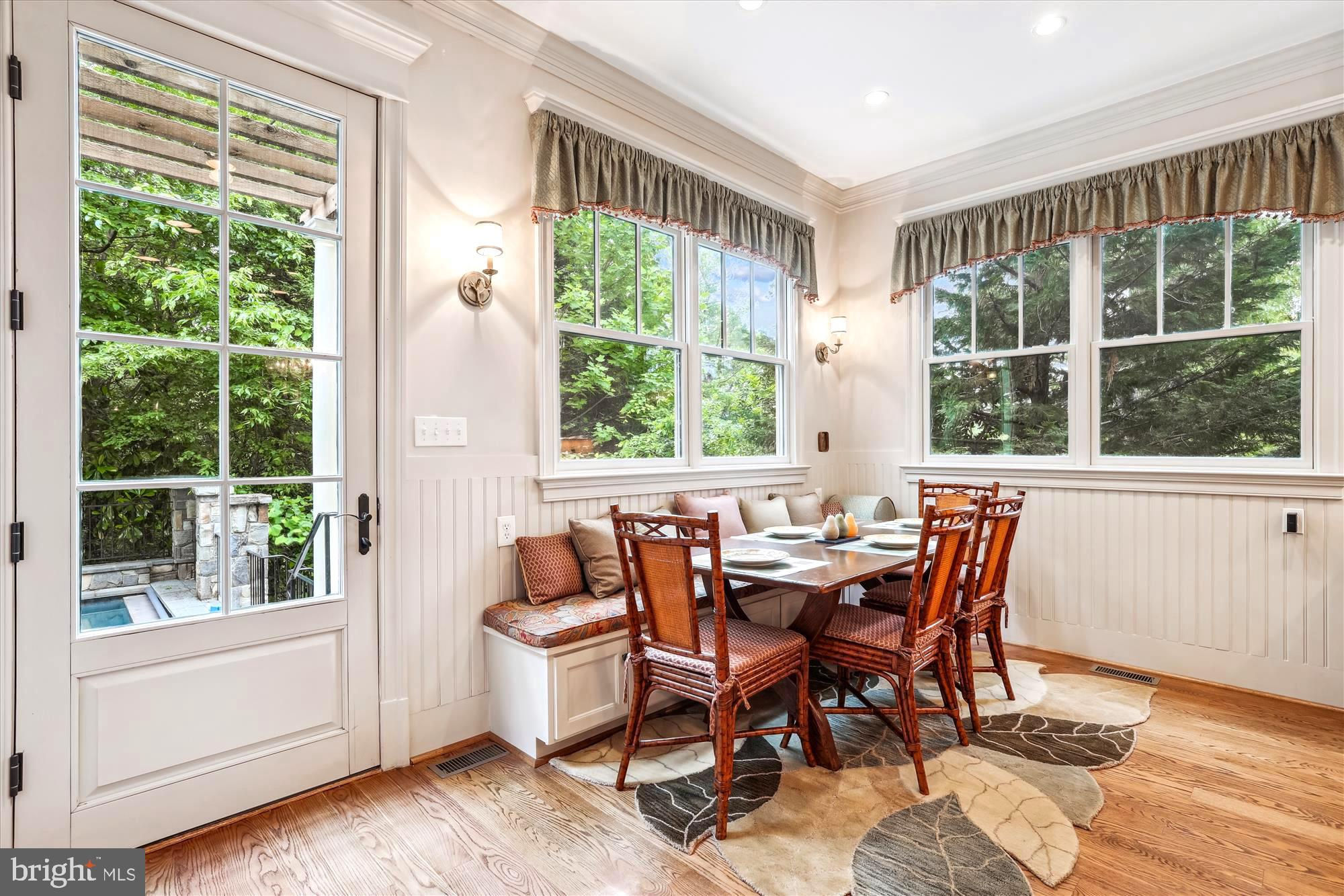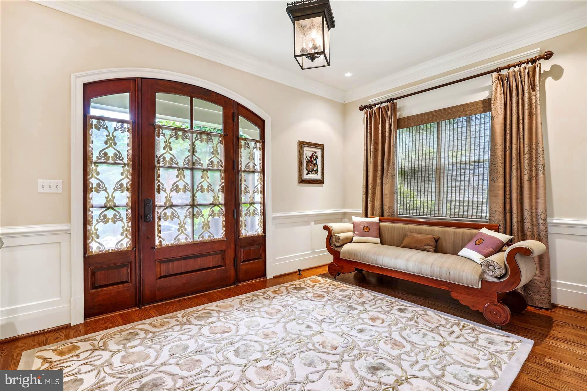 Exquisitely detailed and thoughtfully designed, this custom 7 bedroom, 6 full bath, 2 half bath, 7000+ square foot home by Chryssa Wolfe of Hanlon Design and Build is located on sought after King Place NW, a low traffic street in the Berkley neighborhood. Attention to detail is evident in the exceptional millwork that permeates the entire home, setting a tone of refined sophistication and timeless elegance. The impressive grand foyer invites you in to view the home. Off the foyer is the embassy size dining room, formal living room with gas fireplace and sun-filled library/music room with built-ins and view of the landscaped front. Handsome powder room. The professional chef’s kitchen boasts Wood Mode cabinetry, granite counters, 36” 6 burner Wolf gas range top, two full size Dacor ovens, Sub zero refrigerator & freezer, Bosch dishwasher, Fisher & Paykel one drawer dishwasher, 2 sinks, 2 pantries, large island, and a built-in banquette. French door leads to the covered stone deck with built-in gas grill and al fresco stone cooking area. The amazing family room with coffered ceiling features a gas fireplace, and built-in custom bar with two refrigerated drawers. Custom staircase with wrought iron/wood rails to the second level. It features four bedrooms, all with en suite bathrooms and large closets, including the sweeping primary bedroom with huge custom-fitted dressing room/closet and luxury marble spa-like bath featuring a separate Steamist shower, dual vanity, and soaking tub. The laundry with full Whirlpool washer & dryer, laundry tub and cabinets complete this level. The third level offers a spacious bonus room/second family room /bedroom 2 closets & a tray ceiling, 5th bedroom with closet, full bath, and large exercise room with TV and plenty of storage in the eaves. The finished lower level with unique tile floors features a delightful recreation room with gas fireplace, game room, wet bar with U-line beverage cooler. And Atrium doors that open to the side yard. This level also boasts a half bath, 6th bedroom, full bath, mud room and a fully equipped catering kitchen. The versatility of the lower level makes it perfect for additional entertainment space, or an in-law/au pair suite. The exterior of this magnificent residence offers an inground heated pool with automatic cover that is surrounded by flagstone decking and professionally designed grounds by a landscape architect. Lush year round bloom! No detail has been spared inside or outside. Conveniently located close to all the shops and dining on MacArthur Blvd. and Georgetown. Take nature walks through Battery Kemble Park as well as the Capital Crescent trail. This home and location offer all the “I wants”!