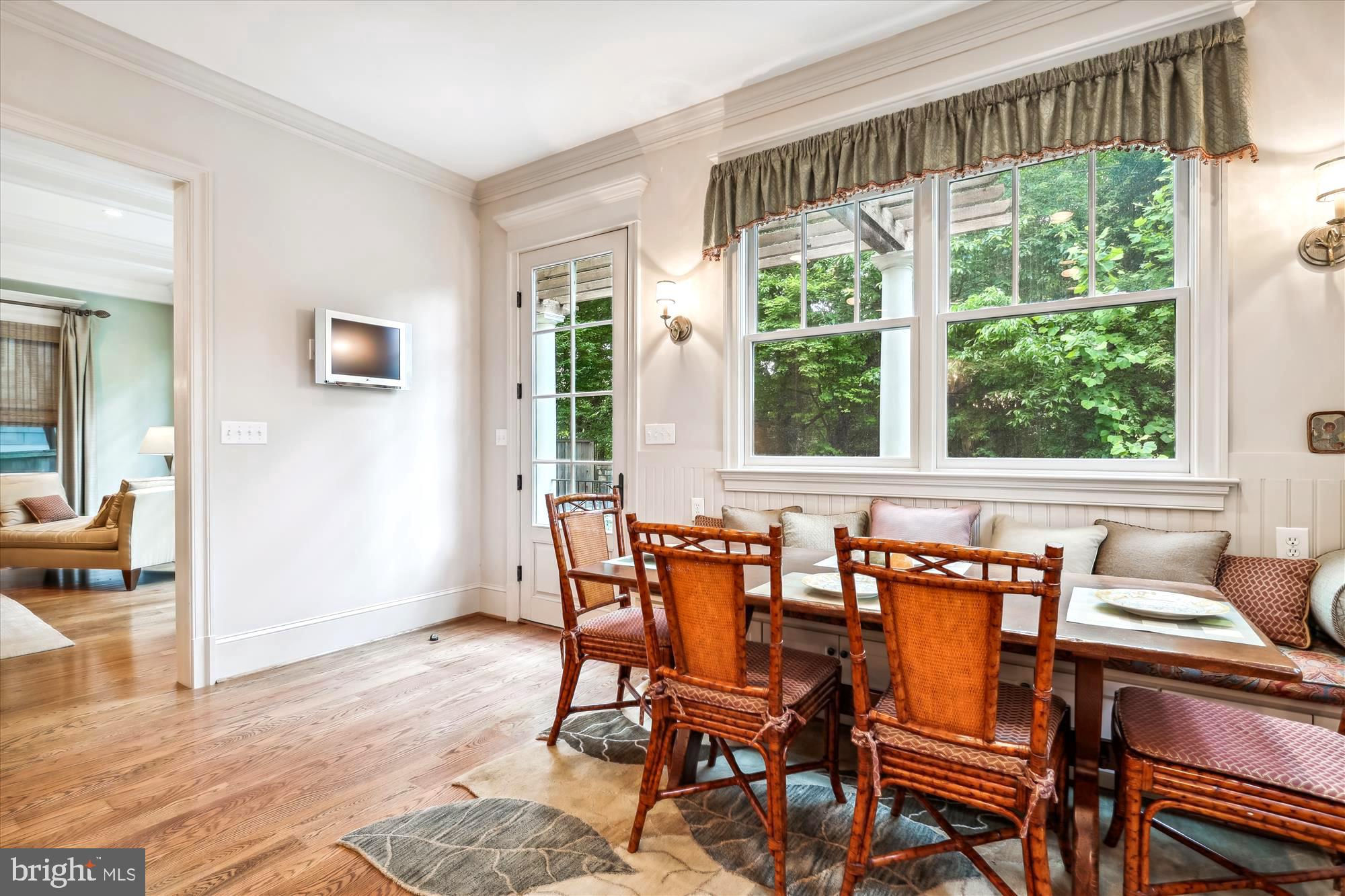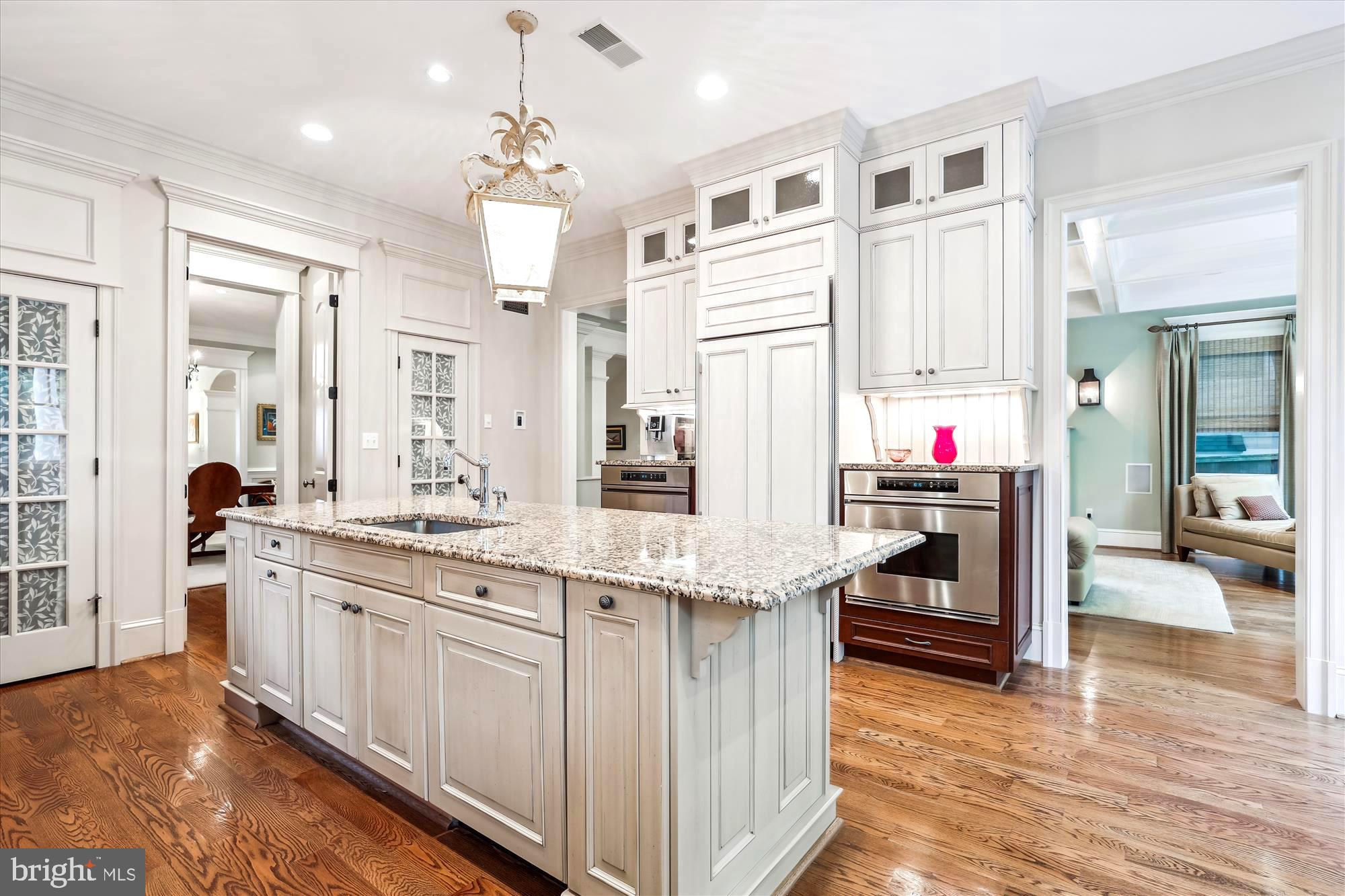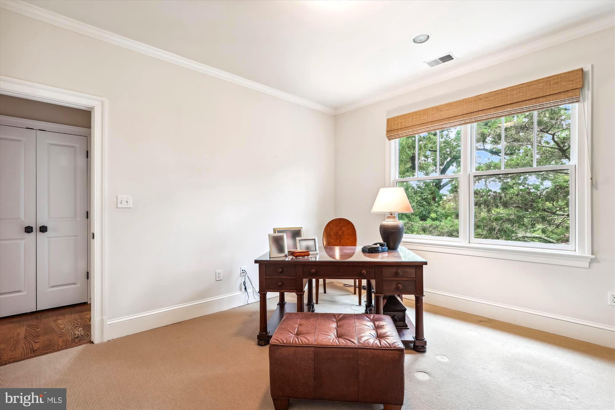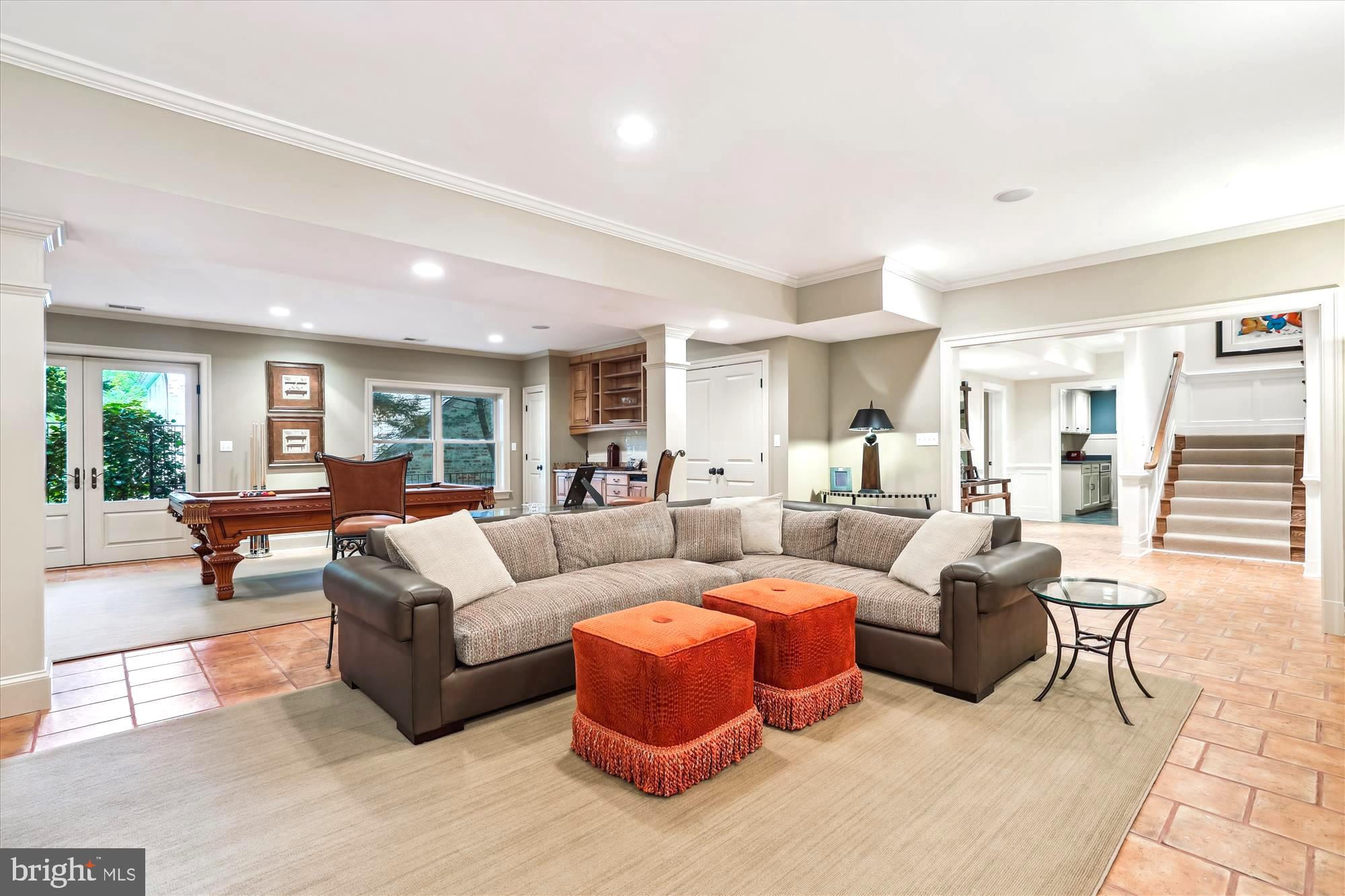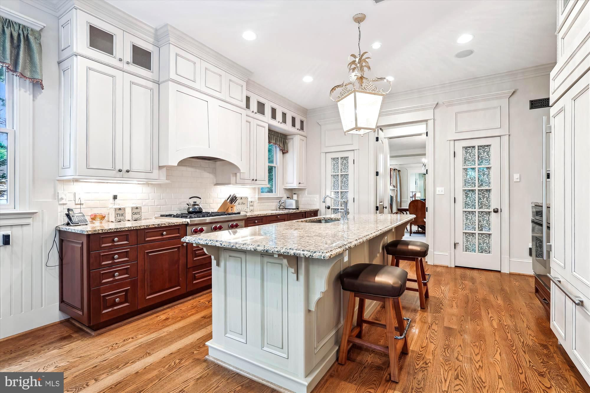 Exquisitely detailed and thoughtfully designed, this custom 7 bedroom, 6 full bath, 2 half bath, 7000+ square foot home by Chryssa Wolfe of Hanlon Design and Build is located on sought after King Place NW, a low traffic street in the Berkley neighborhood. Attention to detail is evident in the exceptional millwork that permeates the entire home, setting a tone of refined sophistication and timeless elegance. The impressive grand foyer invites you in to view the home. Off the foyer is the embassy size dining room, formal living room with gas fireplace and sun-filled library/music room with built-ins and view of the landscaped front. Handsome powder room. The professional chef’s kitchen boasts Wood Mode cabinetry, granite counters, 36” 6 burner Wolf gas range top, two full size Dacor ovens, Sub zero refrigerator & freezer, Bosch dishwasher, Fisher & Paykel one drawer dishwasher, 2 sinks, 2 pantries, large island, and a built-in banquette. French door leads to the covered stone deck with built-in gas grill and al fresco stone cooking area. The amazing family room with coffered ceiling features a gas fireplace, and built-in custom bar with two refrigerated drawers. Custom staircase with wrought iron/wood rails to the second level. It features four bedrooms, all with en suite bathrooms and large closets, including the sweeping primary bedroom with huge custom-fitted dressing room/closet and luxury marble spa-like bath featuring a separate Steamist shower, dual vanity, and soaking tub. The laundry with full Whirlpool washer & dryer, laundry tub and cabinets complete this level. The third level offers a spacious bonus room/second family room /bedroom 2 closets & a tray ceiling, 5th bedroom with closet, full bath, and large exercise room with TV and plenty of storage in the eaves. The finished lower level with unique tile floors features a delightful recreation room with gas fireplace, game room, wet bar with U-line beverage cooler. And Atrium doors that open to the side yard. This level also boasts a half bath, 6th bedroom, full bath, mud room and a fully equipped catering kitchen. The versatility of the lower level makes it perfect for additional entertainment space, or an in-law/au pair suite. The exterior of this magnificent residence offers an inground heated pool with automatic cover that is surrounded by flagstone decking and professionally designed grounds by a landscape architect. Lush year round bloom! No detail has been spared inside or outside. Conveniently located close to all the shops and dining on MacArthur Blvd. and Georgetown. Take nature walks through Battery Kemble Park as well as the Capital Crescent trail. This home and location offer all the “I wants”!