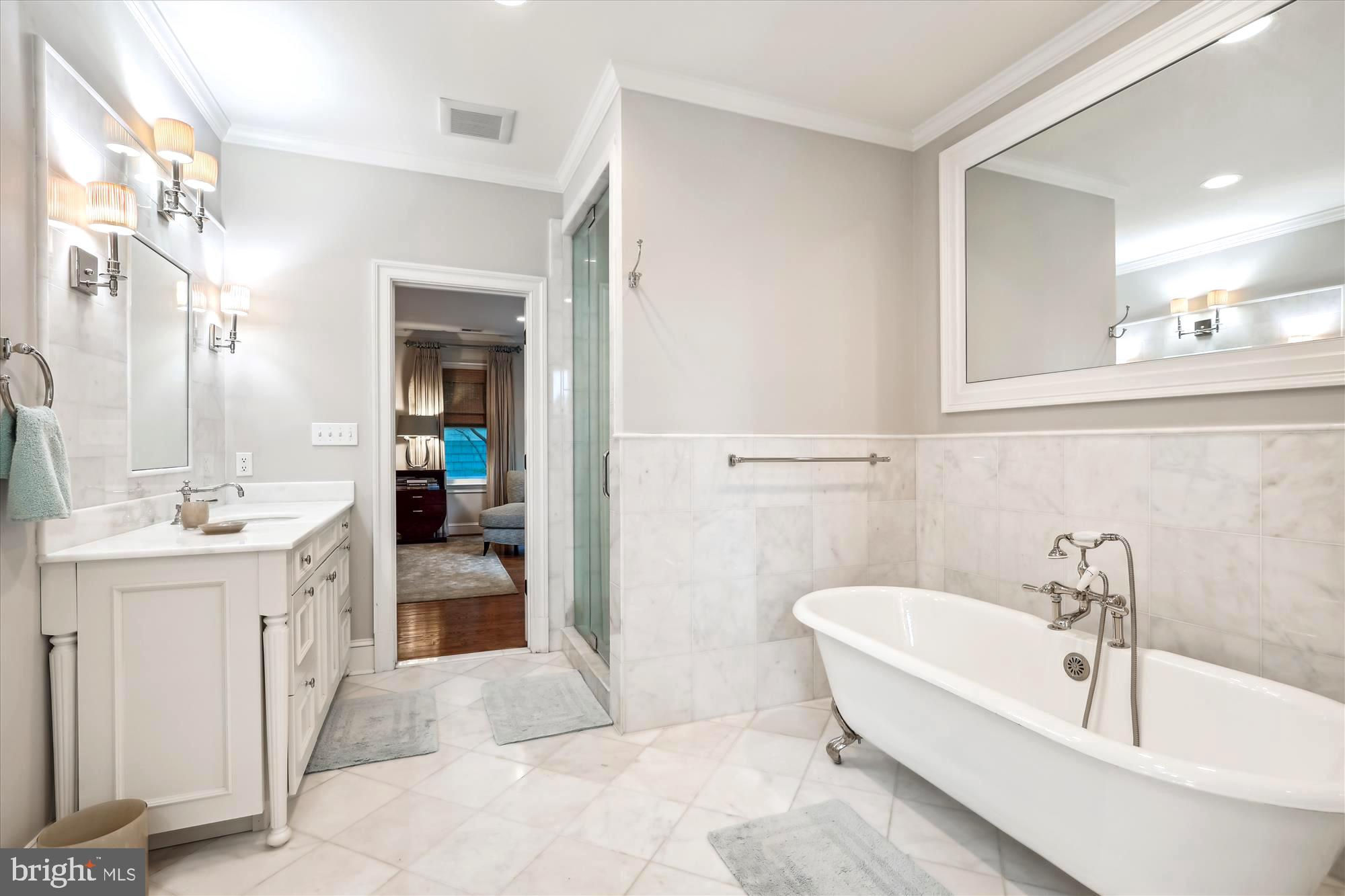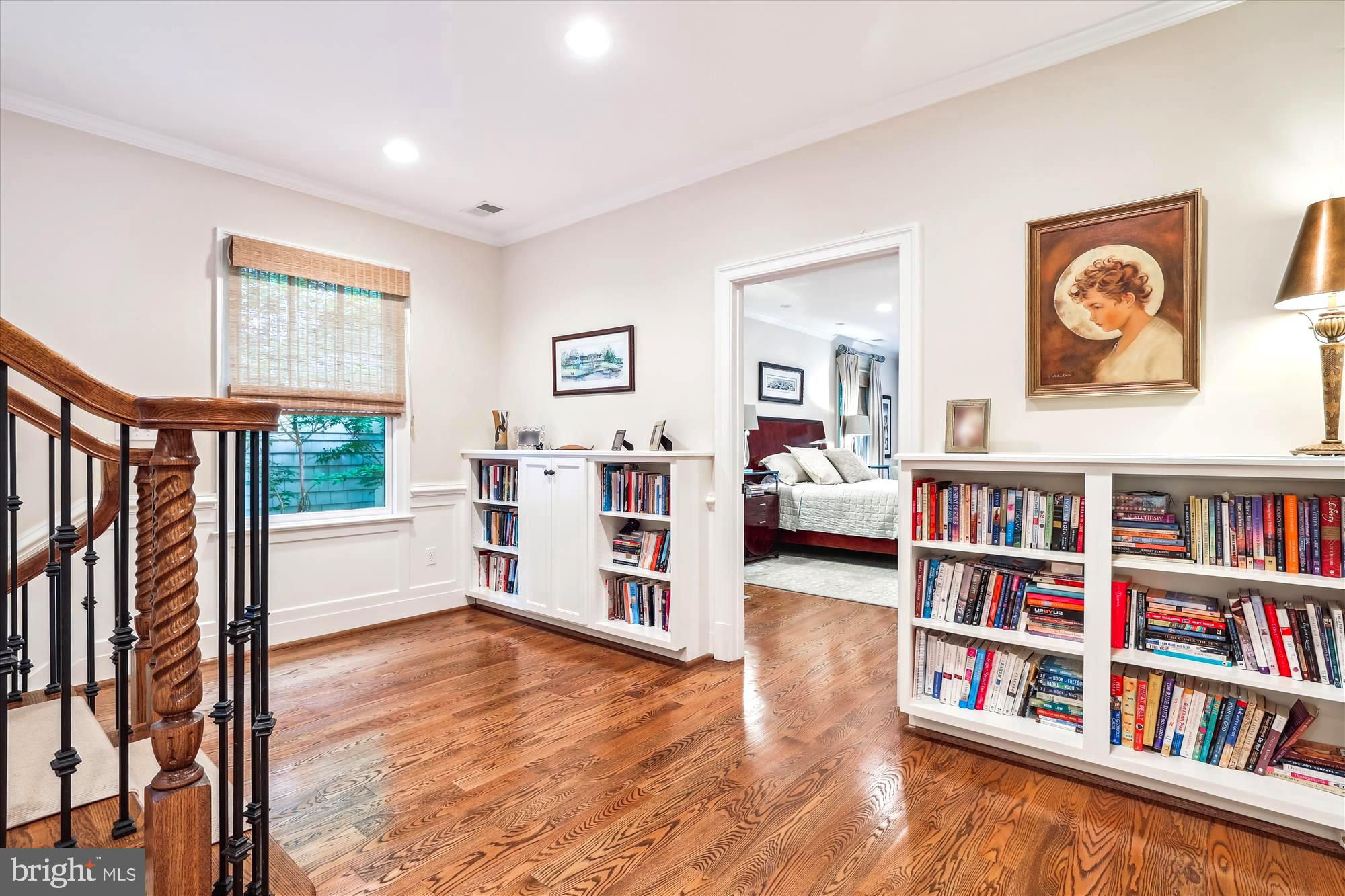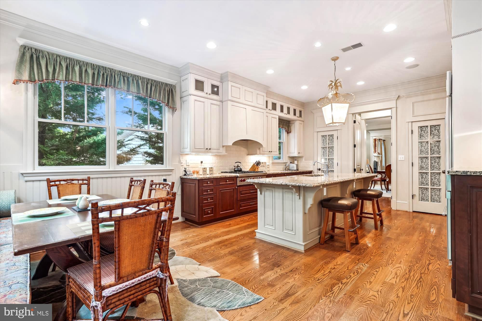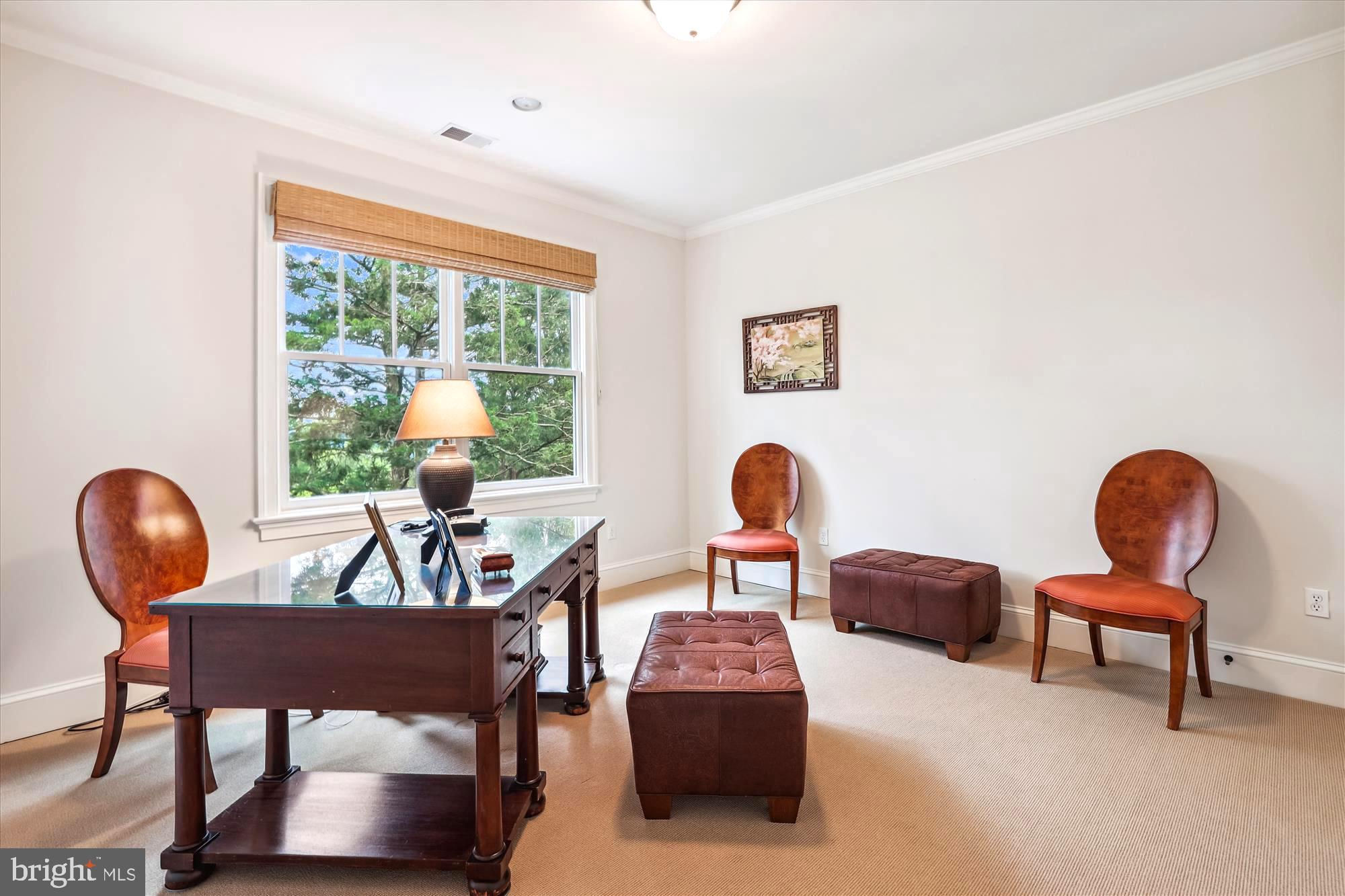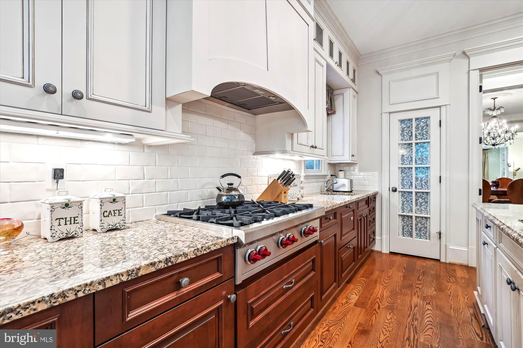 Exquisitely detailed and thoughtfully designed, this custom 7 bedroom, 6 full bath, 2 half bath, 7000+ square foot home by Chryssa Wolfe of Hanlon Design and Build is located on sought after King Place NW, a low traffic street in the Berkley neighborhood. Attention to detail is evident in the exceptional millwork that permeates the entire home, setting a tone of refined sophistication and timeless elegance. The impressive grand foyer invites you in to view the home. Off the foyer is the embassy size dining room, formal living room with gas fireplace and sun-filled library/music room with built-ins and view of the landscaped front. Handsome powder room. The professional chef’s kitchen boasts Wood Mode cabinetry, granite counters, 36” 6 burner Wolf gas range top, two full size Dacor ovens, Sub zero refrigerator & freezer, Bosch dishwasher, Fisher & Paykel one drawer dishwasher, 2 sinks, 2 pantries, large island, and a built-in banquette. French door leads to the covered stone deck with built-in gas grill and al fresco stone cooking area. The amazing family room with coffered ceiling features a gas fireplace, and built-in custom bar with two refrigerated drawers. Custom staircase with wrought iron/wood rails to the second level. It features four bedrooms, all with en suite bathrooms and large closets, including the sweeping primary bedroom with huge custom-fitted dressing room/closet and luxury marble spa-like bath featuring a separate Steamist shower, dual vanity, and soaking tub. The laundry with full Whirlpool washer & dryer, laundry tub and cabinets complete this level. The third level offers a spacious bonus room/second family room /bedroom 2 closets & a tray ceiling, 5th bedroom with closet, full bath, and large exercise room with TV and plenty of storage in the eaves. The finished lower level with unique tile floors features a delightful recreation room with gas fireplace, game room, wet bar with U-line beverage cooler. And Atrium doors that open to the side yard. This level also boasts a half bath, 6th bedroom, full bath, mud room and a fully equipped catering kitchen. The versatility of the lower level makes it perfect for additional entertainment space, or an in-law/au pair suite. The exterior of this magnificent residence offers an inground heated pool with automatic cover that is surrounded by flagstone decking and professionally designed grounds by a landscape architect. Lush year round bloom! No detail has been spared inside or outside. Conveniently located close to all the shops and dining on MacArthur Blvd. and Georgetown. Take nature walks through Battery Kemble Park as well as the Capital Crescent trail. This home and location offer all the “I wants”!