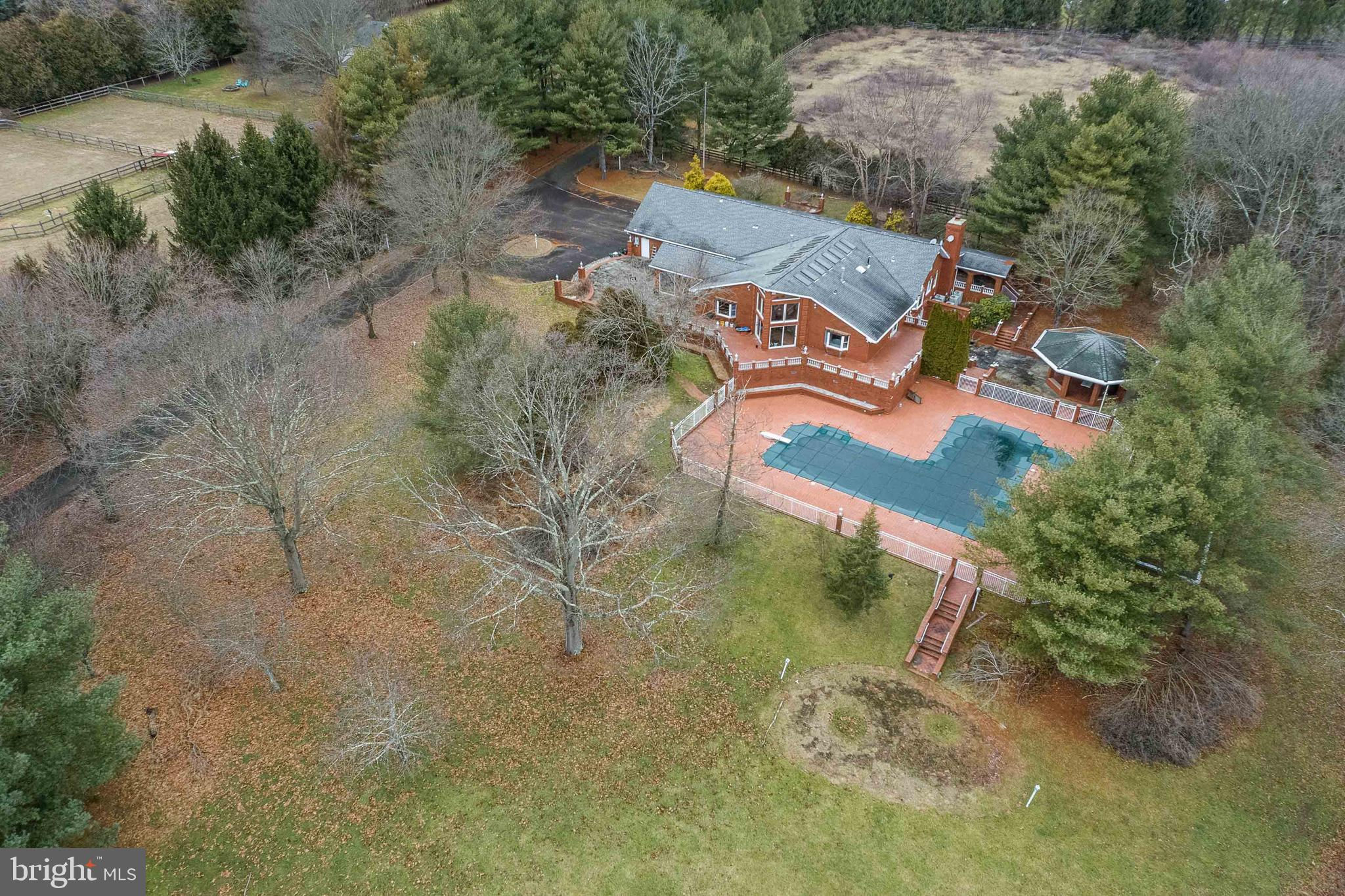 Sprawling 15.8 acre impressive 5 bedroom 3 floor ESTATE with private gated entry features 4sided brick custom home w/6car garage-atrium foyer w/skylights-in law suite with own entrance-etched glass imported doors-cedar ceilings-2 large bonus rooms-Bedrooms feature built-ins -Master has own patio w/4 closets-European open 2 story kitchen is the heart of home w/Miele Subzero+Wolf appliances Huge fireplace+ wall of windows overlooks outdoor amenities-luxurious in-ground 65x35 gunite heated salt pool/spa+pool house-for entertaining-Own orchard-Plus for the equestrian 12 stall barn-2 levels-w/garage-paddocks run in sheds provide perfect haven for horses-Additionally a substantial 10,000sq ft agricultural building adds to functionality of property.Unique equestrian property.