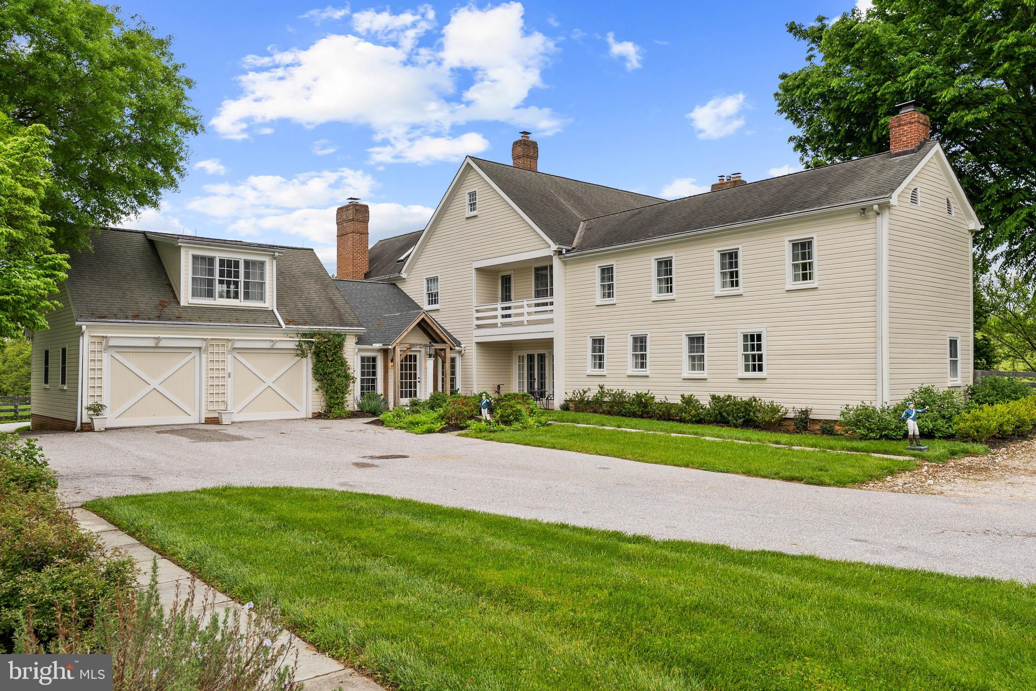 Located on one of northern Baltimore County’s most desirable lanes, welcome to Denwood, a magnificently renovated 1800s farmhouse on over 18 acres that has been thoughtfully expanded for today’s modern living. Here, one cannot help but feel a connection with the land, with nature. Handsomely understated at first approach, once inside the home opens up and you are immediately drawn to the bucolic vistas seen through the many window walls and French doors, looking out to the stocked pond, old growth trees, and rolling hills beyond. The gourmet kitchen with additional butler’s kitchen space is expansive yet cozy, featuring rustic wood beams, a wood burning fireplace, a family room and dining area. The screened in porch is sure to be a favorite dining option in the warmer months. When entertaining, an oversized dining room that can accommodate even the largest of dinner parties leads through the library with built-ins to the den, the original heart of the home. Undoubtedly the coziest room ever constructed, here the wood beamed ceiling meets log cabin walls with a floor to ceiling fieldstone fireplace. There may be no better place to watch a movie or game, or simply enjoy a roaring fire on a cold winter day. Heading upstairs (or take the elevator), the primary suite has recently been reimagined with a sumptuous dressing room and spa like bathroom. There are four additional bedrooms on this level, including a self-contained apartment above the garage, complete with a bathroom, full kitchen, and living space. For the outdoor, health, or car enthusiasts, there are options for everyone. A recently constructed pilates studio is ready to go or can easily be converted to the perfect home gym. Across the 18+ acres one will find walking trails, hiking along the Western Run, planted vegetable beds, and equestrian paddocks. Additional garage space can house 3 cars (bringing a total of 5 spaces) for the car enthusiast or just those who need more storage. The summer barn would make for a marvelous artist studio or game room. While the possibilities here are endless, exceptional properties such as Denwood do not come available often. Here, in the heart of horse and hound country, you may just forget that while being a world away, you are still just minutes to Wegmans, Hunt Valley Towne Centre, and everyplace you need to be.
