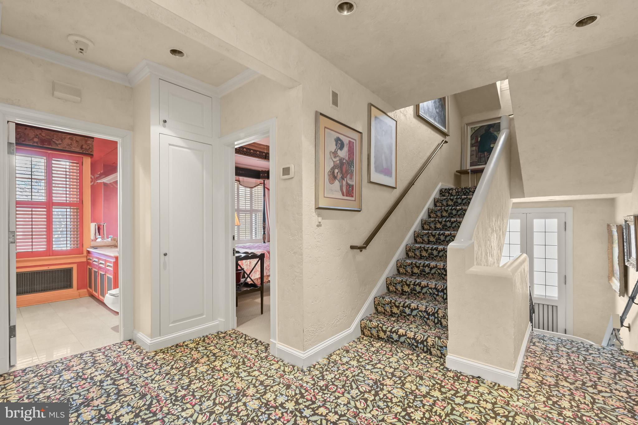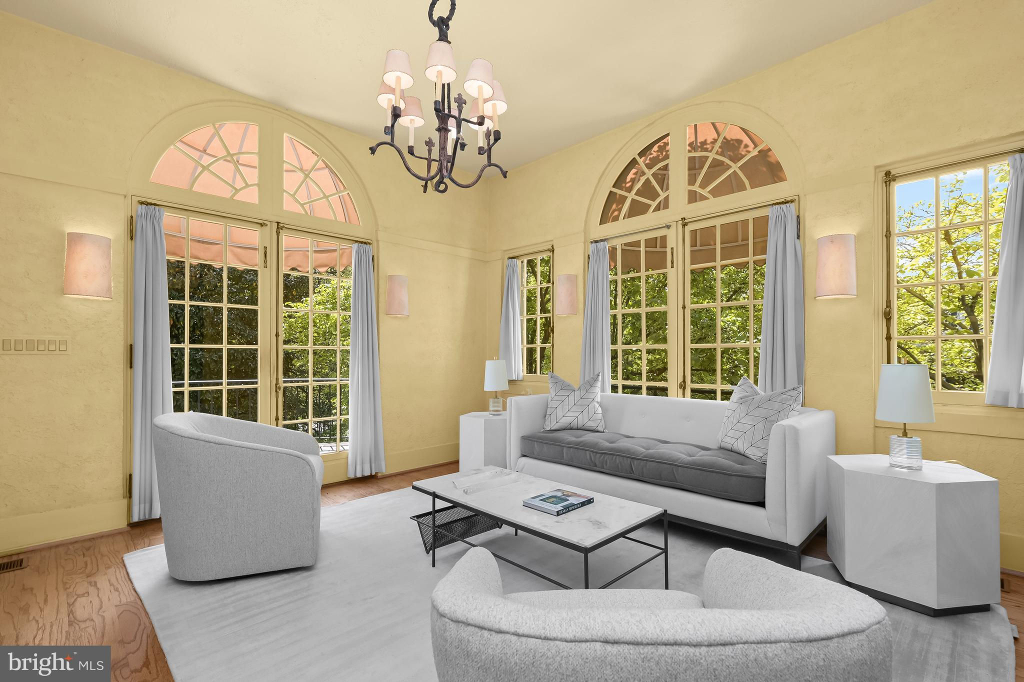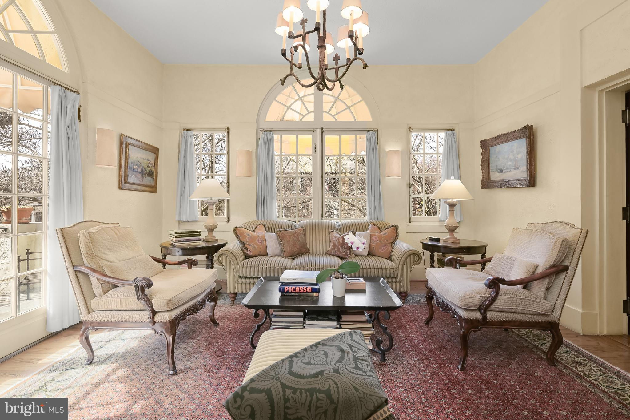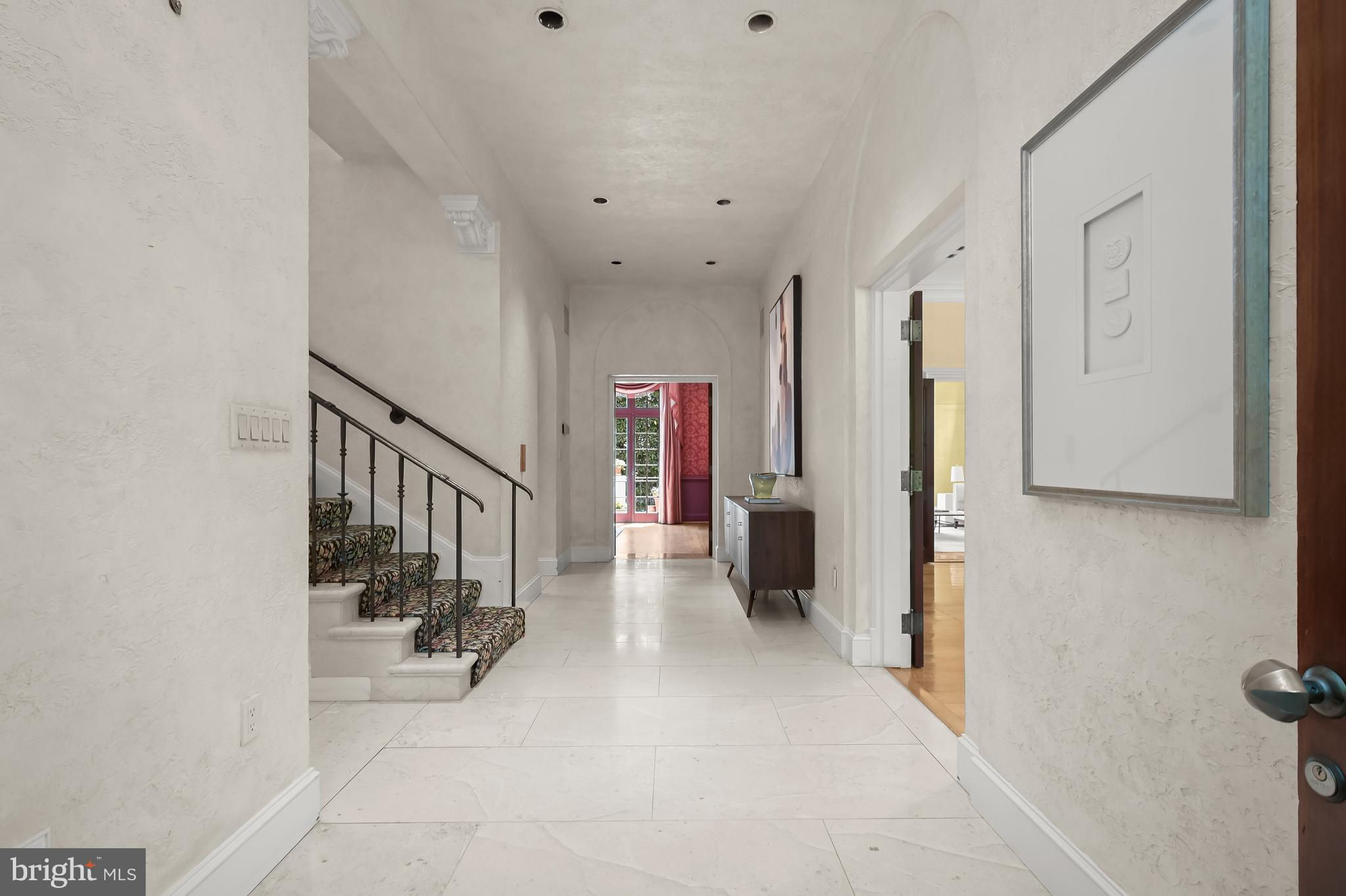 PUBLIC OPEN HOUSE! SUNDAY OCT 5TH, 2-4PM** Nestled in the prestigious Kalorama neighborhood, 2330 Tracy Pl NW is a breathtaking Mediterranean Revival residence that epitomizes elegance, grandeur, and architectural refinement. Built in 1923, this stately four-level residence showcases the craftsmanship of a bygone era while offering modern comforts for refined living. The home’s hand-troweled stucco and stone façade, quoined corners, arched entryways, and terracotta roof tiles create a striking first impression. Its handsome wood-paneled doors lead into the vestibule, where intricate ironwork and arched glass French doors open to a magnificent Entrance Hall wrapped in hand-troweled stucco walls and gleaming marble floors—an exquisite introduction to the home’s unparalleled classic elegance. Designed for both grand entertaining and intimate gatherings, the main level offers beautifully proportioned formal rooms. The elegant living room boasts soaring ceilings, an exquisite stone fireplace, and decorative millwork, all illuminated by large windows and a stately crystal chandelier. A sunlit sitting area, framed by arched Palladian windows and French doors, opens to a seating area on the balcony overlooking the rear yard, offering a view of the verdant lawn, mature trees and manicured plantings. The formal dining room exudes timeless sophistication. Floor-to-ceiling French doors invite the outdoors into every dining experience by giving guests direct access to an extensive balcony overlooking the rear yard and courtyard beneath its arched loggias below. A second ornate stone fireplace anchors the room, creating warmth and a perfect setting for unforgettable evenings. The gourmet kitchen is beautifully appointed with professional-grade Thermador, Sub-Zero, and Viking appliances, glass-front cabinetry, and a wine refrigerator. A butler’s pantry off of the formal dining room provides additional preparation space, ensuring effortless entertaining. A powder room and a coat closet are discreetly positioned nearby, preserving the main level’s refined aesthetic without compromising convenience. The grand staircase leads to the upper living quarters, where the owner’s suite spans nearly the entire second level. This suite includes an expansive dressing room, a large walk-in closet, and a spa-like en-suite bathroom complete with a jetted soaking tub, dual vanities, bidet and standing shower with seating. The bedroom boasts a magnificent fireplace and opens to a spacious sitting room. An additional bedroom and full bathroom complete this second level. The next level up offers an additional well-proportioned bedroom, a den or sitting room, two full bathrooms, and built-in storage, providing privacy and comfort for family and guests alike. The lower level features an office, a full bath, a spacious laundry room, ample storage, and a two-car garage. Surrounded by embassies, ambassadorial residences, and some of the city’s most architecturally significant homes, 2330 Tracy Pl NW offers a distinguished setting just moments from Dupont Circle, Woodley Park, Georgetown, and Rock Creek Park. This exceptional home is a testament to Mediterranean Revival design, where historic elegance meets modern refinement.