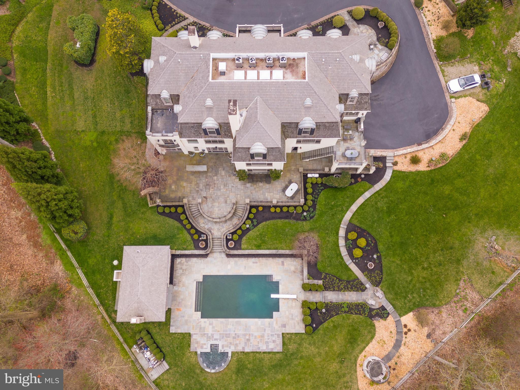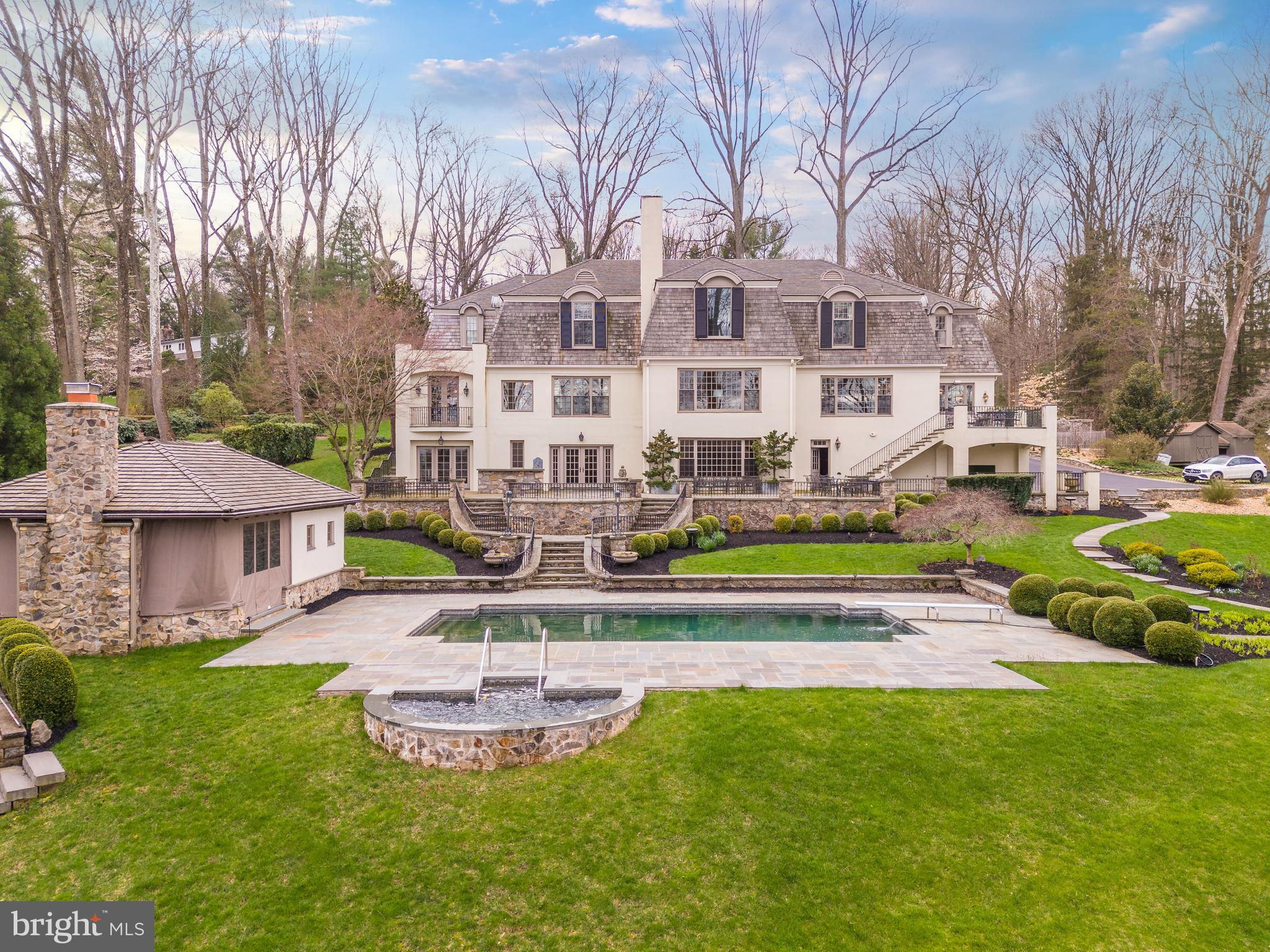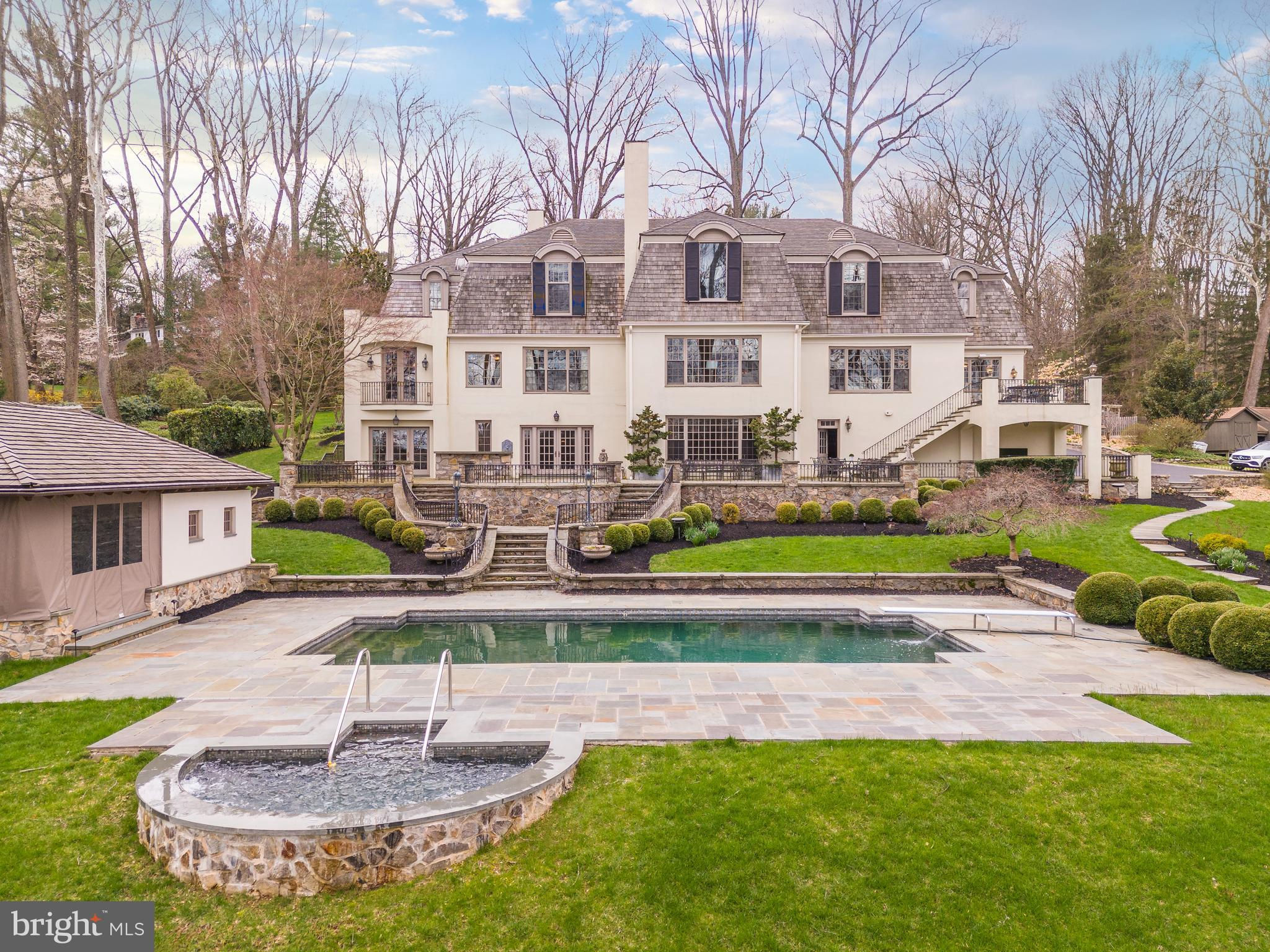 Welcome to 24 Lakewood Drive, a stunning 7 Bedroom, 6 Full Bath, 3 Half Bath, French Country residence, offering over 12,000 square feet of pristine living space. This private estate nestled on 3.4 acres with lush grounds and meticulous landscaping makes a grand first impression as you enter through the iron gate and up the circular drive with center fountain. Enter into the 2 story Foyer with marble floor, personal elevator, beautiful curved staircase w/ custom iron railings, and a powder room w/ custom landscape mural. The adjacent light-filled formal Living Room features a fireplace w/ intricate wood mantle, custom millwork shelving, hidden wet bar, and floor to ceiling windows that offer impeccable views of the Springton Reservoir. Hardwood floors continue in the formal Dining Room with Venetian plaster walls, crown molding, and crystal chandelier. The gourmet Kitchen with custom coffered ceilings & access to the flagstone patio, boasts granite countertops and top of the line appliances including a double oven, 6-burner Wolf range, two sub zero refrigerators, two Miele dishwashers, and a Sharp microwave drawer in the island. There’s also a butler’s pantry, mudroom w/ built-ins, and convenient Half Bath. The adjacent Family Room & Dining area with sliding doors to the patio create a perfect place to entertain family and friends. A handsome office/study with dark wood paneling, extensive built-ins, and gas fireplace offers a quiet space to work or read. Make your way to the incredible main floor Primary Suite, fully renovated in 2015, with a painted wood floor Foyer that sets the tone for the sophisticated touches found throughout. A fireplace in the Bedroom, “His and Her” bathrooms, each with marble floors, glass showers, & custom cabinetry, an expansive dressing room with “his and her” islands & custom closets, a Juliet balcony, and separate HVAC, make this space the perfect place to start and end your days. Head up the staircase to the oversized landing overlooking the living room, with skylights for an abundance of natural light. The second level offers 6 Bedrooms, 3 Full Baths, and a bonus storage room. Head down to the impressive lower level, designed with entertaining in mind, to find a bar area w/ wine cellar, den, full kitchen, game room w/ beamed ceiling & half bath, exercise room with sauna/steam room, full bath w/ shower, and outside access to the sprawling slate patio. The back yard with multiple outdoor spaces, in-ground pool, hot tub, and pool house w/ stone fireplace, kitchen, & half bath, is truly your own private oasis. No detail has been overlooked in this luxurious home once owned by Phillie’s legend, Mike Schmidt. Just 15 minutes to the airport & downtown, and close to all that Media has to offer, this home is an absolute treat for even the most discerning buyer.