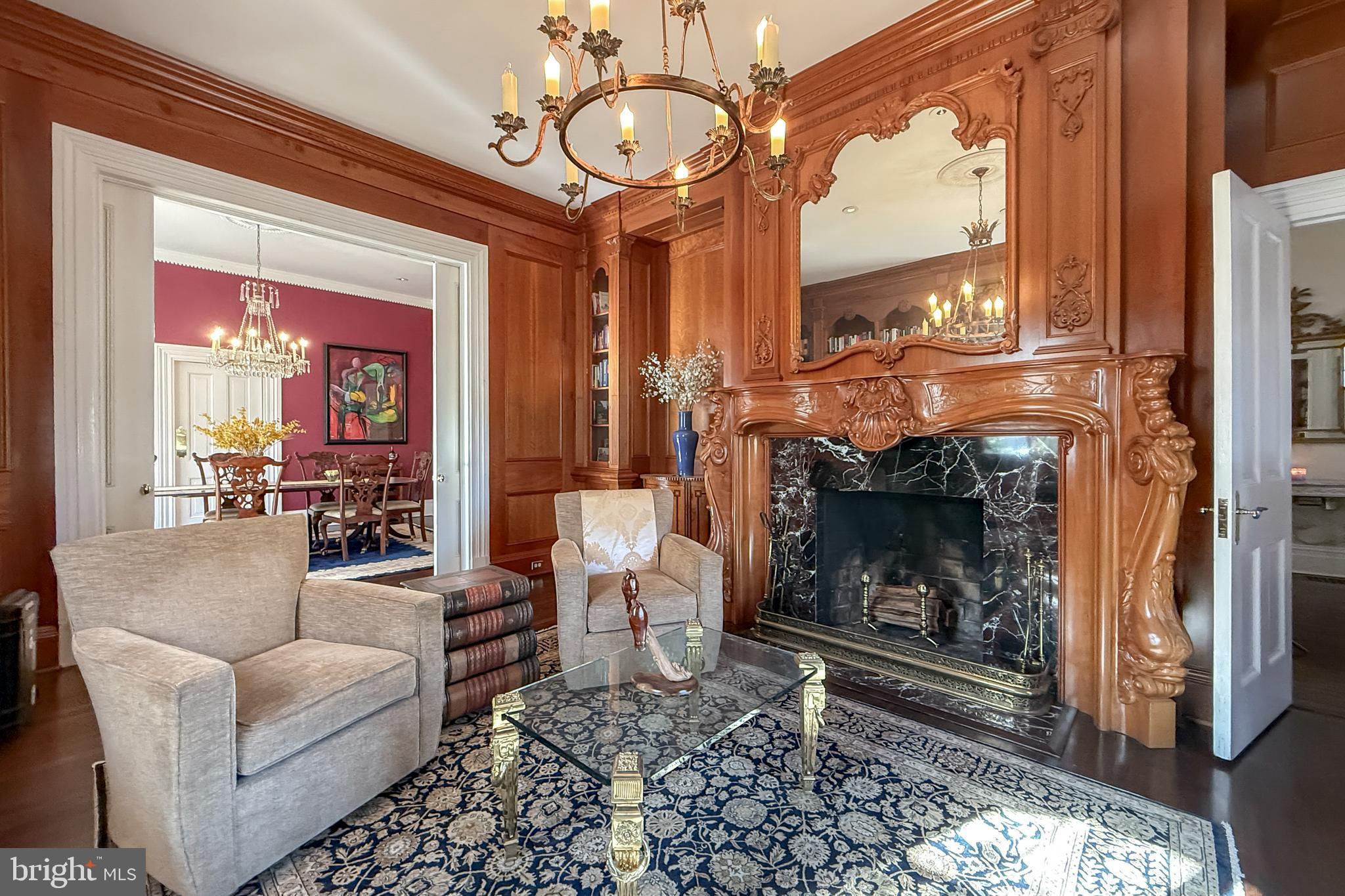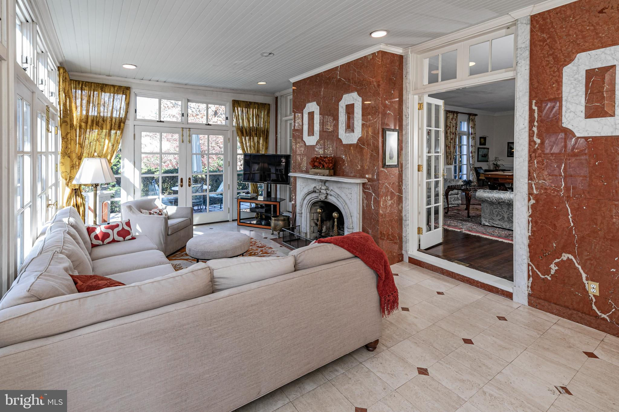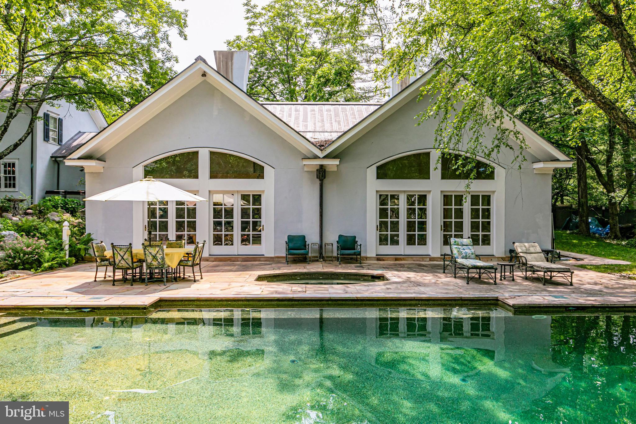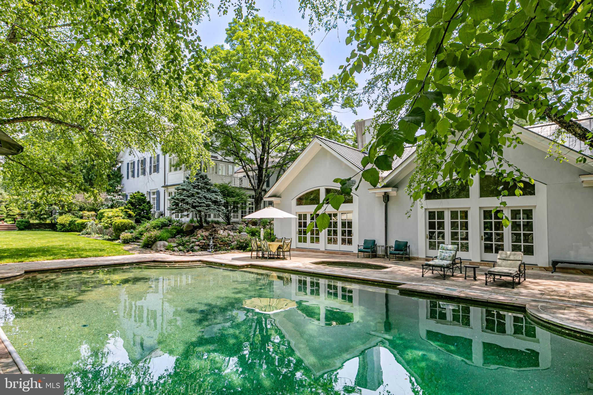 On a corner lot in the heart of the famous Western Section, a mere half-mile from bustling downtown and Princeton University's world-class campus, astonishing artistry and a fascinating history combine for a home like no other. As refined as it appears from the courtyard entry, it only gets more impressive as you continue through the array of rooms discovering storied mantelpieces, carved woodwork and imported fixtures along the way. The deep grounds also never fail to surprise and delight all who are lucky enough to spend a day relaxing by the Roman-style pool or dining on the stone terrace. The lawn and formal garden have even hosted tented celebrations for hundreds with ease. The 1840 house welcomes you into the foyer, where a mural's softly colored tree branches reach toward an unusually high ceiling. The living room is large enough for a combination of seating areas or even billiards, as the current set-up shows. Pocket doors allow a view of the library's elaborately detailed woodwork while seated in the classically styled dining room. Plenty of sunshine and radiant heat keep the marble-clad family room from ever feeling chilly. New quartz countertops freshen up the crisp white kitchen with a wealth of storage around every turn. A breezeway connects the three-car garage and leads to a pool house like no other, where glass and crystal creations custom-made in Paris by the artisans of Lalique conjure a magical underwater fantasy world. Carved sea creatures whimsically watch over the gathering space served by a full kitchen, wine cellar and bathrooms worthy of Poseidon himself! Above, a playroom/gym provides plenty of space for healthy indoor recreation. The upper levels of the main house hold seven bedrooms served by five baths. The largest and airiest of those bedrooms radiate from the light-filled landing, along with an office beyond fanlight-topped pocket doors. The main suite has it all: dressing room, fireplace, marble bath, sunroom and a deck overlooking a trickling water feature and stunning trees that put on an autumnal show. This is your chance to leave your mark on one of the Western Section's finest showplaces.