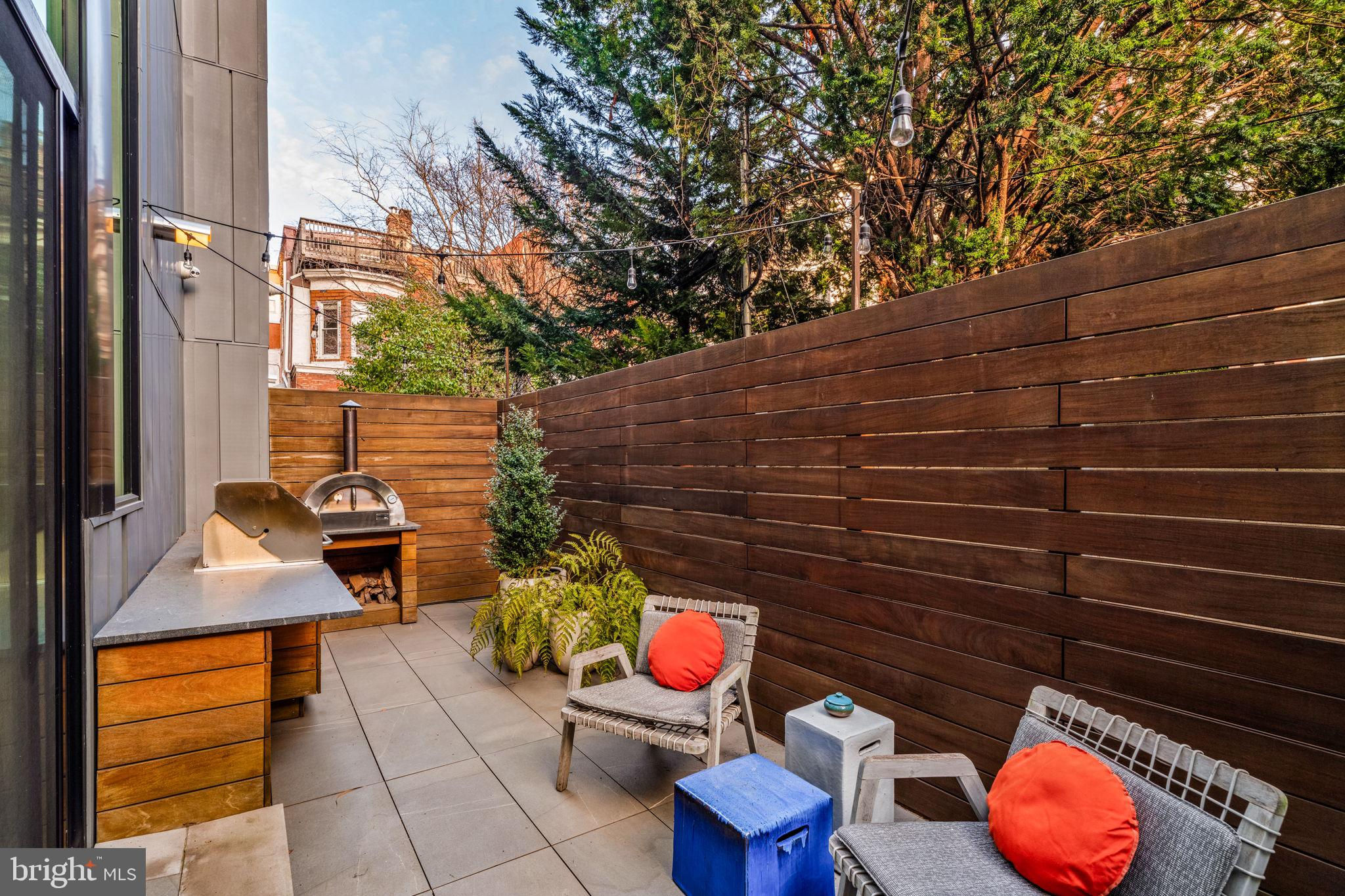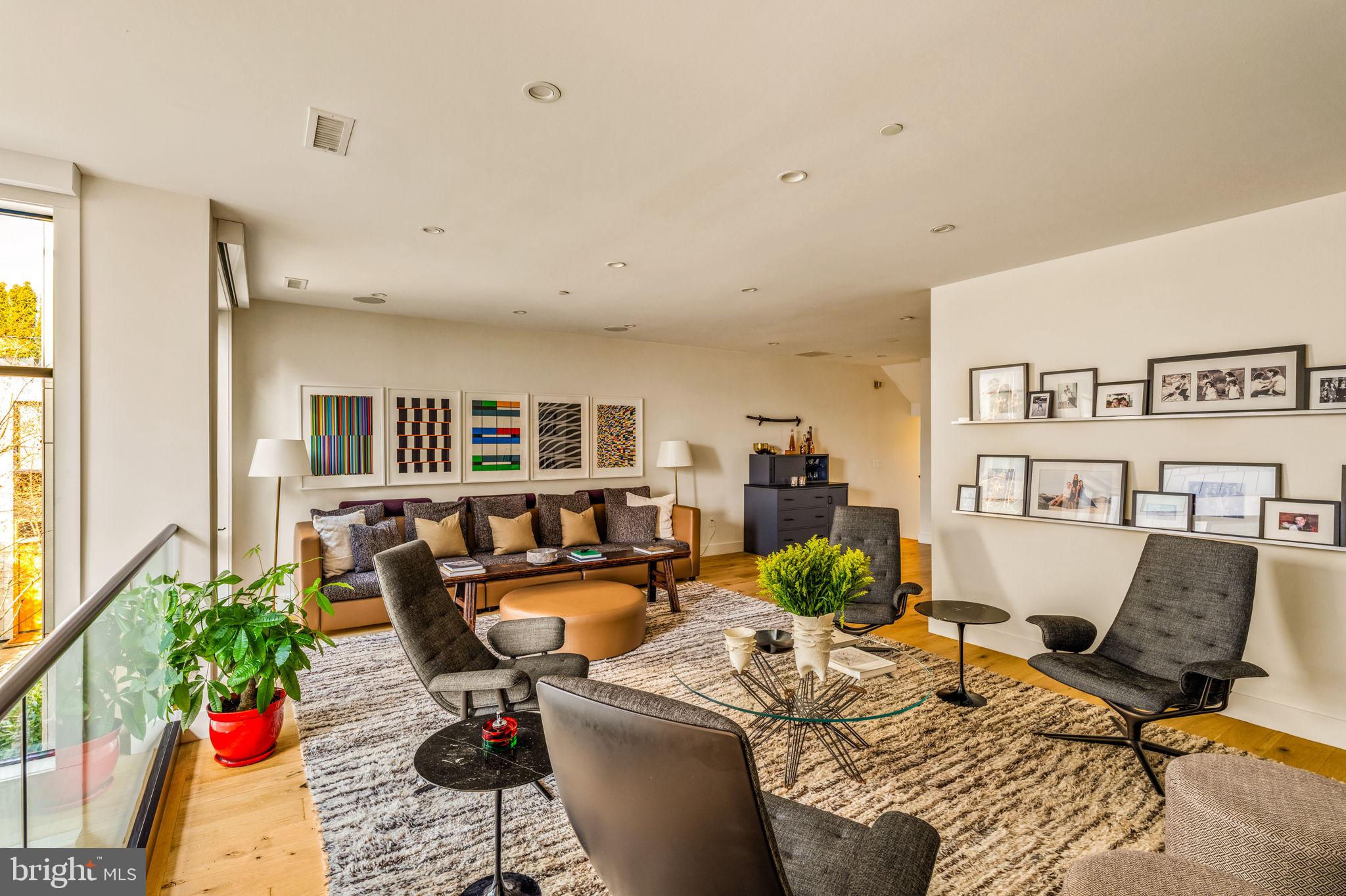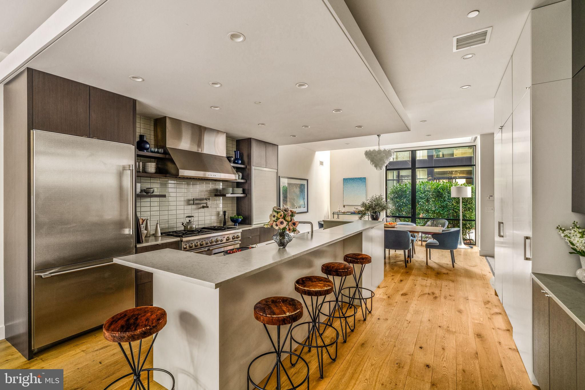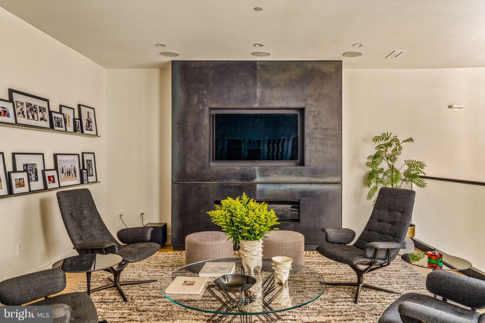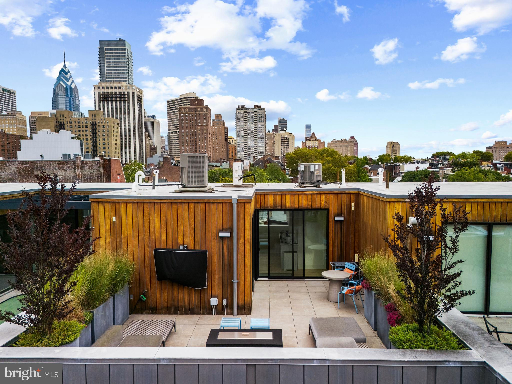 Sophisticated Fitler Square Townhouse with Elevator, Garage & Roof Terrace Tucked within a private, landscaped courtyard, this custom-designed, 25-foot-wide townhouse spans more than 5,000 square feet across five levels of refined living. With four bedrooms, four full baths, two half baths, an elevator serving all floors, and 2-car garage parking, the home combines scale, elegance, and ease in one of Philadelphia’s most desirable neighborhoods. The entry level opens to a welcoming foyer that leads into a light-filled living, dining, and kitchen space, designed for both daily comfort and entertaining. Anchored by an oversized island, the kitchen showcases quartz counters, custom cabinetry, a walk-in pantry with coffee bar, and premium appliances. The dining area easily accommodates large gatherings, while the living room connects through glass sliders to a private patio with outdoor kitchen—complete with built-in grill and wood-burning pizza oven—for effortless indoor/outdoor living. The second level offers an expansive family room with a sleek media wall and gas fireplace, along with a guest suite featuring an en-suite bath. The third level is dedicated to the primary suite, with a gracious bedroom, custom walk-in wardrobe, and a spa-inspired bath with soaking tub, double marble vanity, glass shower, and heated tile floors. The fourth floor is defined by a dramatic double-height lounge, flanked by two additional bedroom suites and a full laundry room. The fifth level is designed for entertaining, featuring a kitchenette with refrigeration, ice maker, and sink, plus glass doors that open to a skyline-view roof terrace with fire pit and powder room. The lower level provides direct garage access, a mudroom with built-ins, a large storage/flex space, and abundant closet storage. Additional highlights include two-zone HVAC, tax abatement, and HOA services that cover landscaping, snow removal, a heated driveway, private trash collection twice weekly, and on-site property management. Ideally located in the heart of Fitler Square, the home is steps from beloved neighborhood dining (Ambrosia, Sally, Trattoria Carina), cafés (Rabbit, Good Karma, Bacchus), and the green spaces of Fitler Square Park and Schuylkill River Park with its trails, dog runs, and sport courts. It offers quick access to Penn, CHOP, Drexel, 30th Street Station, the airport, and is within the Greenfield School catchment.