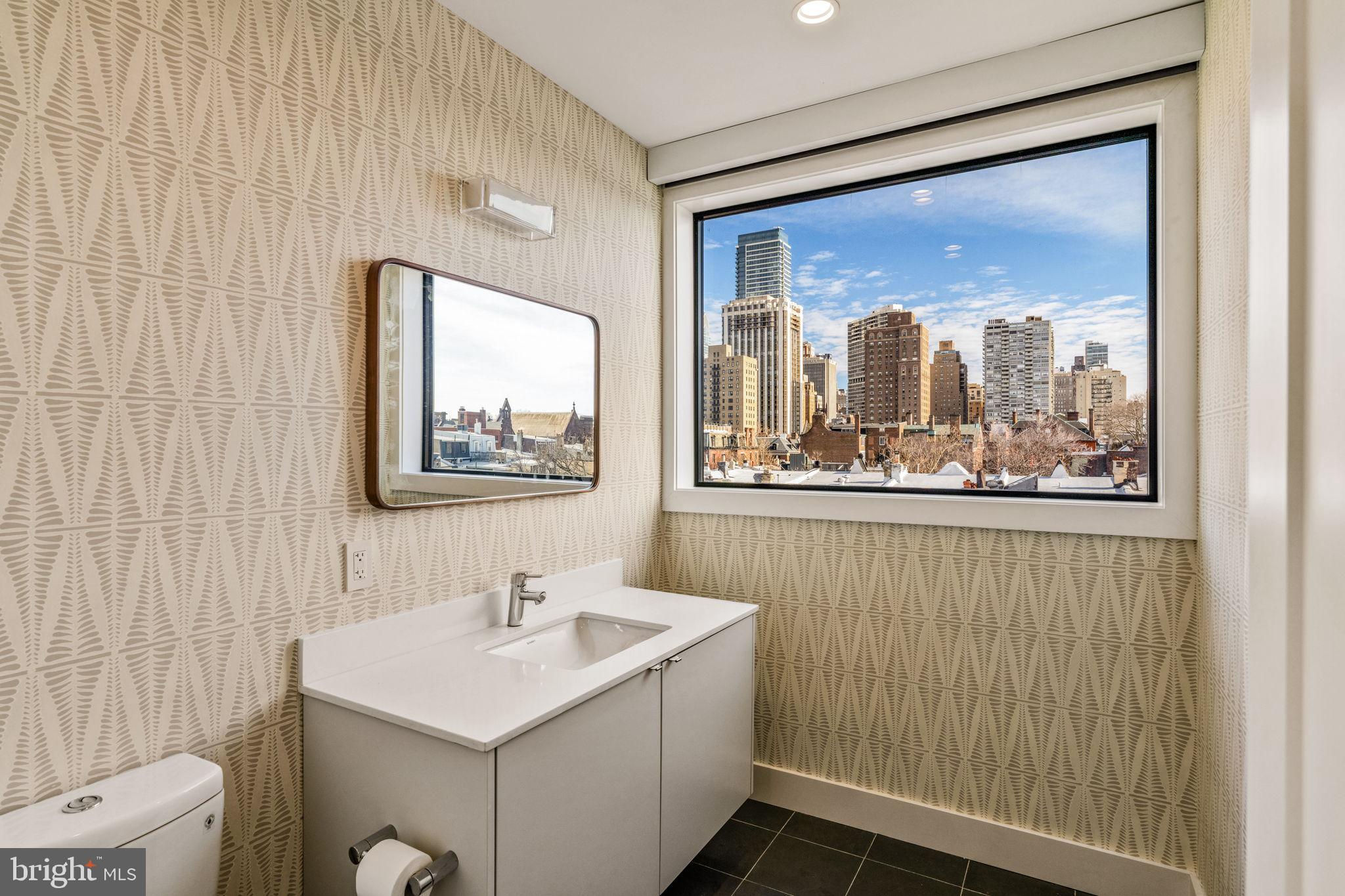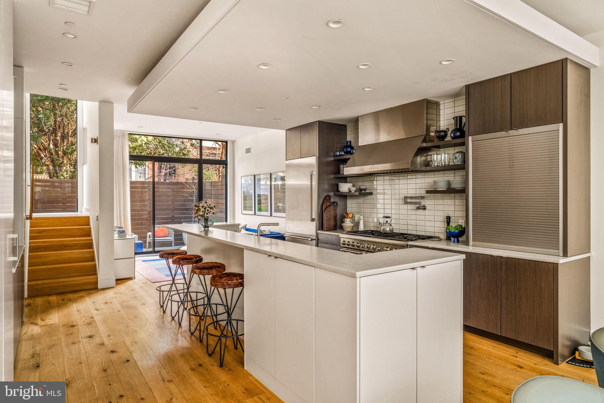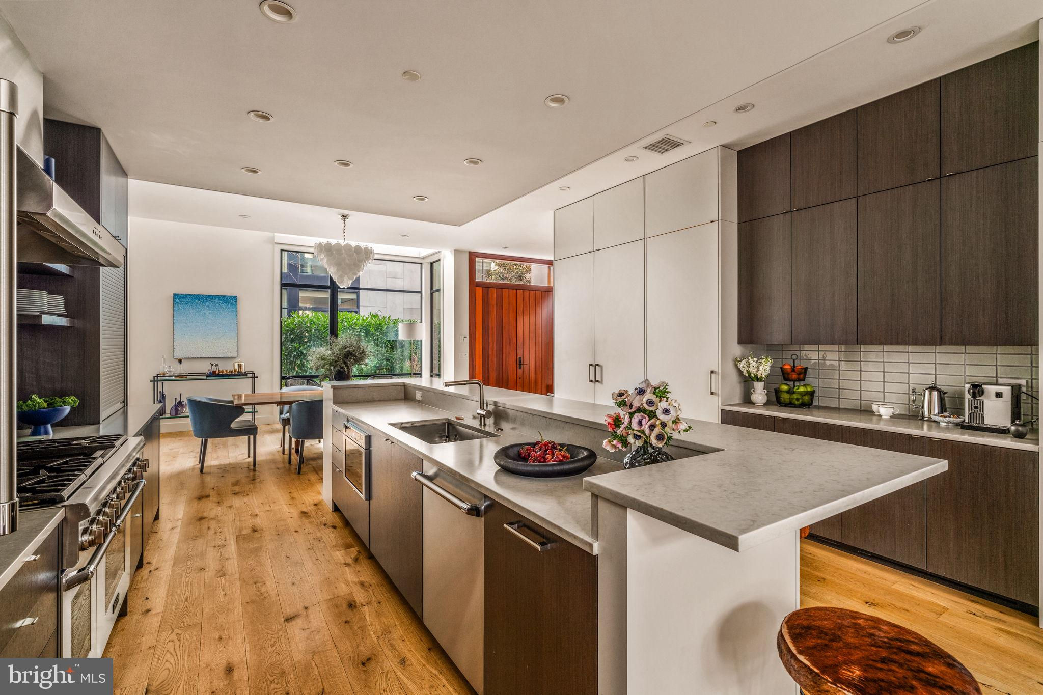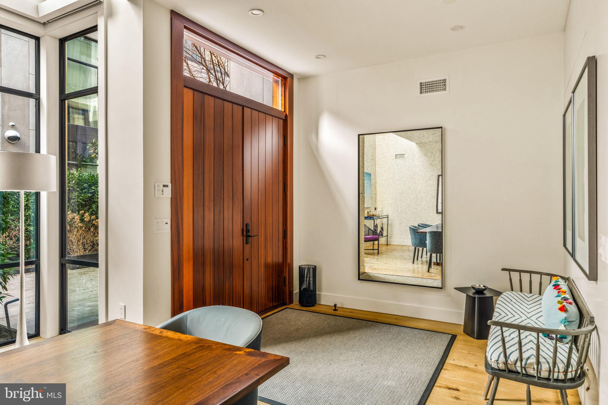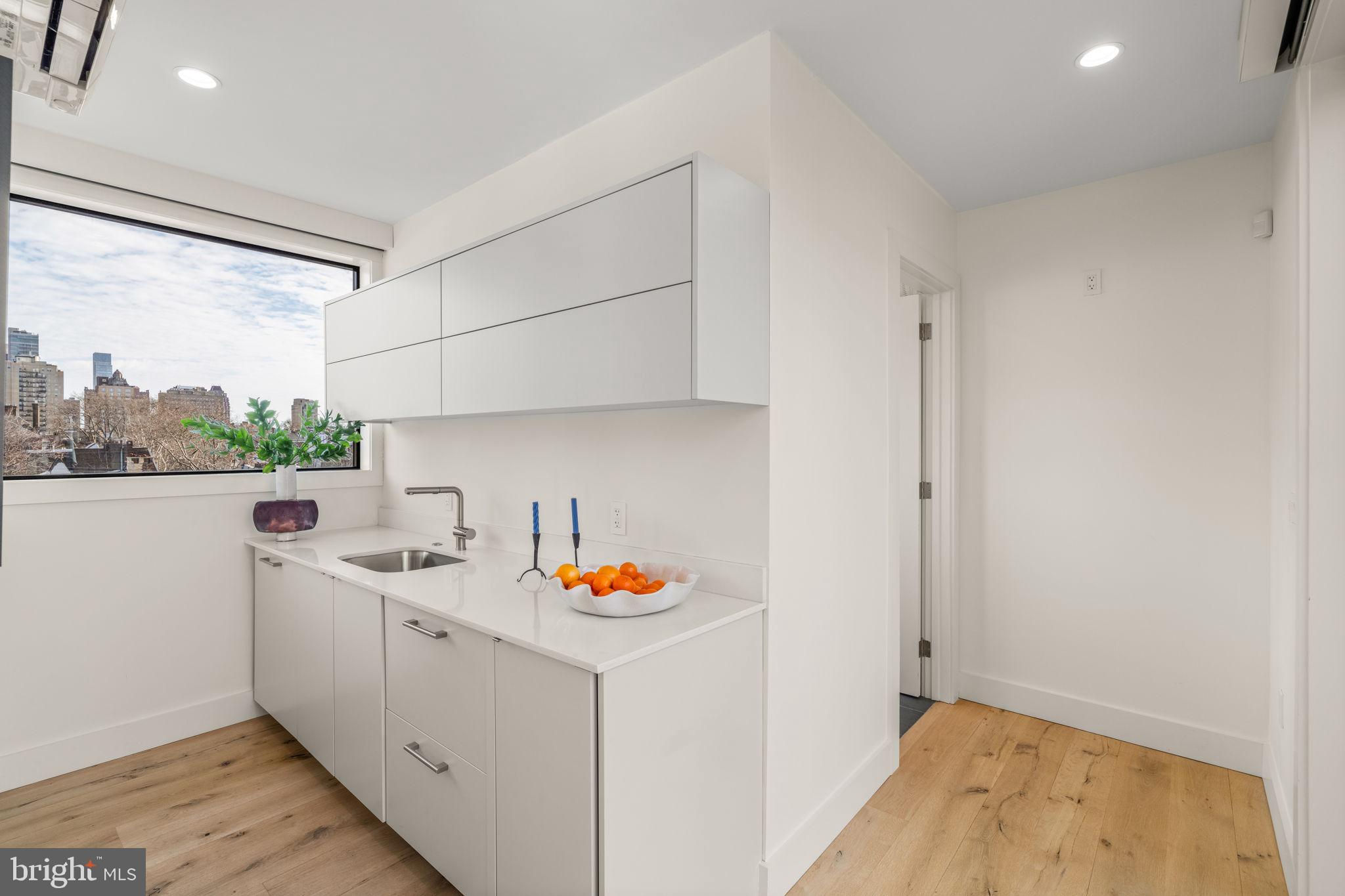 Sophisticated Fitler Square Townhouse with Elevator, Garage & Roof Terrace Tucked within a private, landscaped courtyard, this custom-designed, 25-foot-wide townhouse spans more than 5,000 square feet across five levels of refined living. With four bedrooms, four full baths, two half baths, an elevator serving all floors, and 2-car garage parking, the home combines scale, elegance, and ease in one of Philadelphia’s most desirable neighborhoods. The entry level opens to a welcoming foyer that leads into a light-filled living, dining, and kitchen space, designed for both daily comfort and entertaining. Anchored by an oversized island, the kitchen showcases quartz counters, custom cabinetry, a walk-in pantry with coffee bar, and premium appliances. The dining area easily accommodates large gatherings, while the living room connects through glass sliders to a private patio with outdoor kitchen—complete with built-in grill and wood-burning pizza oven—for effortless indoor/outdoor living. The second level offers an expansive family room with a sleek media wall and gas fireplace, along with a guest suite featuring an en-suite bath. The third level is dedicated to the primary suite, with a gracious bedroom, custom walk-in wardrobe, and a spa-inspired bath with soaking tub, double marble vanity, glass shower, and heated tile floors. The fourth floor is defined by a dramatic double-height lounge, flanked by two additional bedroom suites and a full laundry room. The fifth level is designed for entertaining, featuring a kitchenette with refrigeration, ice maker, and sink, plus glass doors that open to a skyline-view roof terrace with fire pit and powder room. The lower level provides direct garage access, a mudroom with built-ins, a large storage/flex space, and abundant closet storage. Additional highlights include two-zone HVAC, tax abatement, and HOA services that cover landscaping, snow removal, a heated driveway, private trash collection twice weekly, and on-site property management. Ideally located in the heart of Fitler Square, the home is steps from beloved neighborhood dining (Ambrosia, Sally, Trattoria Carina), cafés (Rabbit, Good Karma, Bacchus), and the green spaces of Fitler Square Park and Schuylkill River Park with its trails, dog runs, and sport courts. It offers quick access to Penn, CHOP, Drexel, 30th Street Station, the airport, and is within the Greenfield School catchment.