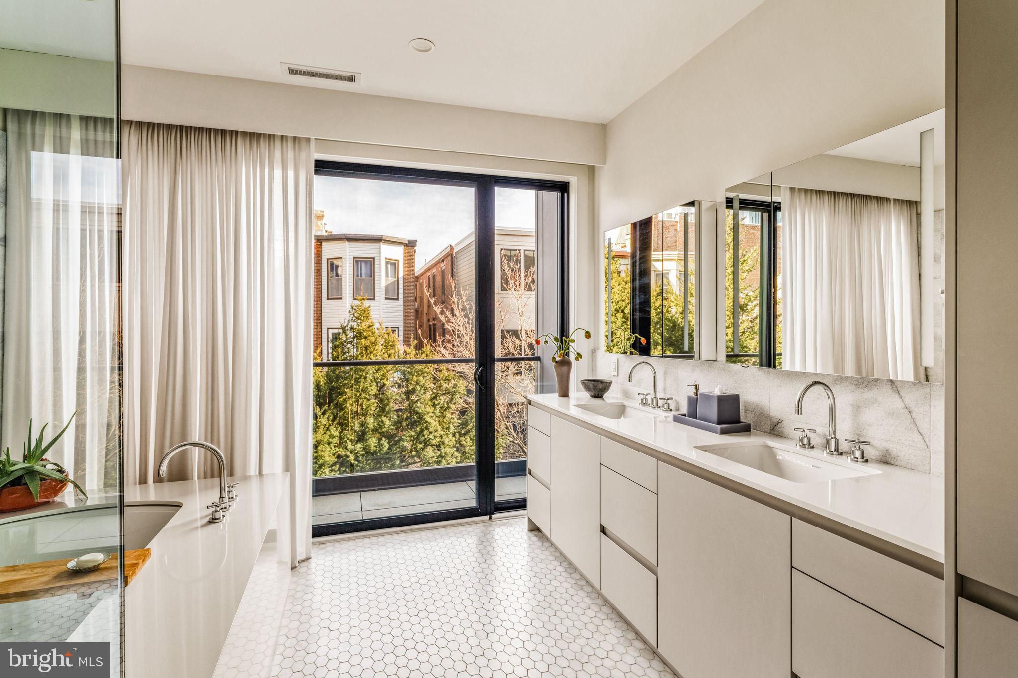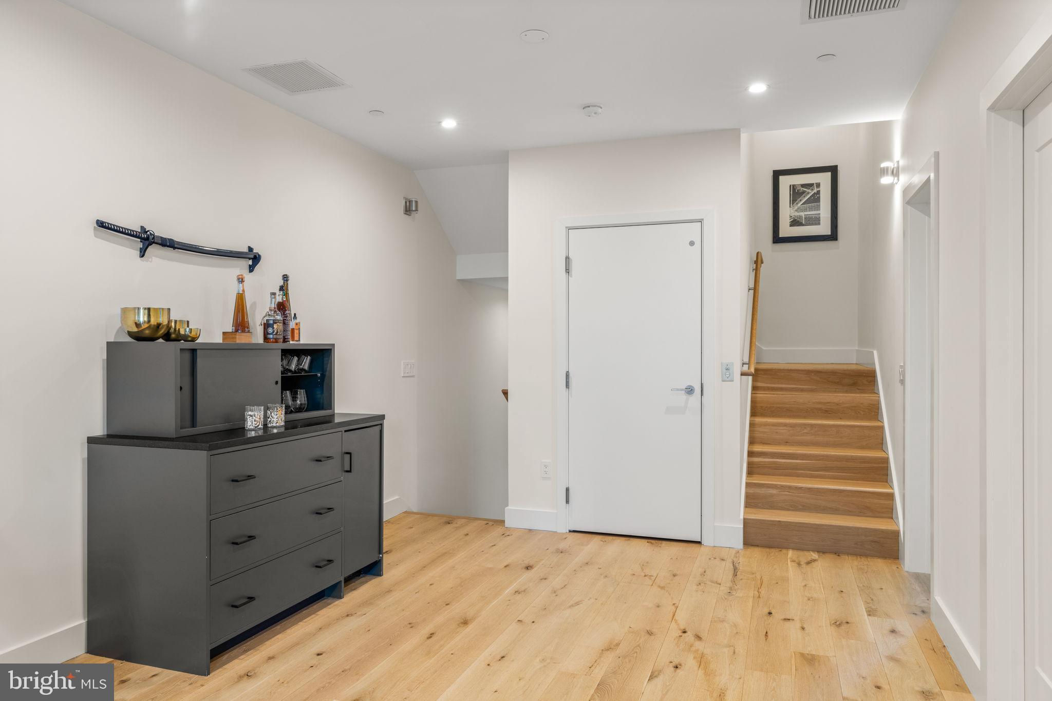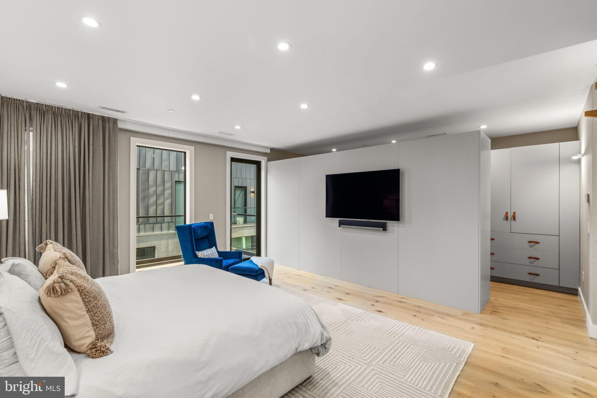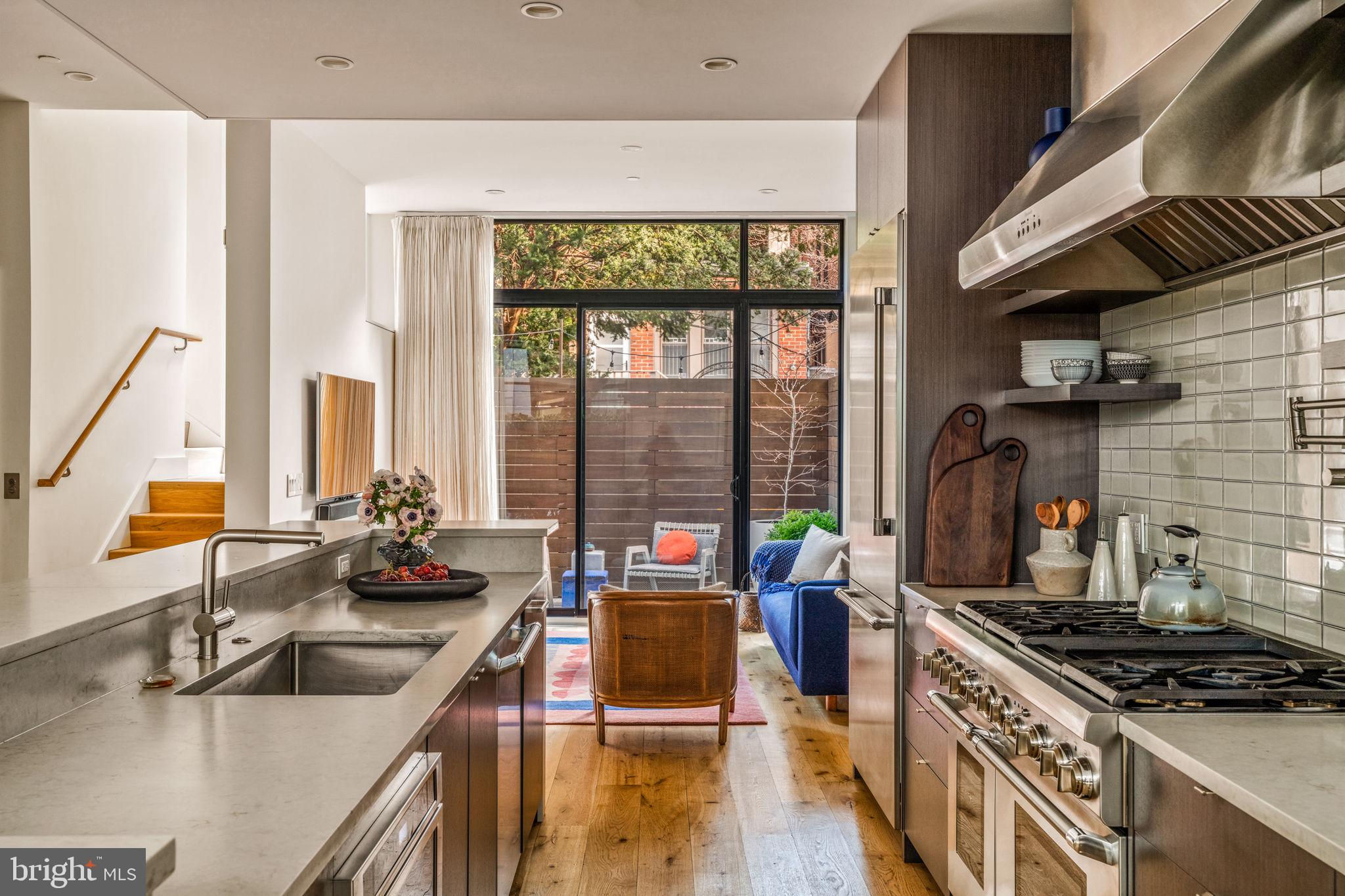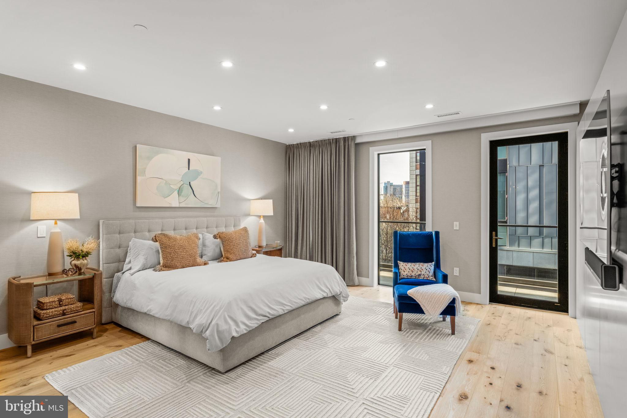 Sophisticated Fitler Square Townhouse with Elevator, Garage & Roof Terrace Tucked within a private, landscaped courtyard, this custom-designed, 25-foot-wide townhouse spans more than 5,000 square feet across five levels of refined living. With four bedrooms, four full baths, two half baths, an elevator serving all floors, and 2-car garage parking, the home combines scale, elegance, and ease in one of Philadelphia’s most desirable neighborhoods. The entry level opens to a welcoming foyer that leads into a light-filled living, dining, and kitchen space, designed for both daily comfort and entertaining. Anchored by an oversized island, the kitchen showcases quartz counters, custom cabinetry, a walk-in pantry with coffee bar, and premium appliances. The dining area easily accommodates large gatherings, while the living room connects through glass sliders to a private patio with outdoor kitchen—complete with built-in grill and wood-burning pizza oven—for effortless indoor/outdoor living. The second level offers an expansive family room with a sleek media wall and gas fireplace, along with a guest suite featuring an en-suite bath. The third level is dedicated to the primary suite, with a gracious bedroom, custom walk-in wardrobe, and a spa-inspired bath with soaking tub, double marble vanity, glass shower, and heated tile floors. The fourth floor is defined by a dramatic double-height lounge, flanked by two additional bedroom suites and a full laundry room. The fifth level is designed for entertaining, featuring a kitchenette with refrigeration, ice maker, and sink, plus glass doors that open to a skyline-view roof terrace with fire pit and powder room. The lower level provides direct garage access, a mudroom with built-ins, a large storage/flex space, and abundant closet storage. Additional highlights include two-zone HVAC, tax abatement, and HOA services that cover landscaping, snow removal, a heated driveway, private trash collection twice weekly, and on-site property management. Ideally located in the heart of Fitler Square, the home is steps from beloved neighborhood dining (Ambrosia, Sally, Trattoria Carina), cafés (Rabbit, Good Karma, Bacchus), and the green spaces of Fitler Square Park and Schuylkill River Park with its trails, dog runs, and sport courts. It offers quick access to Penn, CHOP, Drexel, 30th Street Station, the airport, and is within the Greenfield School catchment.