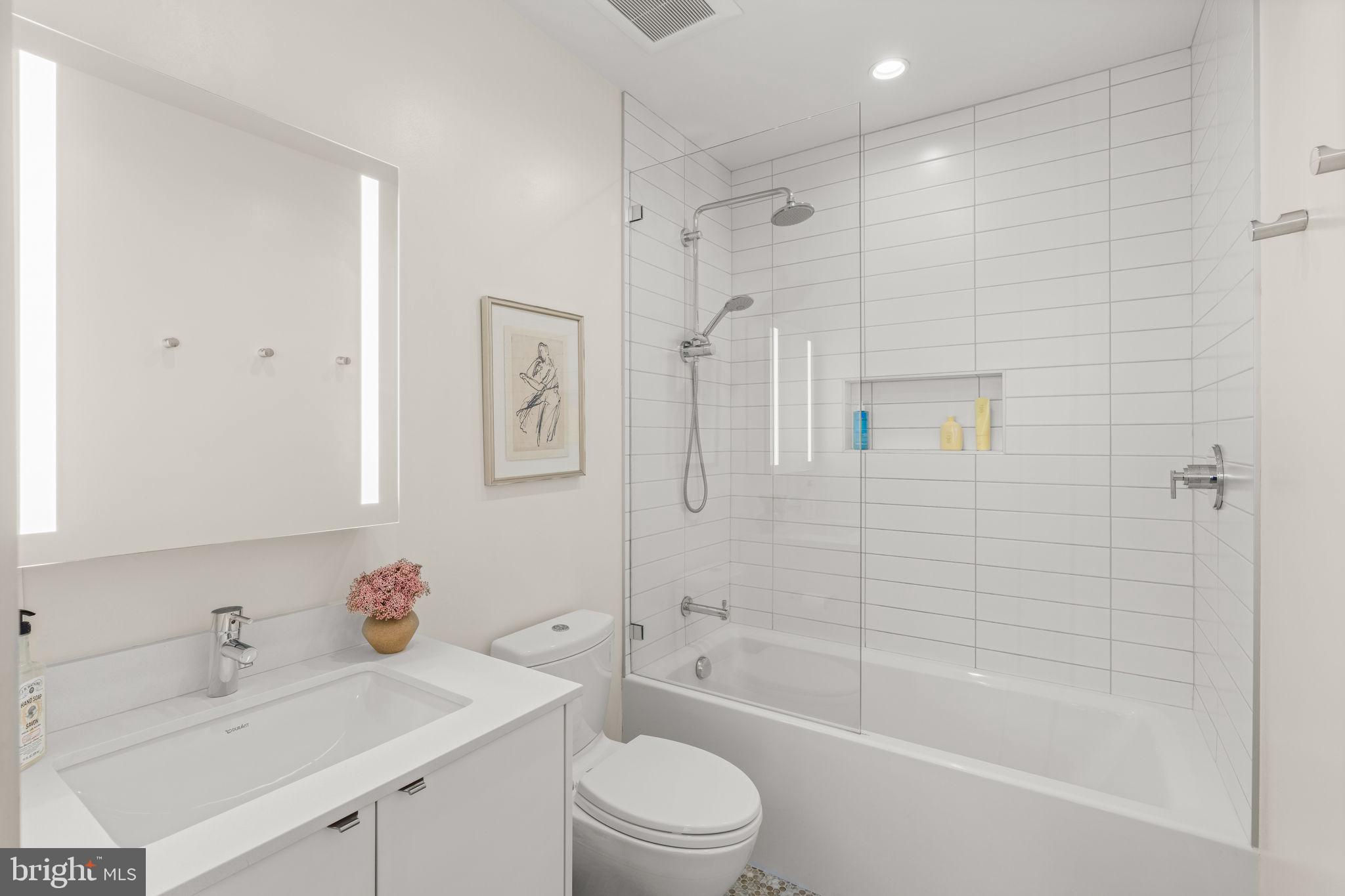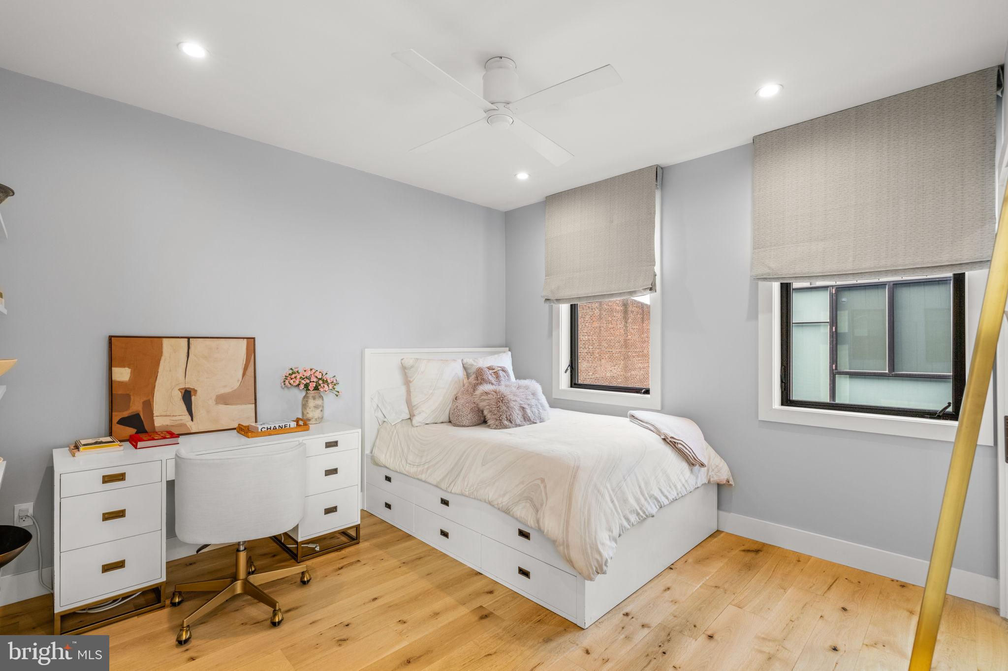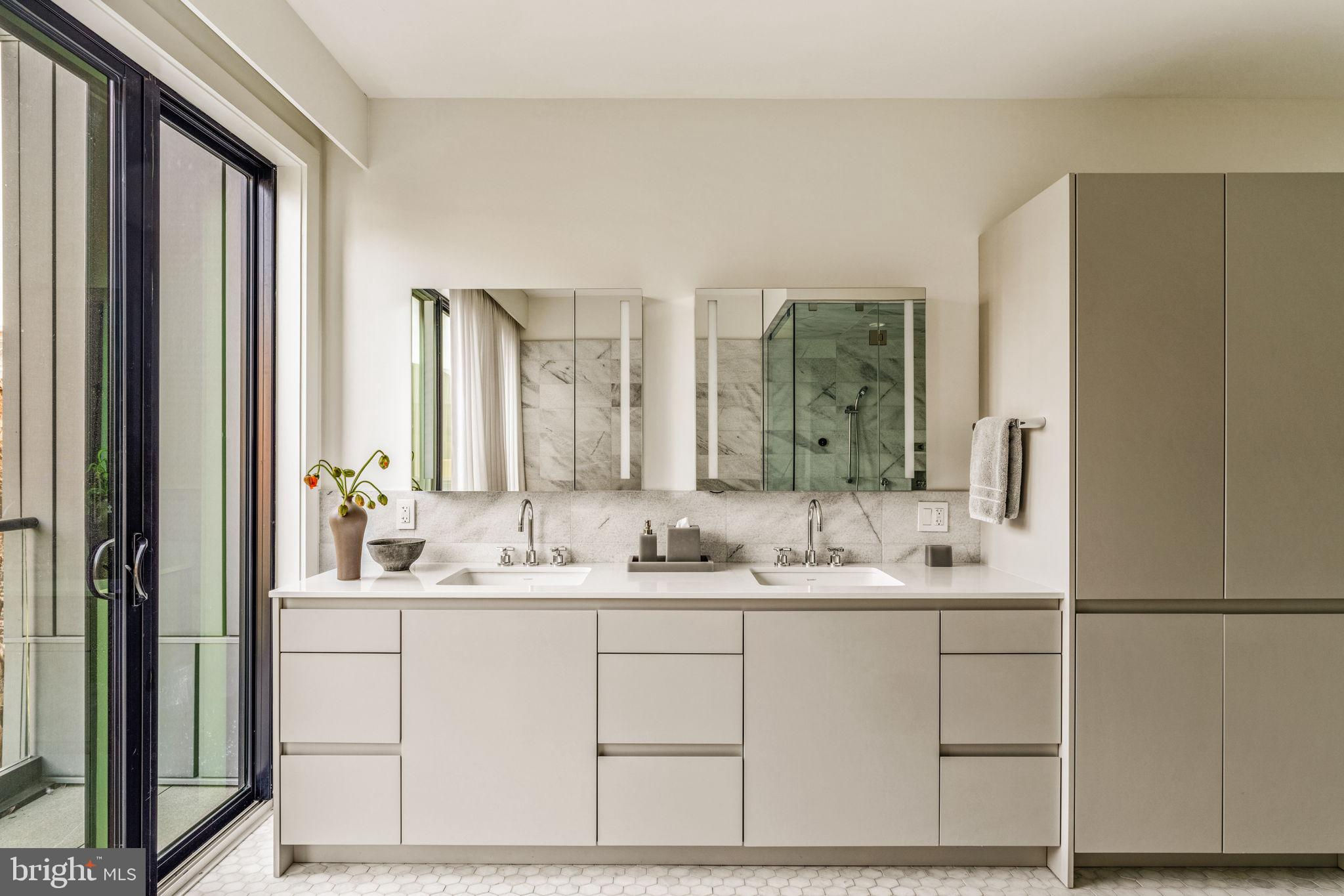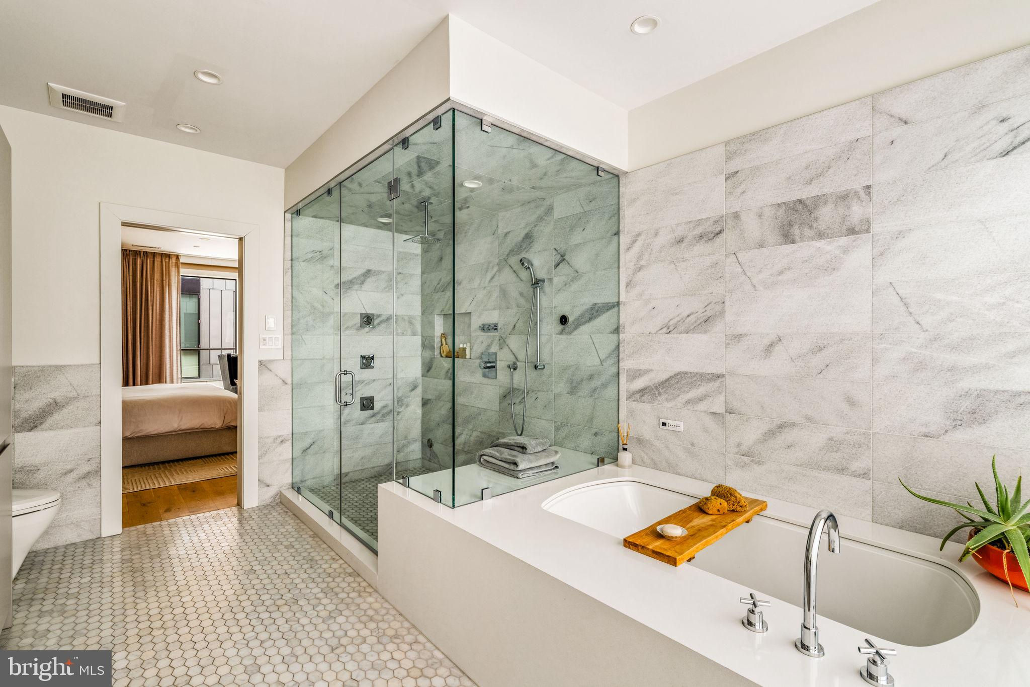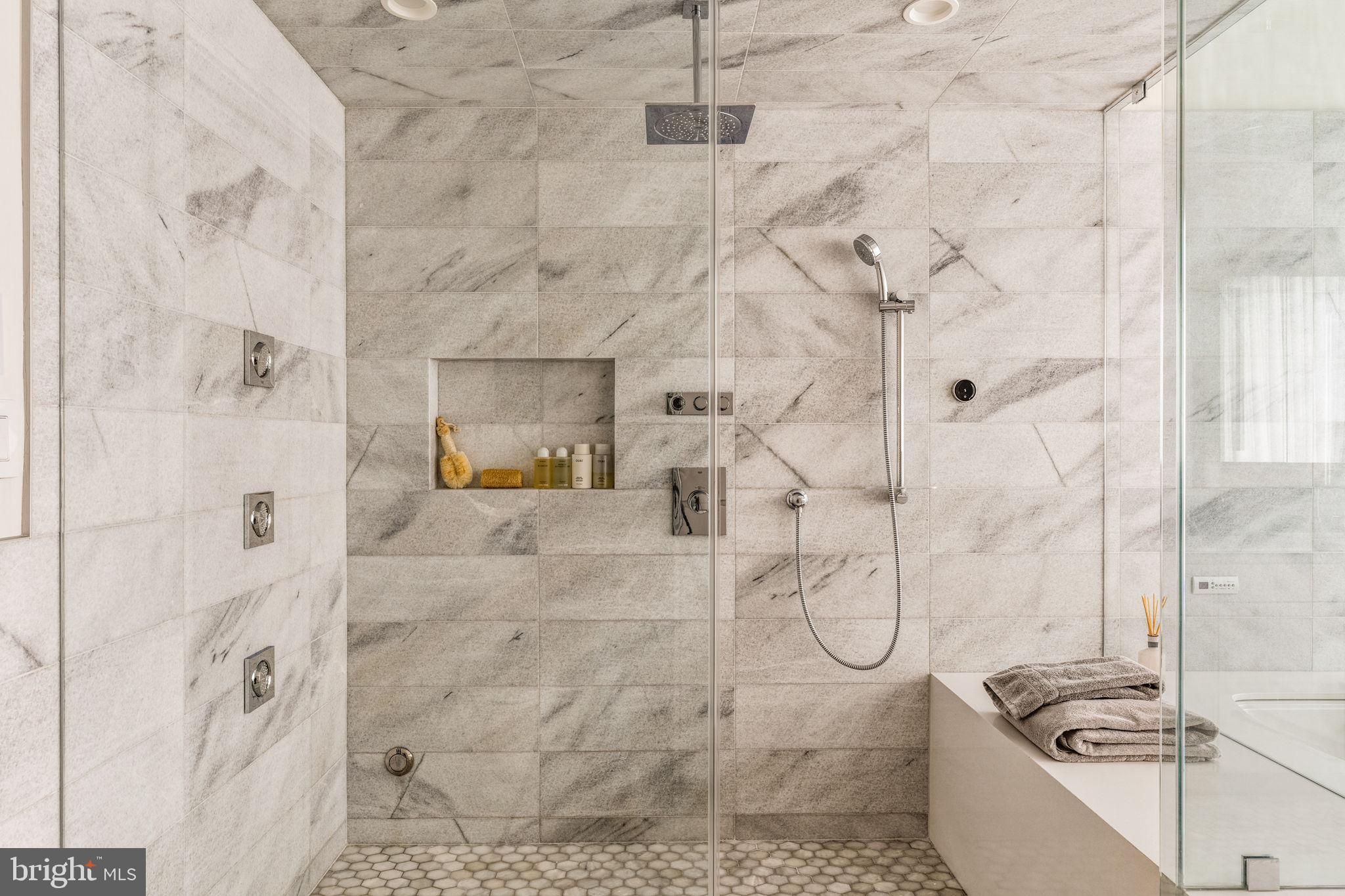 Sophisticated Fitler Square Townhouse with Elevator, Garage & Roof Terrace Tucked within a private, landscaped courtyard, this custom-designed, 25-foot-wide townhouse spans more than 5,000 square feet across five levels of refined living. With four bedrooms, four full baths, two half baths, an elevator serving all floors, and 2-car garage parking, the home combines scale, elegance, and ease in one of Philadelphia’s most desirable neighborhoods. The entry level opens to a welcoming foyer that leads into a light-filled living, dining, and kitchen space, designed for both daily comfort and entertaining. Anchored by an oversized island, the kitchen showcases quartz counters, custom cabinetry, a walk-in pantry with coffee bar, and premium appliances. The dining area easily accommodates large gatherings, while the living room connects through glass sliders to a private patio with outdoor kitchen—complete with built-in grill and wood-burning pizza oven—for effortless indoor/outdoor living. The second level offers an expansive family room with a sleek media wall and gas fireplace, along with a guest suite featuring an en-suite bath. The third level is dedicated to the primary suite, with a gracious bedroom, custom walk-in wardrobe, and a spa-inspired bath with soaking tub, double marble vanity, glass shower, and heated tile floors. The fourth floor is defined by a dramatic double-height lounge, flanked by two additional bedroom suites and a full laundry room. The fifth level is designed for entertaining, featuring a kitchenette with refrigeration, ice maker, and sink, plus glass doors that open to a skyline-view roof terrace with fire pit and powder room. The lower level provides direct garage access, a mudroom with built-ins, a large storage/flex space, and abundant closet storage. Additional highlights include two-zone HVAC, tax abatement, and HOA services that cover landscaping, snow removal, a heated driveway, private trash collection twice weekly, and on-site property management. Ideally located in the heart of Fitler Square, the home is steps from beloved neighborhood dining (Ambrosia, Sally, Trattoria Carina), cafés (Rabbit, Good Karma, Bacchus), and the green spaces of Fitler Square Park and Schuylkill River Park with its trails, dog runs, and sport courts. It offers quick access to Penn, CHOP, Drexel, 30th Street Station, the airport, and is within the Greenfield School catchment.