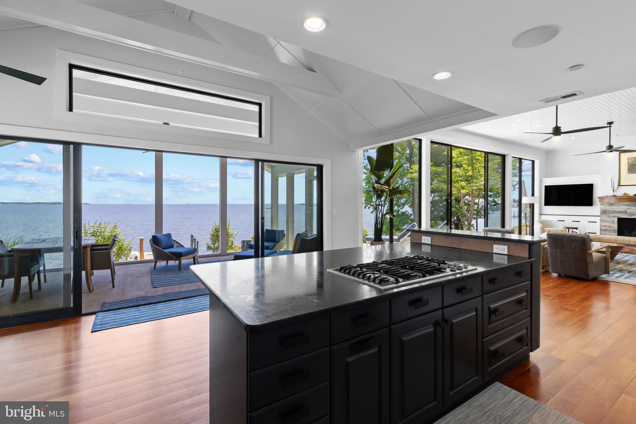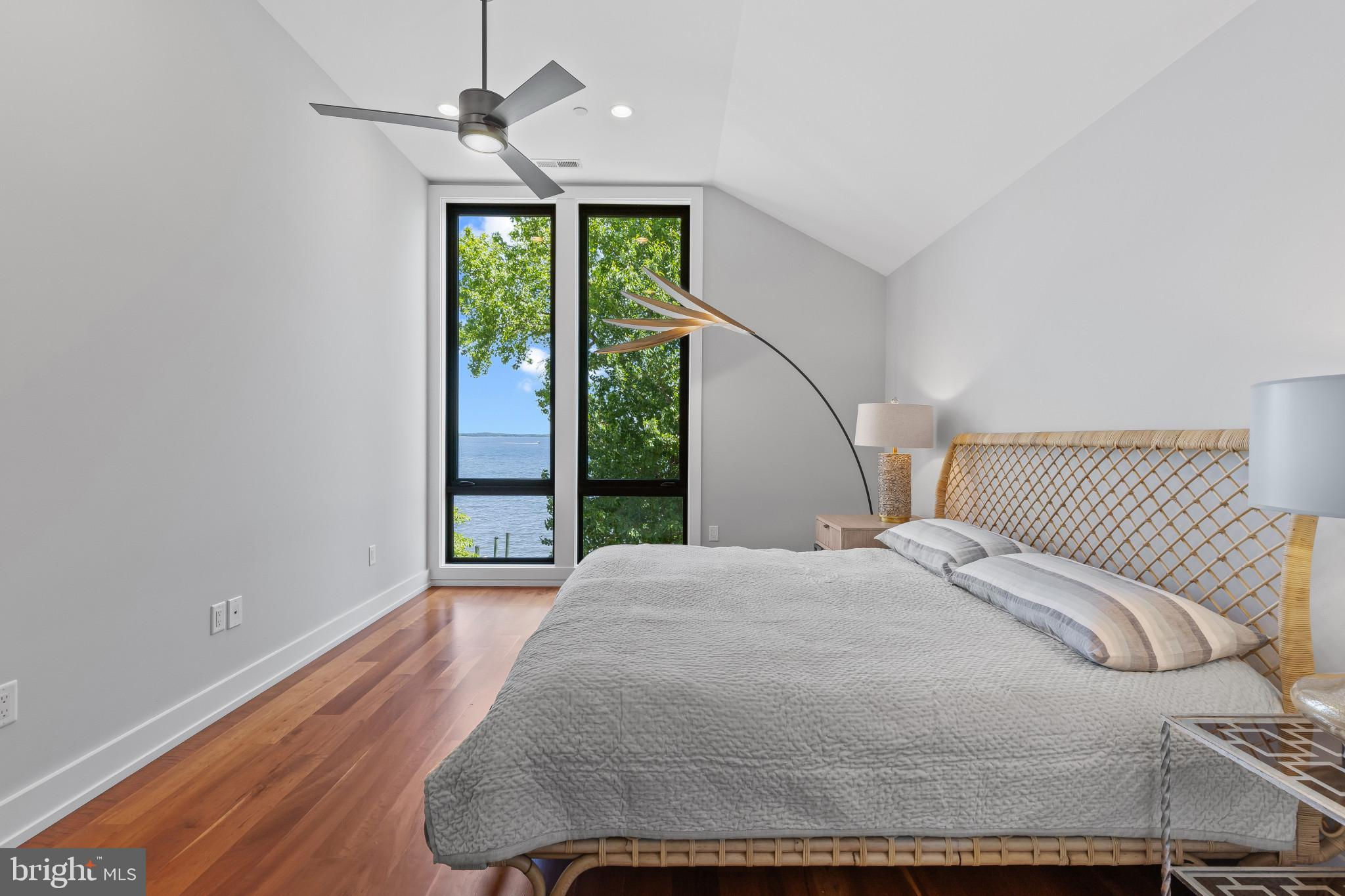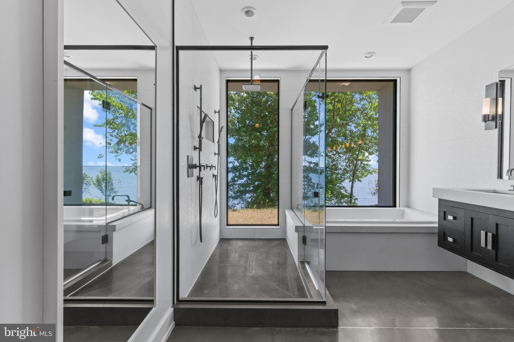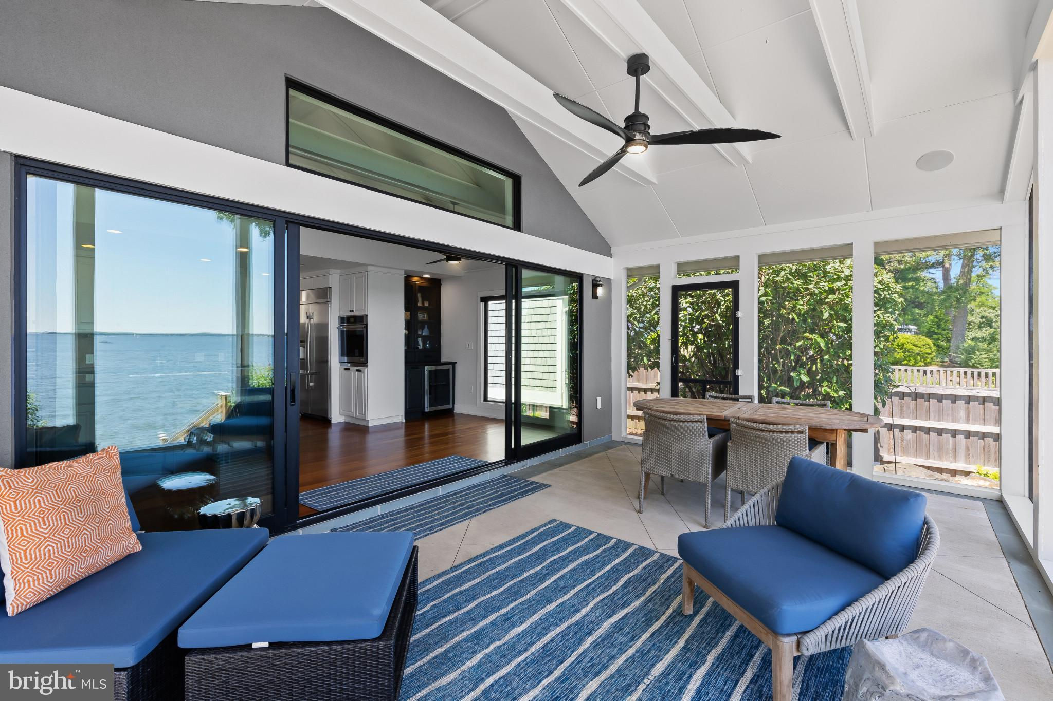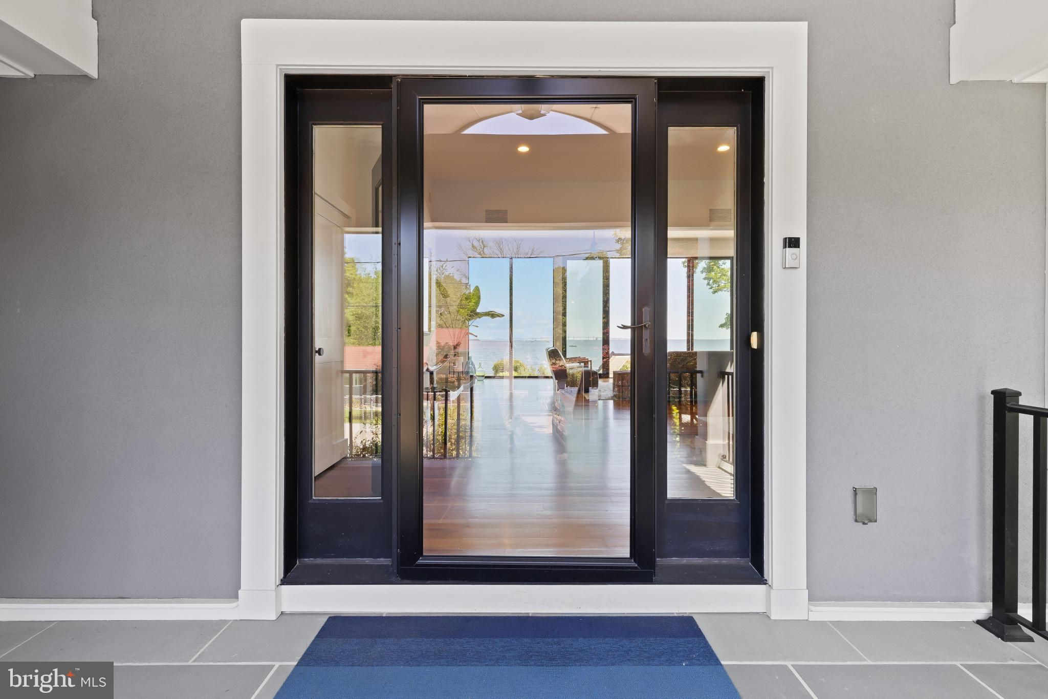 Life will never be the same. This slick and sleek coastal contemporary is beautifully designed for optimal waterfront living. With six bedrooms (FIVE ensuites), six full baths and one half bath, waterviews are visible from nearly all living spaces and bedrooms (and three bathrooms, to be fair). Witness the walls of windows on the first level, facing the Chesapeake Bay to the East and Severn River to the Northwest; one will never be bored with the marvelously incessant theatre of watercraft and nature. Enjoy morning coffee out on the open air patio, down at the pier, or in the large, screened porch. If weather is uncooperative, stretch out in the massive open living area, or retreat to one of two second floor water-facing rooms (one perfect for sitting room/office) to take in a new perspective. This home was fully renovated in 2017, sporting gorgeous custom light cherry 5" wood floors on the first and second level and showcasing unique custom, open staircases with black cable handrail system. There are two primary bedroom ensuites; one on the first floor featuring concrete shower floor, bathroom floor and cast concrete countertop. With generous, custom closets and oversized windows featured in each room, both residents and guests are guaranteed to render a five star rating for their stay and experience. This property is one block from 70 acres of walking trails and two blocks from the community beach, playground, picnic pavilion and firepit.
