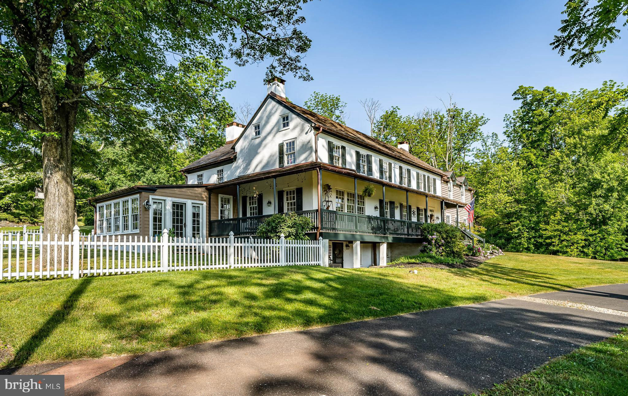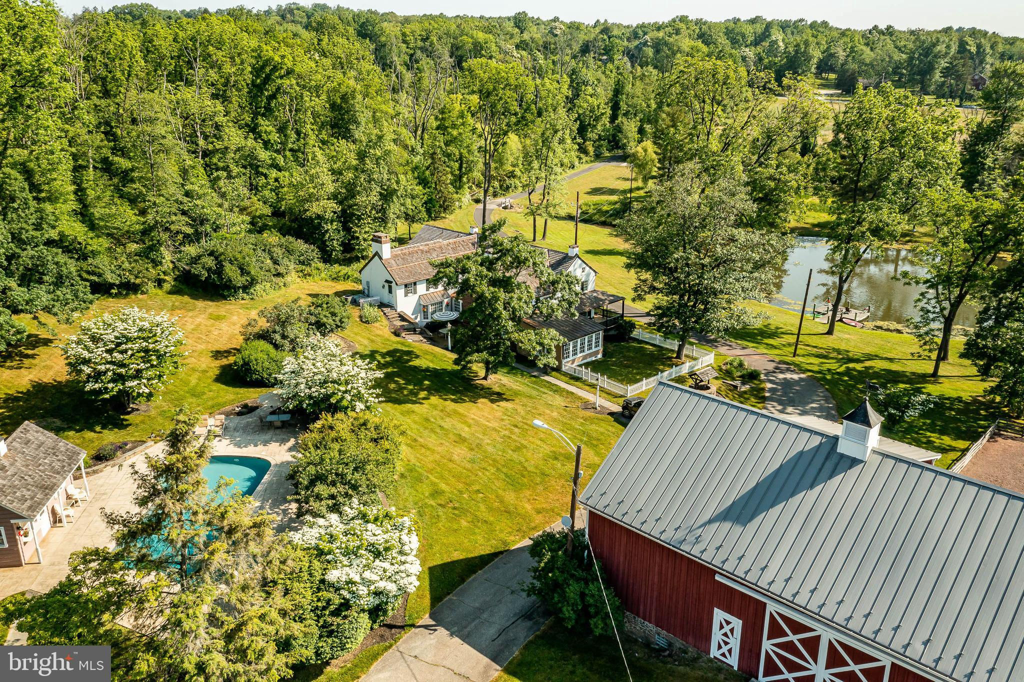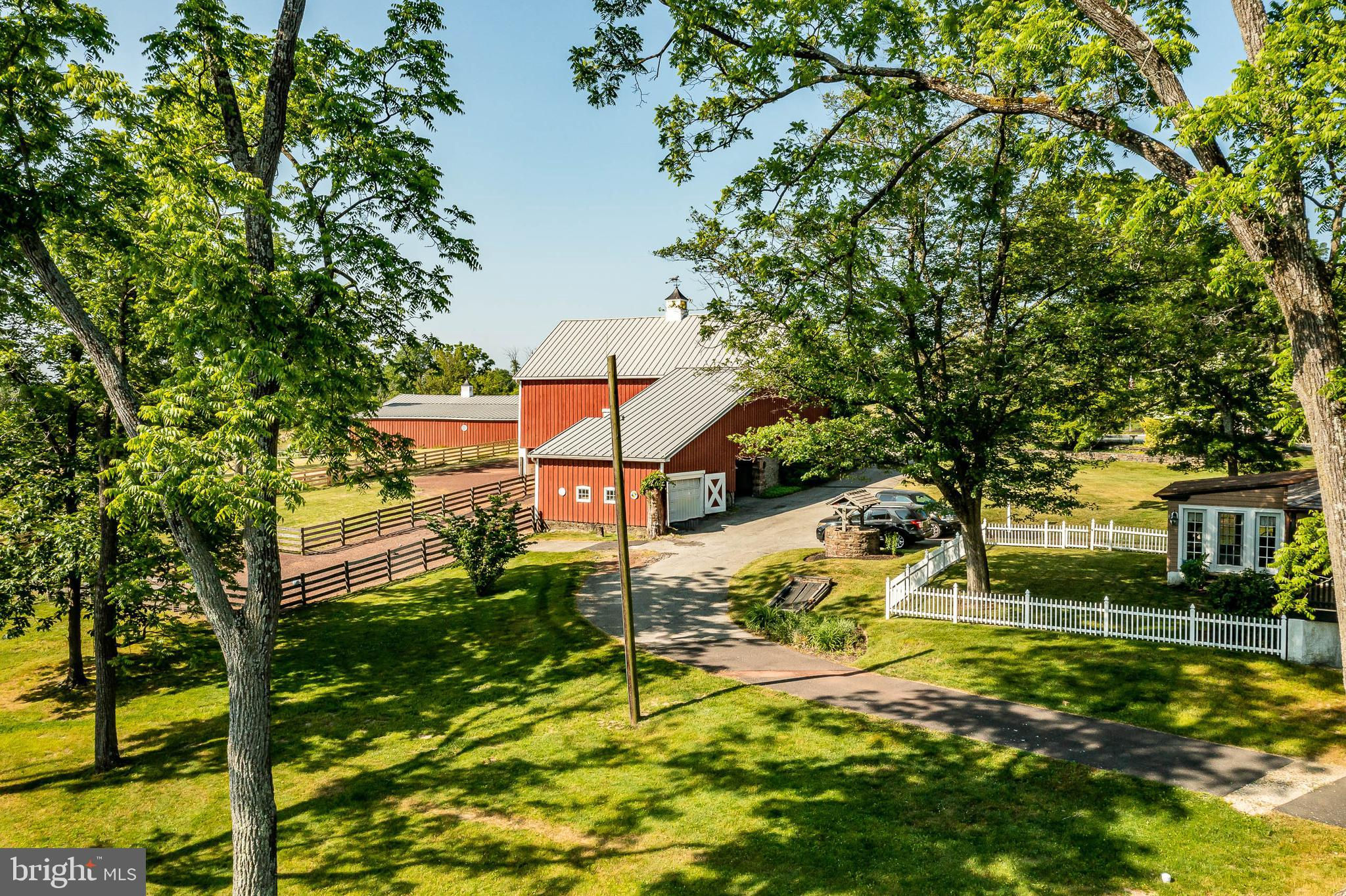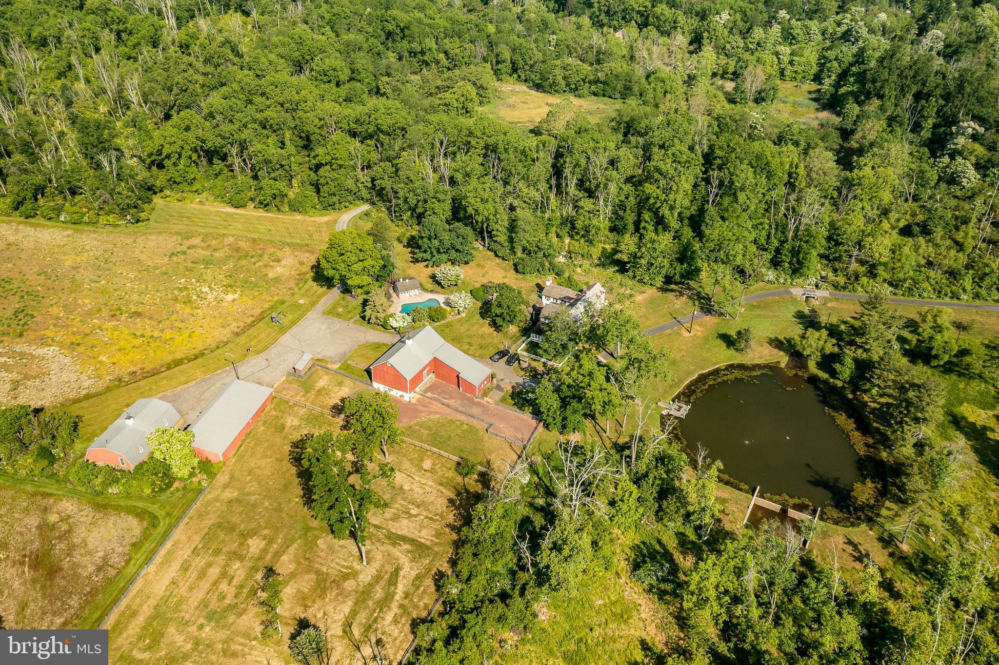 This charming, historic 1700's farmhouse home sits in a tranquil setting in Worcester Township. The sweeping driveway takes you over the re-built, professionally engineered bridge overlooking the gorgeous 8ft deep aerated pond, fully stocked with Bass and Catfish! Relax on your recliners on the IPEdock enjoying the wonderful scenic views. The home has been beautifully updated throughout. The workmanship has paid special attention to maintaining and complementing the original style and era of the home throughout, with random-width pine hardwood floors, crown moldings, updated bathrooms and so much more! The kitchen features stainless steel appliances, corian countertops and custom cabinets, yet captures the old world feel with wooden beams and a huge walk-in fireplace. The back of the house has an addition behind the kitchen which is used as a breakfast/dining area. Both the kitchen and this breakfast room have radiant heated floors. Off the kitchen is the formal dining room with a fireplace beaming with natural light from the wall of windows overlooking the pond; a perfect spot for entertaining guests! This flows into the cozy den which is just off the entryway. Plus there's a huge family room with a wood beamed ceiling, fireplace and built-in bar area. The mudroom is conveniently located off the kitchen and offers more of that farmhouse charm with brick tiled floors and walls and wooden beams.The pretty powder room, front staircase and opening the ceilings to expose the beams were updates by the current owners. To the right side of the home there is a three-story addition built by the owners, which includes a huge office on the main floor with French doors and a private IPE deck. Below on the lower level is a finished walkout basement with French doors which give access to the original basement that has storage and houses the utilities with 2 water heaters, 400 amp electric service, 5 zone A/C 6 zones for heat. The property has natural gas. The house renovation included all new systems – plumbing, electric, HVAC etc. and has a generator which powers the entire property including the house and all the outbuildings. The upper level of the addition is the master bathroom/dressing area with large walk-in closets. The 2nd floor has 4 bedrooms, with a spacious primary suite with its own cozy fireplace and plenty of closets that leads to the ensuite bathroom with double vanity, soaking jacuzzi tub, glass shower stall and French doors that open to a Julitte balcony overlooking the lush landscape. There are 3 more bedrooms and a hall bathroom with double vanity and tub/shower combo. The main house has all newer Pella windows and doors in 2022 had a new roof including cedar shake shingles, standing seam copper, copper gutters and downspouts at a cost of $200K. Sit on your lovely covered, wrap-aroundporch and take in the beauty of your surroundings. Enjoy the renovated, inground pool with decking and a quaint cabana (also renovated) which has a kitchen area, shower/powder room and changing area making entertaining pool side a breeze with built-in outdoor brick grill ovens! Touring the rest of the property, you'll find a large barn with 8 stalls that are totally rewired. There are 2 other outbuildings, one of which is a 40ft x 60ft Quonset Hut which currently houses the owner’s classic car collection;this building is heated and insulated. Within the last 10 years, the Quonset Hut, barn, and Lean-To have had new standing seam metal roofs and cypress siding installed. The cabana also has a new cedar shake roof. The Quonset Hut, barn and cabana have cupolas. The owners added a $120K dam when the pond was dredged taking it from 4ft to 8ft deep. The land is filled with meadows and trails perfect for horse riding, hiking and observing nature and abundant wildlife. Minimum 10 acres included, additional acres to be determined based on conversations with Worcester Township