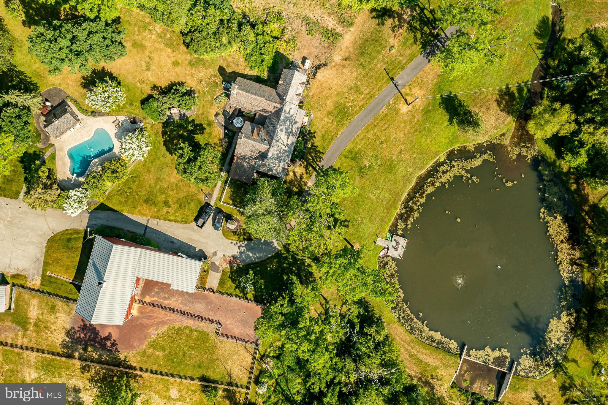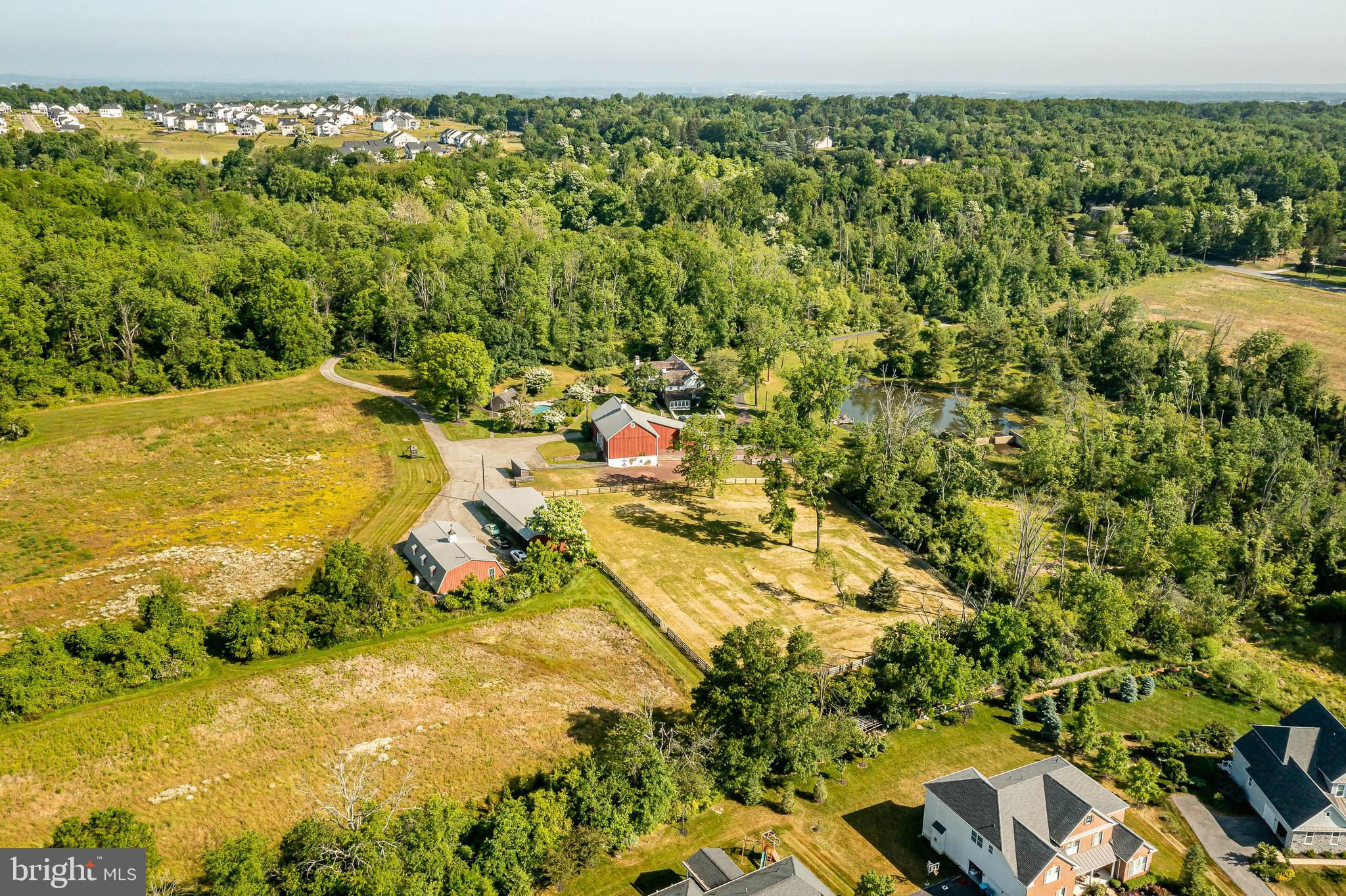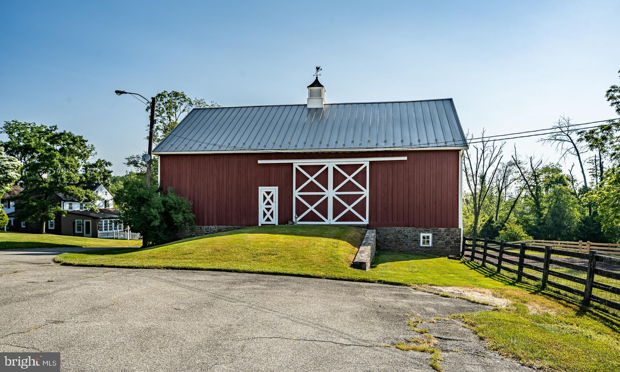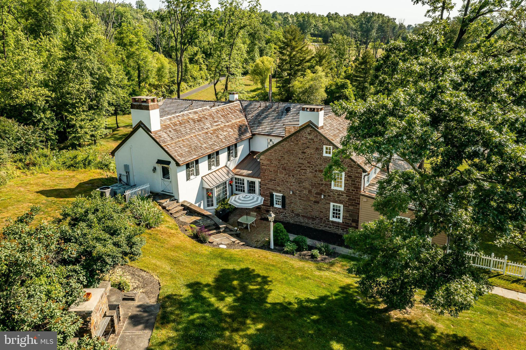 This charming, historic 1700's farmhouse home sits in a tranquil setting in Worcester Township. The sweeping driveway takes you over the re-built, professionally engineered bridge overlooking the gorgeous 8ft deep aerated pond, fully stocked with Bass and Catfish! Relax on your recliners on the IPEdock enjoying the wonderful scenic views. The home has been beautifully updated throughout. The workmanship has paid special attention to maintaining and complementing the original style and era of the home throughout, with random-width pine hardwood floors, crown moldings, updated bathrooms and so much more! The kitchen features stainless steel appliances, corian countertops and custom cabinets, yet captures the old world feel with wooden beams and a huge walk-in fireplace. The back of the house has an addition behind the kitchen which is used as a breakfast/dining area. Both the kitchen and this breakfast room have radiant heated floors. Off the kitchen is the formal dining room with a fireplace beaming with natural light from the wall of windows overlooking the pond; a perfect spot for entertaining guests! This flows into the cozy den which is just off the entryway. Plus there's a huge family room with a wood beamed ceiling, fireplace and built-in bar area. The mudroom is conveniently located off the kitchen and offers more of that farmhouse charm with brick tiled floors and walls and wooden beams.The pretty powder room, front staircase and opening the ceilings to expose the beams were updates by the current owners. To the right side of the home there is a three-story addition built by the owners, which includes a huge office on the main floor with French doors and a private IPE deck. Below on the lower level is a finished walkout basement with French doors which give access to the original basement that has storage and houses the utilities with 2 water heaters, 400 amp electric service, 5 zone A/C 6 zones for heat. The property has natural gas. The house renovation included all new systems – plumbing, electric, HVAC etc. and has a generator which powers the entire property including the house and all the outbuildings. The upper level of the addition is the master bathroom/dressing area with large walk-in closets. The 2nd floor has 4 bedrooms, with a spacious primary suite with its own cozy fireplace and plenty of closets that leads to the ensuite bathroom with double vanity, soaking jacuzzi tub, glass shower stall and French doors that open to a Julitte balcony overlooking the lush landscape. There are 3 more bedrooms and a hall bathroom with double vanity and tub/shower combo. The main house has all newer Pella windows and doors in 2022 had a new roof including cedar shake shingles, standing seam copper, copper gutters and downspouts at a cost of $200K. Sit on your lovely covered, wrap-aroundporch and take in the beauty of your surroundings. Enjoy the renovated, inground pool with decking and a quaint cabana (also renovated) which has a kitchen area, shower/powder room and changing area making entertaining pool side a breeze with built-in outdoor brick grill ovens! Touring the rest of the property, you'll find a large barn with 8 stalls that are totally rewired. There are 2 other outbuildings, one of which is a 40ft x 60ft Quonset Hut which currently houses the owner’s classic car collection;this building is heated and insulated. Within the last 10 years, the Quonset Hut, barn, and Lean-To have had new standing seam metal roofs and cypress siding installed. The cabana also has a new cedar shake roof. The Quonset Hut, barn and cabana have cupolas. The owners added a $120K dam when the pond was dredged taking it from 4ft to 8ft deep. The land is filled with meadows and trails perfect for horse riding, hiking and observing nature and abundant wildlife. Minimum 10 acres included, additional acres to be determined based on conversations with Worcester Township