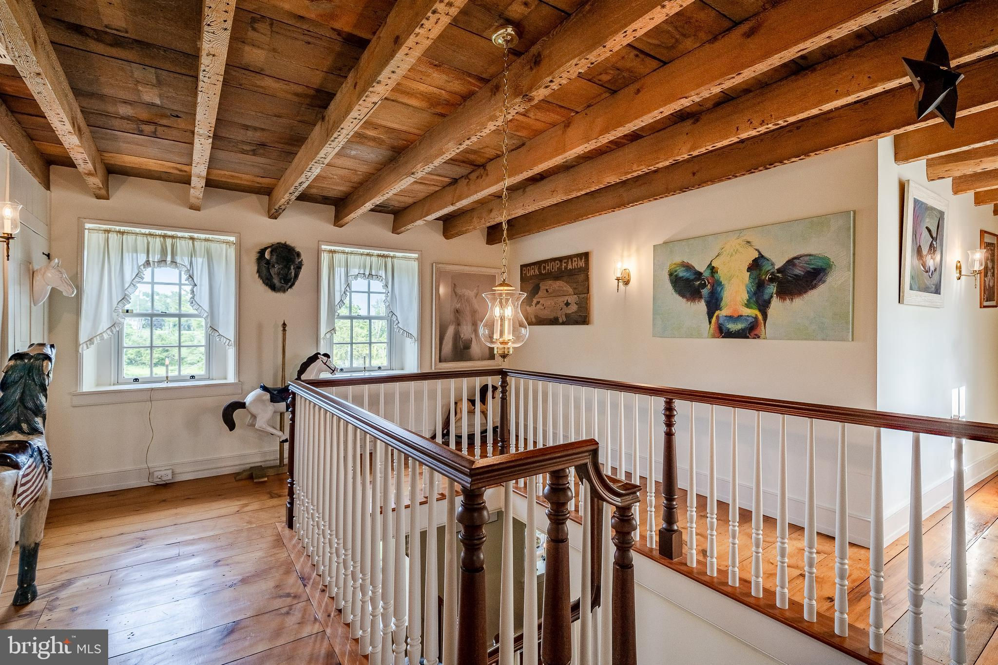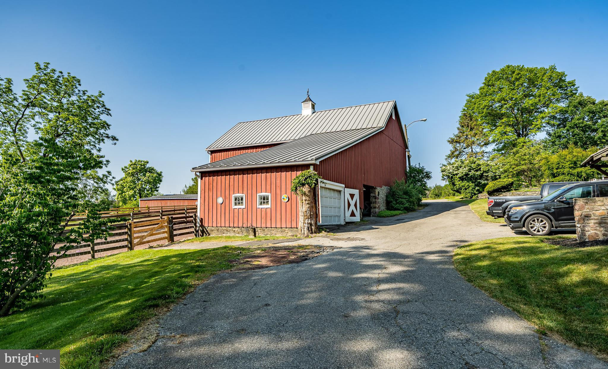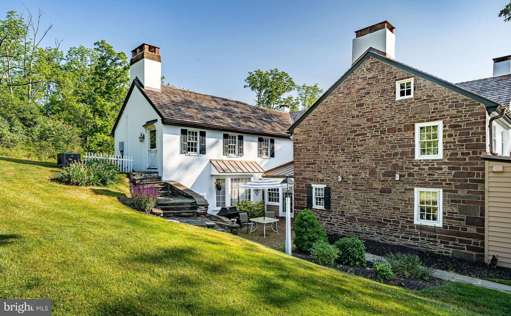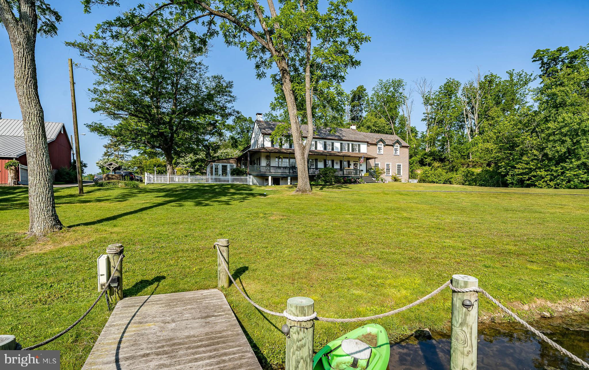 This charming, historic 1700's farmhouse home sits in a tranquil setting in Worcester Township. The sweeping driveway takes you over the re-built, professionally engineered bridge overlooking the gorgeous 8ft deep aerated pond, fully stocked with Bass and Catfish! Relax on your recliners on the IPEdock enjoying the wonderful scenic views. The home has been beautifully updated throughout. The workmanship has paid special attention to maintaining and complementing the original style and era of the home throughout, with random-width pine hardwood floors, crown moldings, updated bathrooms and so much more! The kitchen features stainless steel appliances, corian countertops and custom cabinets, yet captures the old world feel with wooden beams and a huge walk-in fireplace. The back of the house has an addition behind the kitchen which is used as a breakfast/dining area. Both the kitchen and this breakfast room have radiant heated floors. Off the kitchen is the formal dining room with a fireplace beaming with natural light from the wall of windows overlooking the pond; a perfect spot for entertaining guests! This flows into the cozy den which is just off the entryway. Plus there's a huge family room with a wood beamed ceiling, fireplace and built-in bar area. The mudroom is conveniently located off the kitchen and offers more of that farmhouse charm with brick tiled floors and walls and wooden beams.The pretty powder room, front staircase and opening the ceilings to expose the beams were updates by the current owners. To the right side of the home there is a three-story addition built by the owners, which includes a huge office on the main floor with French doors and a private IPE deck. Below on the lower level is a finished walkout basement with French doors which give access to the original basement that has storage and houses the utilities with 2 water heaters, 400 amp electric service, 5 zone A/C 6 zones for heat. The property has natural gas. The house renovation included all new systems – plumbing, electric, HVAC etc. and has a generator which powers the entire property including the house and all the outbuildings. The upper level of the addition is the master bathroom/dressing area with large walk-in closets. The 2nd floor has 4 bedrooms, with a spacious primary suite with its own cozy fireplace and plenty of closets that leads to the ensuite bathroom with double vanity, soaking jacuzzi tub, glass shower stall and French doors that open to a Julitte balcony overlooking the lush landscape. There are 3 more bedrooms and a hall bathroom with double vanity and tub/shower combo. The main house has all newer Pella windows and doors in 2022 had a new roof including cedar shake shingles, standing seam copper, copper gutters and downspouts at a cost of $200K. Sit on your lovely covered, wrap-aroundporch and take in the beauty of your surroundings. Enjoy the renovated, inground pool with decking and a quaint cabana (also renovated) which has a kitchen area, shower/powder room and changing area making entertaining pool side a breeze with built-in outdoor brick grill ovens! Touring the rest of the property, you'll find a large barn with 8 stalls that are totally rewired. There are 2 other outbuildings, one of which is a 40ft x 60ft Quonset Hut which currently houses the owner’s classic car collection;this building is heated and insulated. Within the last 10 years, the Quonset Hut, barn, and Lean-To have had new standing seam metal roofs and cypress siding installed. The cabana also has a new cedar shake roof. The Quonset Hut, barn and cabana have cupolas. The owners added a $120K dam when the pond was dredged taking it from 4ft to 8ft deep. The land is filled with meadows and trails perfect for horse riding, hiking and observing nature and abundant wildlife. Minimum 10 acres included, additional acres to be determined based on conversations with Worcester Township