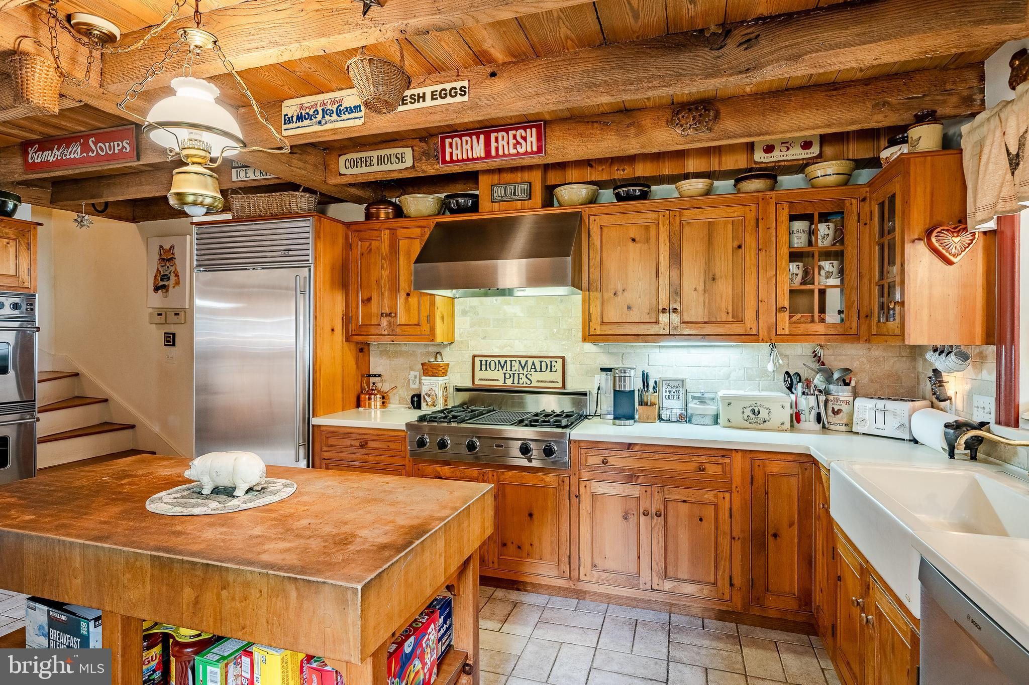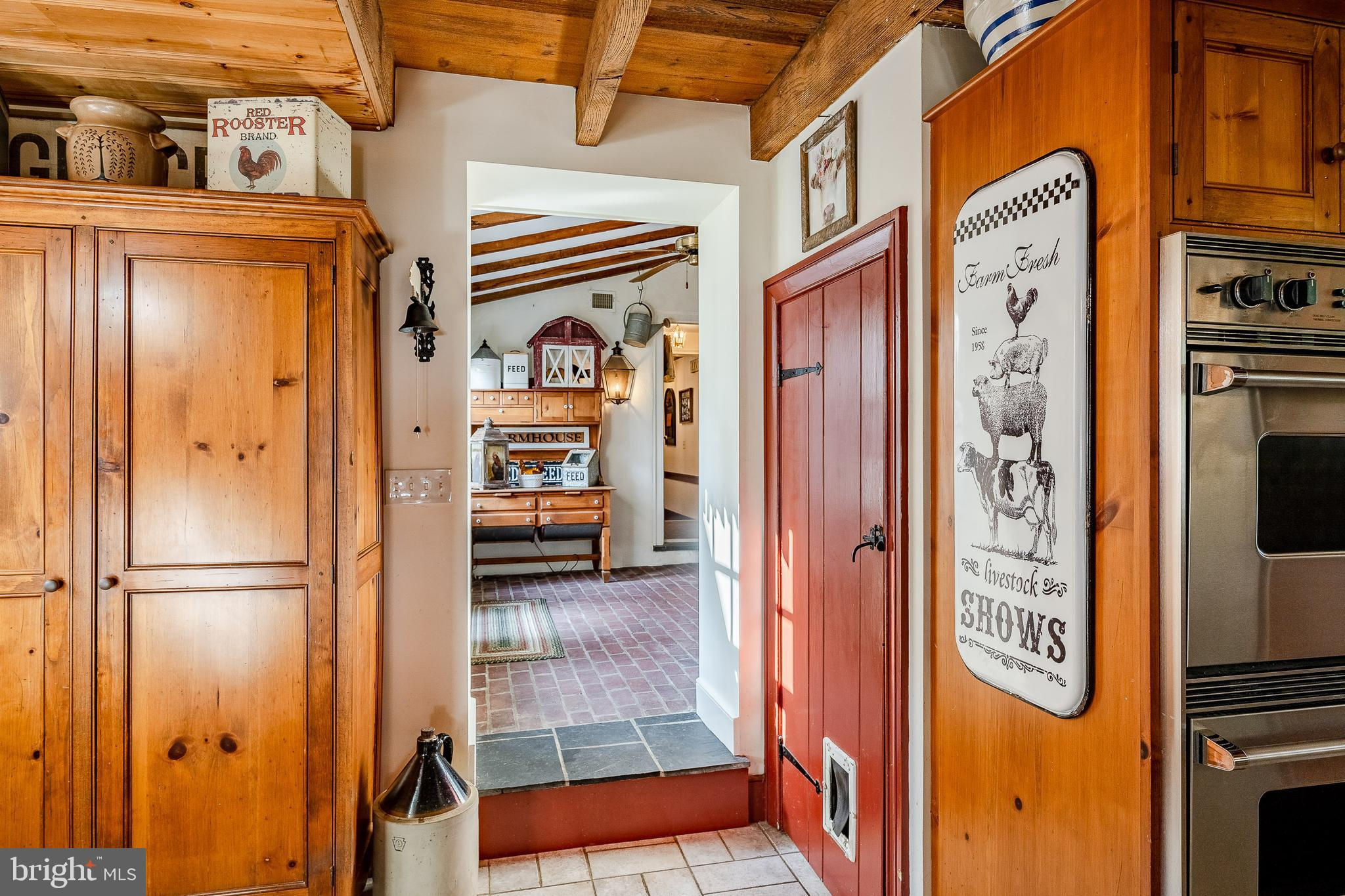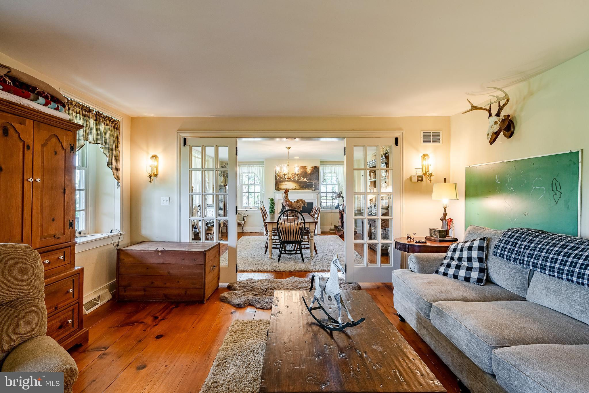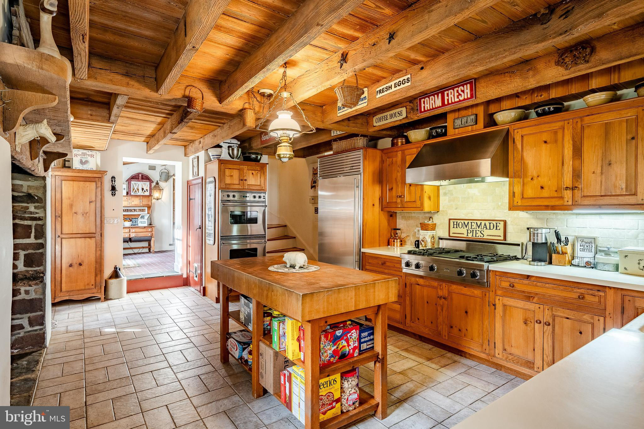 This charming, historic 1700's farmhouse home sits in a tranquil setting in Worcester Township. The sweeping driveway takes you over the re-built, professionally engineered bridge overlooking the gorgeous 8ft deep aerated pond, fully stocked with Bass and Catfish! Relax on your recliners on the IPEdock enjoying the wonderful scenic views. The home has been beautifully updated throughout. The workmanship has paid special attention to maintaining and complementing the original style and era of the home throughout, with random-width pine hardwood floors, crown moldings, updated bathrooms and so much more! The kitchen features stainless steel appliances, corian countertops and custom cabinets, yet captures the old world feel with wooden beams and a huge walk-in fireplace. The back of the house has an addition behind the kitchen which is used as a breakfast/dining area. Both the kitchen and this breakfast room have radiant heated floors. Off the kitchen is the formal dining room with a fireplace beaming with natural light from the wall of windows overlooking the pond; a perfect spot for entertaining guests! This flows into the cozy den which is just off the entryway. Plus there's a huge family room with a wood beamed ceiling, fireplace and built-in bar area. The mudroom is conveniently located off the kitchen and offers more of that farmhouse charm with brick tiled floors and walls and wooden beams.The pretty powder room, front staircase and opening the ceilings to expose the beams were updates by the current owners. To the right side of the home there is a three-story addition built by the owners, which includes a huge office on the main floor with French doors and a private IPE deck. Below on the lower level is a finished walkout basement with French doors which give access to the original basement that has storage and houses the utilities with 2 water heaters, 400 amp electric service, 5 zone A/C 6 zones for heat. The property has natural gas. The house renovation included all new systems – plumbing, electric, HVAC etc. and has a generator which powers the entire property including the house and all the outbuildings. The upper level of the addition is the master bathroom/dressing area with large walk-in closets. The 2nd floor has 4 bedrooms, with a spacious primary suite with its own cozy fireplace and plenty of closets that leads to the ensuite bathroom with double vanity, soaking jacuzzi tub, glass shower stall and French doors that open to a Julitte balcony overlooking the lush landscape. There are 3 more bedrooms and a hall bathroom with double vanity and tub/shower combo. The main house has all newer Pella windows and doors in 2022 had a new roof including cedar shake shingles, standing seam copper, copper gutters and downspouts at a cost of $200K. Sit on your lovely covered, wrap-aroundporch and take in the beauty of your surroundings. Enjoy the renovated, inground pool with decking and a quaint cabana (also renovated) which has a kitchen area, shower/powder room and changing area making entertaining pool side a breeze with built-in outdoor brick grill ovens! Touring the rest of the property, you'll find a large barn with 8 stalls that are totally rewired. There are 2 other outbuildings, one of which is a 40ft x 60ft Quonset Hut which currently houses the owner’s classic car collection;this building is heated and insulated. Within the last 10 years, the Quonset Hut, barn, and Lean-To have had new standing seam metal roofs and cypress siding installed. The cabana also has a new cedar shake roof. The Quonset Hut, barn and cabana have cupolas. The owners added a $120K dam when the pond was dredged taking it from 4ft to 8ft deep. The land is filled with meadows and trails perfect for horse riding, hiking and observing nature and abundant wildlife. Minimum 10 acres included, additional acres to be determined based on conversations with Worcester Township