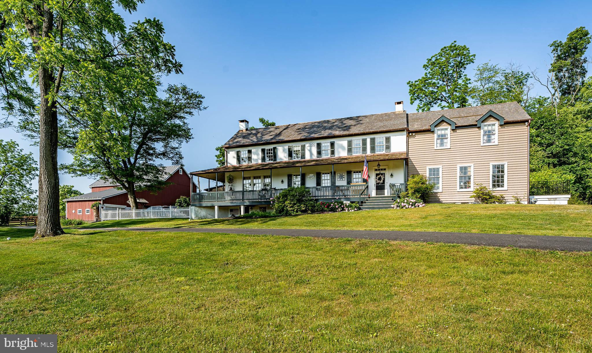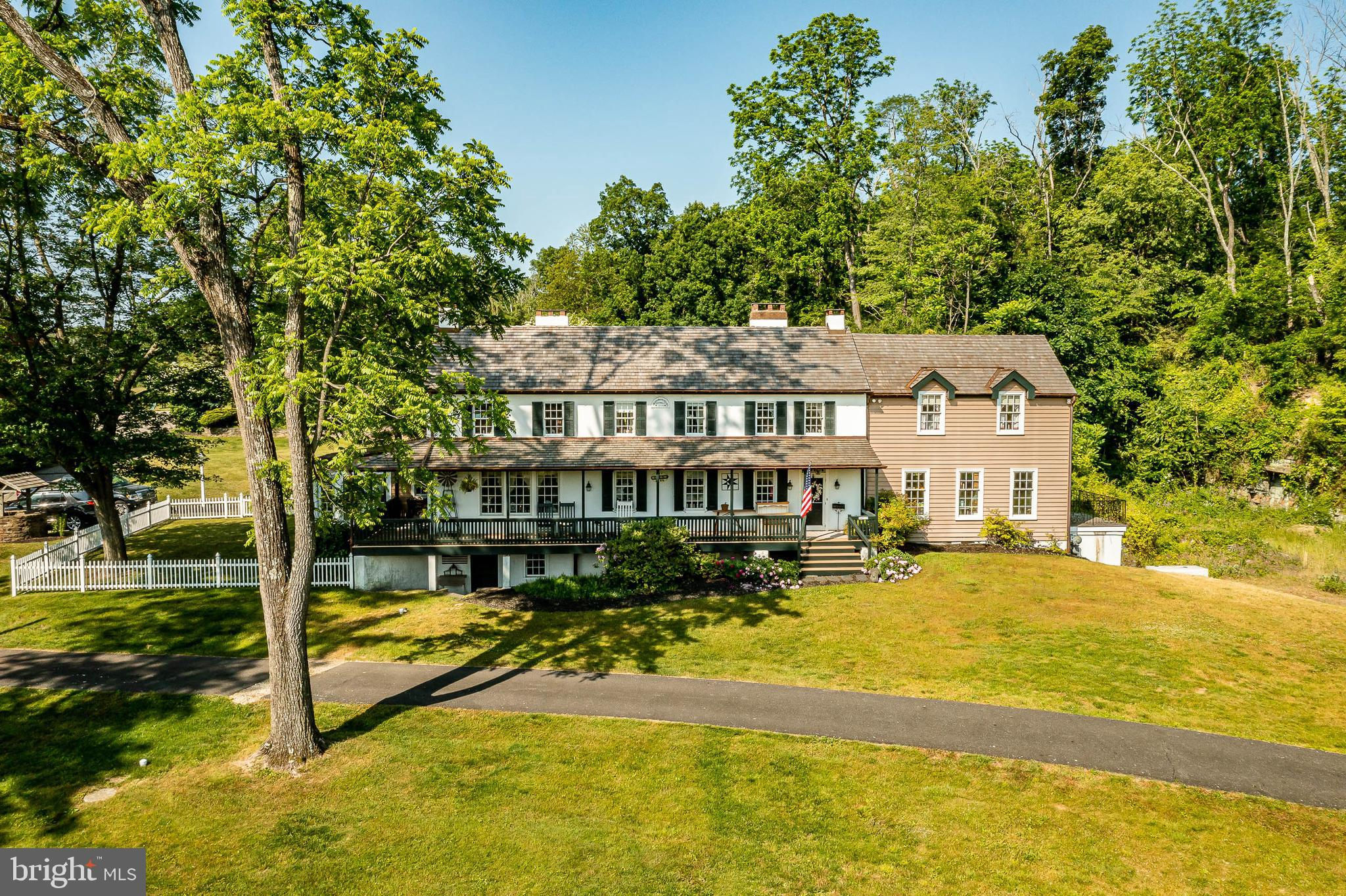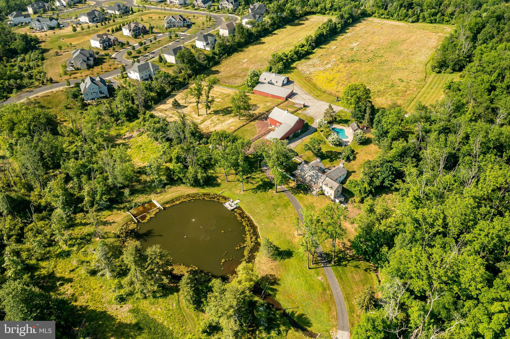 This charming, historic 1700's farmhouse home sits in a tranquil setting in Worcester Township. The sweeping driveway takes you over the re-built, professionally engineered bridge overlooking the gorgeous 8ft deep aerated pond, fully stocked with Bass and Catfish! Relax on your recliners on the IPEdock enjoying the wonderful scenic views. The home has been beautifully updated throughout. The workmanship has paid special attention to maintaining and complementing the original style and era of the home throughout, with random-width pine hardwood floors, crown moldings, updated bathrooms and so much more! The kitchen features stainless steel appliances, corian countertops and custom cabinets, yet captures the old world feel with wooden beams and a huge walk-in fireplace. The back of the house has an addition behind the kitchen which is used as a breakfast/dining area. Both the kitchen and this breakfast room have radiant heated floors. Off the kitchen is the formal dining room with a fireplace beaming with natural light from the wall of windows overlooking the pond; a perfect spot for entertaining guests! This flows into the cozy den which is just off the entryway. Plus there's a huge family room with a wood beamed ceiling, fireplace and built-in bar area. The mudroom is conveniently located off the kitchen and offers more of that farmhouse charm with brick tiled floors and walls and wooden beams.The pretty powder room, front staircase and opening the ceilings to expose the beams were updates by the current owners. To the right side of the home there is a three-story addition built by the owners, which includes a huge office on the main floor with French doors and a private IPE deck. Below on the lower level is a finished walkout basement with French doors which give access to the original basement that has storage and houses the utilities with 2 water heaters, 400 amp electric service, 5 zone A/C 6 zones for heat. The property has natural gas. The house renovation included all new systems – plumbing, electric, HVAC etc. and has a generator which powers the entire property including the house and all the outbuildings. The upper level of the addition is the master bathroom/dressing area with large walk-in closets. The 2nd floor has 4 bedrooms, with a spacious primary suite with its own cozy fireplace and plenty of closets that leads to the ensuite bathroom with double vanity, soaking jacuzzi tub, glass shower stall and French doors that open to a Julitte balcony overlooking the lush landscape. There are 3 more bedrooms and a hall bathroom with double vanity and tub/shower combo. The main house has all newer Pella windows and doors in 2022 had a new roof including cedar shake shingles, standing seam copper, copper gutters and downspouts at a cost of $200K. Sit on your lovely covered, wrap-aroundporch and take in the beauty of your surroundings. Enjoy the renovated, inground pool with decking and a quaint cabana (also renovated) which has a kitchen area, shower/powder room and changing area making entertaining pool side a breeze with built-in outdoor brick grill ovens! Touring the rest of the property, you'll find a large barn with 8 stalls that are totally rewired. There are 2 other outbuildings, one of which is a 40ft x 60ft Quonset Hut which currently houses the owner’s classic car collection;this building is heated and insulated. Within the last 10 years, the Quonset Hut, barn, and Lean-To have had new standing seam metal roofs and cypress siding installed. The cabana also has a new cedar shake roof. The Quonset Hut, barn and cabana have cupolas. The owners added a $120K dam when the pond was dredged taking it from 4ft to 8ft deep. The land is filled with meadows and trails perfect for horse riding, hiking and observing nature and abundant wildlife. Minimum 10 acres included, additional acres to be determined based on conversations with Worcester Township
