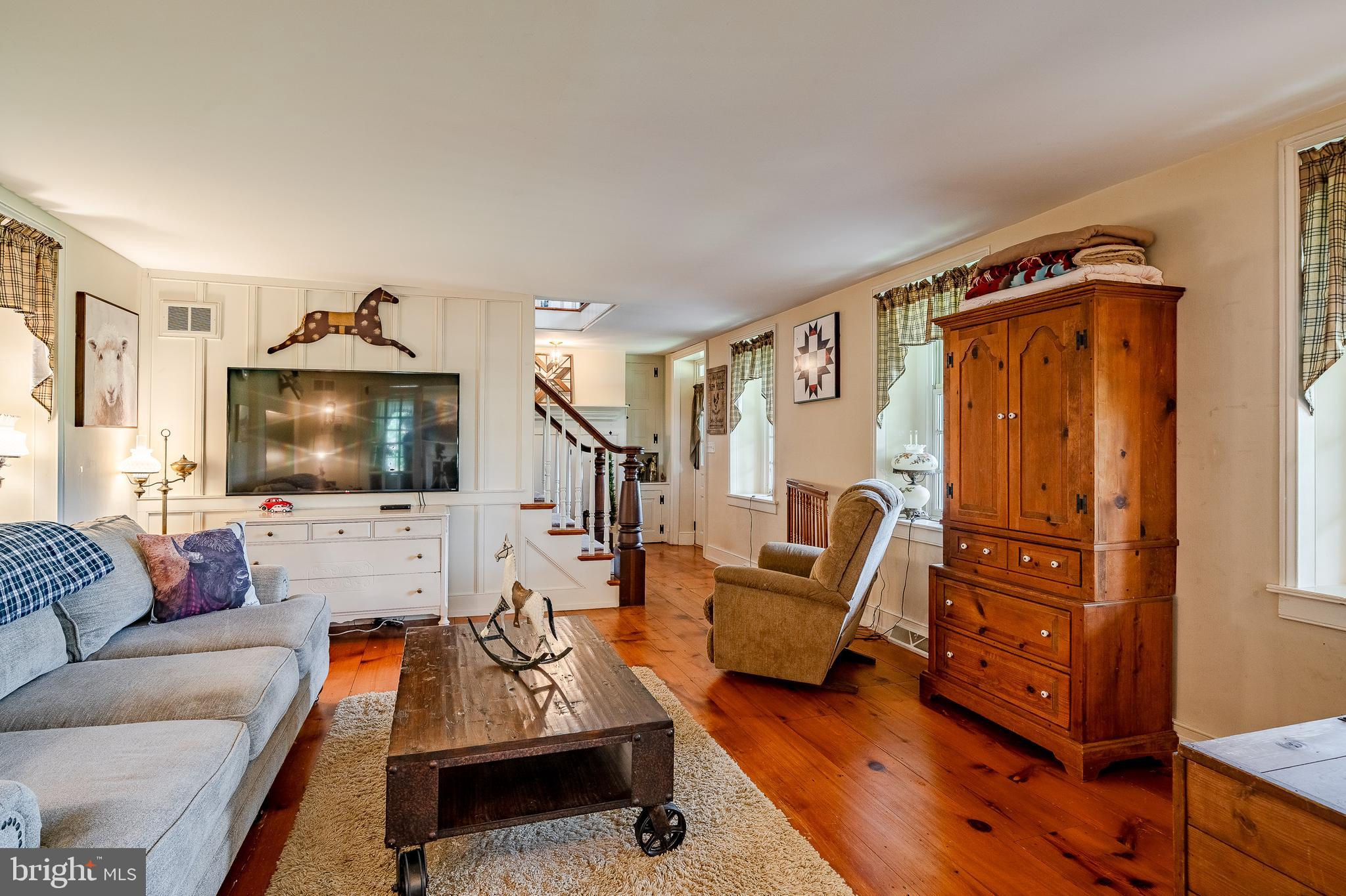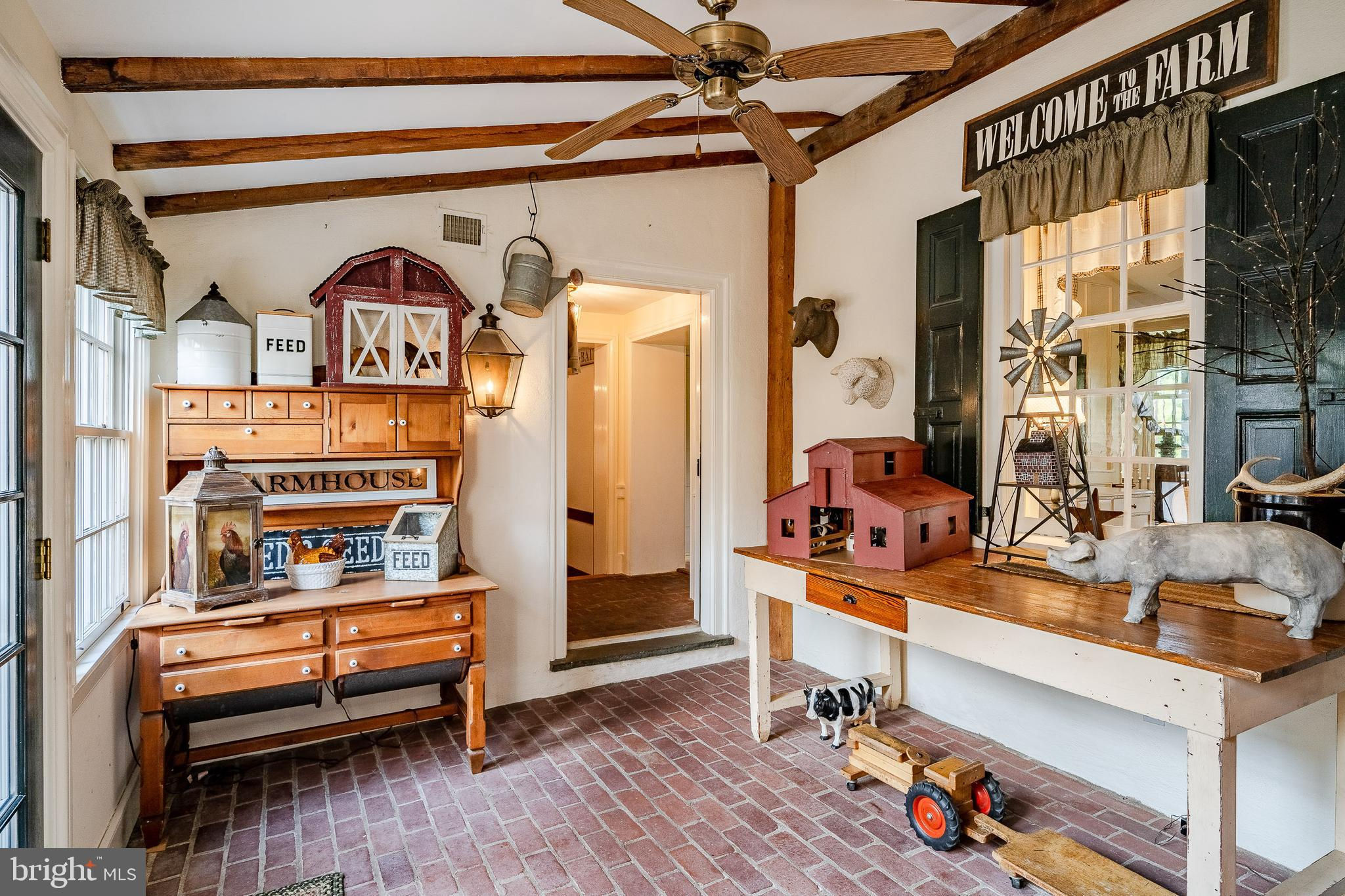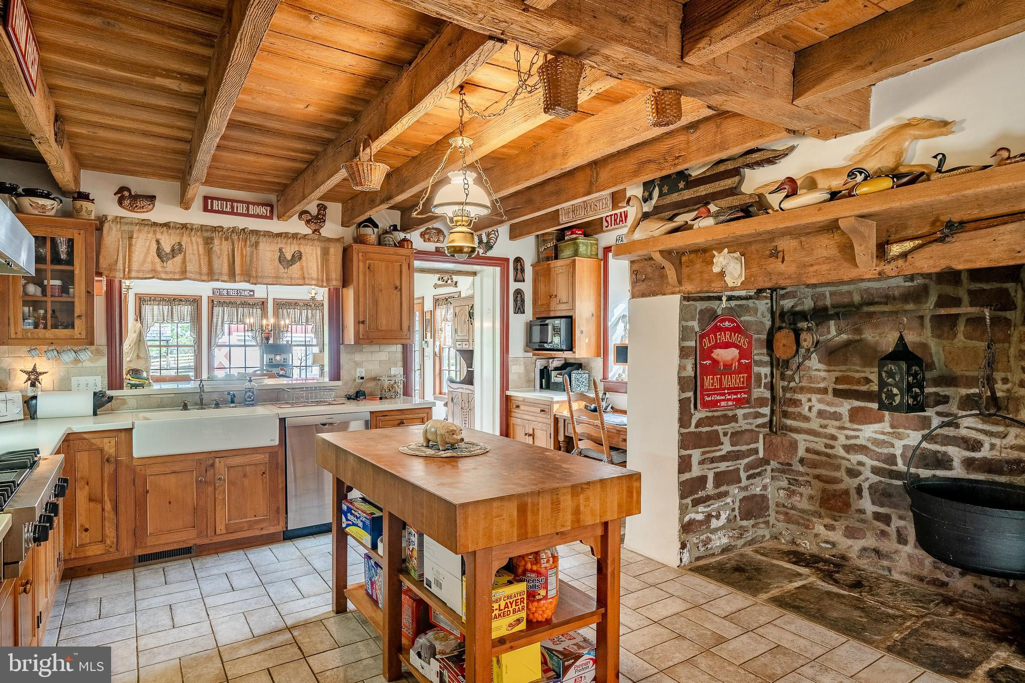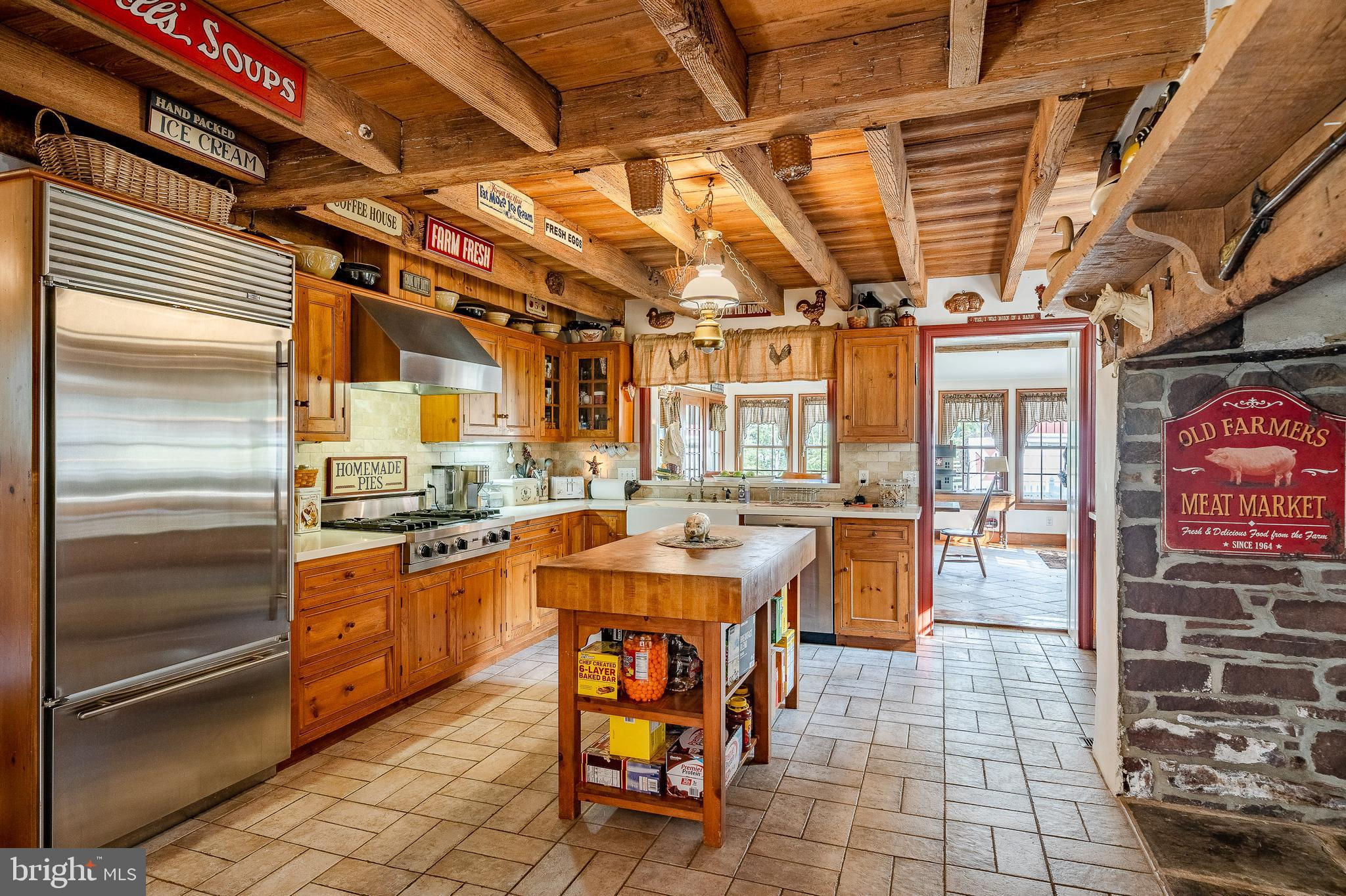 This charming, historic 1700's farmhouse home sits in a tranquil setting in Worcester Township. The sweeping driveway takes you over the re-built, professionally engineered bridge overlooking the gorgeous 8ft deep aerated pond, fully stocked with Bass and Catfish! Relax on your recliners on the IPEdock enjoying the wonderful scenic views. The home has been beautifully updated throughout. The workmanship has paid special attention to maintaining and complementing the original style and era of the home throughout, with random-width pine hardwood floors, crown moldings, updated bathrooms and so much more! The kitchen features stainless steel appliances, corian countertops and custom cabinets, yet captures the old world feel with wooden beams and a huge walk-in fireplace. The back of the house has an addition behind the kitchen which is used as a breakfast/dining area. Both the kitchen and this breakfast room have radiant heated floors. Off the kitchen is the formal dining room with a fireplace beaming with natural light from the wall of windows overlooking the pond; a perfect spot for entertaining guests! This flows into the cozy den which is just off the entryway. Plus there's a huge family room with a wood beamed ceiling, fireplace and built-in bar area. The mudroom is conveniently located off the kitchen and offers more of that farmhouse charm with brick tiled floors and walls and wooden beams.The pretty powder room, front staircase and opening the ceilings to expose the beams were updates by the current owners. To the right side of the home there is a three-story addition built by the owners, which includes a huge office on the main floor with French doors and a private IPE deck. Below on the lower level is a finished walkout basement with French doors which give access to the original basement that has storage and houses the utilities with 2 water heaters, 400 amp electric service, 5 zone A/C 6 zones for heat. The property has natural gas. The house renovation included all new systems – plumbing, electric, HVAC etc. and has a generator which powers the entire property including the house and all the outbuildings. The upper level of the addition is the master bathroom/dressing area with large walk-in closets. The 2nd floor has 4 bedrooms, with a spacious primary suite with its own cozy fireplace and plenty of closets that leads to the ensuite bathroom with double vanity, soaking jacuzzi tub, glass shower stall and French doors that open to a Julitte balcony overlooking the lush landscape. There are 3 more bedrooms and a hall bathroom with double vanity and tub/shower combo. The main house has all newer Pella windows and doors in 2022 had a new roof including cedar shake shingles, standing seam copper, copper gutters and downspouts at a cost of $200K. Sit on your lovely covered, wrap-aroundporch and take in the beauty of your surroundings. Enjoy the renovated, inground pool with decking and a quaint cabana (also renovated) which has a kitchen area, shower/powder room and changing area making entertaining pool side a breeze with built-in outdoor brick grill ovens! Touring the rest of the property, you'll find a large barn with 8 stalls that are totally rewired. There are 2 other outbuildings, one of which is a 40ft x 60ft Quonset Hut which currently houses the owner’s classic car collection;this building is heated and insulated. Within the last 10 years, the Quonset Hut, barn, and Lean-To have had new standing seam metal roofs and cypress siding installed. The cabana also has a new cedar shake roof. The Quonset Hut, barn and cabana have cupolas. The owners added a $120K dam when the pond was dredged taking it from 4ft to 8ft deep. The land is filled with meadows and trails perfect for horse riding, hiking and observing nature and abundant wildlife. Minimum 10 acres included, additional acres to be determined based on conversations with Worcester Township