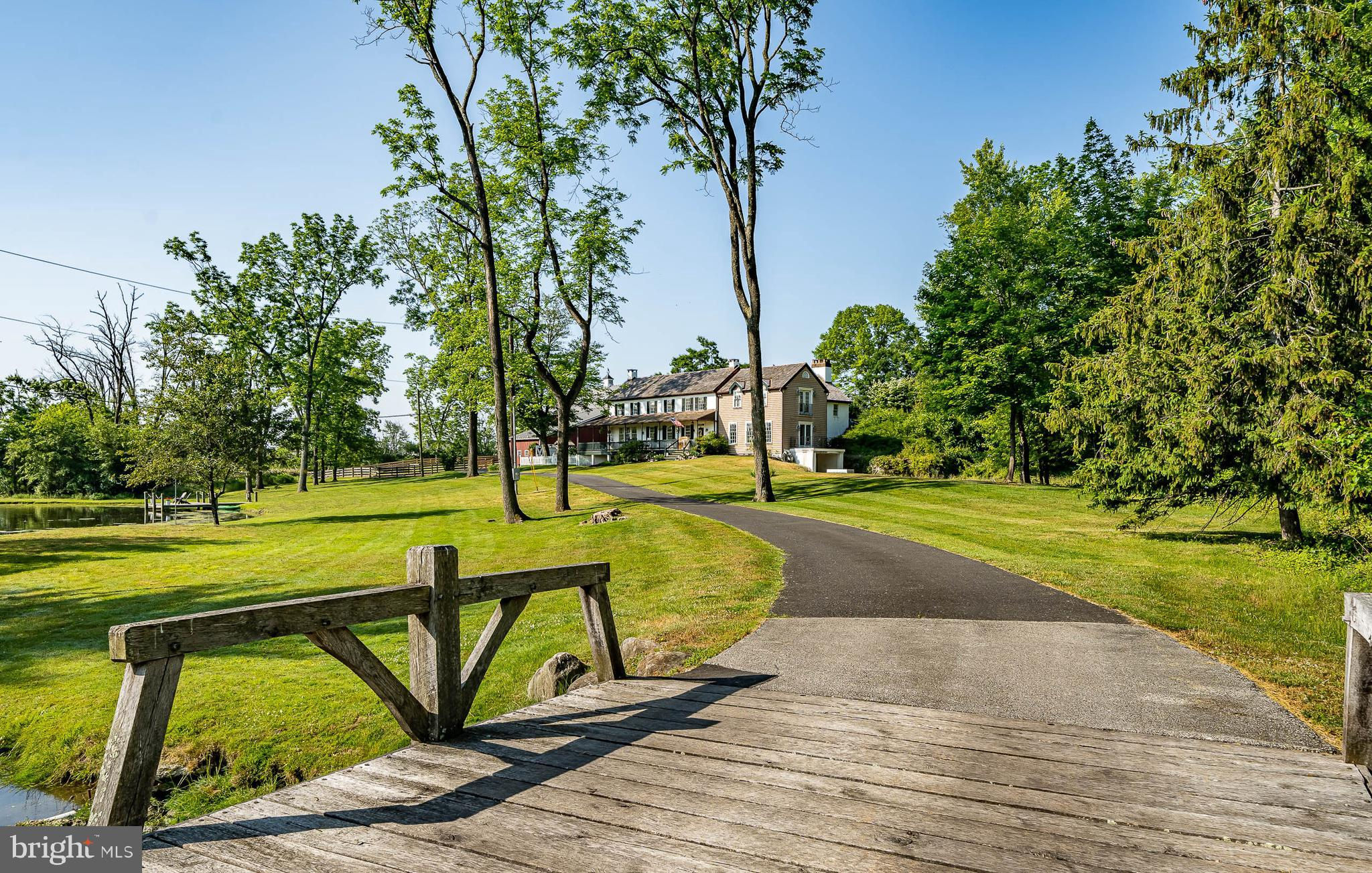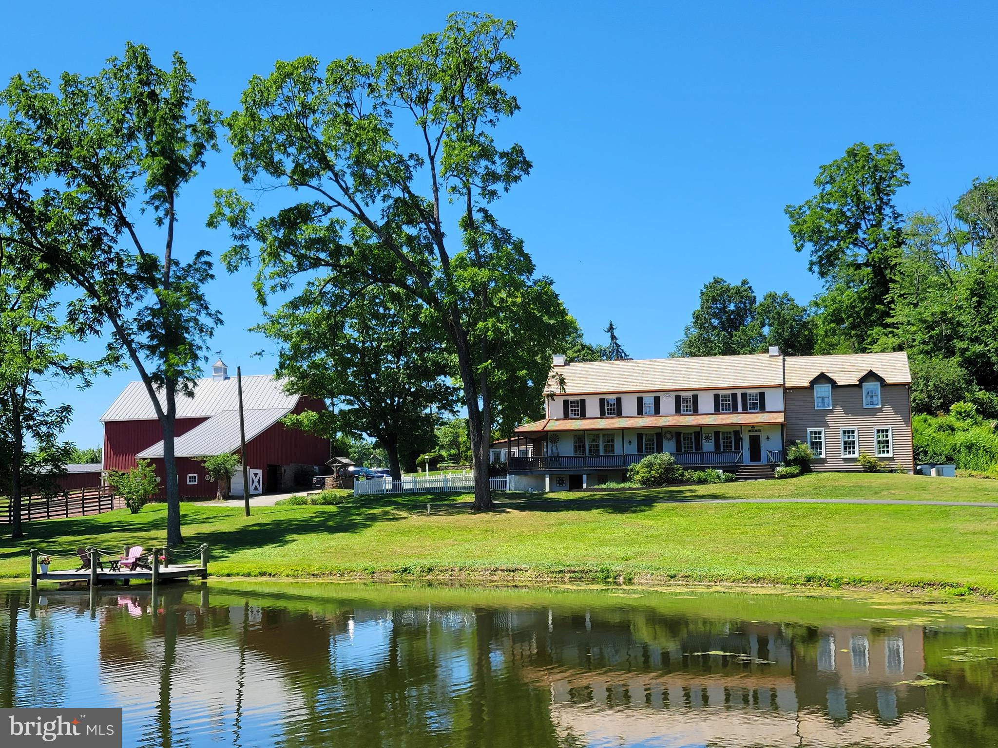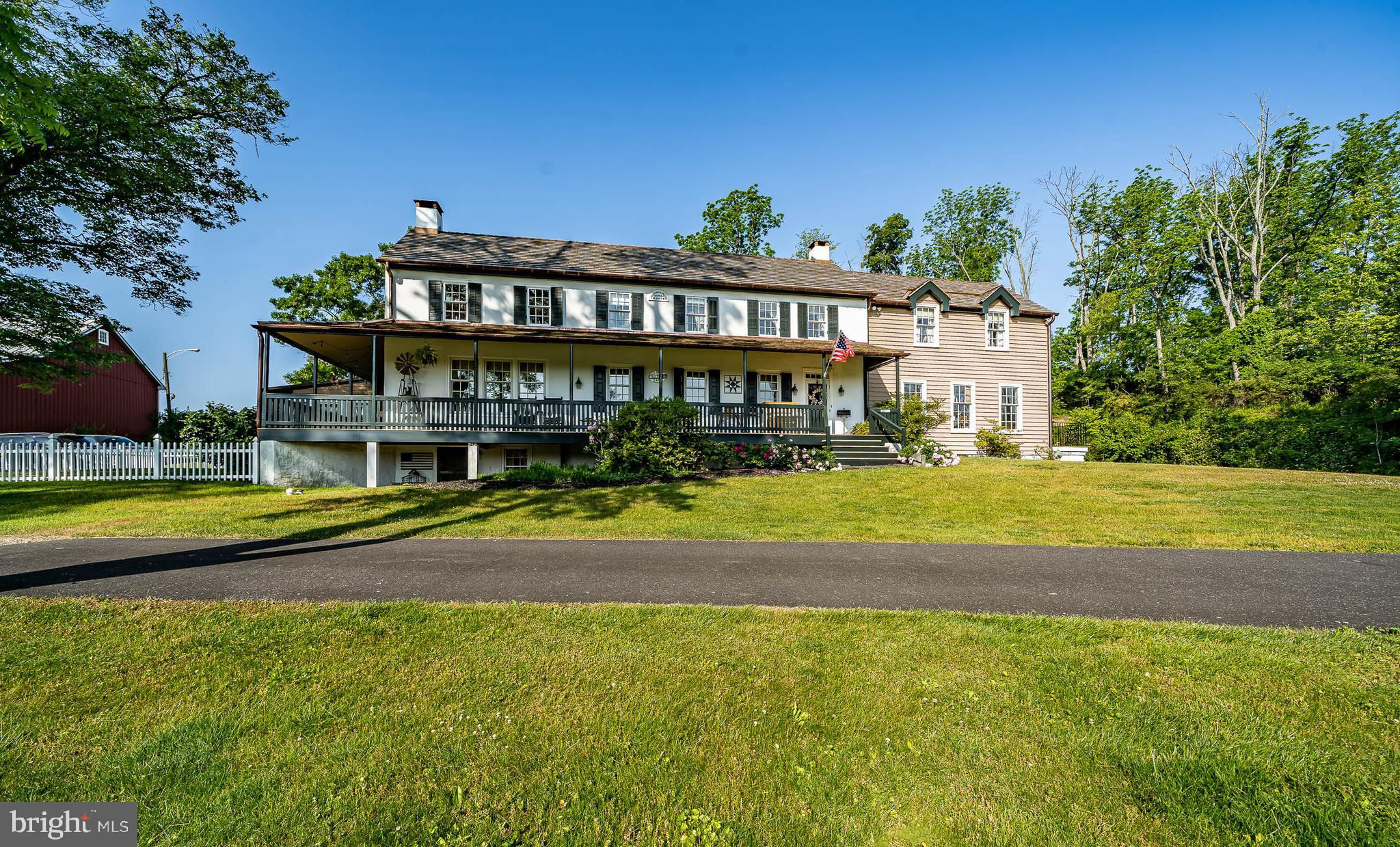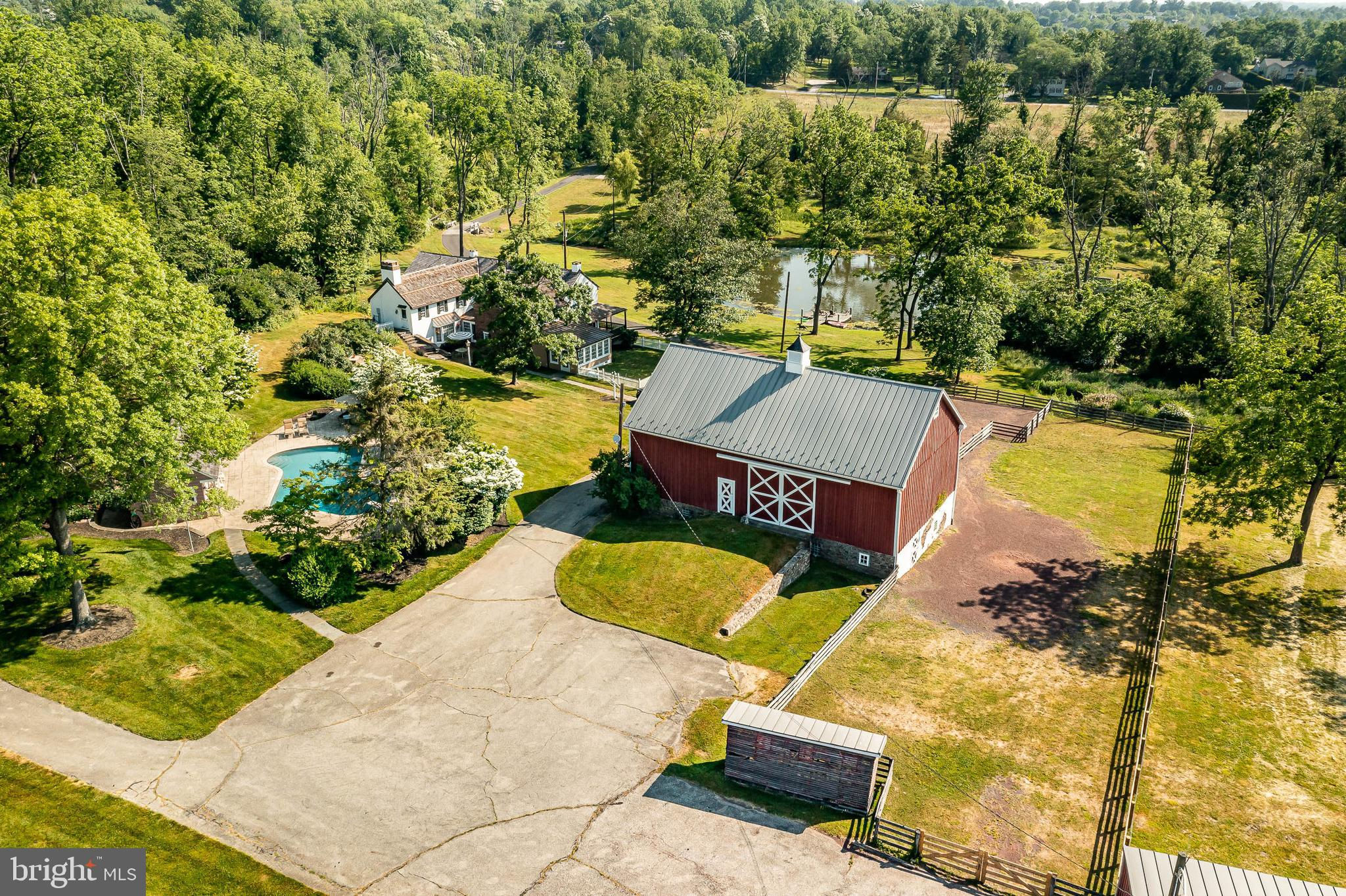 This charming, historic 1700's farmhouse home sits in a tranquil setting in Worcester Township. The sweeping driveway takes you over the re-built, professionally engineered bridge overlooking the gorgeous 8ft deep aerated pond, fully stocked with Bass and Catfish! Relax on your recliners on the IPEdock enjoying the wonderful scenic views. The home has been beautifully updated throughout. The workmanship has paid special attention to maintaining and complementing the original style and era of the home throughout, with random-width pine hardwood floors, crown moldings, updated bathrooms and so much more! The kitchen features stainless steel appliances, corian countertops and custom cabinets, yet captures the old world feel with wooden beams and a huge walk-in fireplace. The back of the house has an addition behind the kitchen which is used as a breakfast/dining area. Both the kitchen and this breakfast room have radiant heated floors. Off the kitchen is the formal dining room with a fireplace beaming with natural light from the wall of windows overlooking the pond; a perfect spot for entertaining guests! This flows into the cozy den which is just off the entryway. Plus there's a huge family room with a wood beamed ceiling, fireplace and built-in bar area. The mudroom is conveniently located off the kitchen and offers more of that farmhouse charm with brick tiled floors and walls and wooden beams.The pretty powder room, front staircase and opening the ceilings to expose the beams were updates by the current owners. To the right side of the home there is a three-story addition built by the owners, which includes a huge office on the main floor with French doors and a private IPE deck. Below on the lower level is a finished walkout basement with French doors which give access to the original basement that has storage and houses the utilities with 2 water heaters, 400 amp electric service, 5 zone A/C 6 zones for heat. The property has natural gas. The house renovation included all new systems – plumbing, electric, HVAC etc. and has a generator which powers the entire property including the house and all the outbuildings. The upper level of the addition is the master bathroom/dressing area with large walk-in closets. The 2nd floor has 4 bedrooms, with a spacious primary suite with its own cozy fireplace and plenty of closets that leads to the ensuite bathroom with double vanity, soaking jacuzzi tub, glass shower stall and French doors that open to a Julitte balcony overlooking the lush landscape. There are 3 more bedrooms and a hall bathroom with double vanity and tub/shower combo. The main house has all newer Pella windows and doors in 2022 had a new roof including cedar shake shingles, standing seam copper, copper gutters and downspouts at a cost of $200K. Sit on your lovely covered, wrap-aroundporch and take in the beauty of your surroundings. Enjoy the renovated, inground pool with decking and a quaint cabana (also renovated) which has a kitchen area, shower/powder room and changing area making entertaining pool side a breeze with built-in outdoor brick grill ovens! Touring the rest of the property, you'll find a large barn with 8 stalls that are totally rewired. There are 2 other outbuildings, one of which is a 40ft x 60ft Quonset Hut which currently houses the owner’s classic car collection;this building is heated and insulated. Within the last 10 years, the Quonset Hut, barn, and Lean-To have had new standing seam metal roofs and cypress siding installed. The cabana also has a new cedar shake roof. The Quonset Hut, barn and cabana have cupolas. The owners added a $120K dam when the pond was dredged taking it from 4ft to 8ft deep. The land is filled with meadows and trails perfect for horse riding, hiking and observing nature and abundant wildlife. Minimum 10 acres included, additional acres to be determined based on conversations with Worcester Township