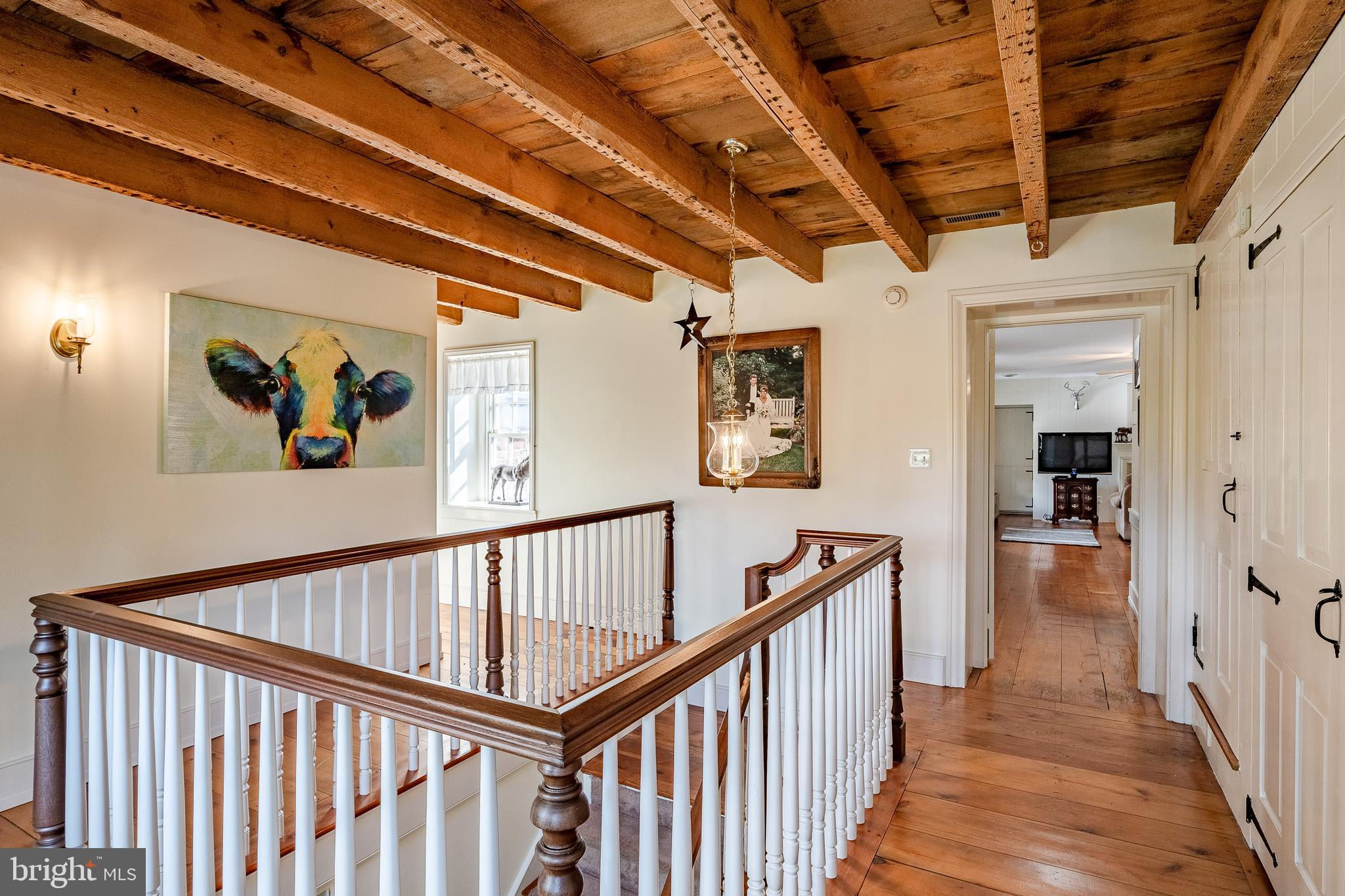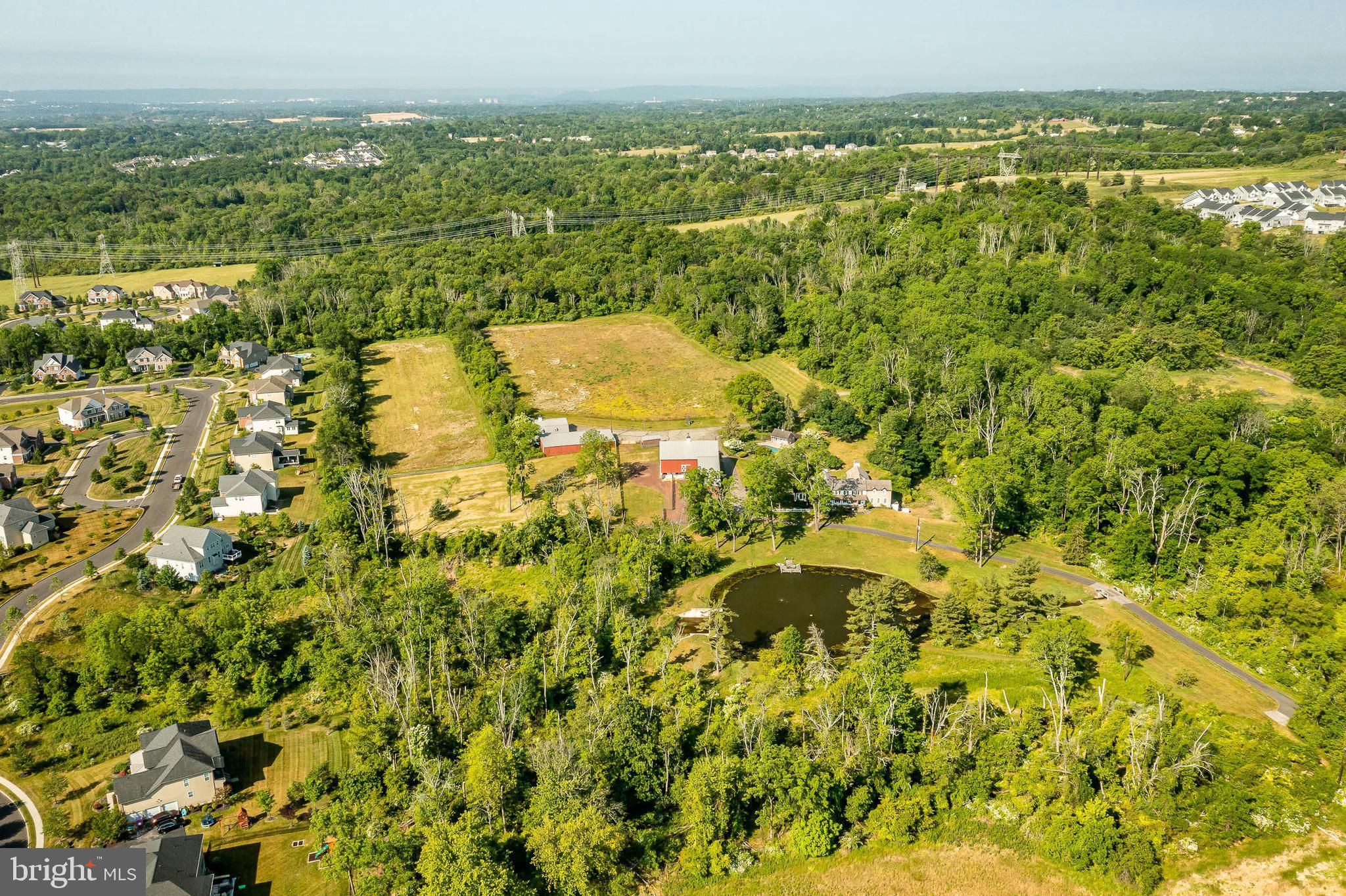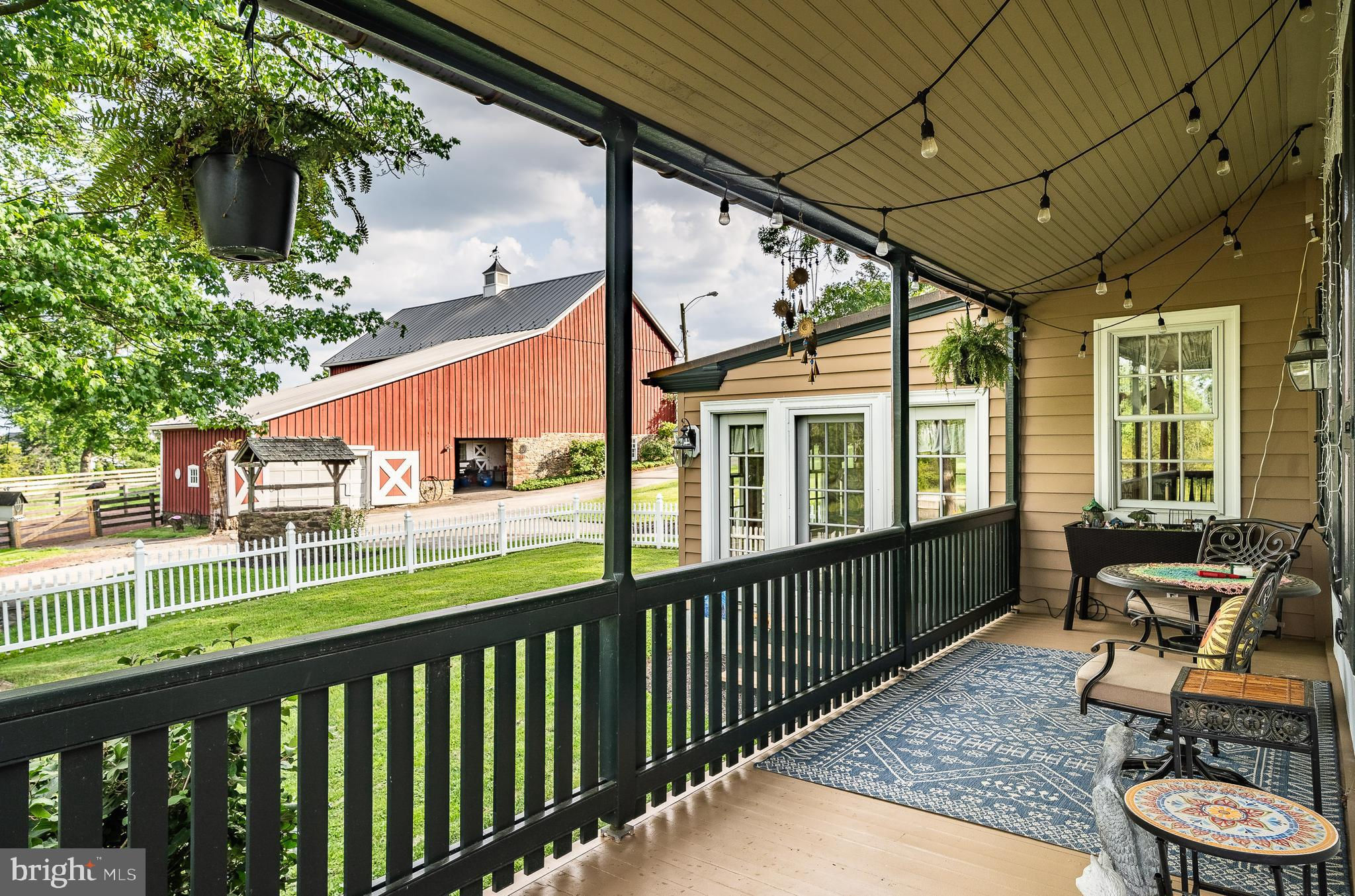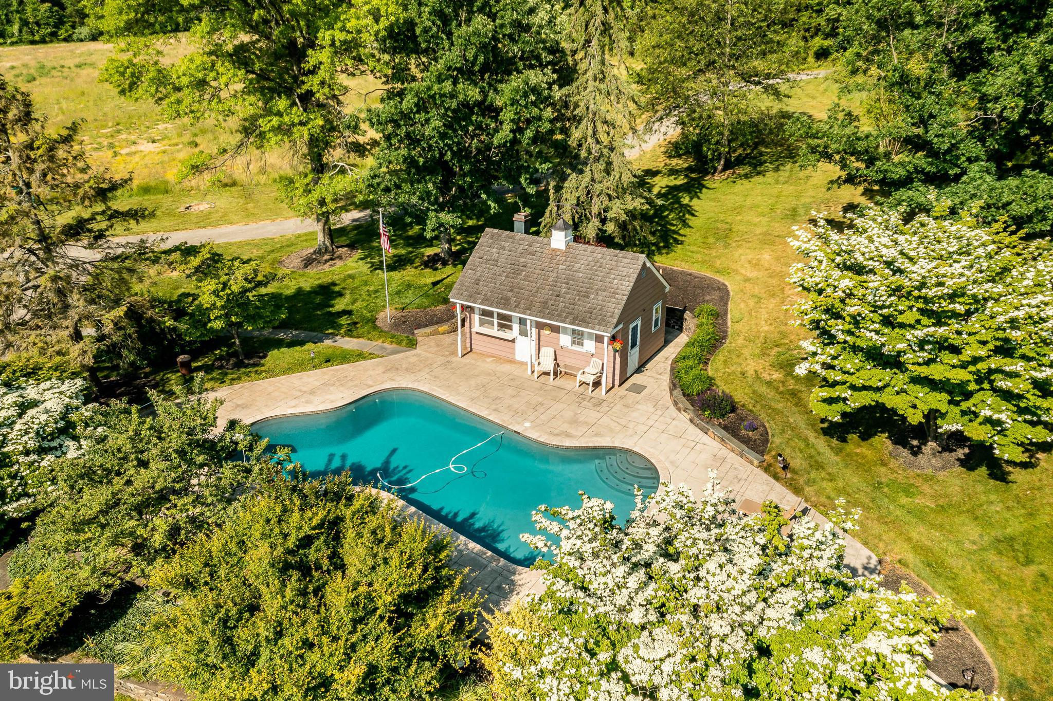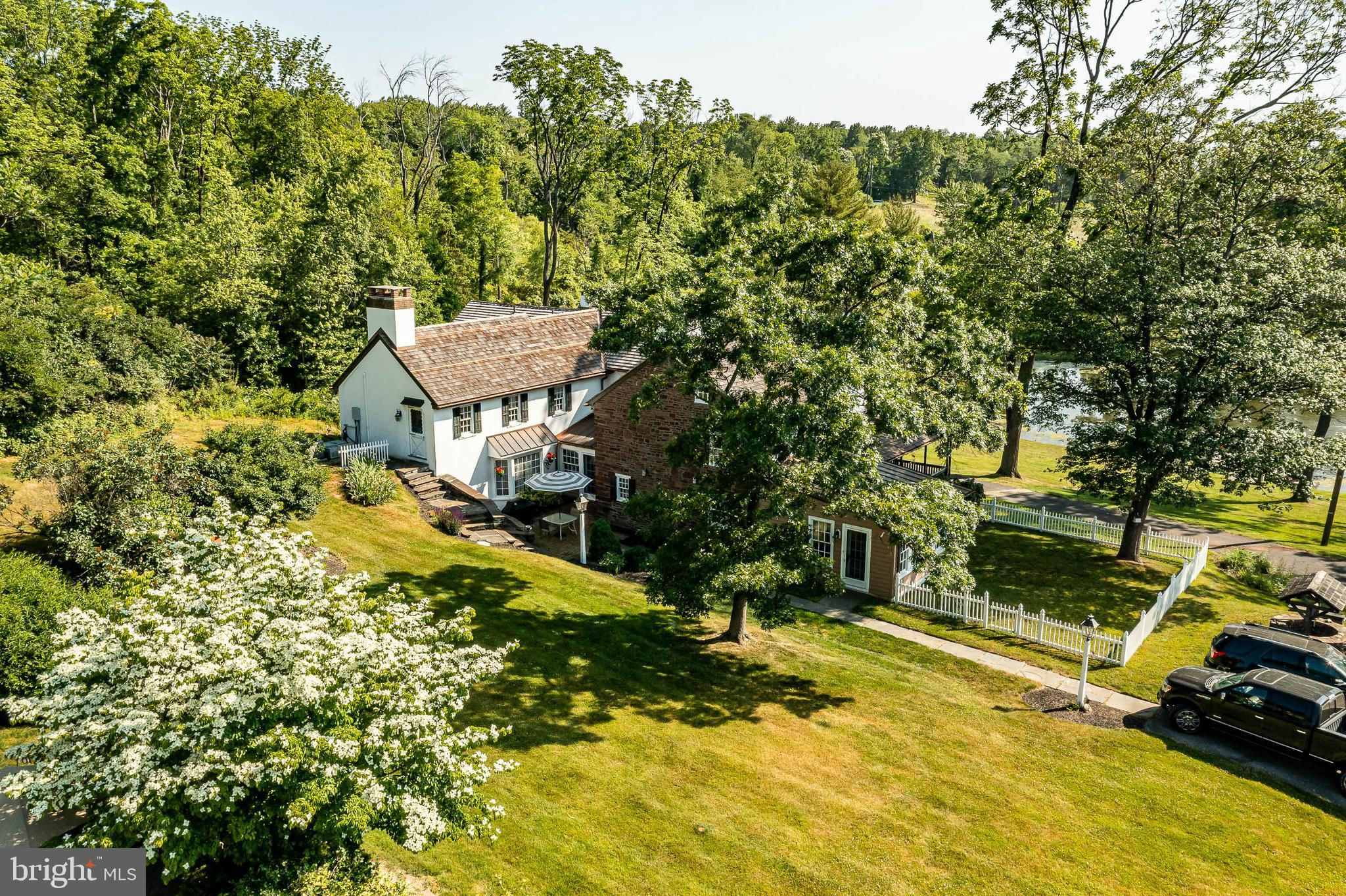 This charming, historic 1700's farmhouse home sits in a tranquil setting in Worcester Township. The sweeping driveway takes you over the re-built, professionally engineered bridge overlooking the gorgeous 8ft deep aerated pond, fully stocked with Bass and Catfish! Relax on your recliners on the IPEdock enjoying the wonderful scenic views. The home has been beautifully updated throughout. The workmanship has paid special attention to maintaining and complementing the original style and era of the home throughout, with random-width pine hardwood floors, crown moldings, updated bathrooms and so much more! The kitchen features stainless steel appliances, corian countertops and custom cabinets, yet captures the old world feel with wooden beams and a huge walk-in fireplace. The back of the house has an addition behind the kitchen which is used as a breakfast/dining area. Both the kitchen and this breakfast room have radiant heated floors. Off the kitchen is the formal dining room with a fireplace beaming with natural light from the wall of windows overlooking the pond; a perfect spot for entertaining guests! This flows into the cozy den which is just off the entryway. Plus there's a huge family room with a wood beamed ceiling, fireplace and built-in bar area. The mudroom is conveniently located off the kitchen and offers more of that farmhouse charm with brick tiled floors and walls and wooden beams.The pretty powder room, front staircase and opening the ceilings to expose the beams were updates by the current owners. To the right side of the home there is a three-story addition built by the owners, which includes a huge office on the main floor with French doors and a private IPE deck. Below on the lower level is a finished walkout basement with French doors which give access to the original basement that has storage and houses the utilities with 2 water heaters, 400 amp electric service, 5 zone A/C 6 zones for heat. The property has natural gas. The house renovation included all new systems – plumbing, electric, HVAC etc. and has a generator which powers the entire property including the house and all the outbuildings. The upper level of the addition is the master bathroom/dressing area with large walk-in closets. The 2nd floor has 4 bedrooms, with a spacious primary suite with its own cozy fireplace and plenty of closets that leads to the ensuite bathroom with double vanity, soaking jacuzzi tub, glass shower stall and French doors that open to a Julitte balcony overlooking the lush landscape. There are 3 more bedrooms and a hall bathroom with double vanity and tub/shower combo. The main house has all newer Pella windows and doors in 2022 had a new roof including cedar shake shingles, standing seam copper, copper gutters and downspouts at a cost of $200K. Sit on your lovely covered, wrap-aroundporch and take in the beauty of your surroundings. Enjoy the renovated, inground pool with decking and a quaint cabana (also renovated) which has a kitchen area, shower/powder room and changing area making entertaining pool side a breeze with built-in outdoor brick grill ovens! Touring the rest of the property, you'll find a large barn with 8 stalls that are totally rewired. There are 2 other outbuildings, one of which is a 40ft x 60ft Quonset Hut which currently houses the owner’s classic car collection;this building is heated and insulated. Within the last 10 years, the Quonset Hut, barn, and Lean-To have had new standing seam metal roofs and cypress siding installed. The cabana also has a new cedar shake roof. The Quonset Hut, barn and cabana have cupolas. The owners added a $120K dam when the pond was dredged taking it from 4ft to 8ft deep. The land is filled with meadows and trails perfect for horse riding, hiking and observing nature and abundant wildlife. Minimum 10 acres included, additional acres to be determined based on conversations with Worcester Township