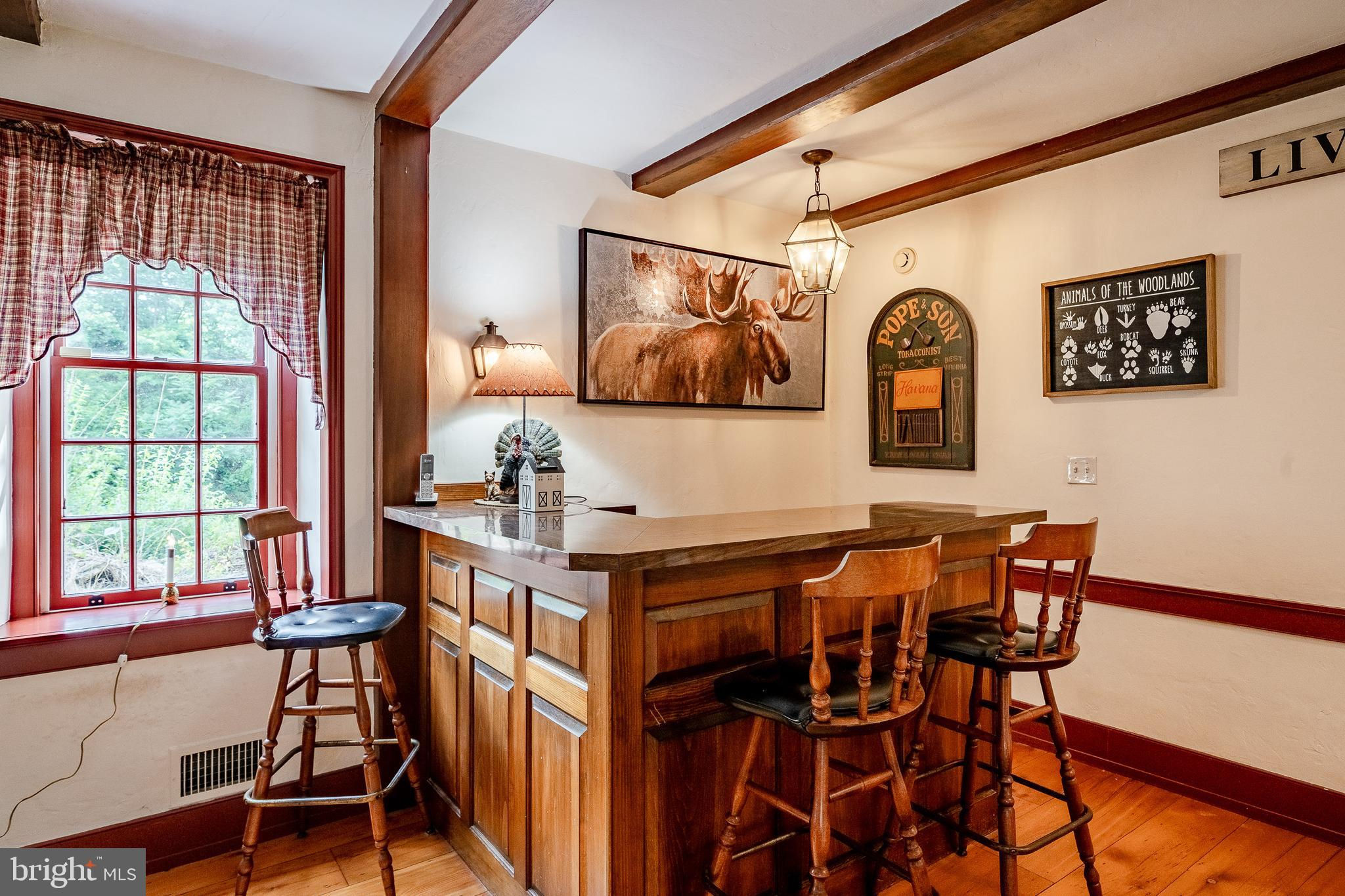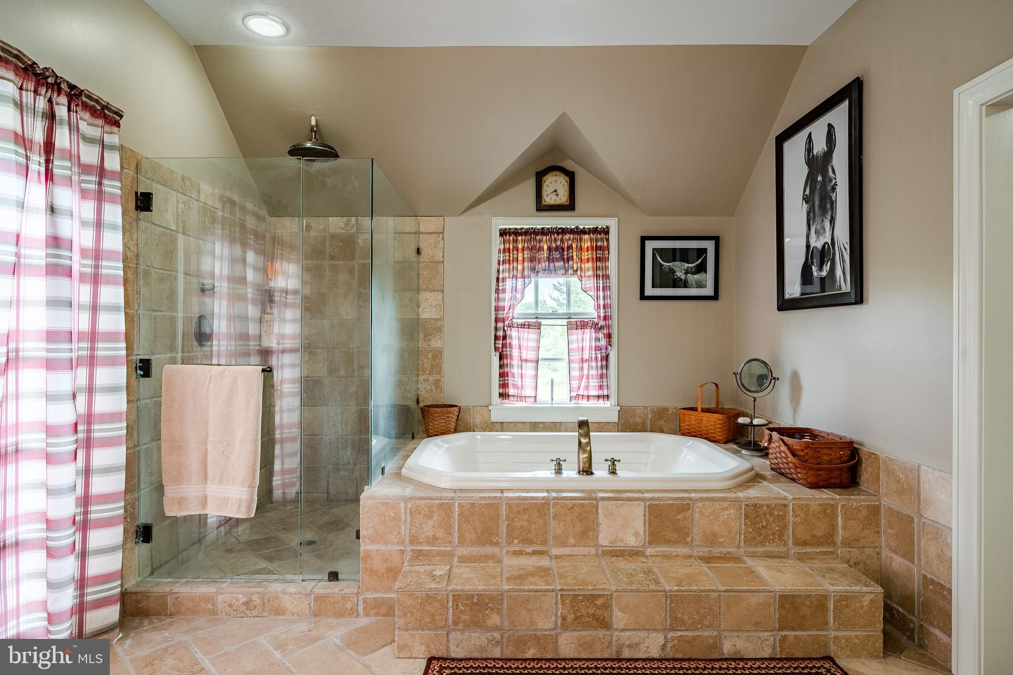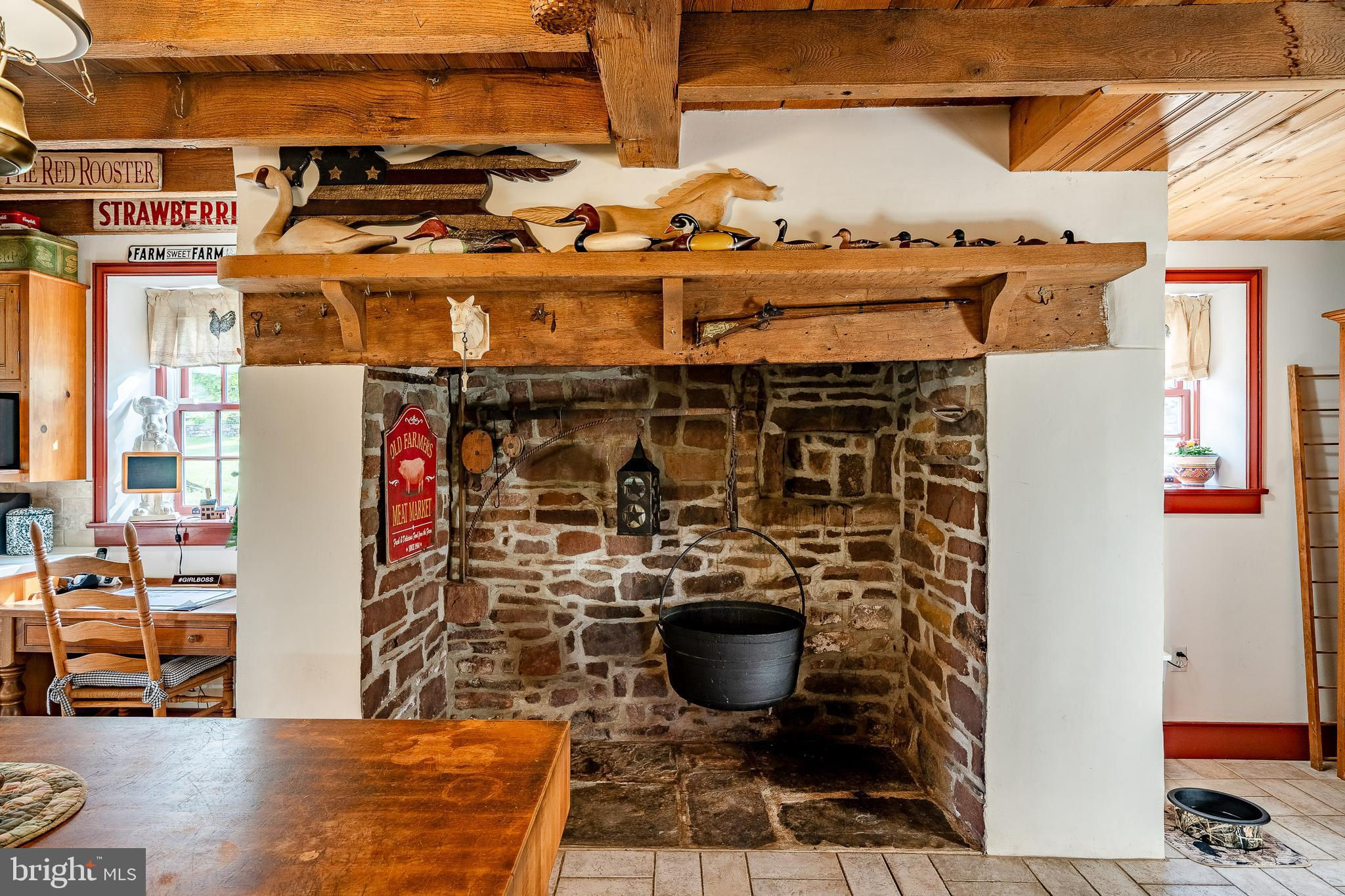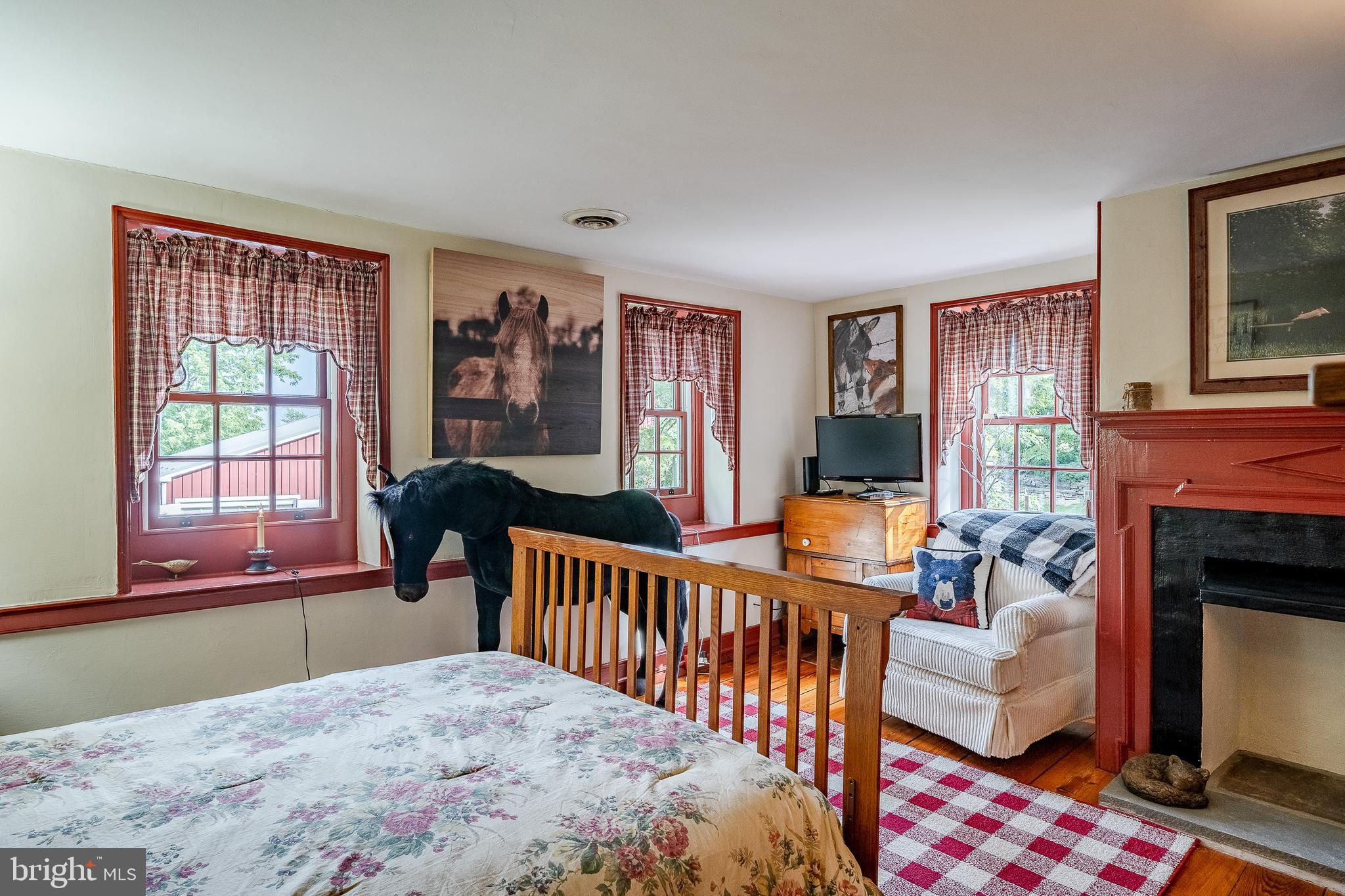 This charming, historic 1700's farmhouse home sits in a tranquil setting in Worcester Township. The sweeping driveway takes you over the re-built, professionally engineered bridge overlooking the gorgeous 8ft deep aerated pond, fully stocked with Bass and Catfish! Relax on your recliners on the IPEdock enjoying the wonderful scenic views. The home has been beautifully updated throughout. The workmanship has paid special attention to maintaining and complementing the original style and era of the home throughout, with random-width pine hardwood floors, crown moldings, updated bathrooms and so much more! The kitchen features stainless steel appliances, corian countertops and custom cabinets, yet captures the old world feel with wooden beams and a huge walk-in fireplace. The back of the house has an addition behind the kitchen which is used as a breakfast/dining area. Both the kitchen and this breakfast room have radiant heated floors. Off the kitchen is the formal dining room with a fireplace beaming with natural light from the wall of windows overlooking the pond; a perfect spot for entertaining guests! This flows into the cozy den which is just off the entryway. Plus there's a huge family room with a wood beamed ceiling, fireplace and built-in bar area. The mudroom is conveniently located off the kitchen and offers more of that farmhouse charm with brick tiled floors and walls and wooden beams.The pretty powder room, front staircase and opening the ceilings to expose the beams were updates by the current owners. To the right side of the home there is a three-story addition built by the owners, which includes a huge office on the main floor with French doors and a private IPE deck. Below on the lower level is a finished walkout basement with French doors which give access to the original basement that has storage and houses the utilities with 2 water heaters, 400 amp electric service, 5 zone A/C 6 zones for heat. The property has natural gas. The house renovation included all new systems – plumbing, electric, HVAC etc. and has a generator which powers the entire property including the house and all the outbuildings. The upper level of the addition is the master bathroom/dressing area with large walk-in closets. The 2nd floor has 4 bedrooms, with a spacious primary suite with its own cozy fireplace and plenty of closets that leads to the ensuite bathroom with double vanity, soaking jacuzzi tub, glass shower stall and French doors that open to a Julitte balcony overlooking the lush landscape. There are 3 more bedrooms and a hall bathroom with double vanity and tub/shower combo. The main house has all newer Pella windows and doors in 2022 had a new roof including cedar shake shingles, standing seam copper, copper gutters and downspouts at a cost of $200K. Sit on your lovely covered, wrap-aroundporch and take in the beauty of your surroundings. Enjoy the renovated, inground pool with decking and a quaint cabana (also renovated) which has a kitchen area, shower/powder room and changing area making entertaining pool side a breeze with built-in outdoor brick grill ovens! Touring the rest of the property, you'll find a large barn with 8 stalls that are totally rewired. There are 2 other outbuildings, one of which is a 40ft x 60ft Quonset Hut which currently houses the owner’s classic car collection;this building is heated and insulated. Within the last 10 years, the Quonset Hut, barn, and Lean-To have had new standing seam metal roofs and cypress siding installed. The cabana also has a new cedar shake roof. The Quonset Hut, barn and cabana have cupolas. The owners added a $120K dam when the pond was dredged taking it from 4ft to 8ft deep. The land is filled with meadows and trails perfect for horse riding, hiking and observing nature and abundant wildlife. Minimum 10 acres included, additional acres to be determined based on conversations with Worcester Township