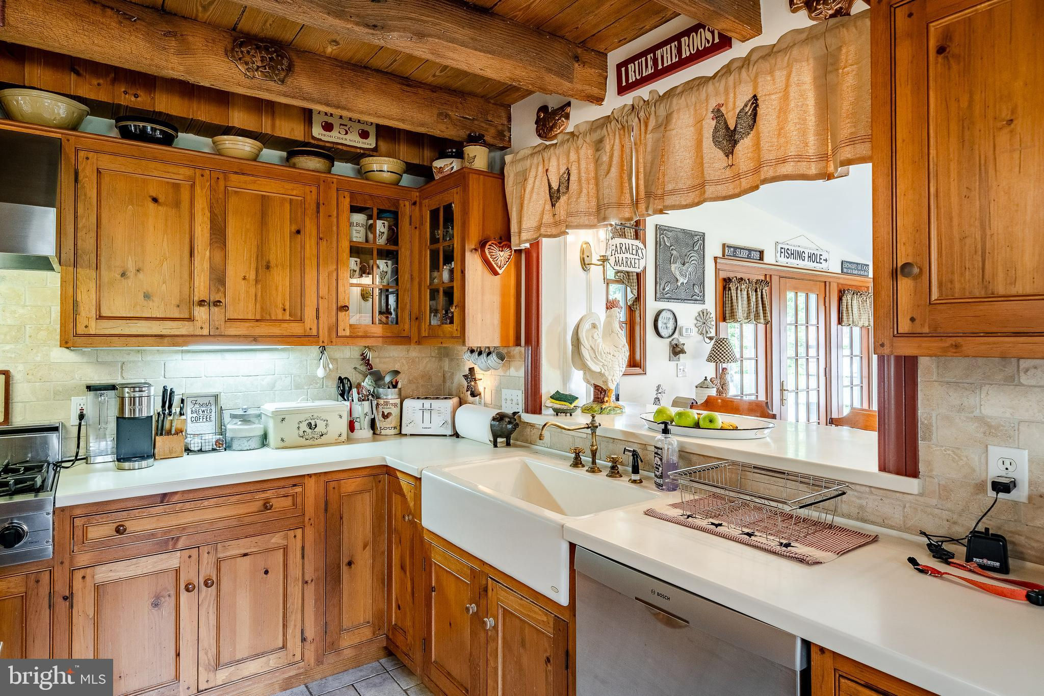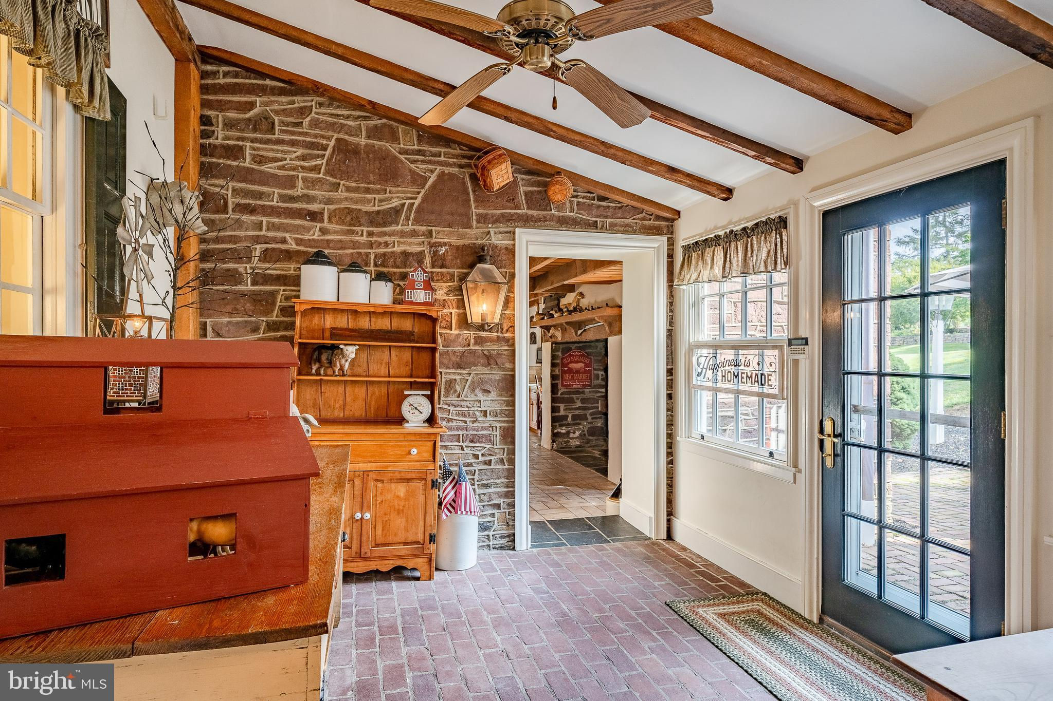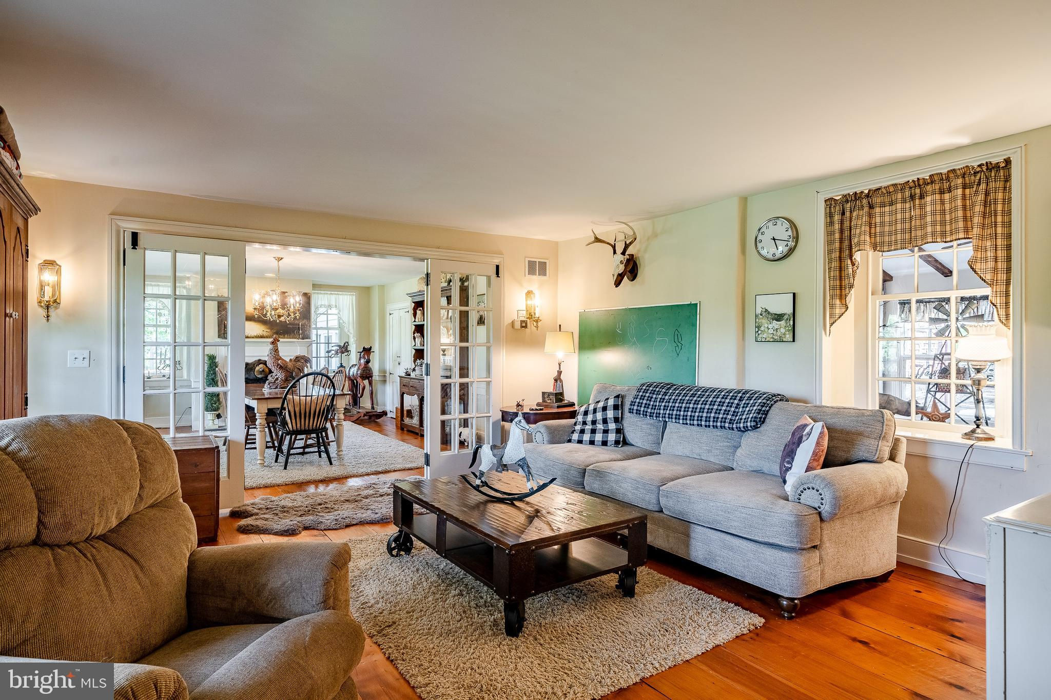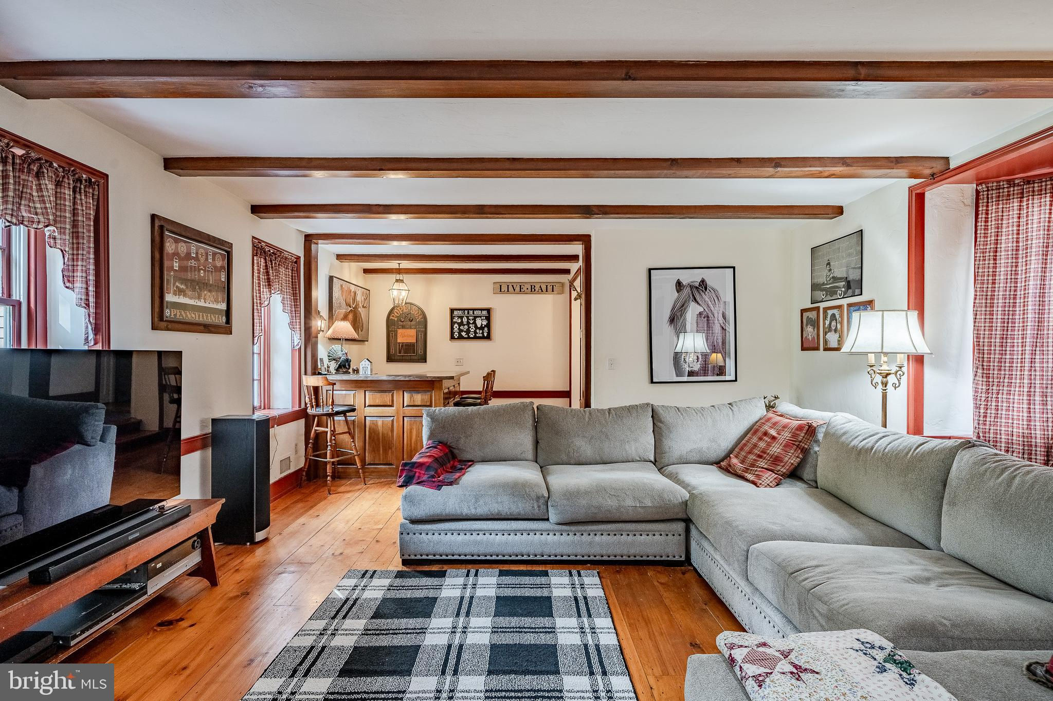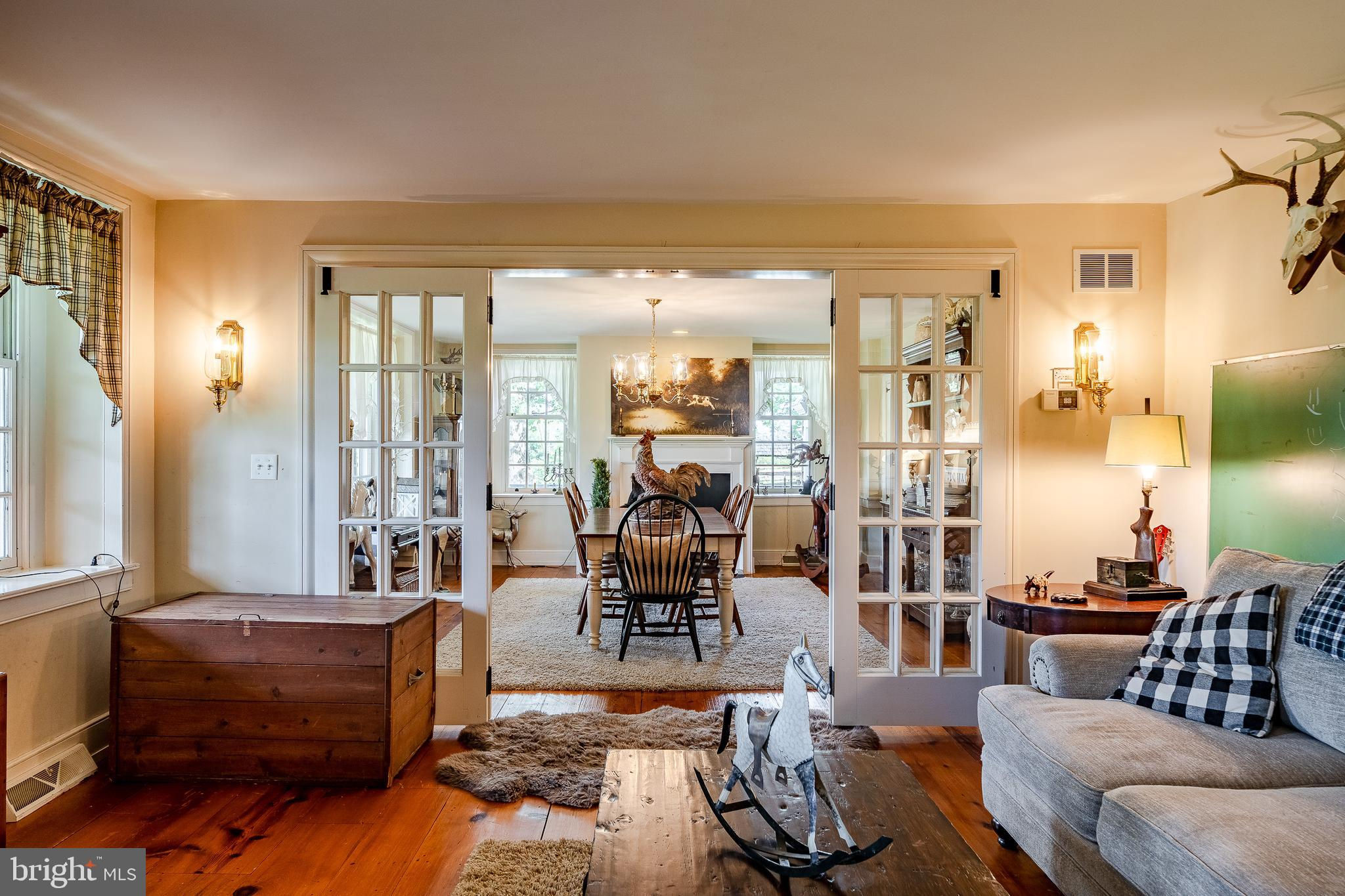 This charming, historic 1700's farmhouse home sits in a tranquil setting in Worcester Township. The sweeping driveway takes you over the re-built, professionally engineered bridge overlooking the gorgeous 8ft deep aerated pond, fully stocked with Bass and Catfish! Relax on your recliners on the IPEdock enjoying the wonderful scenic views. The home has been beautifully updated throughout. The workmanship has paid special attention to maintaining and complementing the original style and era of the home throughout, with random-width pine hardwood floors, crown moldings, updated bathrooms and so much more! The kitchen features stainless steel appliances, corian countertops and custom cabinets, yet captures the old world feel with wooden beams and a huge walk-in fireplace. The back of the house has an addition behind the kitchen which is used as a breakfast/dining area. Both the kitchen and this breakfast room have radiant heated floors. Off the kitchen is the formal dining room with a fireplace beaming with natural light from the wall of windows overlooking the pond; a perfect spot for entertaining guests! This flows into the cozy den which is just off the entryway. Plus there's a huge family room with a wood beamed ceiling, fireplace and built-in bar area. The mudroom is conveniently located off the kitchen and offers more of that farmhouse charm with brick tiled floors and walls and wooden beams.The pretty powder room, front staircase and opening the ceilings to expose the beams were updates by the current owners. To the right side of the home there is a three-story addition built by the owners, which includes a huge office on the main floor with French doors and a private IPE deck. Below on the lower level is a finished walkout basement with French doors which give access to the original basement that has storage and houses the utilities with 2 water heaters, 400 amp electric service, 5 zone A/C 6 zones for heat. The property has natural gas. The house renovation included all new systems – plumbing, electric, HVAC etc. and has a generator which powers the entire property including the house and all the outbuildings. The upper level of the addition is the master bathroom/dressing area with large walk-in closets. The 2nd floor has 4 bedrooms, with a spacious primary suite with its own cozy fireplace and plenty of closets that leads to the ensuite bathroom with double vanity, soaking jacuzzi tub, glass shower stall and French doors that open to a Julitte balcony overlooking the lush landscape. There are 3 more bedrooms and a hall bathroom with double vanity and tub/shower combo. The main house has all newer Pella windows and doors in 2022 had a new roof including cedar shake shingles, standing seam copper, copper gutters and downspouts at a cost of $200K. Sit on your lovely covered, wrap-aroundporch and take in the beauty of your surroundings. Enjoy the renovated, inground pool with decking and a quaint cabana (also renovated) which has a kitchen area, shower/powder room and changing area making entertaining pool side a breeze with built-in outdoor brick grill ovens! Touring the rest of the property, you'll find a large barn with 8 stalls that are totally rewired. There are 2 other outbuildings, one of which is a 40ft x 60ft Quonset Hut which currently houses the owner’s classic car collection;this building is heated and insulated. Within the last 10 years, the Quonset Hut, barn, and Lean-To have had new standing seam metal roofs and cypress siding installed. The cabana also has a new cedar shake roof. The Quonset Hut, barn and cabana have cupolas. The owners added a $120K dam when the pond was dredged taking it from 4ft to 8ft deep. The land is filled with meadows and trails perfect for horse riding, hiking and observing nature and abundant wildlife. Minimum 10 acres included, additional acres to be determined based on conversations with Worcester Township