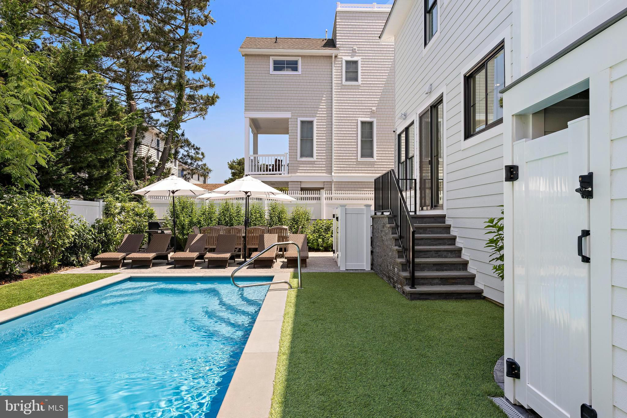 Welcome to a rare gem in the heart of Beach Haven—a custom-built, fully furnished masterpiece at 27 Third Street, crafted in 2022 and just three homes from the pristine shores of Long Beach Island. This 5-bedroom, 4-bathroom ocean-block residence redefines coastal living, blending cutting-edge technology with sophisticated design in a location that hasn’t seen a listing of this caliber in years. Step inside to discover an interior that exudes elegance, with ceramic floors, bespoke built-ins, and custom cabinetry throughout. The gourmet kitchen is a chef’s dream, featuring high-end appliances and a seamless flow into the open-concept living area, perfect for entertaining or quiet family nights. Professionally decorated with premium Serena & Lily furnishings, every detail reflects timeless style and comfort. The home’s “smart brain” elevates your lifestyle with a state-of-the-art camera system, high-speed internet on every floor, and an integrated sound system. Upstairs, the primary suite offers a serene escape, while four additional bedrooms provide ample space for family, guests, or a home office. Step onto the expansive deck to soak in breathtaking ocean views, a daily reminder of your coastal paradise. The backyard is an oasis, with bluestone pavers and a heated saltwater pool, ideal for summer gatherings or tranquil afternoons. Just a short walk from Beach Haven’s vibrant bars, shops, and restaurants, this turnkey retreat combines modern luxury with the charm of downtown. Don’t miss this once-in-a-lifetime opportunity—schedule your tour today!