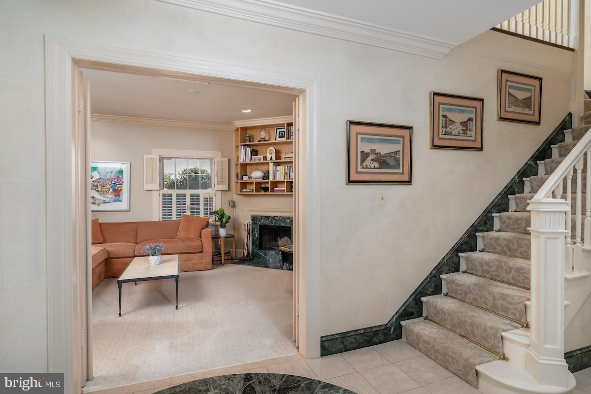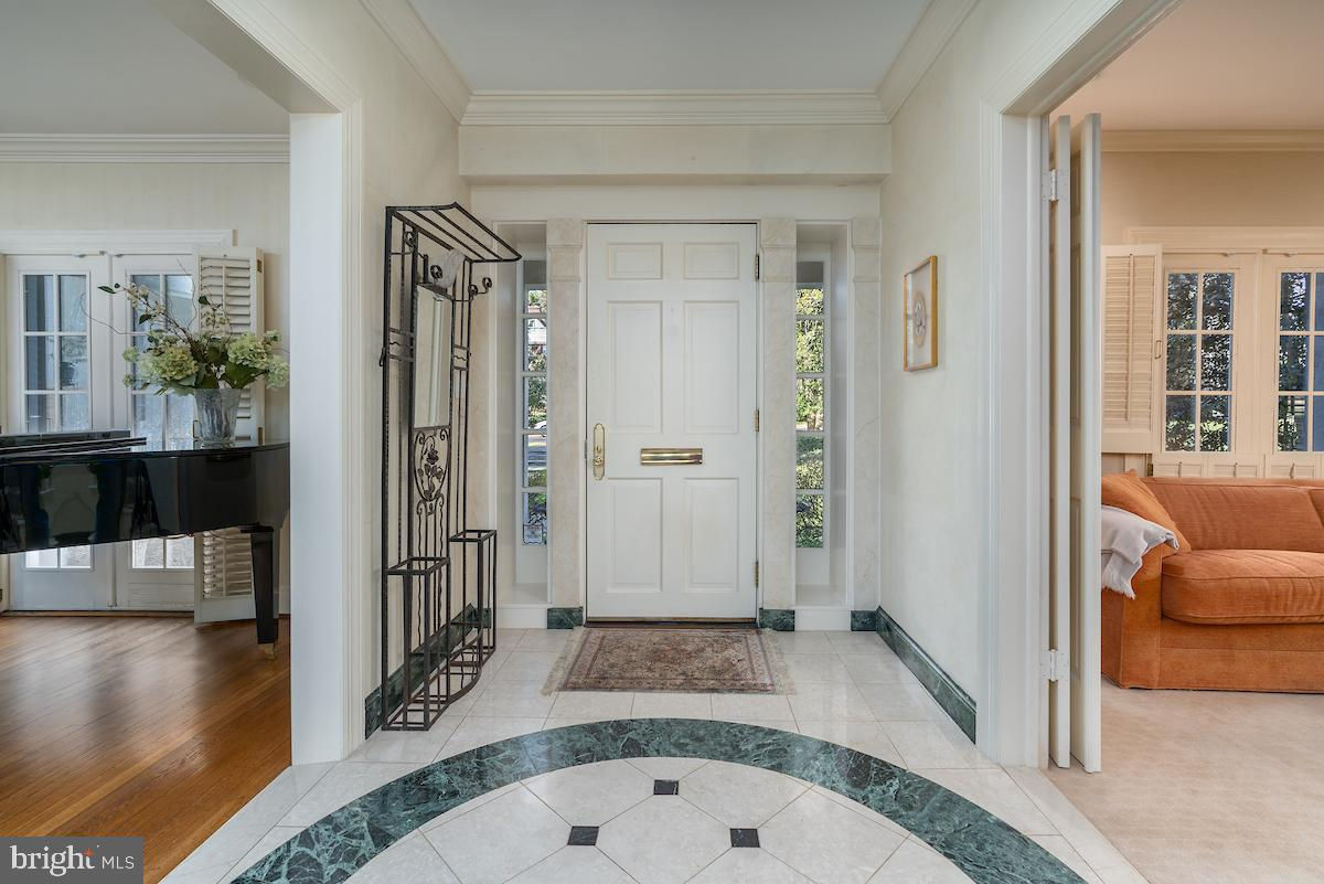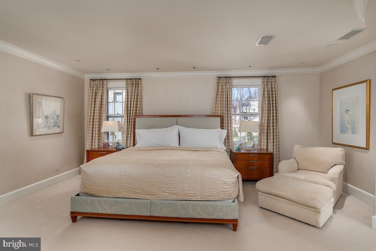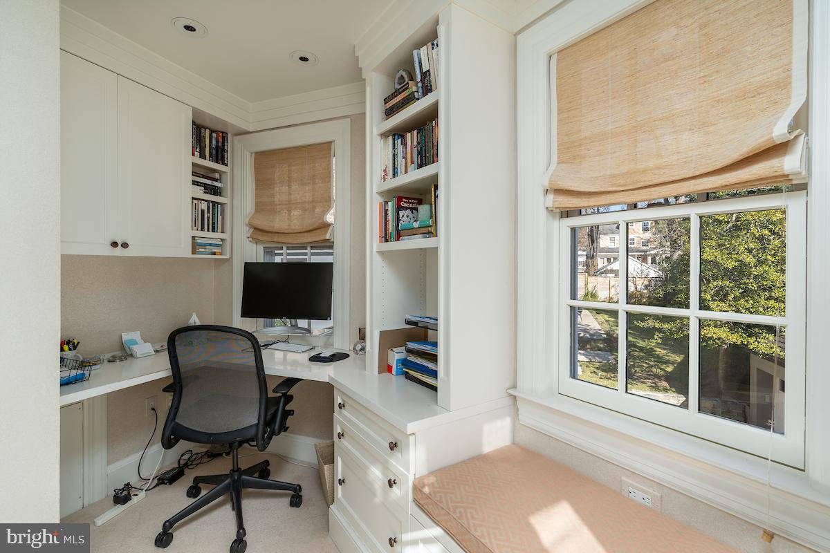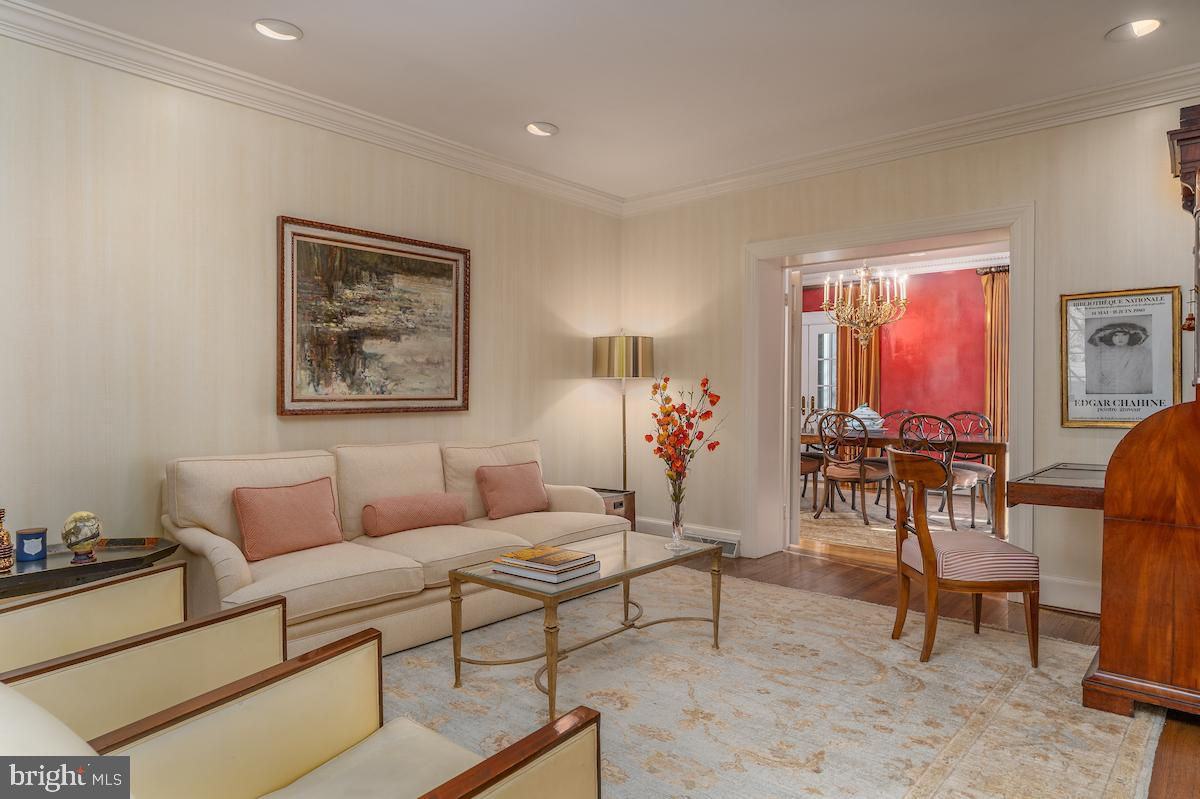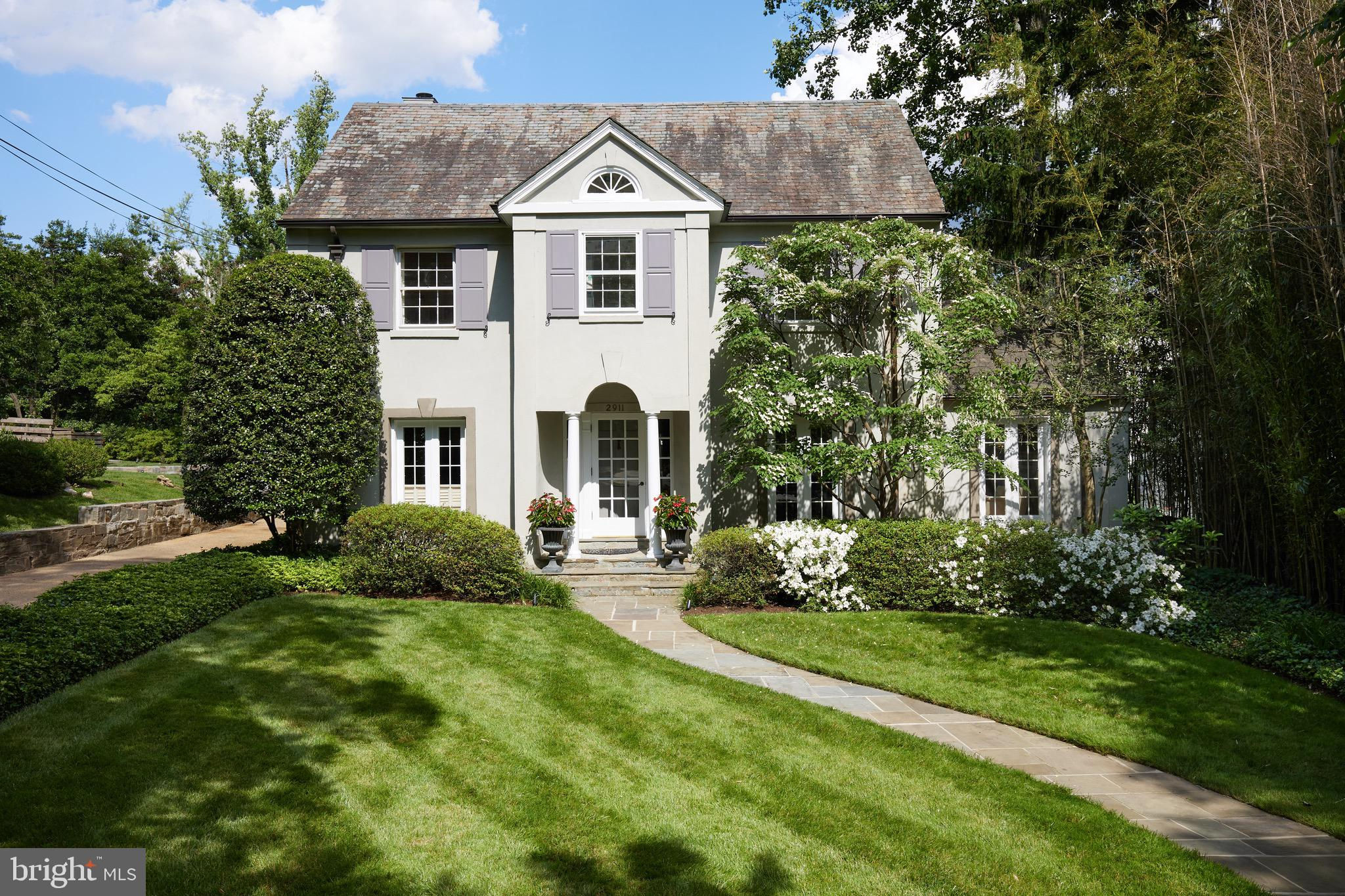 YOU'RE GOING TO LOVE THIS PRICE IMPROVEMENT! This exquisite home, situated on a quiet street in the esteemed neighborhood of Wesley Heights, boasts an array of luxurious features that make it a haven for those with discerning taste. Sitting back from the road and nestled among mature gardens, this home welcomes you with a distinguished presence. The entryway makes a grand statement with faux-painted limestone walls and a two-tone marble floor with intricate inlays and opens to the sophisticated Living Room/Library, expansive Dining Room as well as the Family Room/Study. The Living Room is a refined area with stunning built-ins, a wood-burning fireplace that is flanked with French doors and elegant molding details. The room is adorned with faux-paint in a Moire’ Silk finish, adding a unique texture and depth to the space. The Family Room is to the left of the entry and is a comfortable retreat with custom built-in bookshelves and another wood-burning fireplace. From the entry your eye is drawn down the hall to the captivating Dining Room with it’s opulent high-gloss faux-painted walls. Three French doors flood the room with natural light and offer a seamless connection to the outdoors. Perfectly placed in the rear of the home is the updated Kitchen that exudes charm, sophistication and functionality.. It features a French limestone floor and custom cabinetry throughout offering ample and unique storage to allow for an organized and clutter-free space. The kitchen is equipped with top-of-the-line appliances, Costa Esmerelda granite countertops and a large island featuring a White Fantasy granite countertop. The charming and unique circular breakfast/dining area addition is complete with floor-to-ceiling Pella windows and a radiant heated floor providing an inviting setting for casual gatherings. The kitchen exits to the lovely flagstone patio for al-fresco dining as well as to the large two door, two car garage. A portico from the garage to the kitchen door provides cover in inclement weather. In the hallway between the Family Room and Kitchen is a dedicated space for work or study with a built-in desk and storage and the Powder Room is a work of art, featuring a stenciled floor by Marcus Pluntke, Venetian Plaster walls and a gold leaf ceiling. The second level features a stunning guest room with a cedar closet and a full hallway bath with hand-painted walls. Another full bath connects the two other large bedrooms each featuring built-ins such as desks, dressers and storage. The Primary Bedroom Suite is a luxurious retreat that includes 2 walk-in closets, an en-suite bath with double sinks, a soaking tub and a TV built into the mirror. Off the owners BR is a circular sitting room with a gas fireplace, limestone hearth, a stunning faux-painted ceiling and is surrounded by floor-to-ceiling windows. An office, adjacent to the sitting room, features beautiful custom millwork and a private balcony. The third floor offers 3 additional bedrooms, one with a large bonus room and a full hall bath with skylight. The lower level includes a recreation room, storage, laundry room and a full bath With an easy commute downtown and conveniently located near Glover Archbold Park, Battery Kemble Park and Horace Mann school, this exceptional home combines architectural elegance with functional design and luxurious finishes, making it an ideal place to call home.