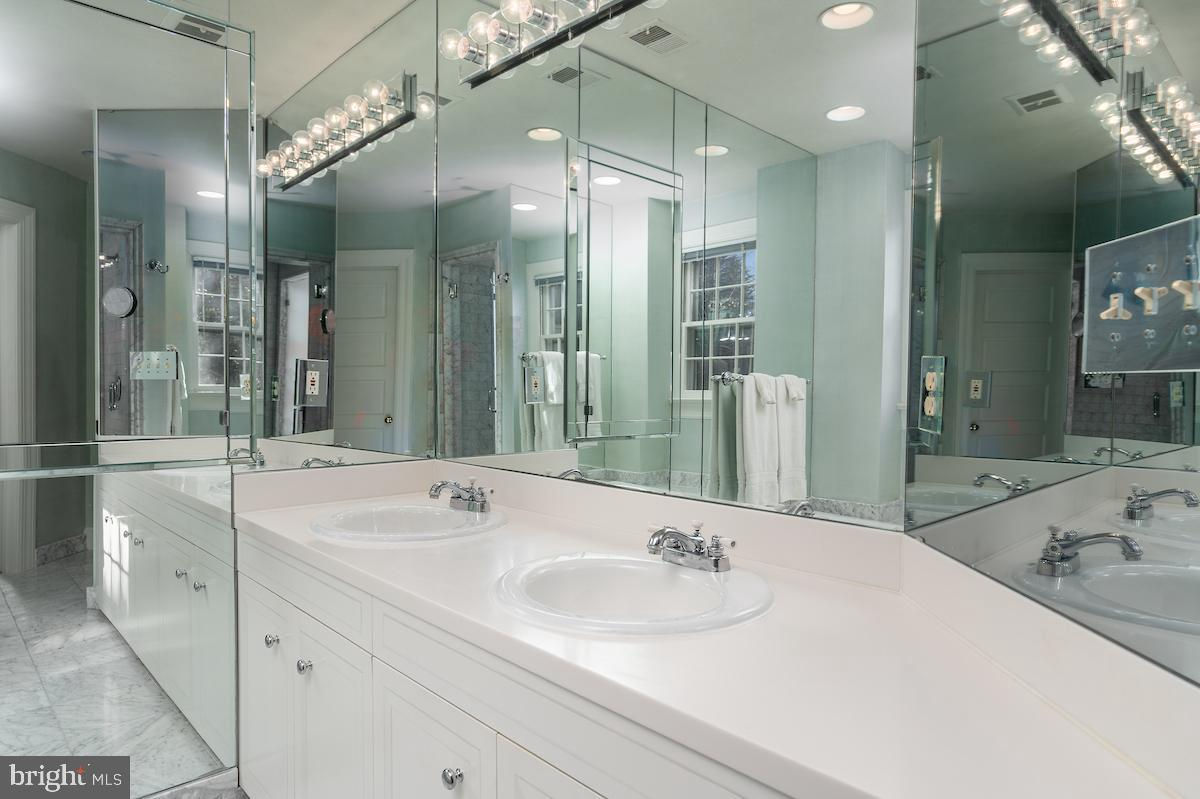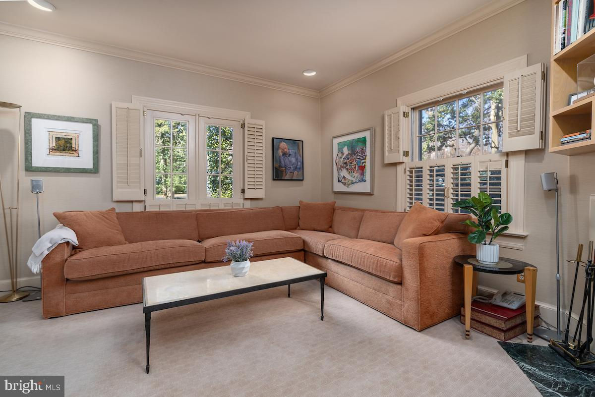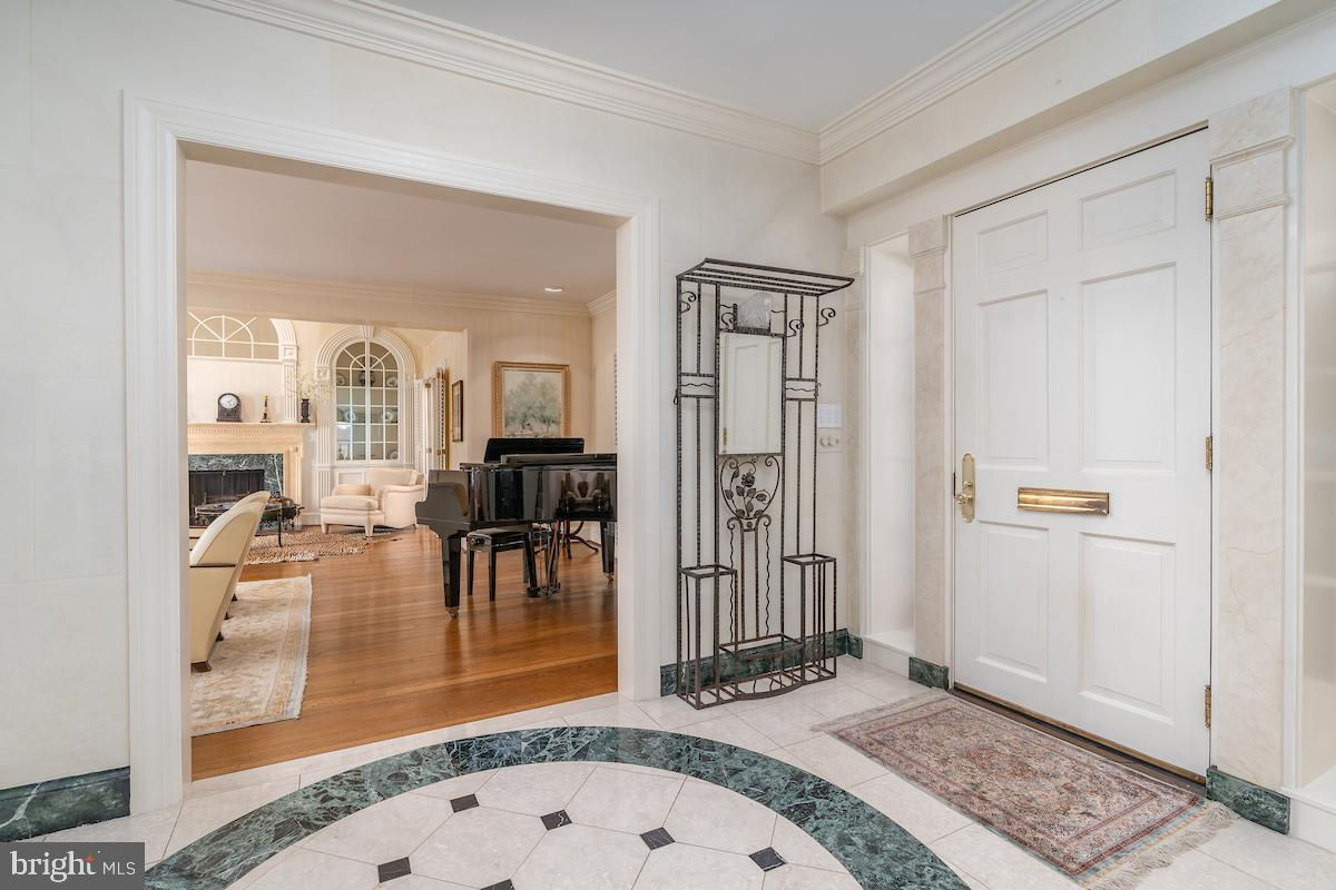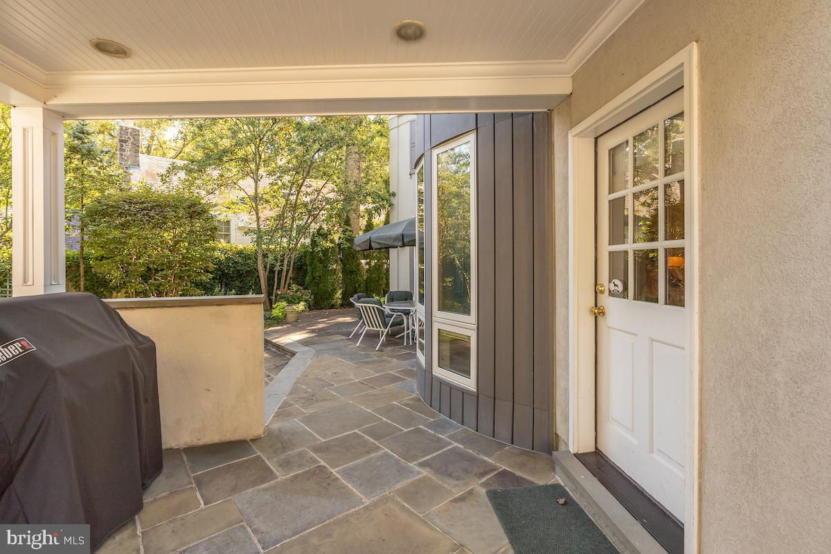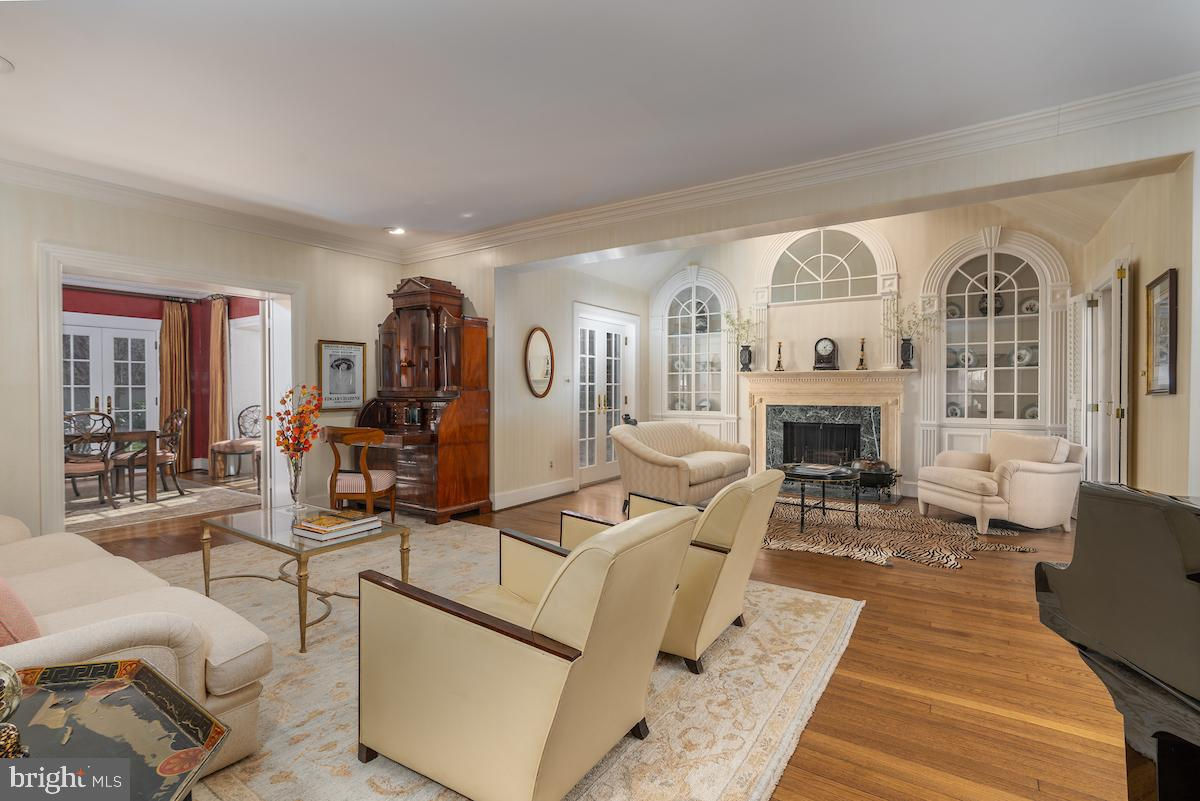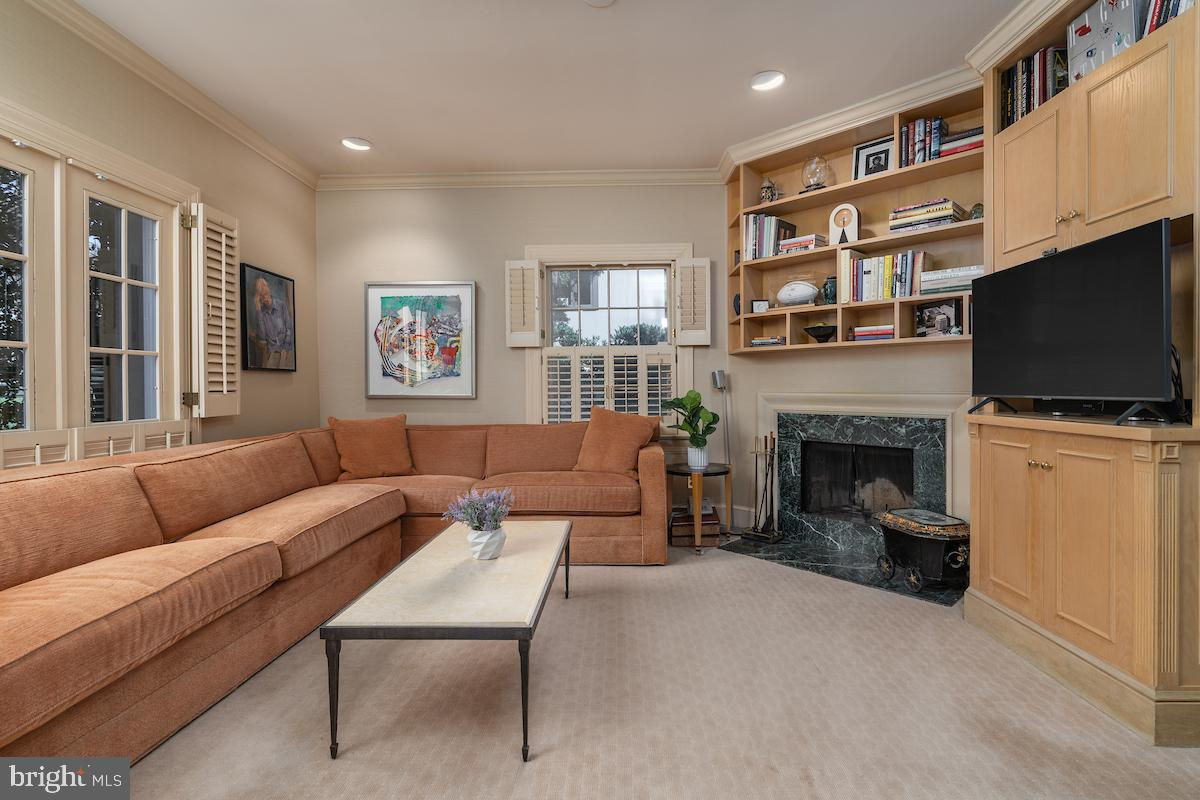 YOU'RE GOING TO LOVE THIS PRICE IMPROVEMENT! This exquisite home, situated on a quiet street in the esteemed neighborhood of Wesley Heights, boasts an array of luxurious features that make it a haven for those with discerning taste. Sitting back from the road and nestled among mature gardens, this home welcomes you with a distinguished presence. The entryway makes a grand statement with faux-painted limestone walls and a two-tone marble floor with intricate inlays and opens to the sophisticated Living Room/Library, expansive Dining Room as well as the Family Room/Study. The Living Room is a refined area with stunning built-ins, a wood-burning fireplace that is flanked with French doors and elegant molding details. The room is adorned with faux-paint in a Moire’ Silk finish, adding a unique texture and depth to the space. The Family Room is to the left of the entry and is a comfortable retreat with custom built-in bookshelves and another wood-burning fireplace. From the entry your eye is drawn down the hall to the captivating Dining Room with it’s opulent high-gloss faux-painted walls. Three French doors flood the room with natural light and offer a seamless connection to the outdoors. Perfectly placed in the rear of the home is the updated Kitchen that exudes charm, sophistication and functionality.. It features a French limestone floor and custom cabinetry throughout offering ample and unique storage to allow for an organized and clutter-free space. The kitchen is equipped with top-of-the-line appliances, Costa Esmerelda granite countertops and a large island featuring a White Fantasy granite countertop. The charming and unique circular breakfast/dining area addition is complete with floor-to-ceiling Pella windows and a radiant heated floor providing an inviting setting for casual gatherings. The kitchen exits to the lovely flagstone patio for al-fresco dining as well as to the large two door, two car garage. A portico from the garage to the kitchen door provides cover in inclement weather. In the hallway between the Family Room and Kitchen is a dedicated space for work or study with a built-in desk and storage and the Powder Room is a work of art, featuring a stenciled floor by Marcus Pluntke, Venetian Plaster walls and a gold leaf ceiling. The second level features a stunning guest room with a cedar closet and a full hallway bath with hand-painted walls. Another full bath connects the two other large bedrooms each featuring built-ins such as desks, dressers and storage. The Primary Bedroom Suite is a luxurious retreat that includes 2 walk-in closets, an en-suite bath with double sinks, a soaking tub and a TV built into the mirror. Off the owners BR is a circular sitting room with a gas fireplace, limestone hearth, a stunning faux-painted ceiling and is surrounded by floor-to-ceiling windows. An office, adjacent to the sitting room, features beautiful custom millwork and a private balcony. The third floor offers 3 additional bedrooms, one with a large bonus room and a full hall bath with skylight. The lower level includes a recreation room, storage, laundry room and a full bath With an easy commute downtown and conveniently located near Glover Archbold Park, Battery Kemble Park and Horace Mann school, this exceptional home combines architectural elegance with functional design and luxurious finishes, making it an ideal place to call home.