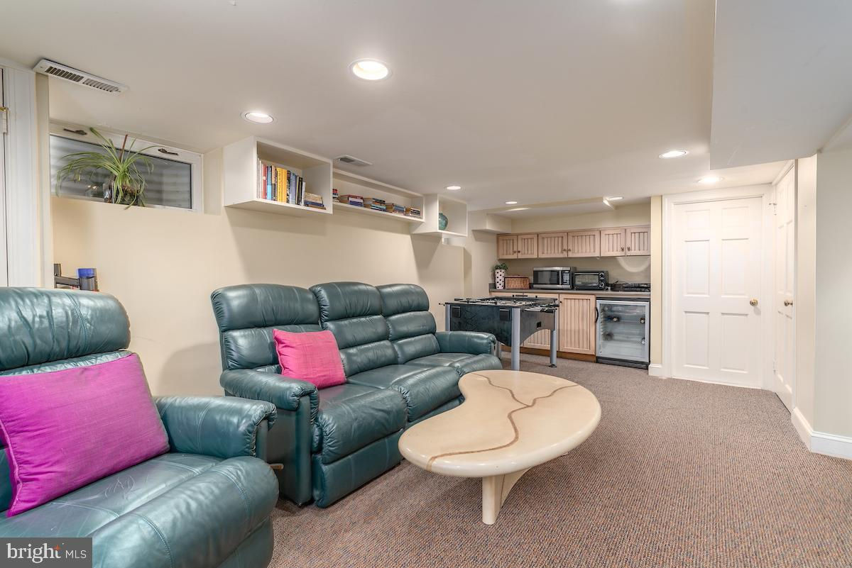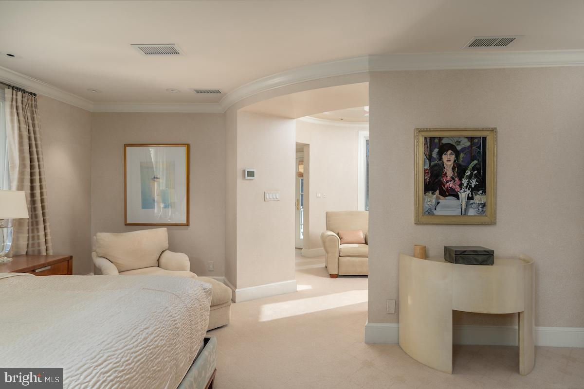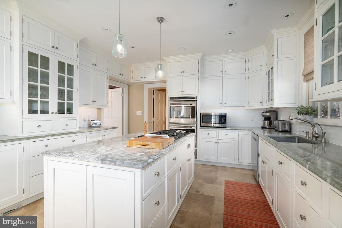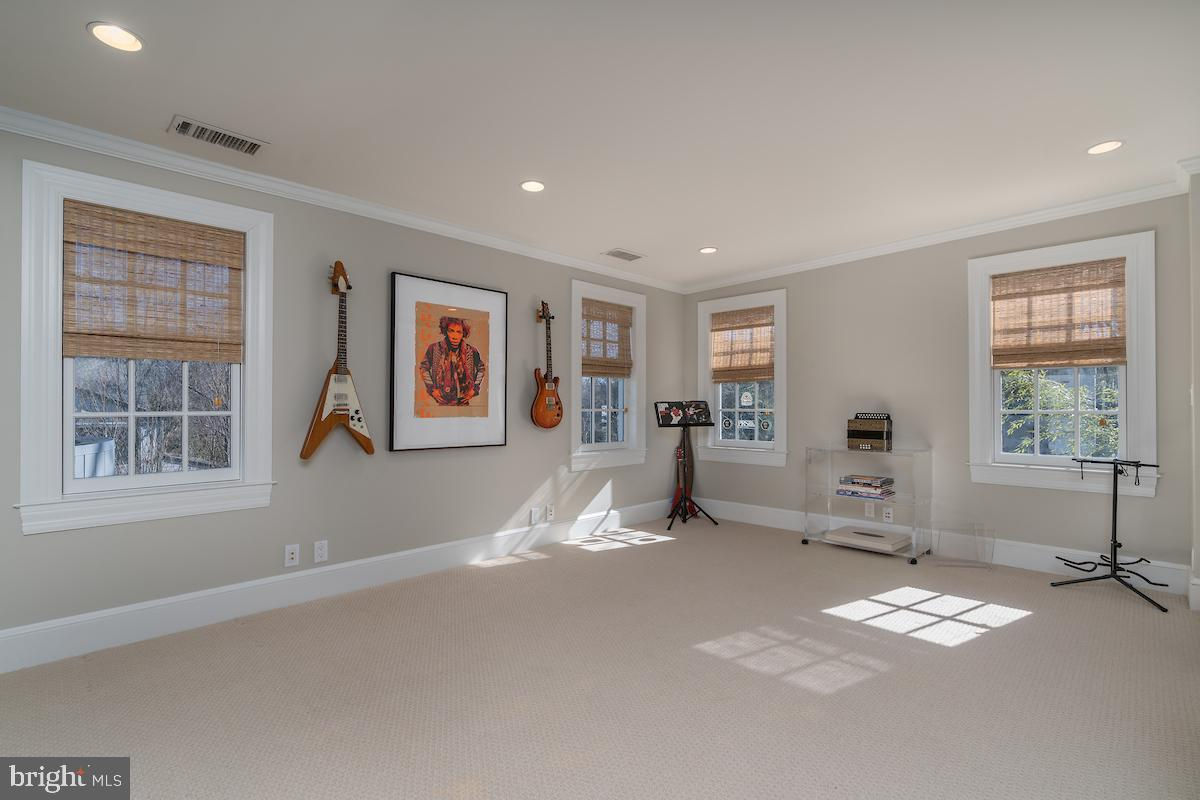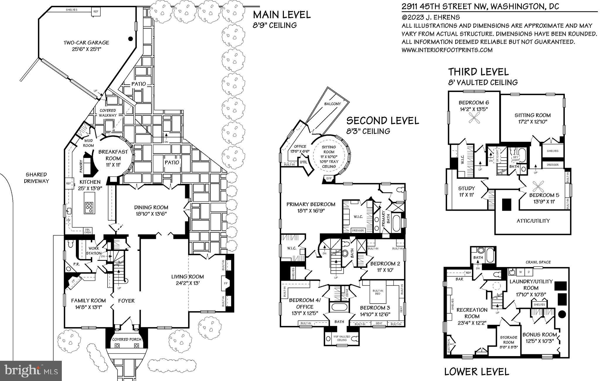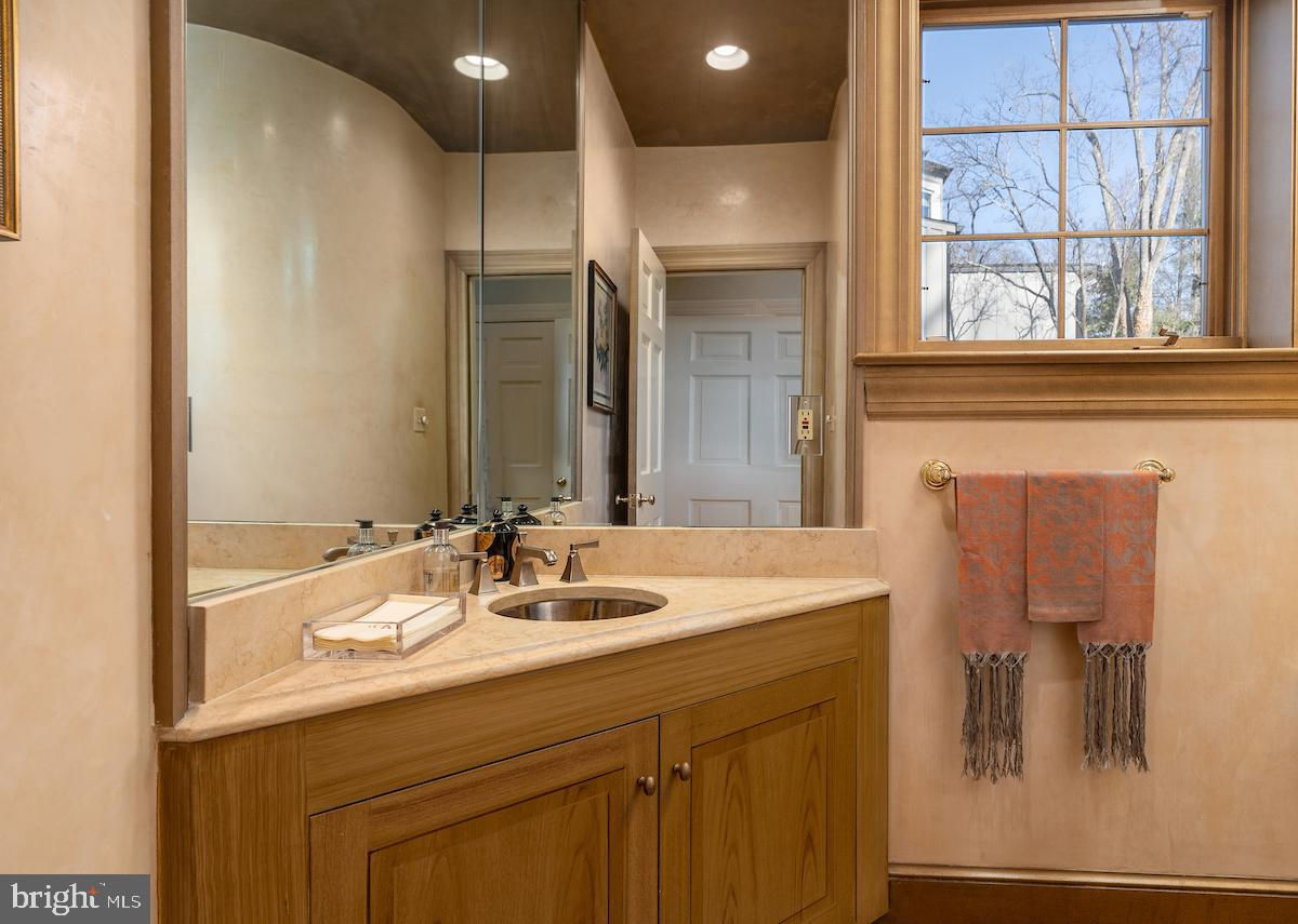 YOU'RE GOING TO LOVE THIS PRICE IMPROVEMENT! This exquisite home, situated on a quiet street in the esteemed neighborhood of Wesley Heights, boasts an array of luxurious features that make it a haven for those with discerning taste. Sitting back from the road and nestled among mature gardens, this home welcomes you with a distinguished presence. The entryway makes a grand statement with faux-painted limestone walls and a two-tone marble floor with intricate inlays and opens to the sophisticated Living Room/Library, expansive Dining Room as well as the Family Room/Study. The Living Room is a refined area with stunning built-ins, a wood-burning fireplace that is flanked with French doors and elegant molding details. The room is adorned with faux-paint in a Moire’ Silk finish, adding a unique texture and depth to the space. The Family Room is to the left of the entry and is a comfortable retreat with custom built-in bookshelves and another wood-burning fireplace. From the entry your eye is drawn down the hall to the captivating Dining Room with it’s opulent high-gloss faux-painted walls. Three French doors flood the room with natural light and offer a seamless connection to the outdoors. Perfectly placed in the rear of the home is the updated Kitchen that exudes charm, sophistication and functionality.. It features a French limestone floor and custom cabinetry throughout offering ample and unique storage to allow for an organized and clutter-free space. The kitchen is equipped with top-of-the-line appliances, Costa Esmerelda granite countertops and a large island featuring a White Fantasy granite countertop. The charming and unique circular breakfast/dining area addition is complete with floor-to-ceiling Pella windows and a radiant heated floor providing an inviting setting for casual gatherings. The kitchen exits to the lovely flagstone patio for al-fresco dining as well as to the large two door, two car garage. A portico from the garage to the kitchen door provides cover in inclement weather. In the hallway between the Family Room and Kitchen is a dedicated space for work or study with a built-in desk and storage and the Powder Room is a work of art, featuring a stenciled floor by Marcus Pluntke, Venetian Plaster walls and a gold leaf ceiling. The second level features a stunning guest room with a cedar closet and a full hallway bath with hand-painted walls. Another full bath connects the two other large bedrooms each featuring built-ins such as desks, dressers and storage. The Primary Bedroom Suite is a luxurious retreat that includes 2 walk-in closets, an en-suite bath with double sinks, a soaking tub and a TV built into the mirror. Off the owners BR is a circular sitting room with a gas fireplace, limestone hearth, a stunning faux-painted ceiling and is surrounded by floor-to-ceiling windows. An office, adjacent to the sitting room, features beautiful custom millwork and a private balcony. The third floor offers 3 additional bedrooms, one with a large bonus room and a full hall bath with skylight. The lower level includes a recreation room, storage, laundry room and a full bath With an easy commute downtown and conveniently located near Glover Archbold Park, Battery Kemble Park and Horace Mann school, this exceptional home combines architectural elegance with functional design and luxurious finishes, making it an ideal place to call home.