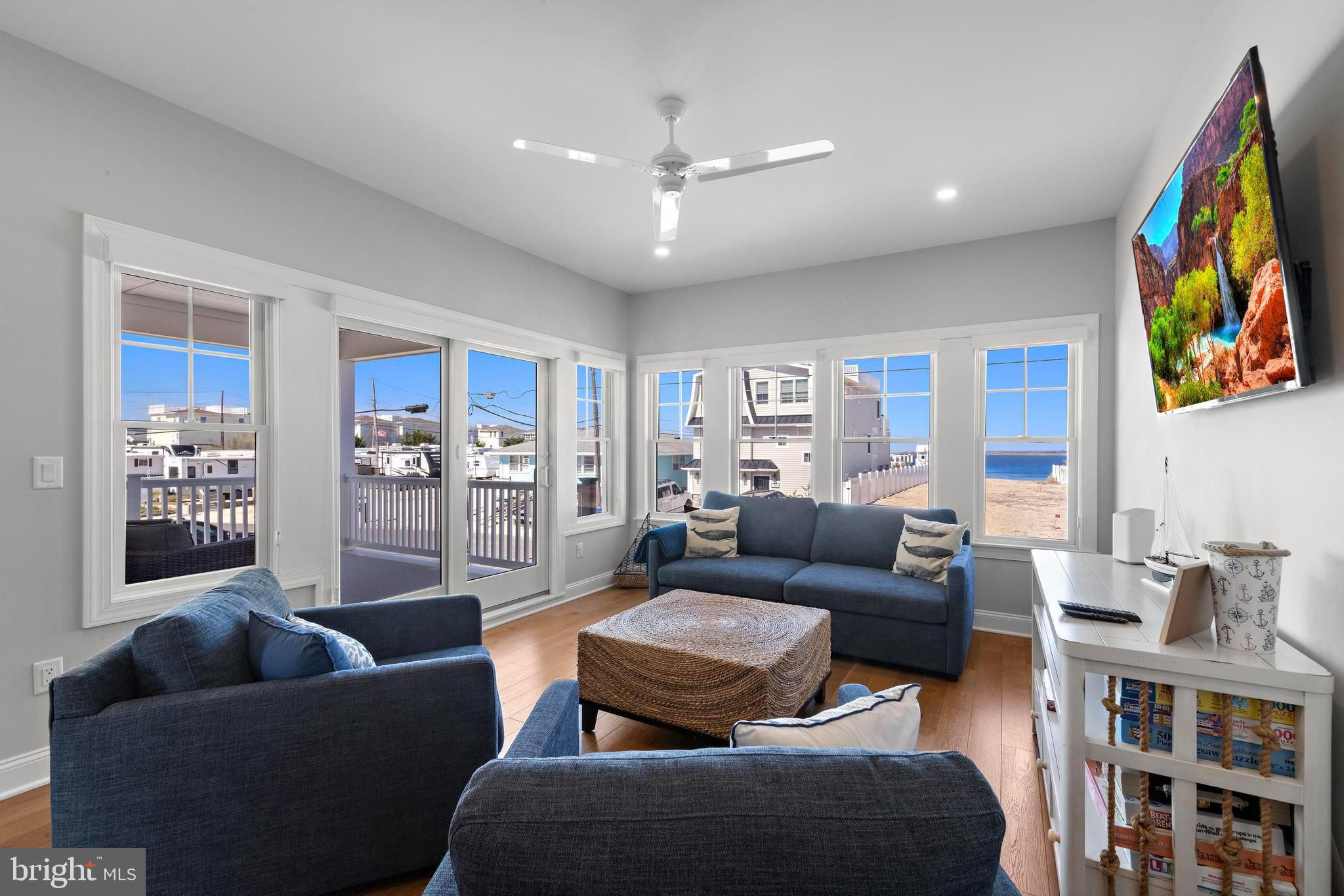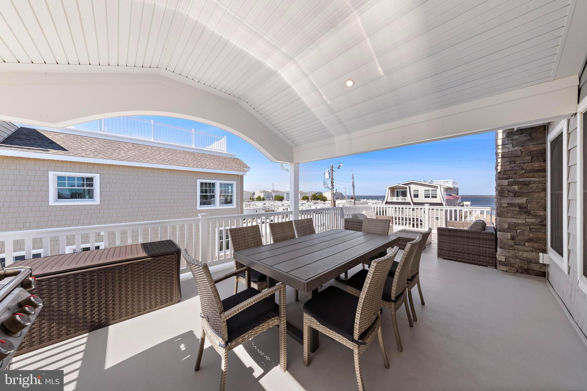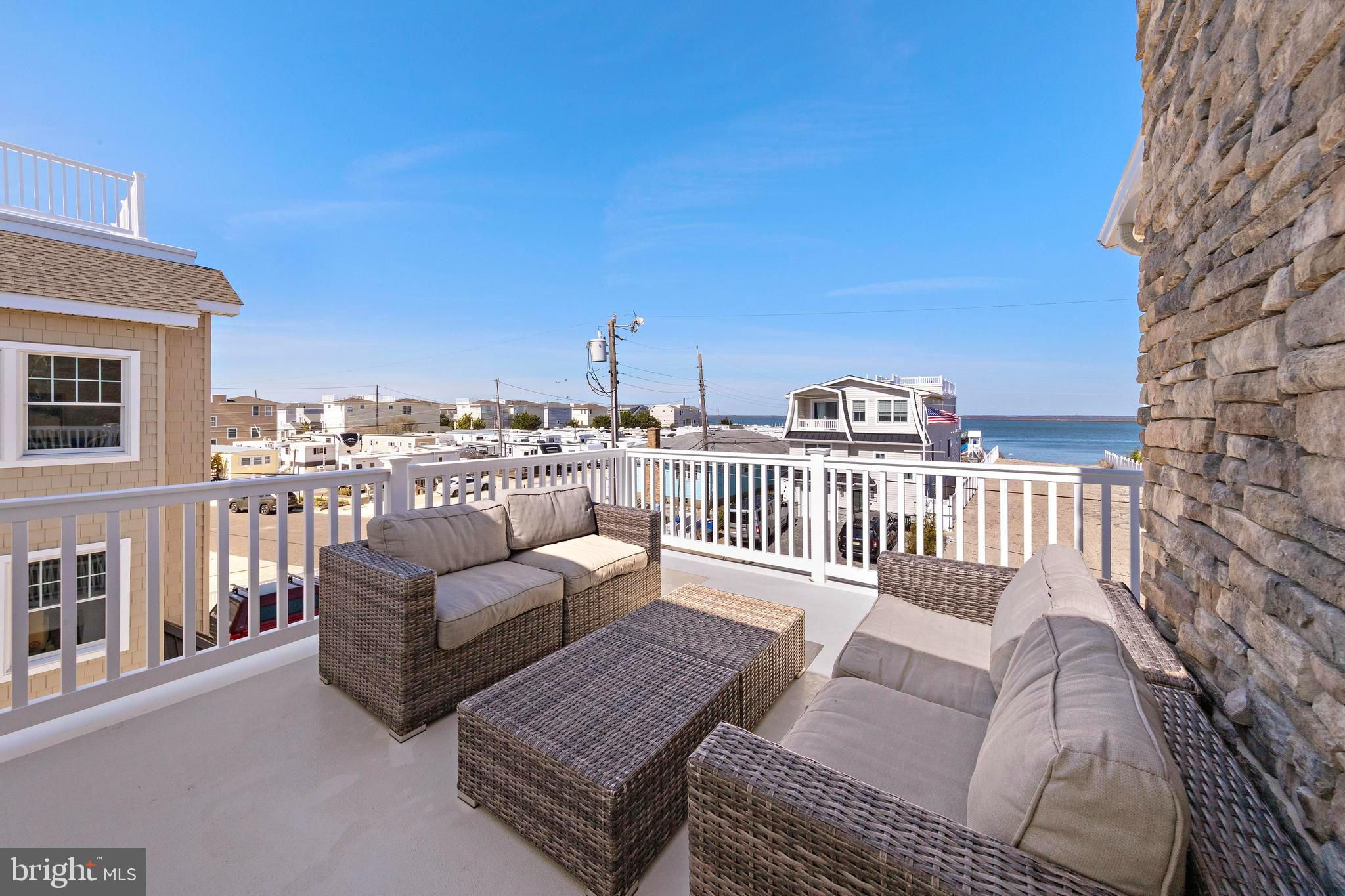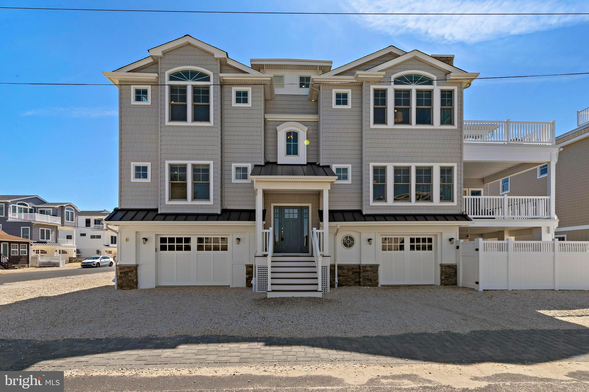 Discover all that the south end has to offer in this 5-bed, 4.5-bath home thats situated on a 60x100 lot with over 3,000 sq ft of thoughtfully designed living space, just one block from the ocean and boasting incredible bay views. Inside, vaulted ceilings and large windows create a bright, open atmosphere throughout the main living areas. A second family room on the first floor makes it perfect for hosting groups or larger families, while two rooms with built-in bunk beds add a fun and functional touch. The sleek kitchen features quartz countertops and JennAir appliances, with a deck off the dining area set up for grilling and outdoor meals. Take in the sun by the 10x20 heated saltwater pool, rinse off in the outdoor shower, or head up to the rooftop deck for panoramic views from Fantasy Island to Atlantic City. Epoxy floors, a two-car garage, plenty of parking, and the option to add an elevator down the line round out this thoughtfully designed home. Whether you're hosting or unwinding, this one brings the best of LBI right to your door. This property has a strong rental history as well. Make an appointment to see today!