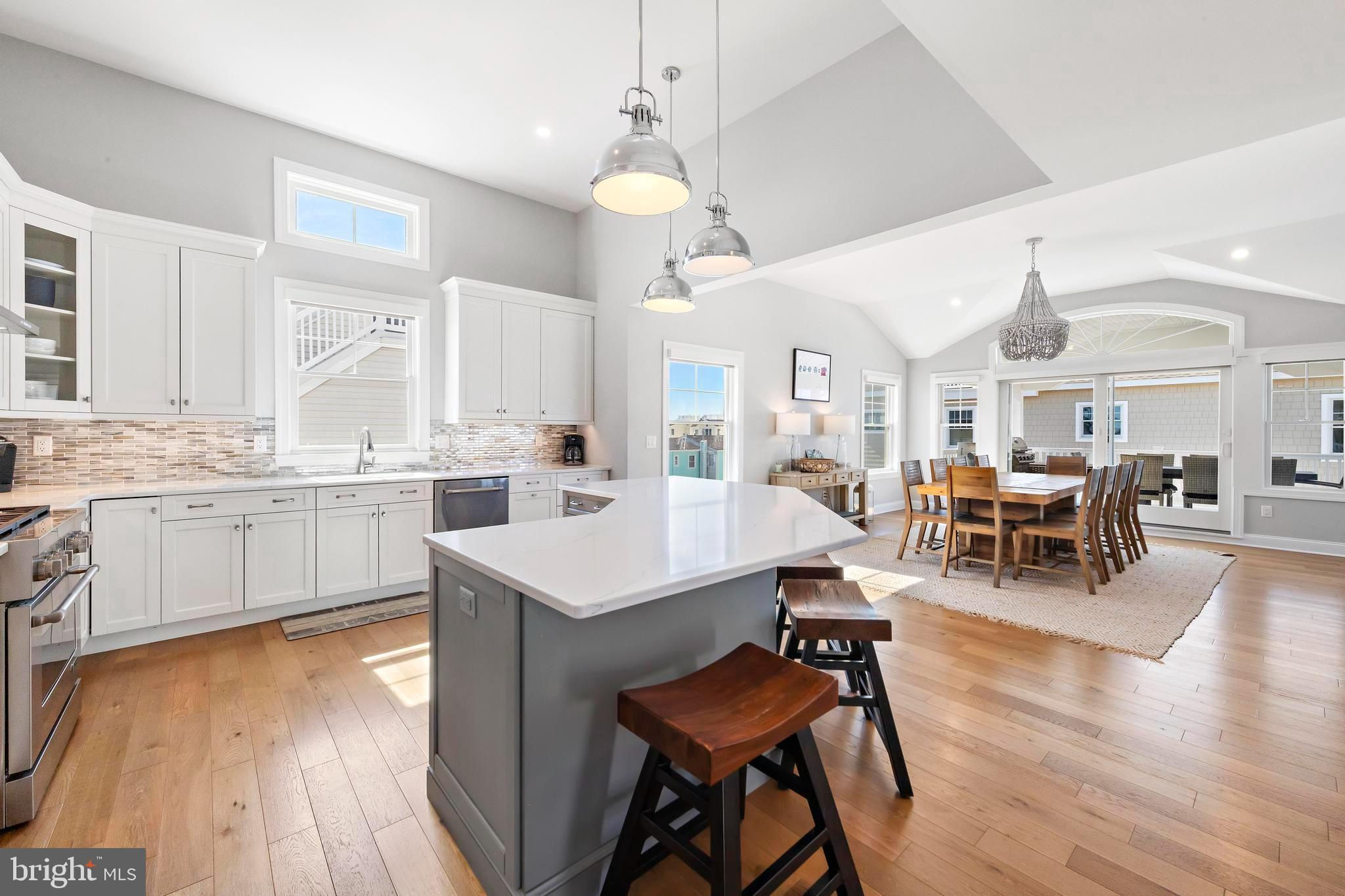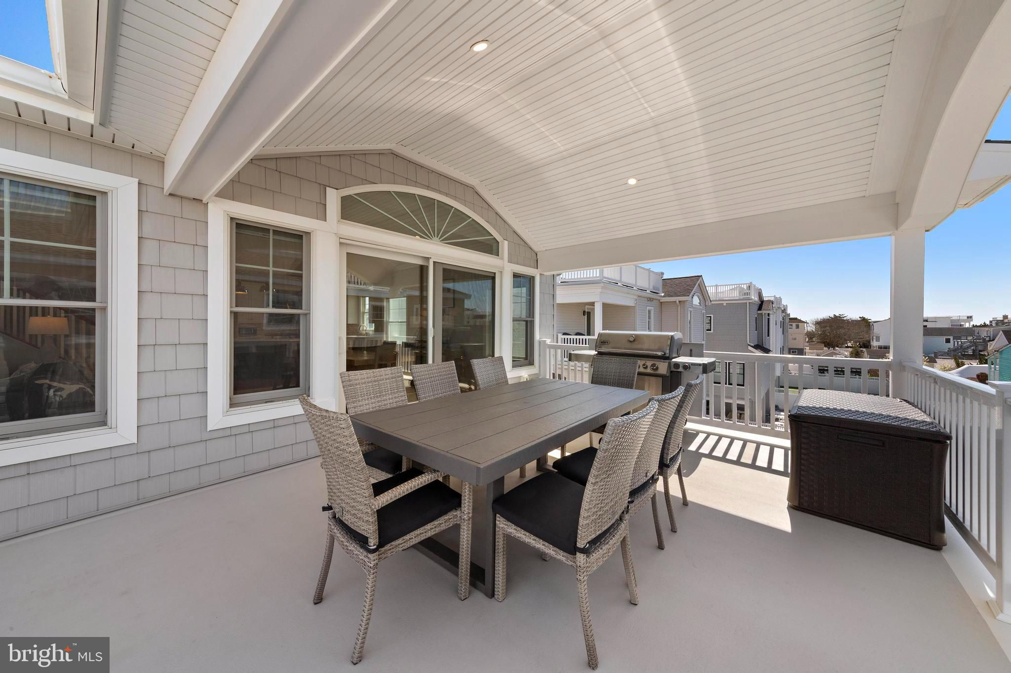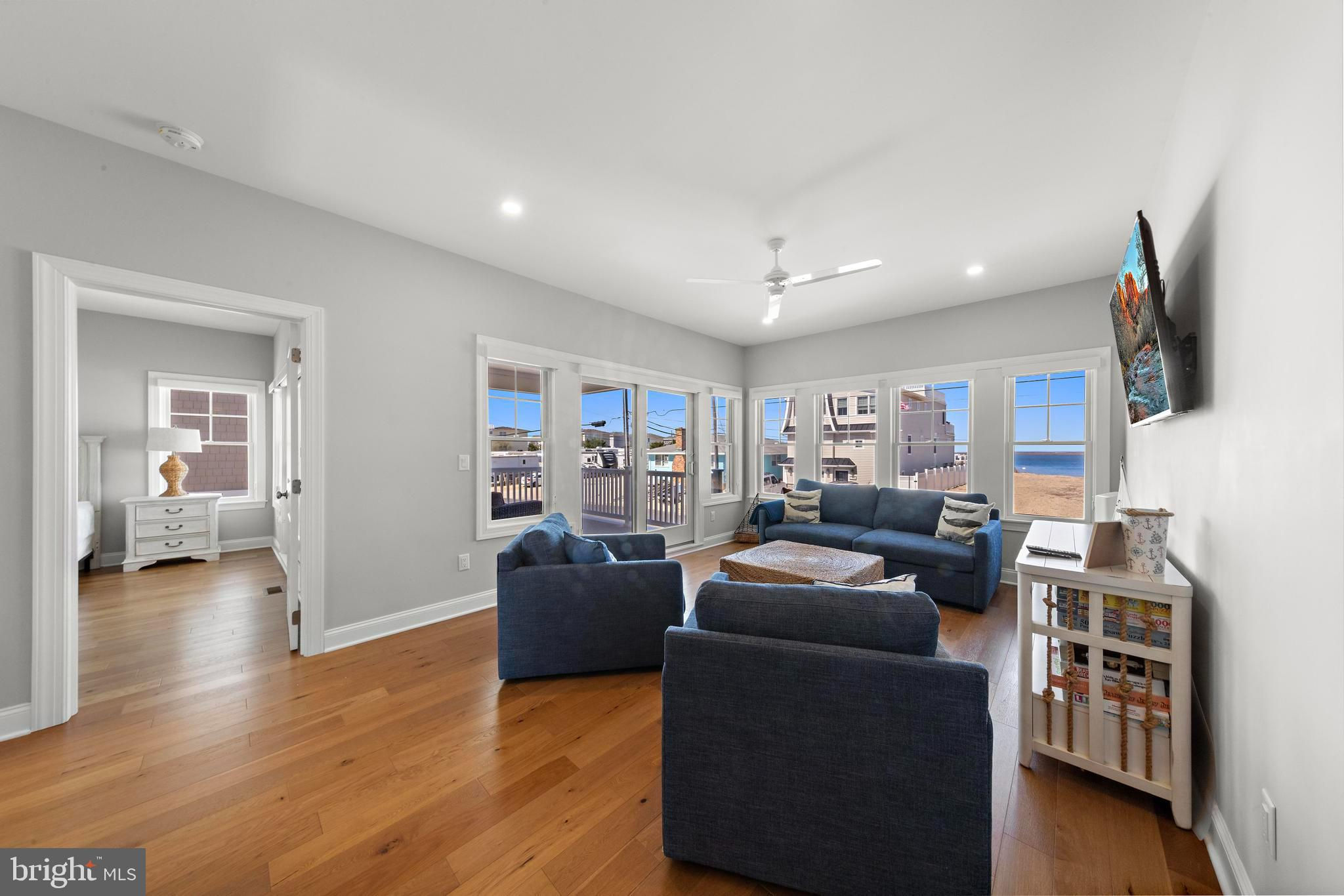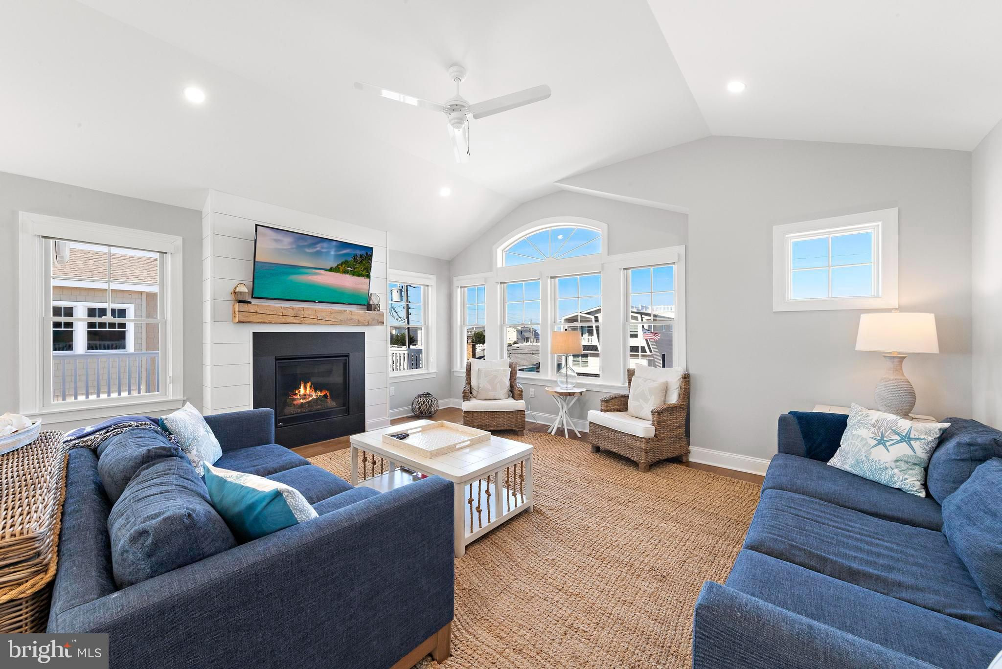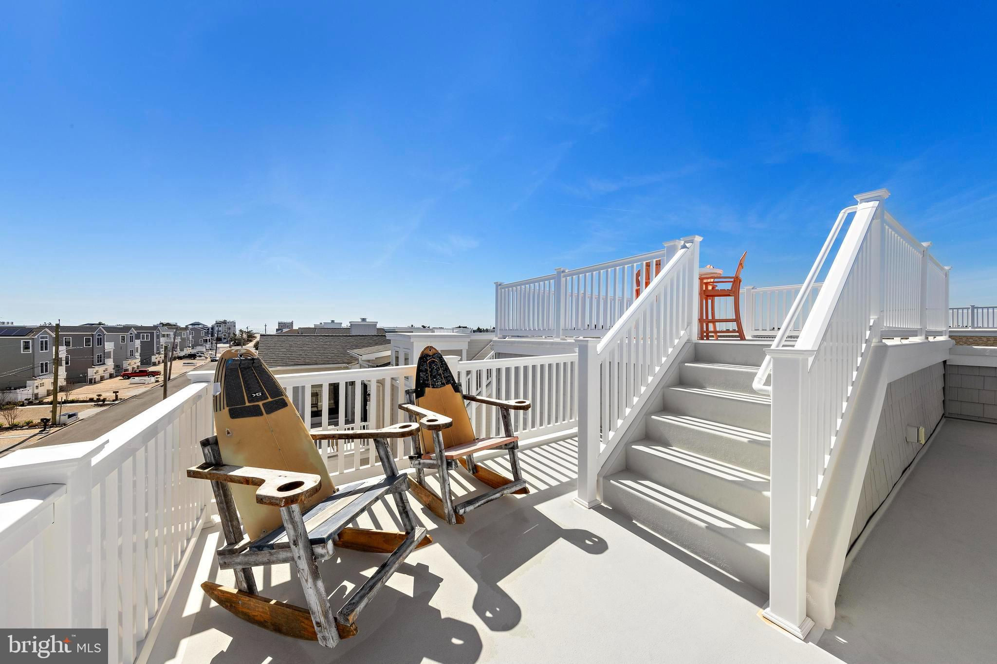 Discover all that the south end has to offer in this 5-bed, 4.5-bath home thats situated on a 60x100 lot with over 3,000 sq ft of thoughtfully designed living space, just one block from the ocean and boasting incredible bay views. Inside, vaulted ceilings and large windows create a bright, open atmosphere throughout the main living areas. A second family room on the first floor makes it perfect for hosting groups or larger families, while two rooms with built-in bunk beds add a fun and functional touch. The sleek kitchen features quartz countertops and JennAir appliances, with a deck off the dining area set up for grilling and outdoor meals. Take in the sun by the 10x20 heated saltwater pool, rinse off in the outdoor shower, or head up to the rooftop deck for panoramic views from Fantasy Island to Atlantic City. Epoxy floors, a two-car garage, plenty of parking, and the option to add an elevator down the line round out this thoughtfully designed home. Whether you're hosting or unwinding, this one brings the best of LBI right to your door. This property has a strong rental history as well. Make an appointment to see today!