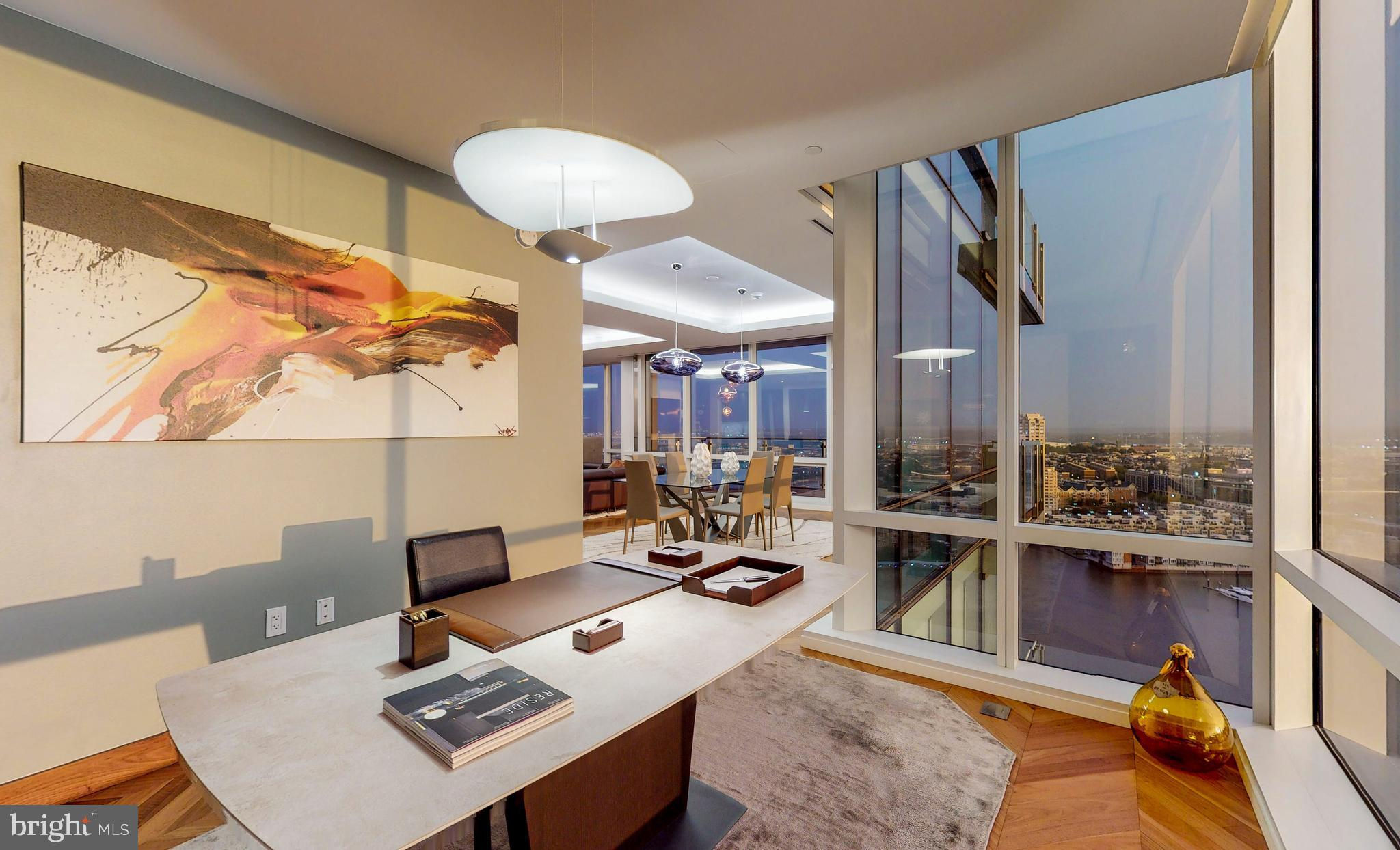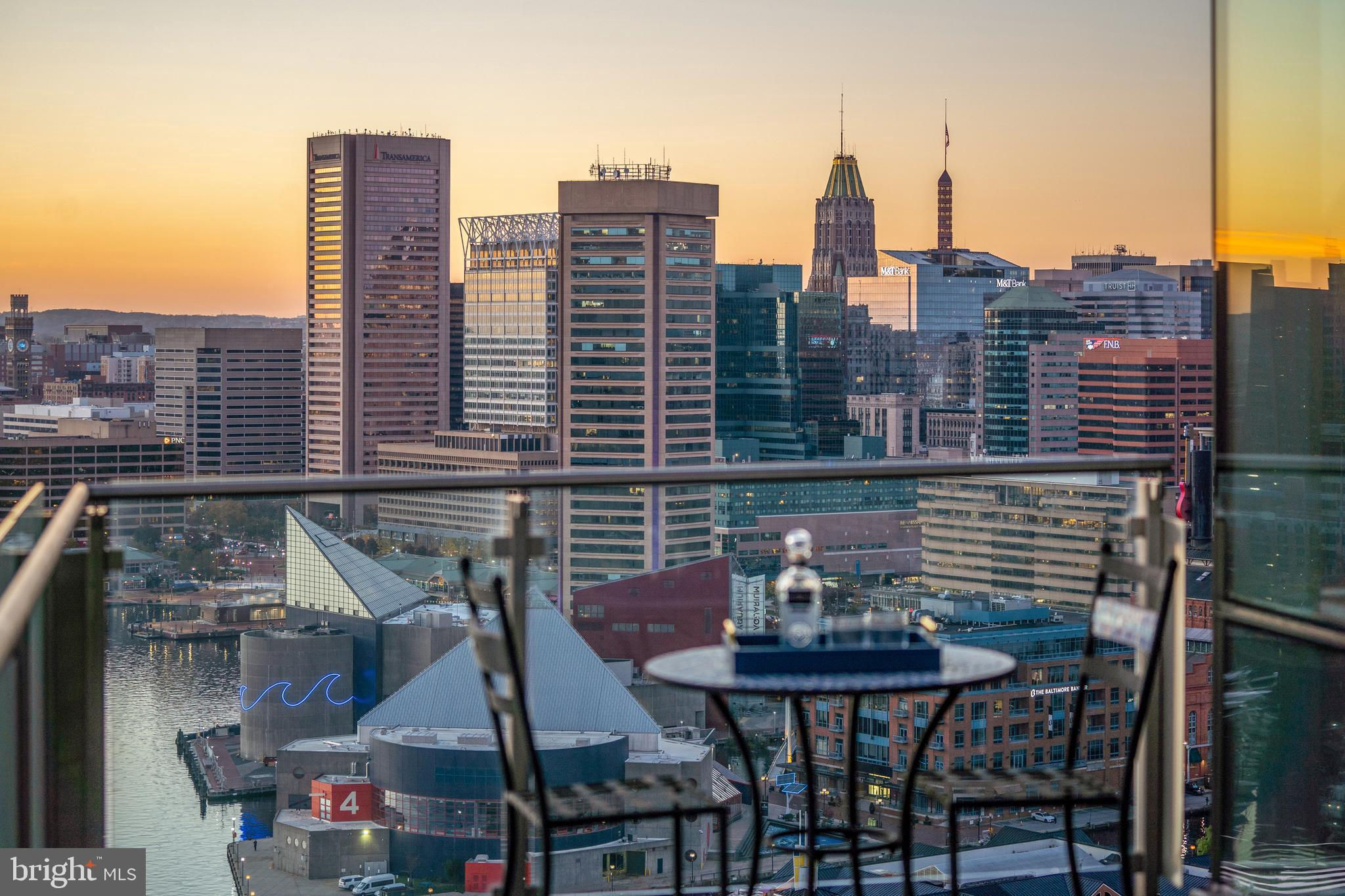 Live amongst the clouds, with the best unobstructed view in Baltimore. Highlighting the epitome of luxury condo living, residence 2501 features 2,200+ square feet oozing with high end finishes and seamless open floorplan. Newly refinished herringbone hardwood floors shine upon entering into the foyer and continue throughout the home. Making the turn towards the living area, floor to ceiling windows allow abundant natural light and the most stunning view of inner and outer harbor to shine through. The Miele appliances compliment a waterfall quartz countertop, two wine refrigerators, a separate ice maker, and double oven with state of the art broiler and heating tray. Find a perfectly sized home office or formal dining area off the side of the great room, which looks over the inner harbor and Baltimore's ever changing skyline. Custom lighting throughout the home accents the vibrant wood cabinets and lively paint selection. Enter into the owners suite featuring the best views of the condo overlooking the inner harbor. The owners suite bathroom features a large rain shower with designer marble tile, a double vanity with extra counter space, and a comfortable soaking tub. The second full bathroom repeats the luxurious finishes with a rain shower as well as designer marble tiling. Bedroom number two has an equally beautiful view of downtown Baltimore's inner harbor. No expense was spared in the creation of this elegant masterpiece, from the custom window tinting treatments to the Crestron system making this residence controllable with the touch of a button. Tying all of this elegance together is the amenity floor on floor 28 of The Four Seasons Private Residences. A stunning endless pool featuring 180 degree views of Baltimore's harbor sits next to the full gym, oversized common areas ideal for entertaining, and a plethora of other amenities await. Don't miss the opportunity to own one of only 4 units with completely unobstructed views throughout the residence within the Four Seasons Private Residences Baltimore.