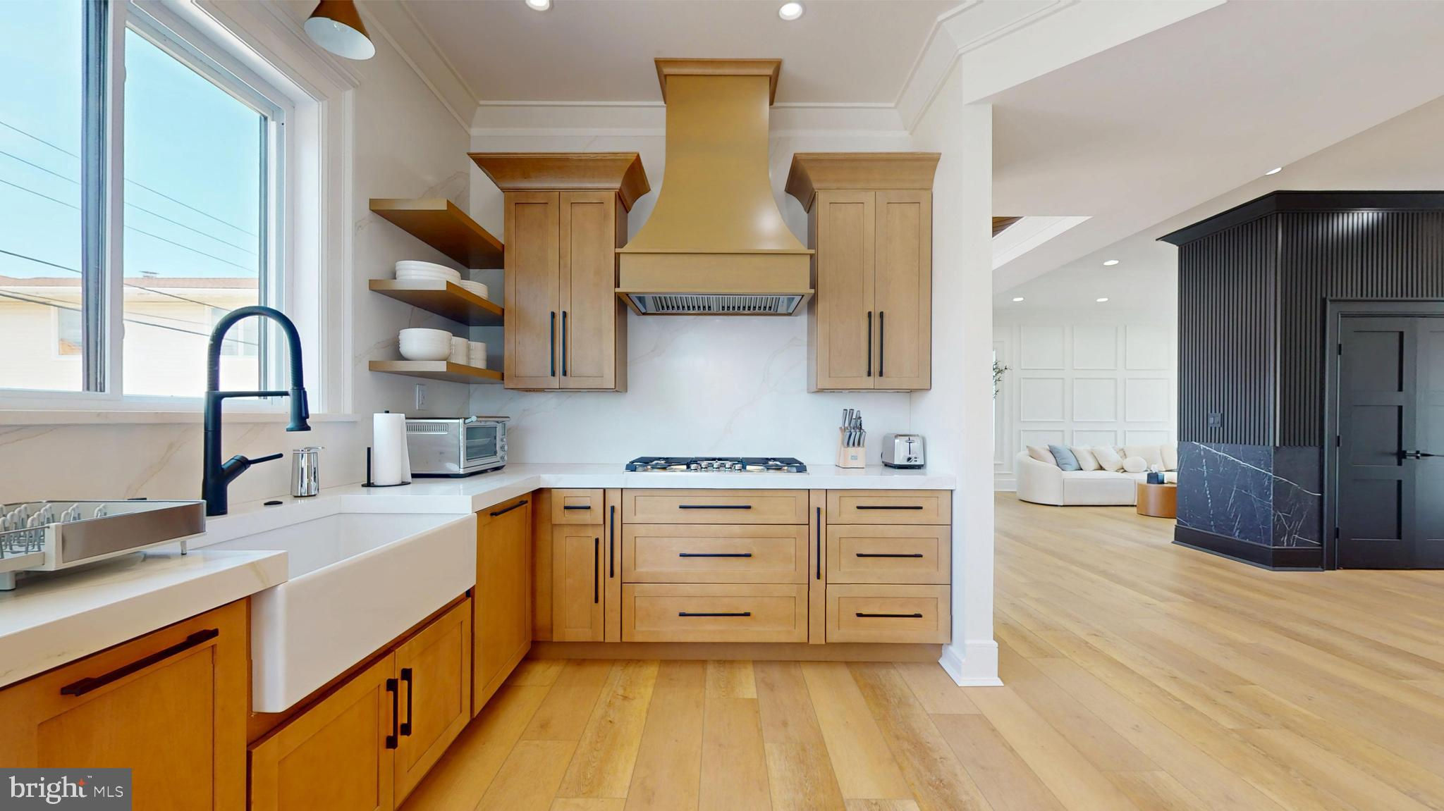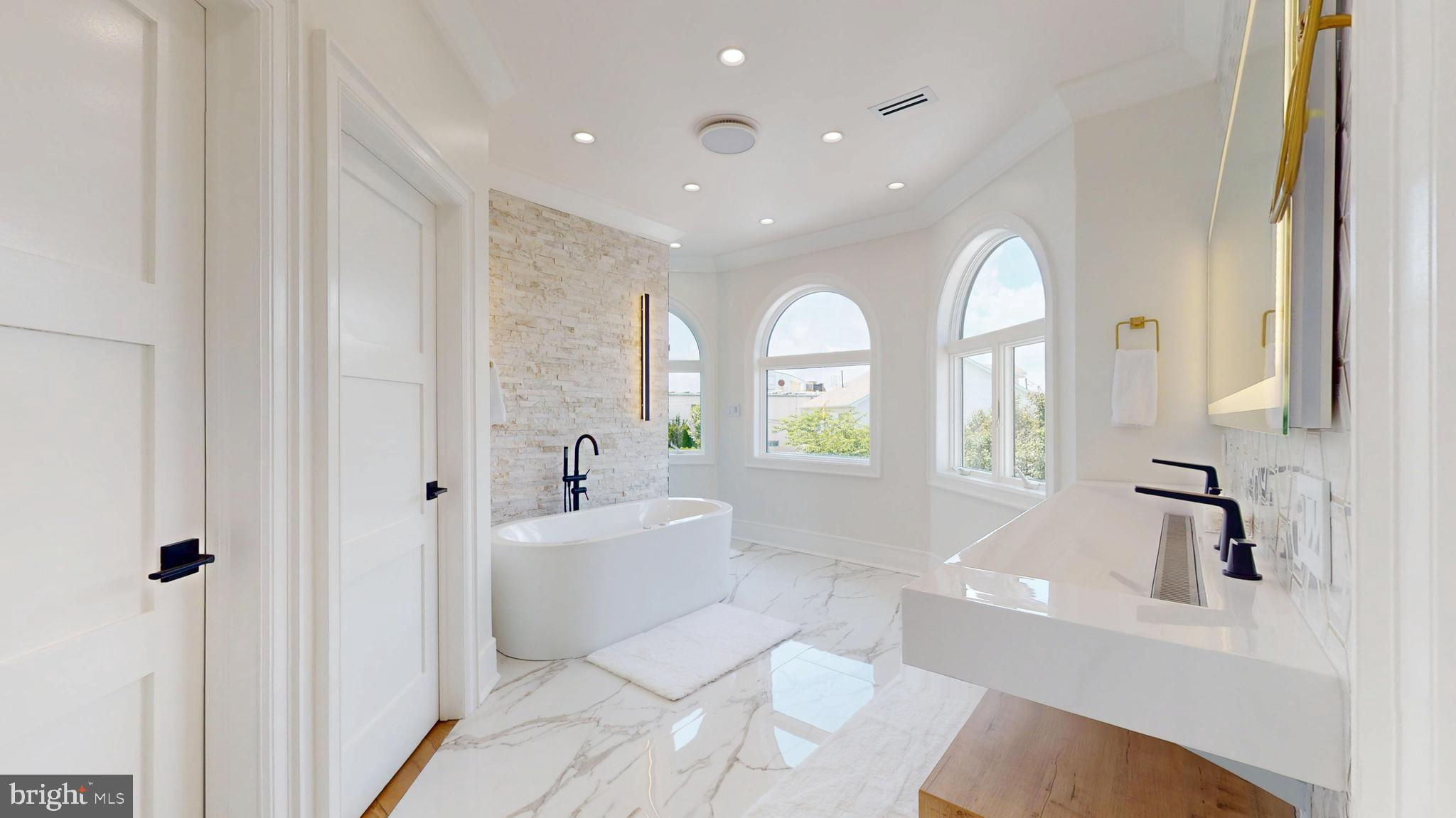 Stunning, Fully Renovated Home with Bay Views & Luxurious Outdoor Living. Welcome to 31 Seaside Court, Margate, NJ — a breathtaking 4,966 sq. ft. residence in a quiet cul-de-sac. This meticulously renovated home offers high-end finishes, modern design, and seamless indoor-outdoor living. Located in a prime neighborhood close to top-rated schools, hospitals, shopping centers, major transportation routes, and all essential amenities, this home provides both luxury and convenience. The owner’s suite is a serene retreat with a recessed ceiling, bold accent wall, custom walk-in closet, and a spa-like en-suite featuring a Tankless Smart Bidet Toilet, a 67” whirlpool tub with massage jets, and LED-lit glass cabinetry. This home boasts five spacious bedrooms and 4.5 elegant bathrooms, including a Jack & Jill bath with a 58-gallon soaking tub and a 72” wood-tone vanity with a marble top. The gourmet kitchen is a chef’s dream, equipped with Monogram appliances, a paneled Sub-Zero fridge, a custom-built hood, and stunning waterfall quartz countertops that flow into a full slab backsplash. The open-concept living and dining areas are bathed in natural light, with a striking bookmatched porcelain feature wall serving as a dramatic focal point. The second floor showcases a custom quartz slab wall, further elevating the home’s modern coastal aesthetic. A stylish beverage center with a sleek kegerator and wine cooler adds convenience and sophistication for effortless entertaining. The spacious laundry room is designed with both function and elegance in mind, featuring a Samsung Smart Washer & Gas Dryer atop pedestal storage drawers and custom French oak cabinets for a complete high-end experience. Outdoors, the property features an oversized one-car garage and a custom paved driveway, a beautifully paved backyard with built-in concrete planters, and expansive & floating decks perfect for entertaining, sunbathing, or simply enjoying the bay views. The spacious backyard offers plenty of room for outdoor activities, whether relaxing in the sun, hosting large gatherings, or unwinding by the water. This home perfectly balances luxury and functionality, offering stunning bay views, elegant living spaces, and impressive outdoor areas. Whether hosting guests or enjoying peaceful moments by the water, 31 Seaside Court delivers an unparalleled lifestyle in a highly sought-after location.