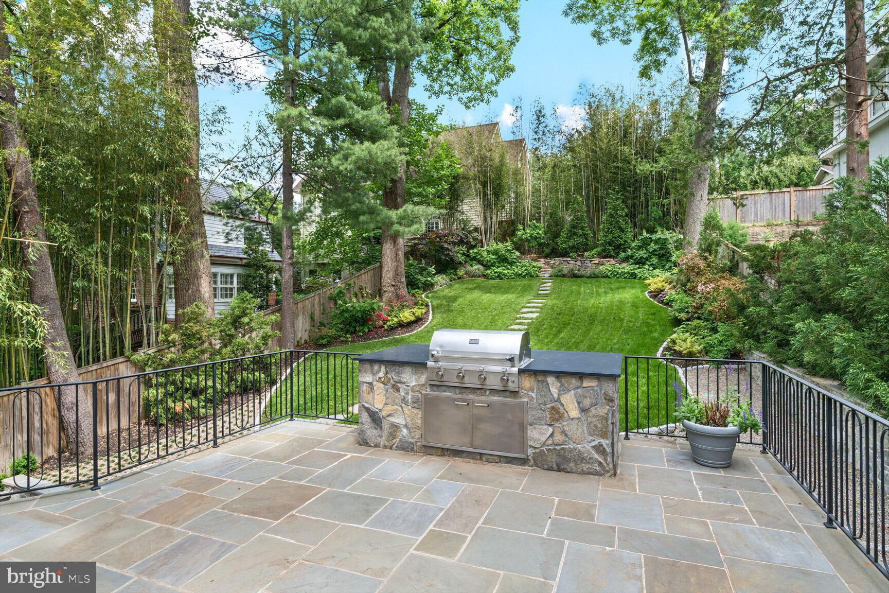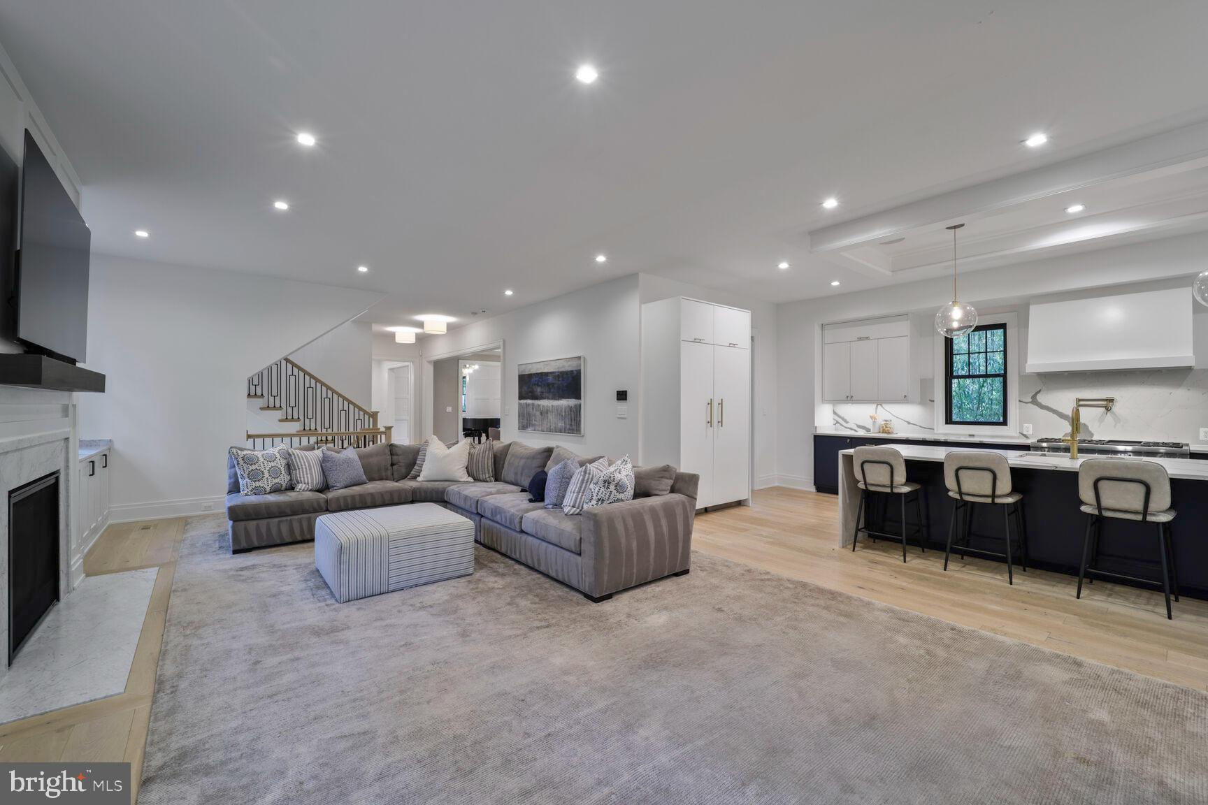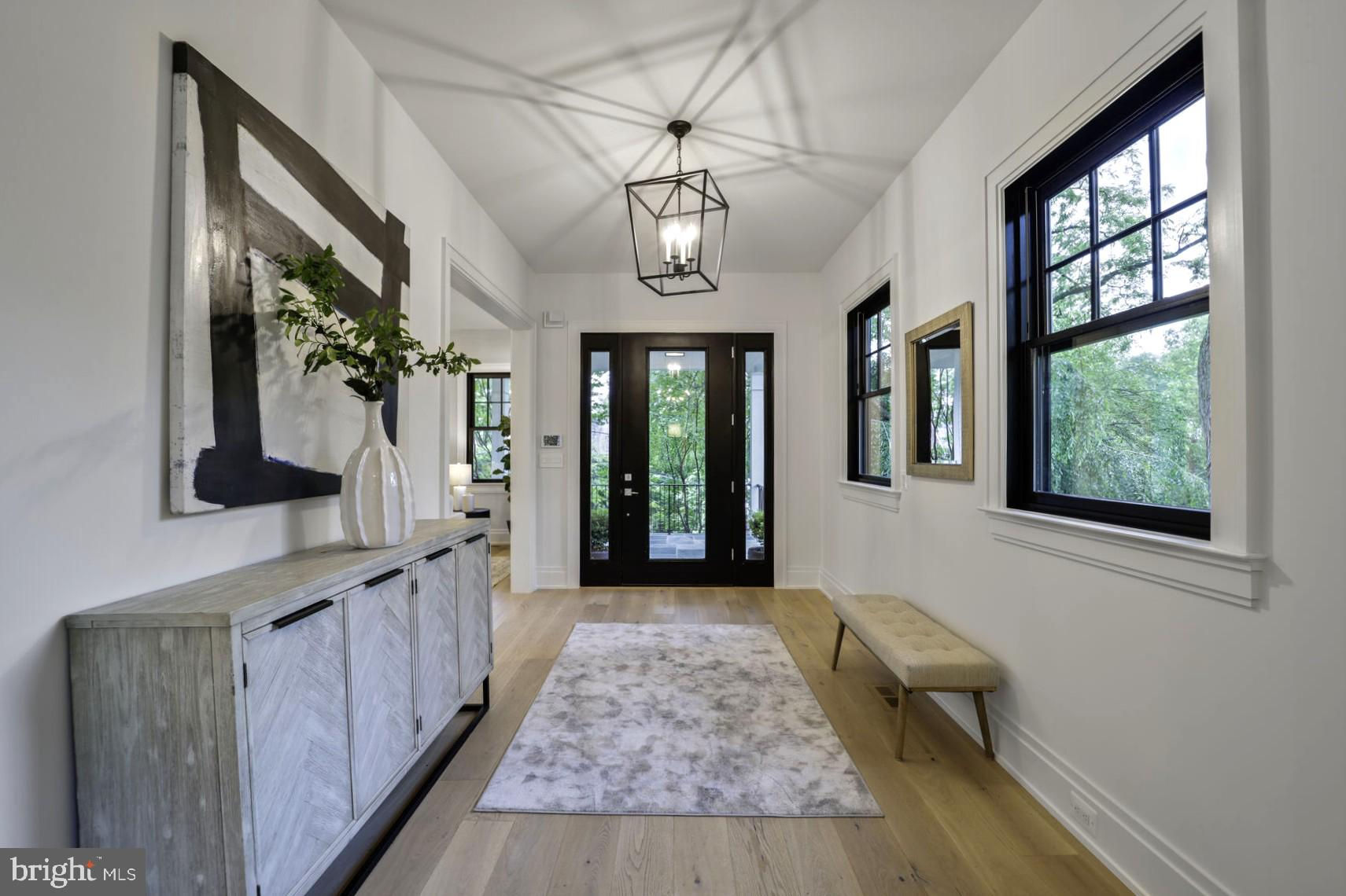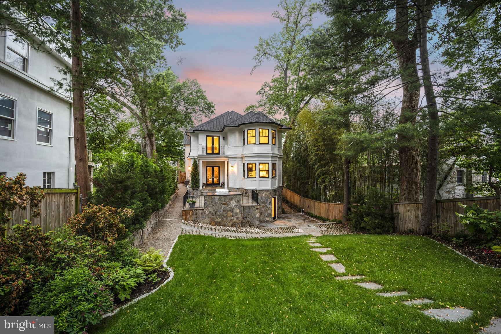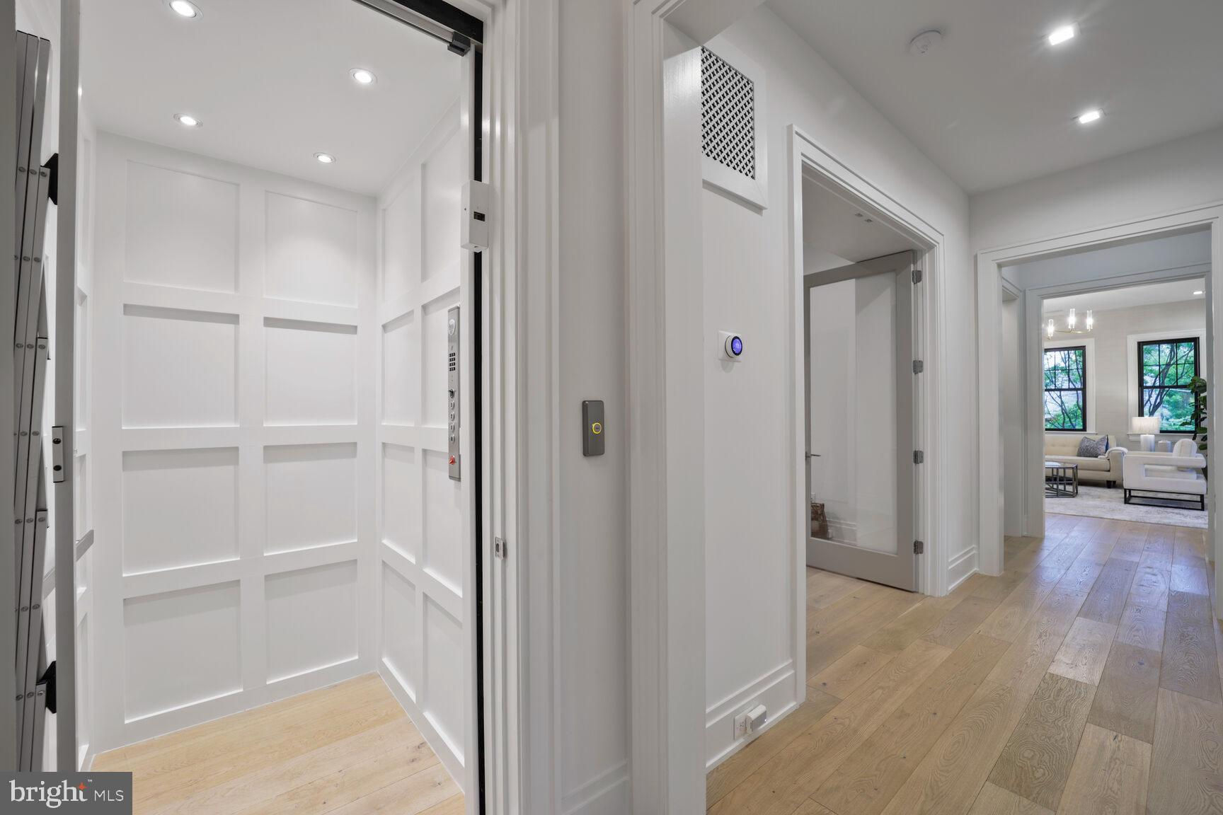 Beautifully built in 2018 and meticulously maintained and enhanced by the current owners, this expansive home features 7,700SF of luxury living across three finished levels with elevator access to all. The light-filled main level features an open floor plan with 10-foot ceilings, an elegant foyer, music/sitting room, formal living and dining rooms, private enclosed office, and powder room. Perfect for entertaining and everyday living, the spacious family room and adjacent gourmet kitchen provide a wonderful gathering place. The kitchen features a large center island with waterfall countertops, top-of-the-line appliances, breakfast nook, built-in desk area, and butler’s pantry with a large closet and second dishwasher. The family room features custom built-ins, a gas fireplace, and French doors that lead to a private patio with a built-in gas grill. The second level includes a luxurious primary suite with private balcony, dual custom walk-in closets, and a spa like en-suite bath with marble finishes, soaking tub, and heated floors. Also found on this level are three additional bedrooms with en-suite baths and walk-in closets, as well as a convenient upper-level laundry room. The walkout lower level features a large recreation room with gas fireplace open to the game room (optional office #2) with door to the rear terrace, stylish bar area with a wine refrigerator and dishwasher, bedroom #5, and full bath #5. Additional highlights include access to the two car garage with built-in cabinets, mud room with cubbies, 9 foot ceilings, and full sized windows. Each level enjoys it’s own outdoor space with slate terraces on the main and lower levels, primary bedroom balcony with tree top views, and a professionally landscaped and fenced rear yard with green space. Luxury finishes throughout including custom millwork, wallpaper accents, integrated speakers, mounted televisions, light fixtures, private elevator, three-zone HVAC system, and more. Located just minutes from Georgetown, Virginia, and Maryland, as well as easy access to all area airports, this stunning home combines timeless elegance with modern amenities in one of D.C.'s most coveted neighborhoods.