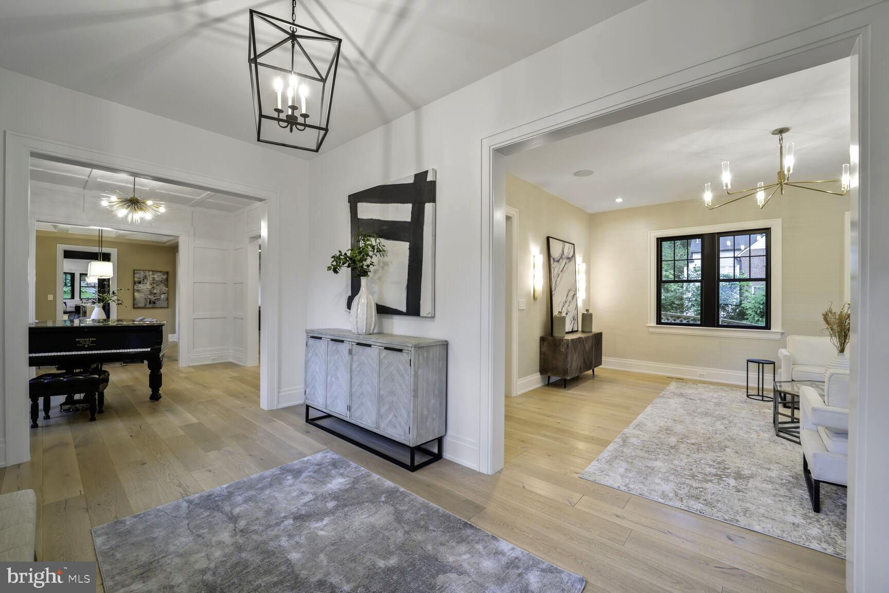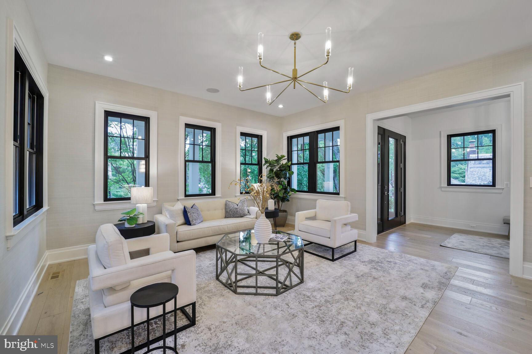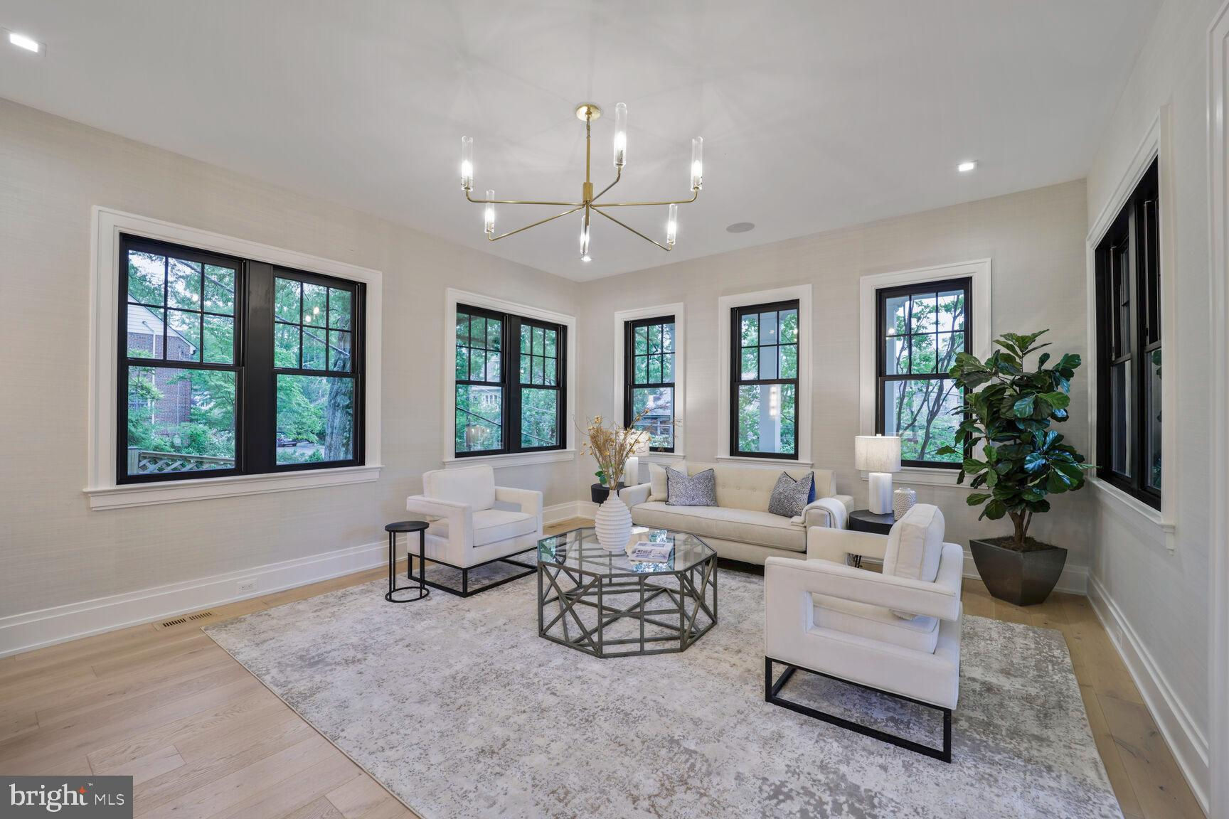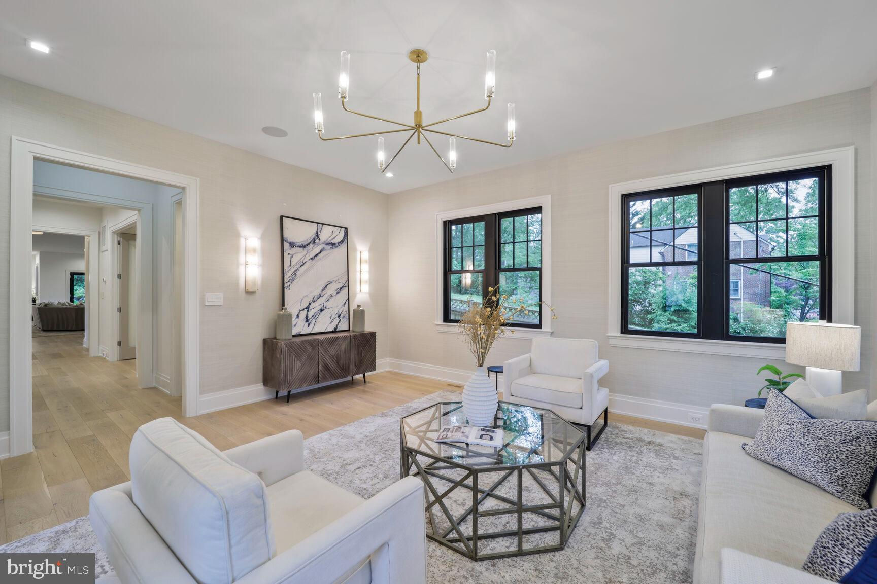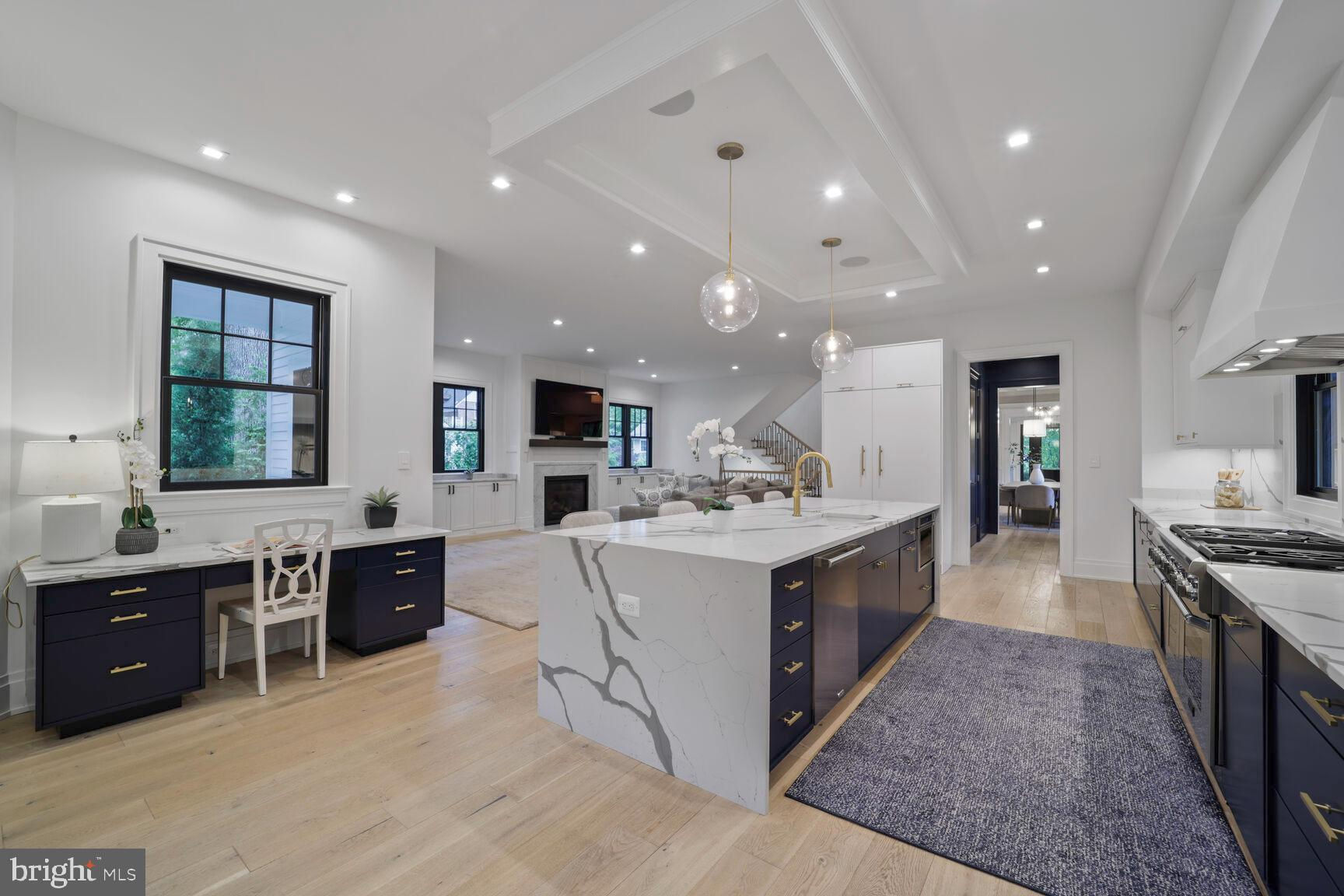 Beautifully built in 2018 and meticulously maintained and enhanced by the current owners, this expansive home features 7,700SF of luxury living across three finished levels with elevator access to all. The light-filled main level features an open floor plan with 10-foot ceilings, an elegant foyer, music/sitting room, formal living and dining rooms, private enclosed office, and powder room. Perfect for entertaining and everyday living, the spacious family room and adjacent gourmet kitchen provide a wonderful gathering place. The kitchen features a large center island with waterfall countertops, top-of-the-line appliances, breakfast nook, built-in desk area, and butler’s pantry with a large closet and second dishwasher. The family room features custom built-ins, a gas fireplace, and French doors that lead to a private patio with a built-in gas grill. The second level includes a luxurious primary suite with private balcony, dual custom walk-in closets, and a spa like en-suite bath with marble finishes, soaking tub, and heated floors. Also found on this level are three additional bedrooms with en-suite baths and walk-in closets, as well as a convenient upper-level laundry room. The walkout lower level features a large recreation room with gas fireplace open to the game room (optional office #2) with door to the rear terrace, stylish bar area with a wine refrigerator and dishwasher, bedroom #5, and full bath #5. Additional highlights include access to the two car garage with built-in cabinets, mud room with cubbies, 9 foot ceilings, and full sized windows. Each level enjoys it’s own outdoor space with slate terraces on the main and lower levels, primary bedroom balcony with tree top views, and a professionally landscaped and fenced rear yard with green space. Luxury finishes throughout including custom millwork, wallpaper accents, integrated speakers, mounted televisions, light fixtures, private elevator, three-zone HVAC system, and more. Located just minutes from Georgetown, Virginia, and Maryland, as well as easy access to all area airports, this stunning home combines timeless elegance with modern amenities in one of D.C.'s most coveted neighborhoods.