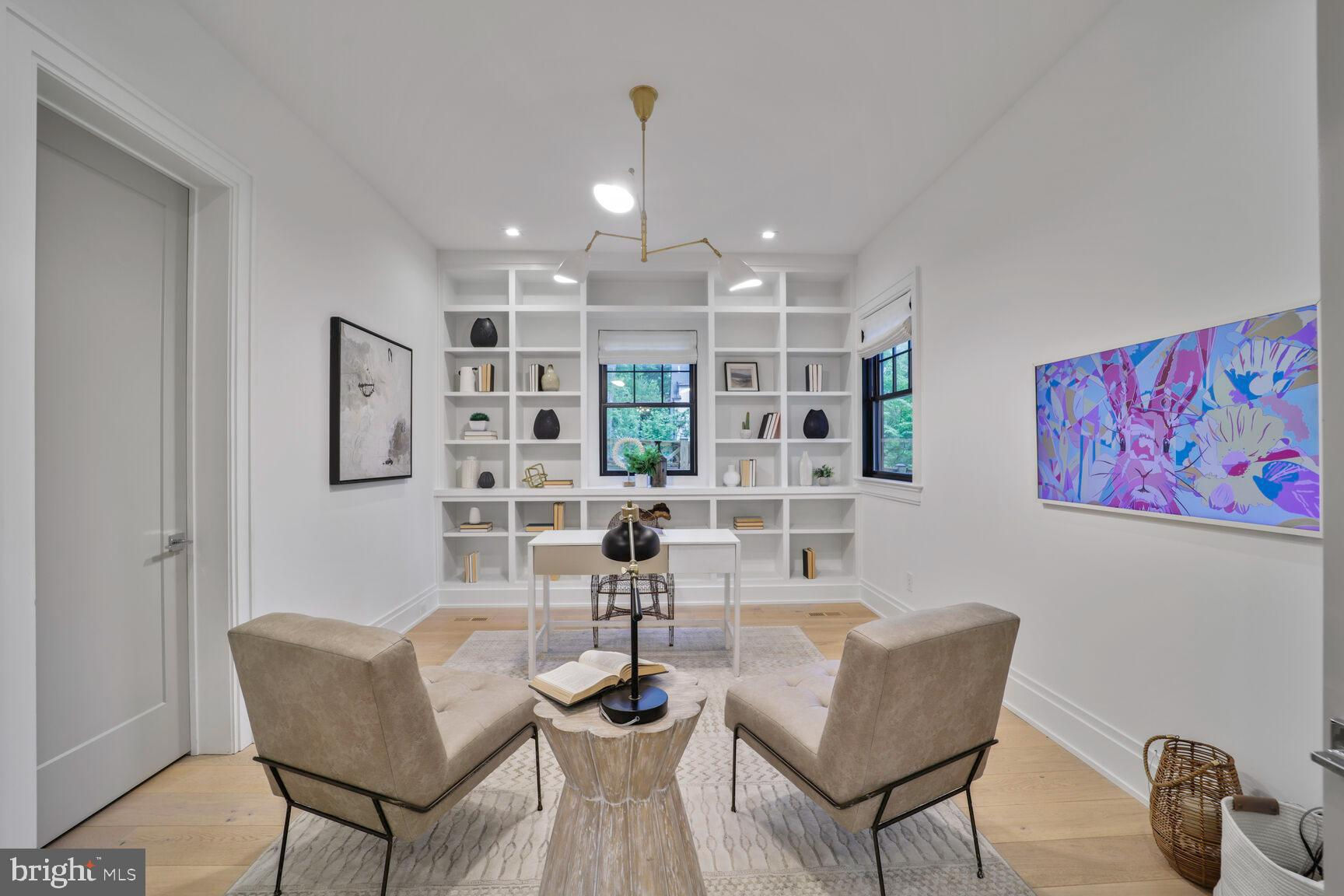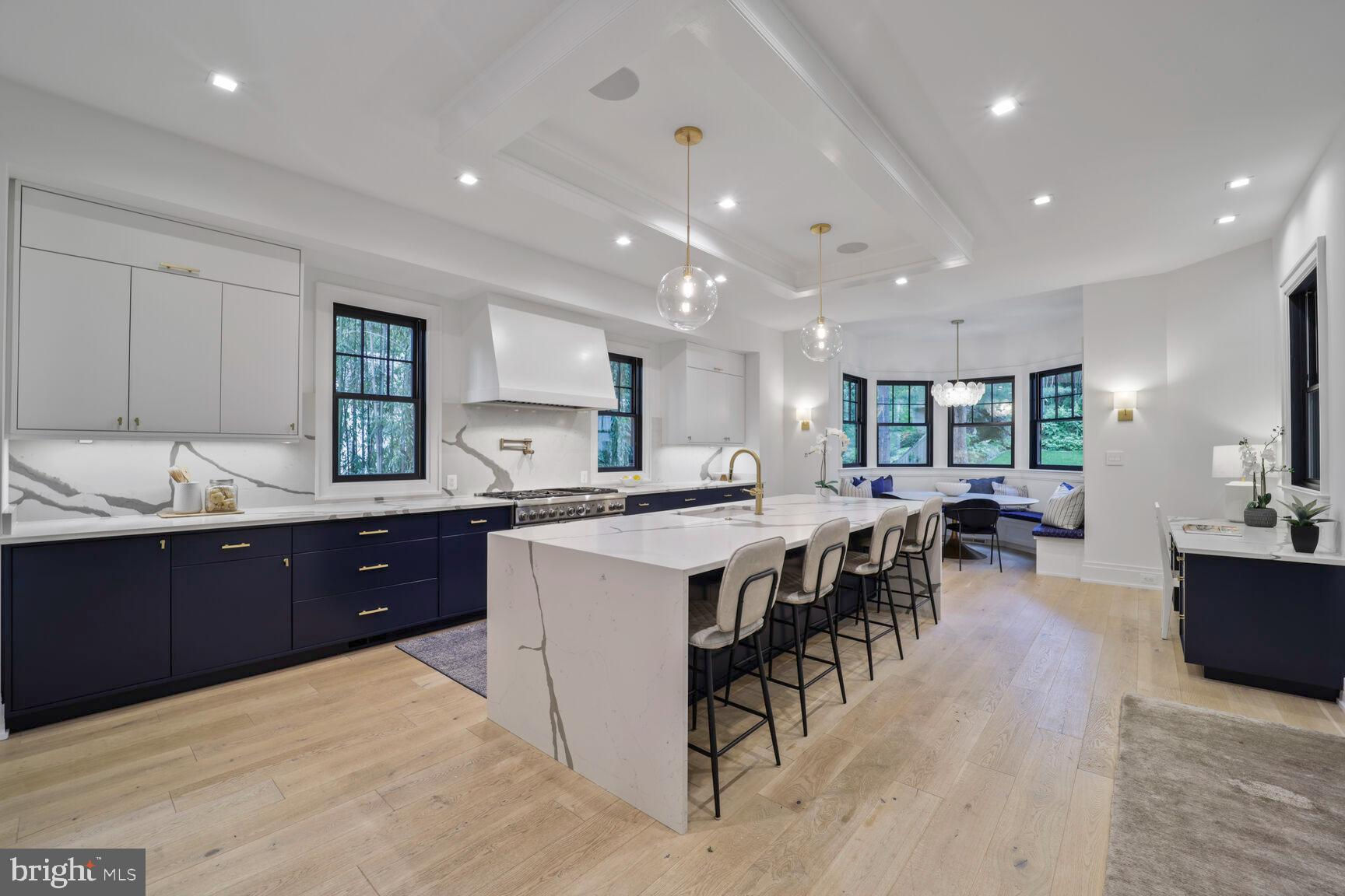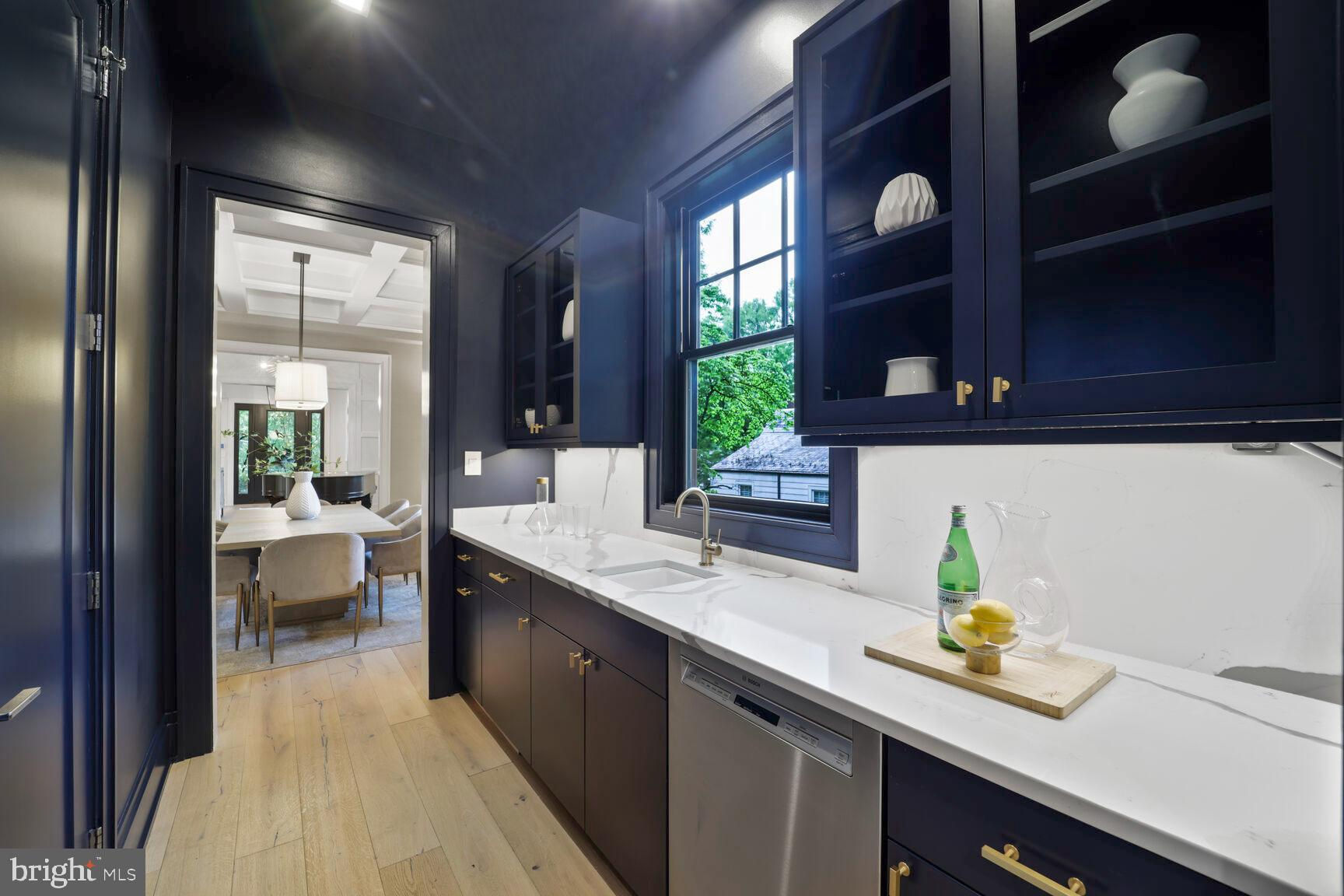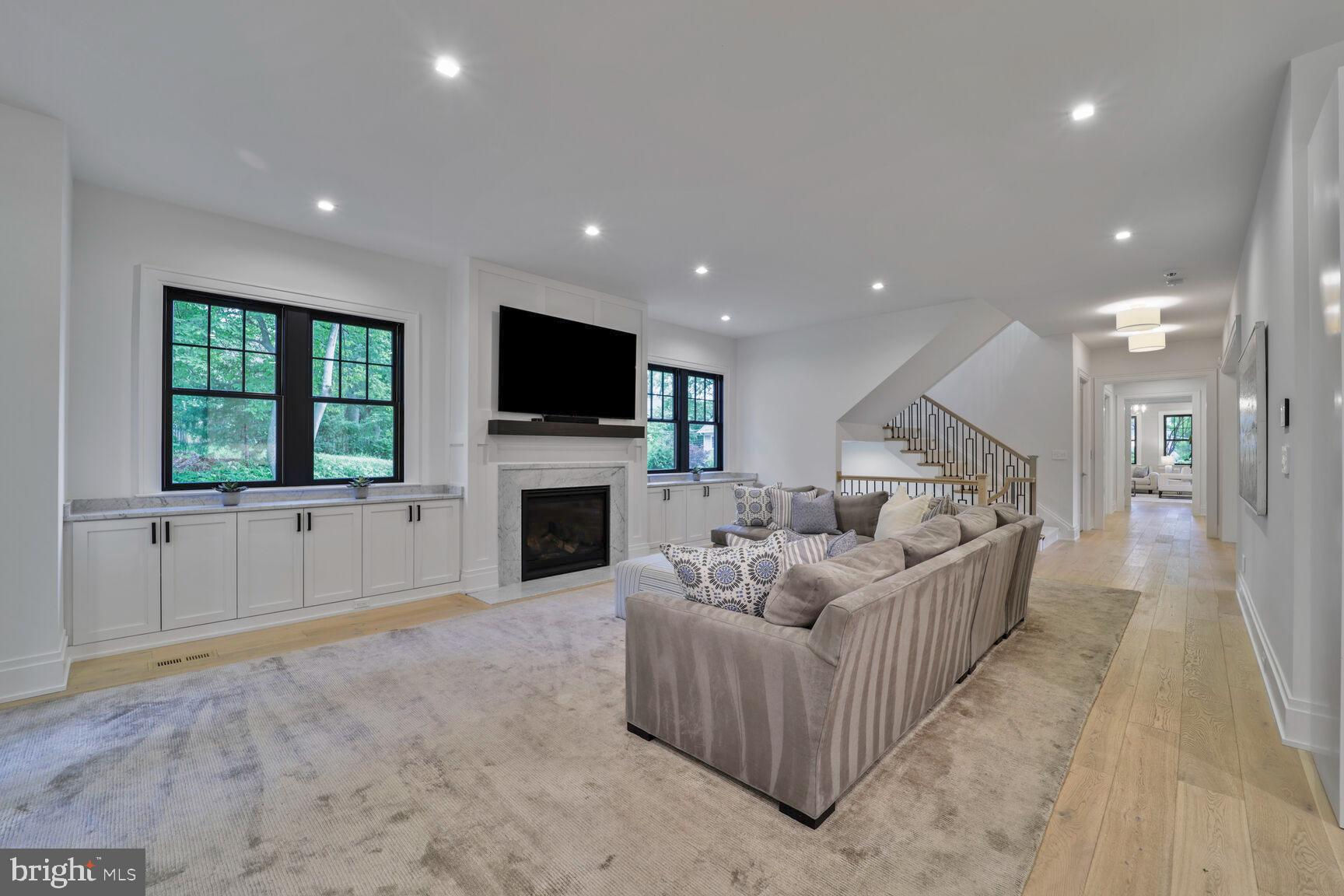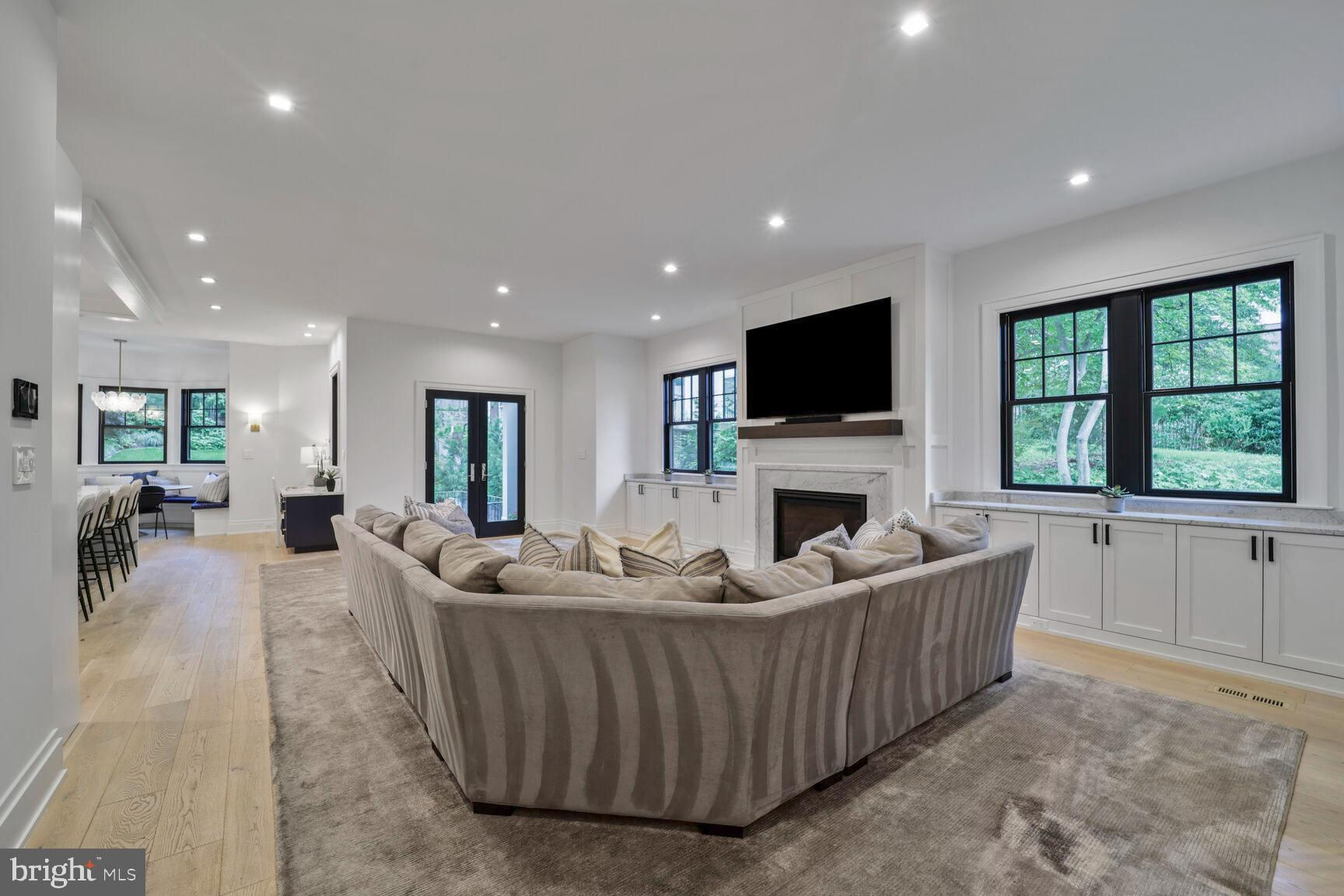 Beautifully built in 2018 and meticulously maintained and enhanced by the current owners, this expansive home features 7,700SF of luxury living across three finished levels with elevator access to all. The light-filled main level features an open floor plan with 10-foot ceilings, an elegant foyer, music/sitting room, formal living and dining rooms, private enclosed office, and powder room. Perfect for entertaining and everyday living, the spacious family room and adjacent gourmet kitchen provide a wonderful gathering place. The kitchen features a large center island with waterfall countertops, top-of-the-line appliances, breakfast nook, built-in desk area, and butler’s pantry with a large closet and second dishwasher. The family room features custom built-ins, a gas fireplace, and French doors that lead to a private patio with a built-in gas grill. The second level includes a luxurious primary suite with private balcony, dual custom walk-in closets, and a spa like en-suite bath with marble finishes, soaking tub, and heated floors. Also found on this level are three additional bedrooms with en-suite baths and walk-in closets, as well as a convenient upper-level laundry room. The walkout lower level features a large recreation room with gas fireplace open to the game room (optional office #2) with door to the rear terrace, stylish bar area with a wine refrigerator and dishwasher, bedroom #5, and full bath #5. Additional highlights include access to the two car garage with built-in cabinets, mud room with cubbies, 9 foot ceilings, and full sized windows. Each level enjoys it’s own outdoor space with slate terraces on the main and lower levels, primary bedroom balcony with tree top views, and a professionally landscaped and fenced rear yard with green space. Luxury finishes throughout including custom millwork, wallpaper accents, integrated speakers, mounted televisions, light fixtures, private elevator, three-zone HVAC system, and more. Located just minutes from Georgetown, Virginia, and Maryland, as well as easy access to all area airports, this stunning home combines timeless elegance with modern amenities in one of D.C.'s most coveted neighborhoods.