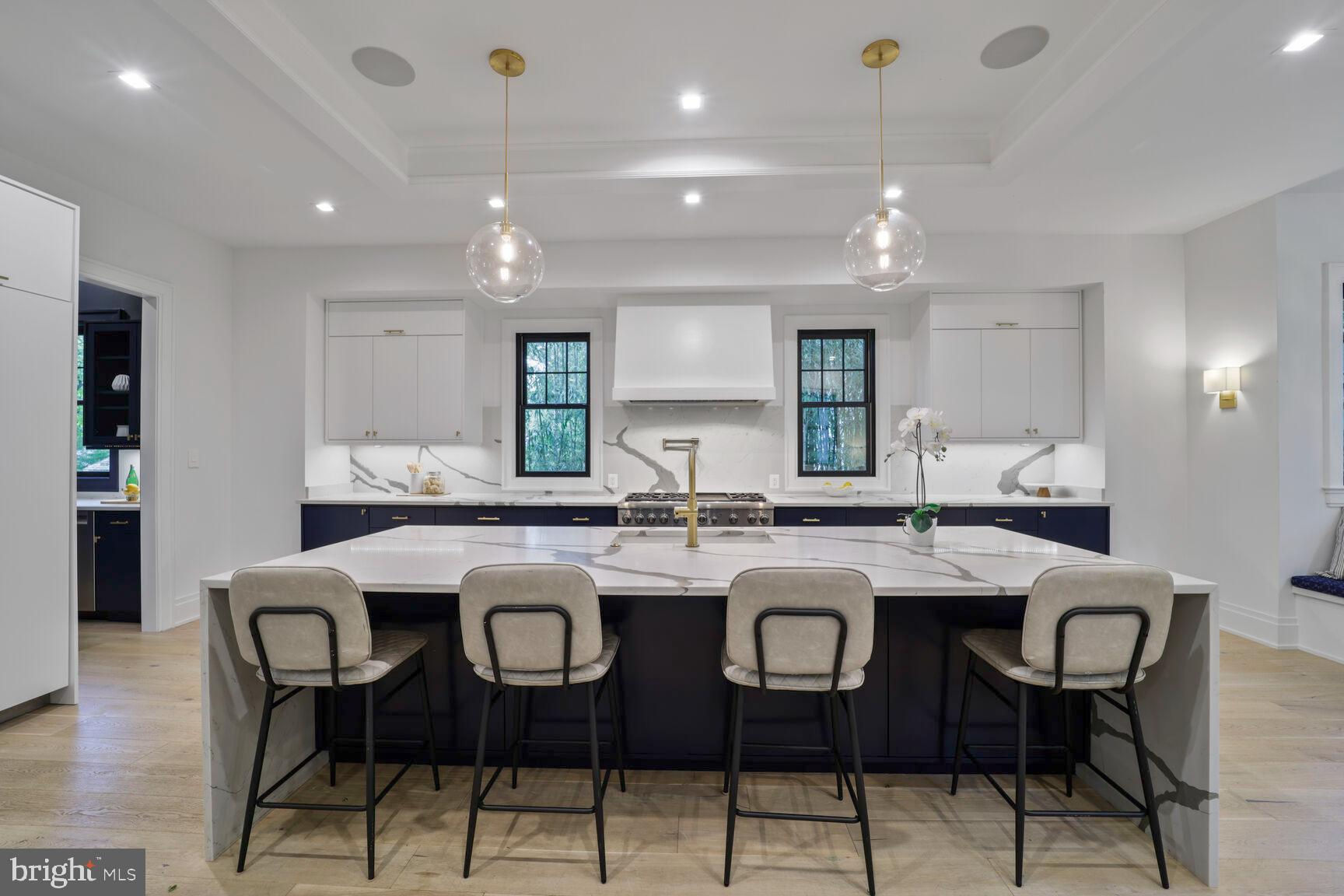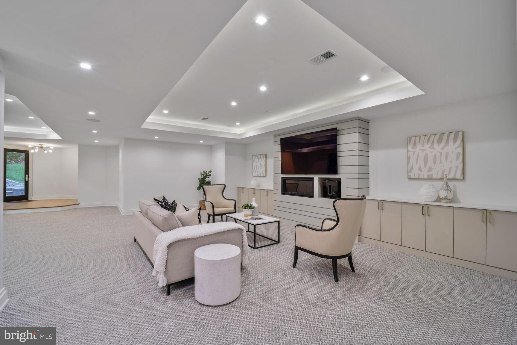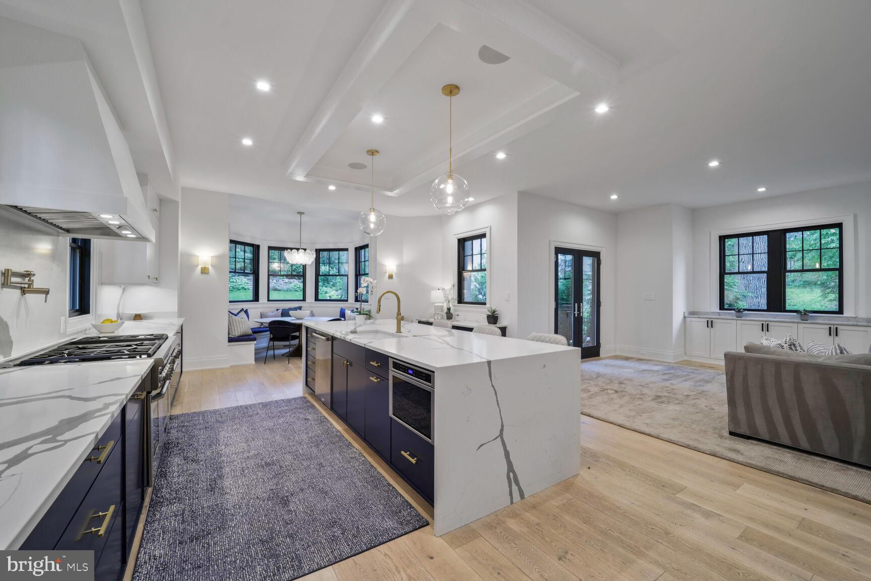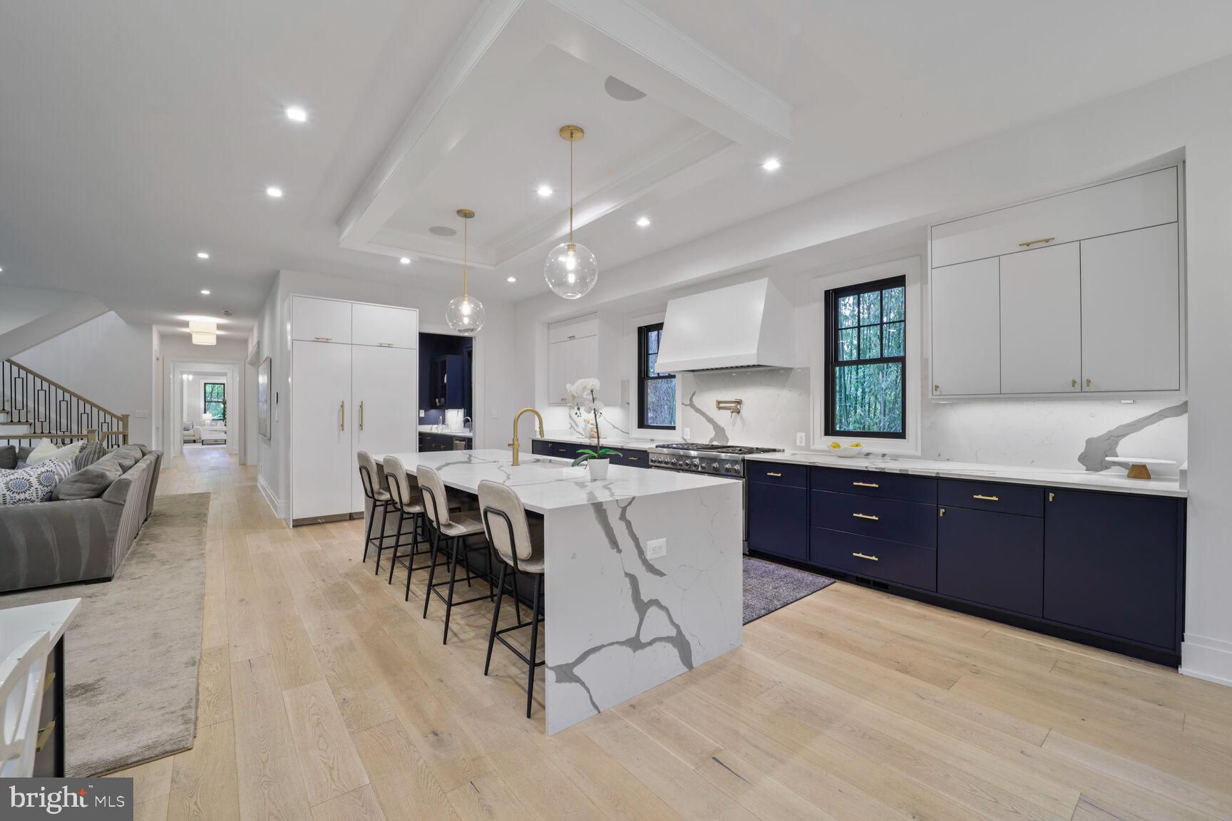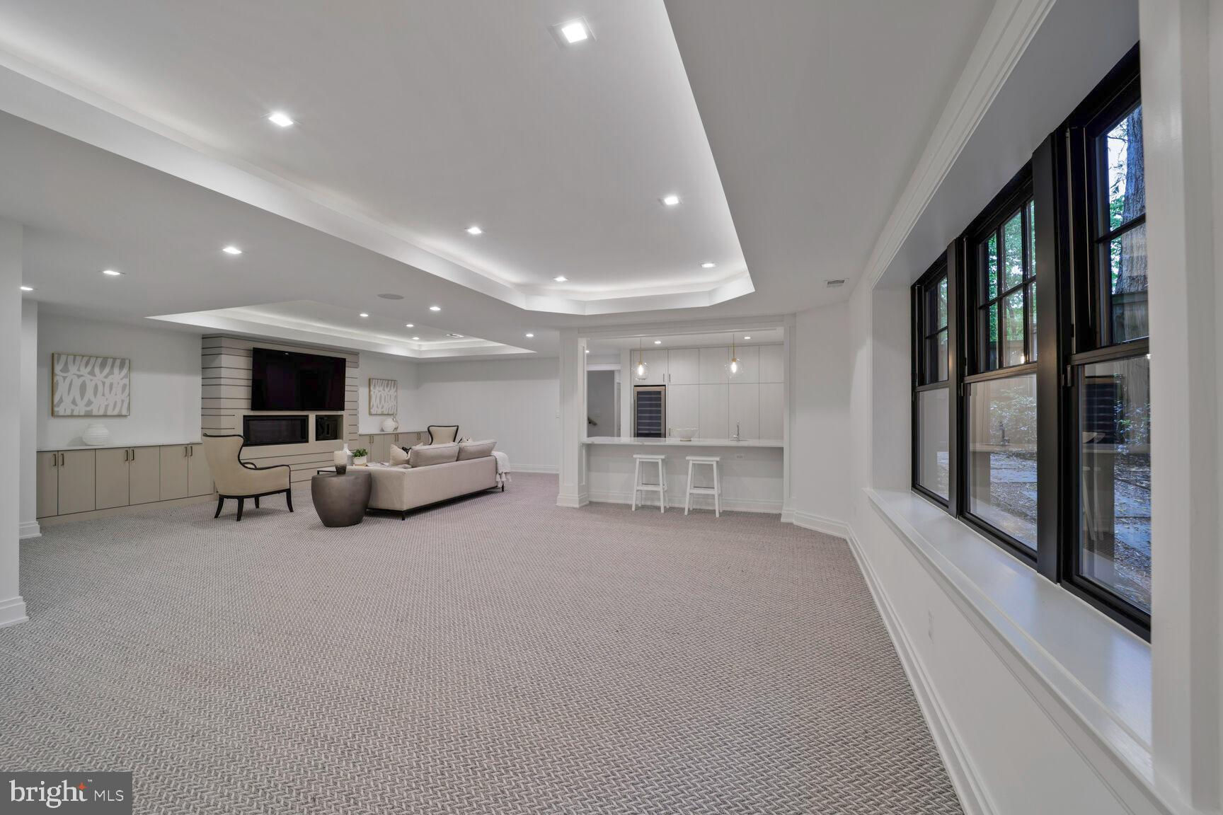 Beautifully built in 2018 and meticulously maintained and enhanced by the current owners, this expansive home features 7,700SF of luxury living across three finished levels with elevator access to all. The light-filled main level features an open floor plan with 10-foot ceilings, an elegant foyer, music/sitting room, formal living and dining rooms, private enclosed office, and powder room. Perfect for entertaining and everyday living, the spacious family room and adjacent gourmet kitchen provide a wonderful gathering place. The kitchen features a large center island with waterfall countertops, top-of-the-line appliances, breakfast nook, built-in desk area, and butler’s pantry with a large closet and second dishwasher. The family room features custom built-ins, a gas fireplace, and French doors that lead to a private patio with a built-in gas grill. The second level includes a luxurious primary suite with private balcony, dual custom walk-in closets, and a spa like en-suite bath with marble finishes, soaking tub, and heated floors. Also found on this level are three additional bedrooms with en-suite baths and walk-in closets, as well as a convenient upper-level laundry room. The walkout lower level features a large recreation room with gas fireplace open to the game room (optional office #2) with door to the rear terrace, stylish bar area with a wine refrigerator and dishwasher, bedroom #5, and full bath #5. Additional highlights include access to the two car garage with built-in cabinets, mud room with cubbies, 9 foot ceilings, and full sized windows. Each level enjoys it’s own outdoor space with slate terraces on the main and lower levels, primary bedroom balcony with tree top views, and a professionally landscaped and fenced rear yard with green space. Luxury finishes throughout including custom millwork, wallpaper accents, integrated speakers, mounted televisions, light fixtures, private elevator, three-zone HVAC system, and more. Located just minutes from Georgetown, Virginia, and Maryland, as well as easy access to all area airports, this stunning home combines timeless elegance with modern amenities in one of D.C.'s most coveted neighborhoods.