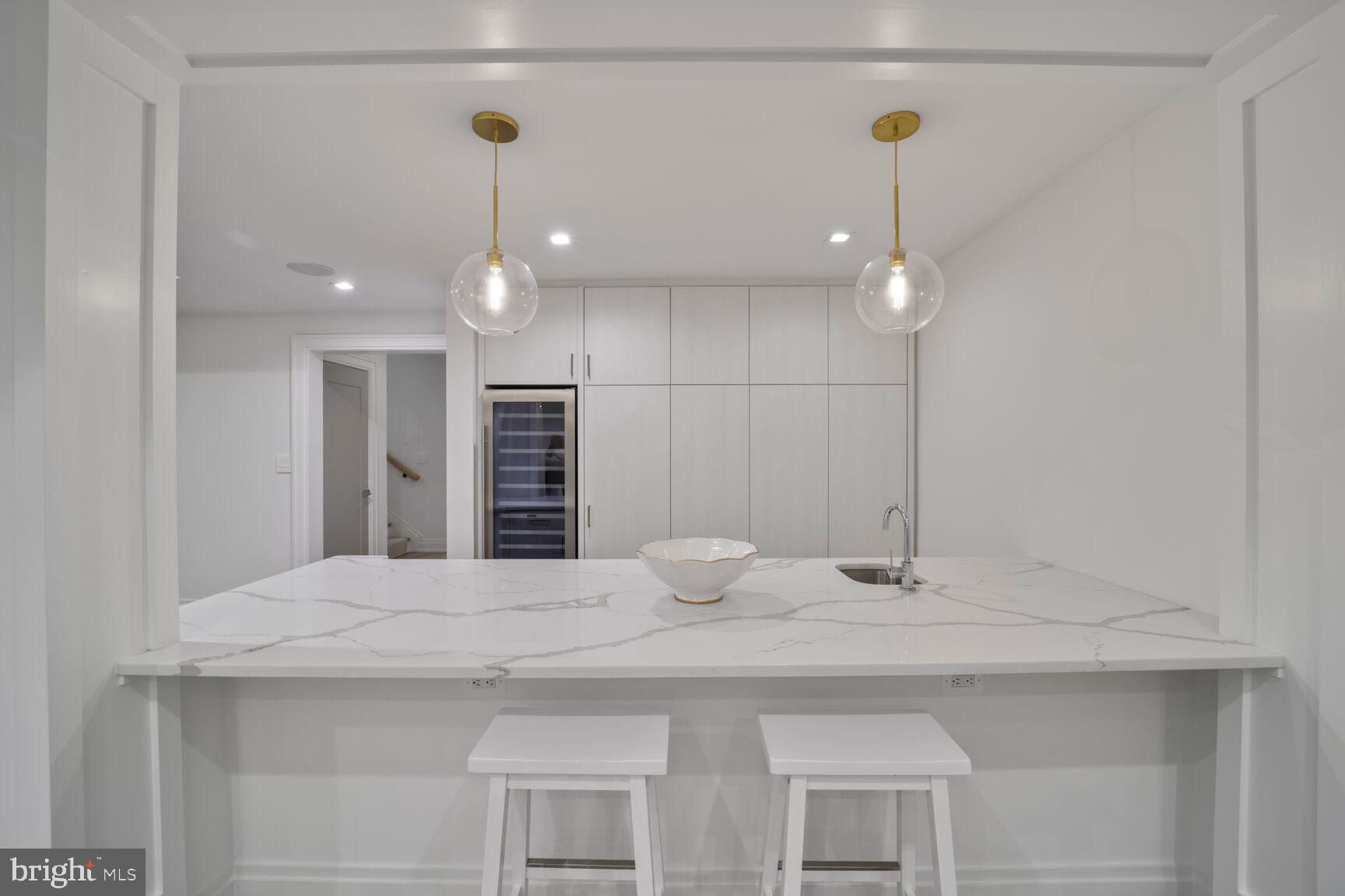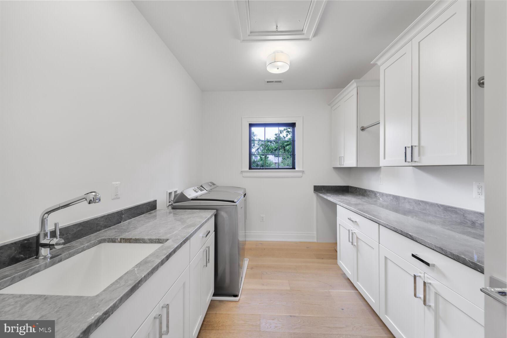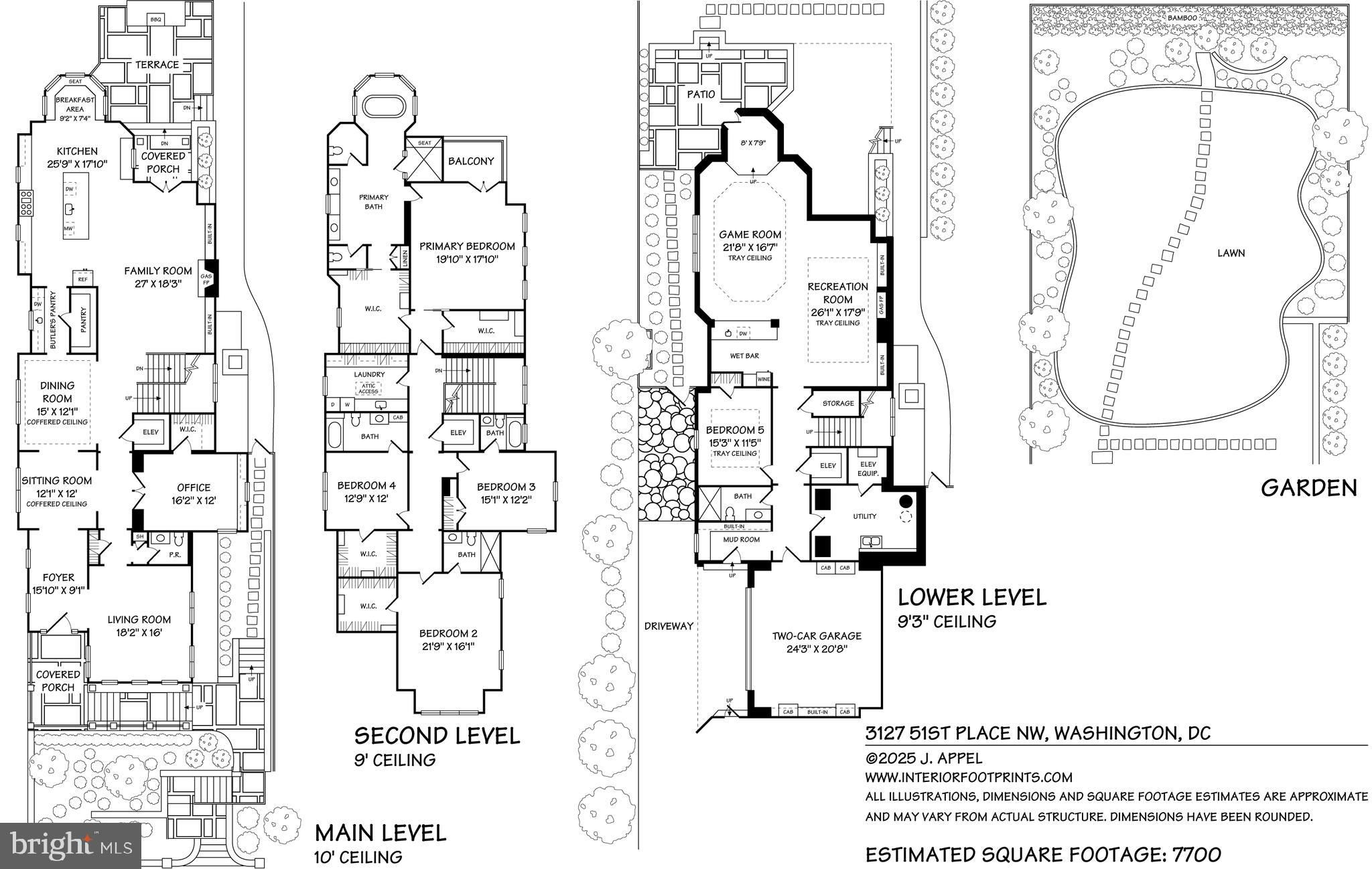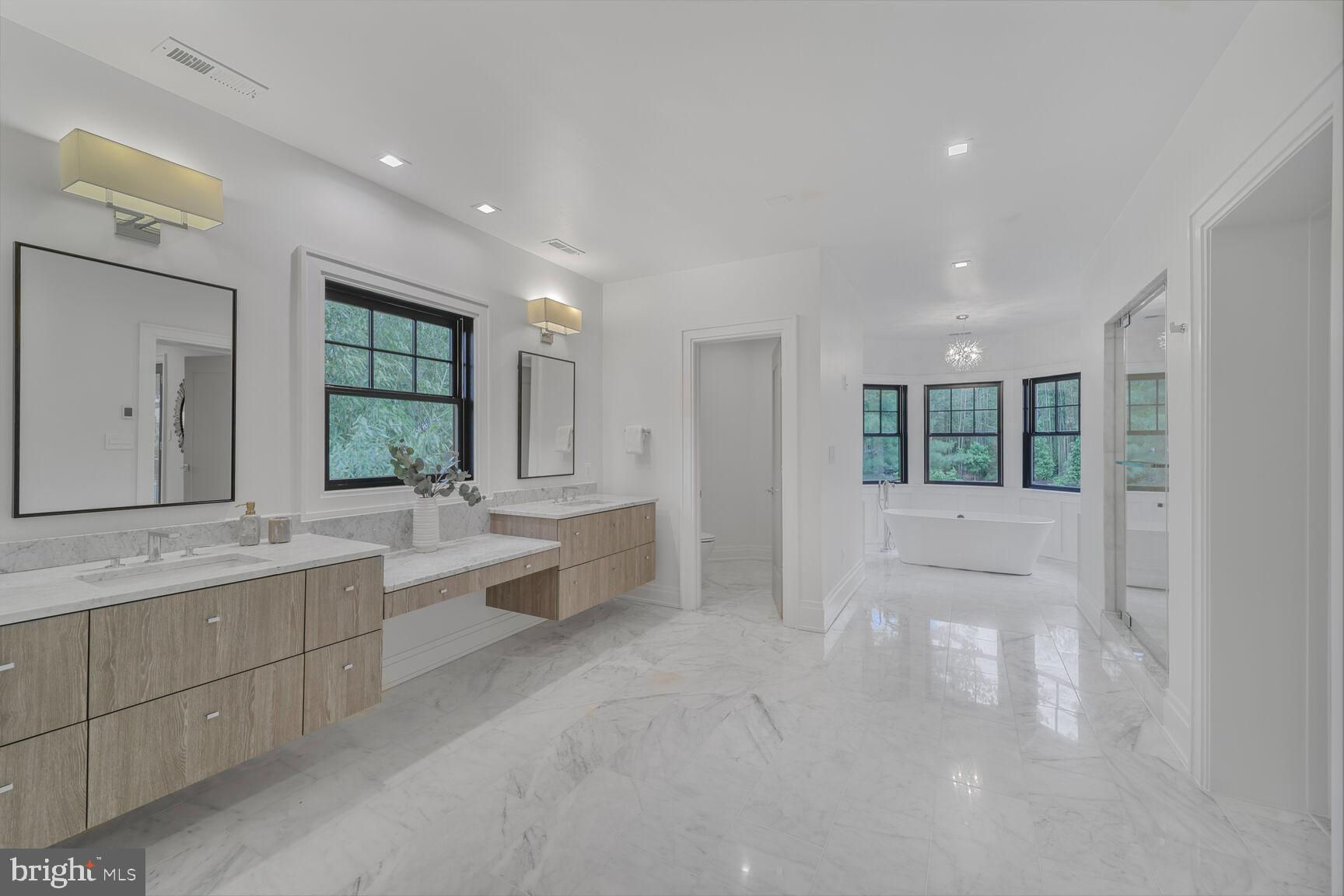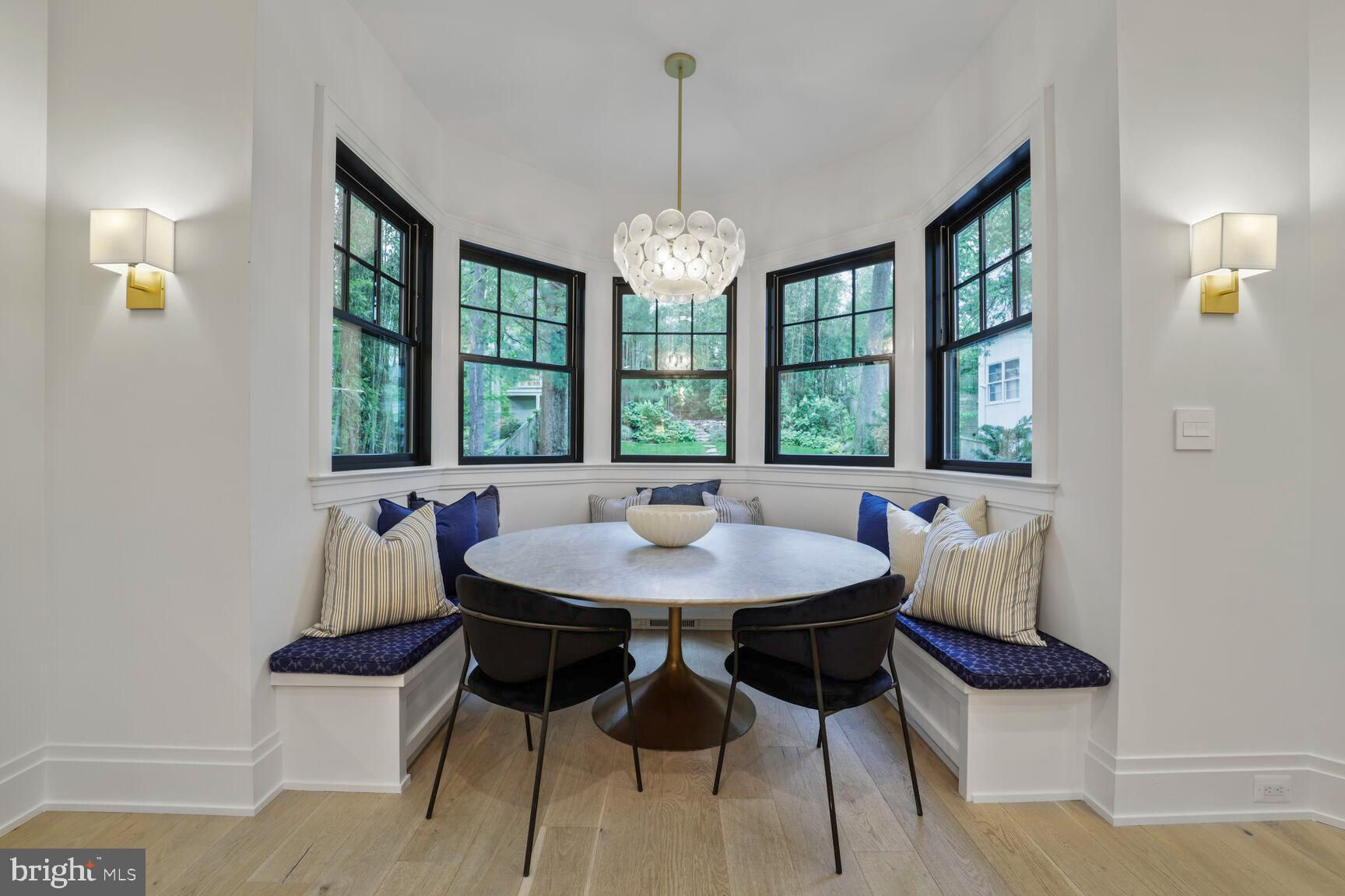 Beautifully built in 2018 and meticulously maintained and enhanced by the current owners, this expansive home features 7,700SF of luxury living across three finished levels with elevator access to all. The light-filled main level features an open floor plan with 10-foot ceilings, an elegant foyer, music/sitting room, formal living and dining rooms, private enclosed office, and powder room. Perfect for entertaining and everyday living, the spacious family room and adjacent gourmet kitchen provide a wonderful gathering place. The kitchen features a large center island with waterfall countertops, top-of-the-line appliances, breakfast nook, built-in desk area, and butler’s pantry with a large closet and second dishwasher. The family room features custom built-ins, a gas fireplace, and French doors that lead to a private patio with a built-in gas grill. The second level includes a luxurious primary suite with private balcony, dual custom walk-in closets, and a spa like en-suite bath with marble finishes, soaking tub, and heated floors. Also found on this level are three additional bedrooms with en-suite baths and walk-in closets, as well as a convenient upper-level laundry room. The walkout lower level features a large recreation room with gas fireplace open to the game room (optional office #2) with door to the rear terrace, stylish bar area with a wine refrigerator and dishwasher, bedroom #5, and full bath #5. Additional highlights include access to the two car garage with built-in cabinets, mud room with cubbies, 9 foot ceilings, and full sized windows. Each level enjoys it’s own outdoor space with slate terraces on the main and lower levels, primary bedroom balcony with tree top views, and a professionally landscaped and fenced rear yard with green space. Luxury finishes throughout including custom millwork, wallpaper accents, integrated speakers, mounted televisions, light fixtures, private elevator, three-zone HVAC system, and more. Located just minutes from Georgetown, Virginia, and Maryland, as well as easy access to all area airports, this stunning home combines timeless elegance with modern amenities in one of D.C.'s most coveted neighborhoods.