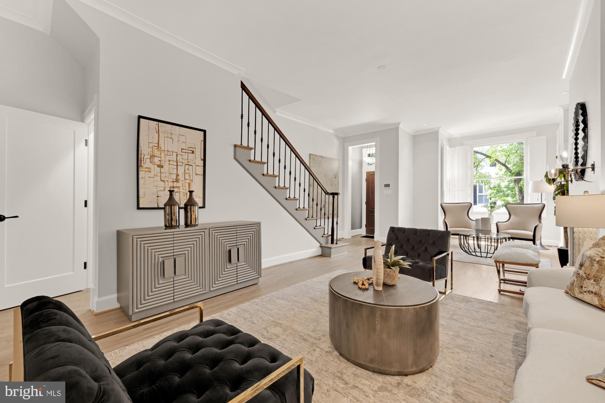 Every once in a while there is a special home …. A gem, a jewel, a comprehensive stud to stud renovation including EXTRAORDINARY NEWLY BUILT TWO CAR GARAGE and imagined by architect George Gordon and designer Darryl Carter. Every step of this renovation was designed to create an homage to historical detail and blend with the best of contemporary design. This home was designed with the sensitivity to creating flexible spaces for a more modern lifestyle. The home boasts both stunning private outdoor patio with a new 2 car garage which was built with to accommodate a possible second story. The impeccable location of this home is in the coveted neighborhood of West Georgetown and sits on one of Georgetown’s charming, quiet cobblestone streets blocks from parks, transportation, shopping and some of the best restaurants in the city. A life of a village community in the heart of the Nation’s Capital. FIRST LEVEL * Elegant foyer with custom millwork and double French doors provide the home with light plus a dramatic view through the entire first floor to the back family room where a huge architectural window floods the house with light. * Elegant large living room with multiple seating and dining areas with a lovingly restored historical fireplace along with sconces which echo the best of traditional and contemporary design. * Extraordinary separate dining room boasts a wall of dramatic glass mirrored by a wall of custom millwork to create a serene library ambiance rendering the often abandoned dining room to function as a place for readings, working, or watching television. *The knockout kitchen with Bulthaup cabinetry, Ann Sacks tiles, Gaggenau refrigerator, built-in Miele coffee and espresso machine, Bosch dishwasher, center island for cooking and casual meals and get togethers. * Family room space was added to create private space and allow light to flood the home.Folding doors between family room and kitchen *A powder room added with designer tile ,Toto toilet and Waterworks fixtures SECOND LEVEL * Expansive primary suite includes a charming fireplace walk in closet and designer carpeting are reimagined bathroom with Ann Sacks marble tiling, Waterworks double shower head(rain and jet),custom designer cabinetry and heated floors. * Two additional bedrooms one with a view overlooking the serene green roof. * Full Hall bathroom with custom cabinets and Hans Grohe shower/wand with Phillip Stark faucet. LOWER LEVEL * Entirely reworked level for home office/gym or guest space with both interior redone stairs plus outside access. * Designer tiled floor * Custom built ins * New full bathroom Restoration Hardware marble sink with shower and bath. New Washer and Dryer OUTSIDE * Coveted detached two car garage with storage * Garage is fully wired and plumbed for potential second story * Glorious private backyard with easy maintenance pavers * Planting boxes and flower ceramic flowing pots * Designer driven outdoor lighting * Architectural awning ADDITIONAL SPECIAL FEATURES * Structural beams added * Stairs cases rebuilt * Custom exterior light fixtures and bannisters * Designer renovation of entire house light scheme * Original oak flooring on first and much of second floor and Northern wide plank floors * Comprehensive drainage system developed from edge to edge of home. * New windows throughout the house with historically approved front windows improvements. * Custom designer shutters for street facing windows * Painted with Farrow and Ball paint * Security System by Crimpco with 3 cameras and remote viewing by app * New Roof * New HVAC *New Water Heater *New Generator *New Dehumifer for basement * Major Boiler * Designer Darryl Carter * Architect George Gordon * Builder Dave Richetti