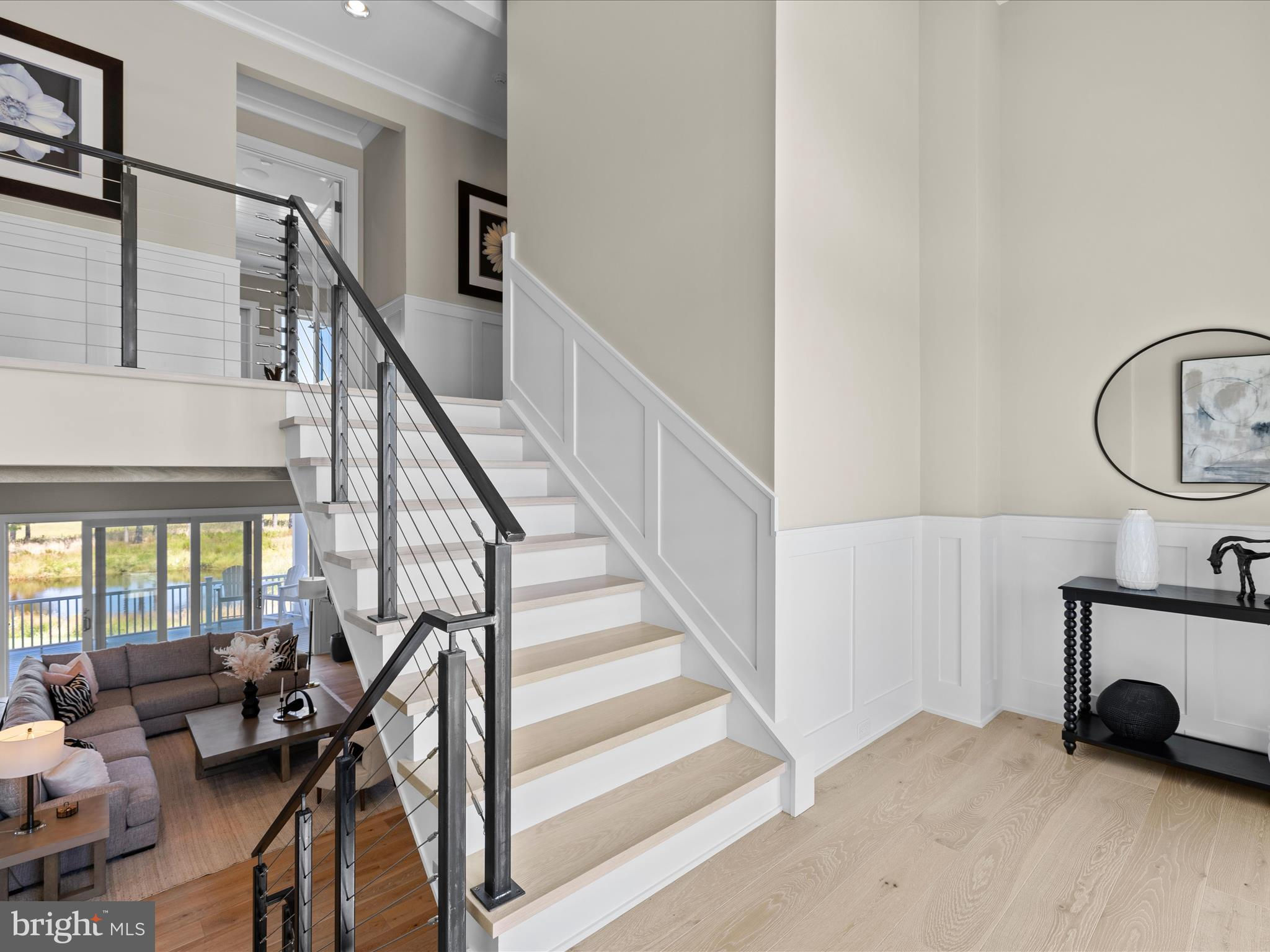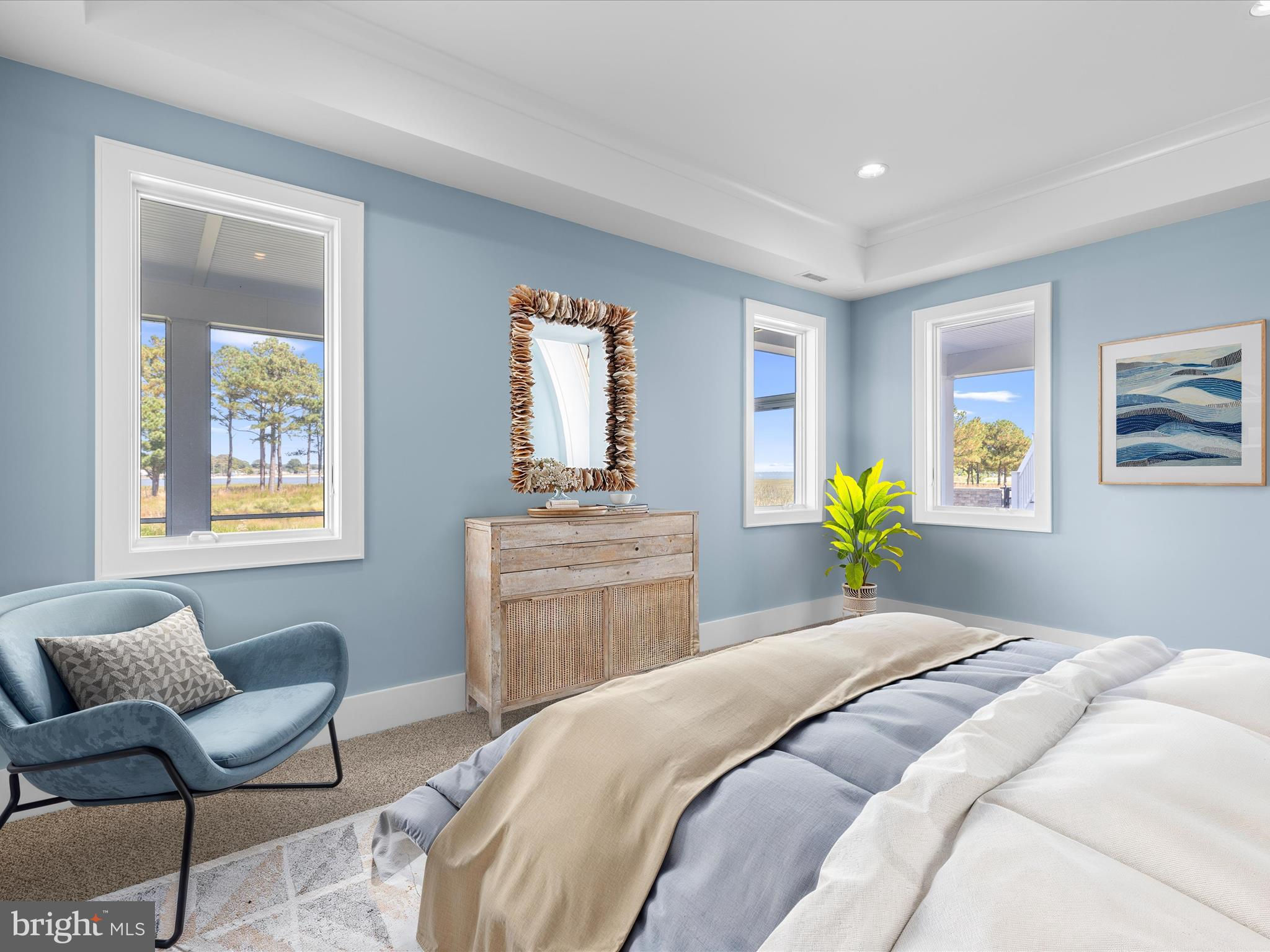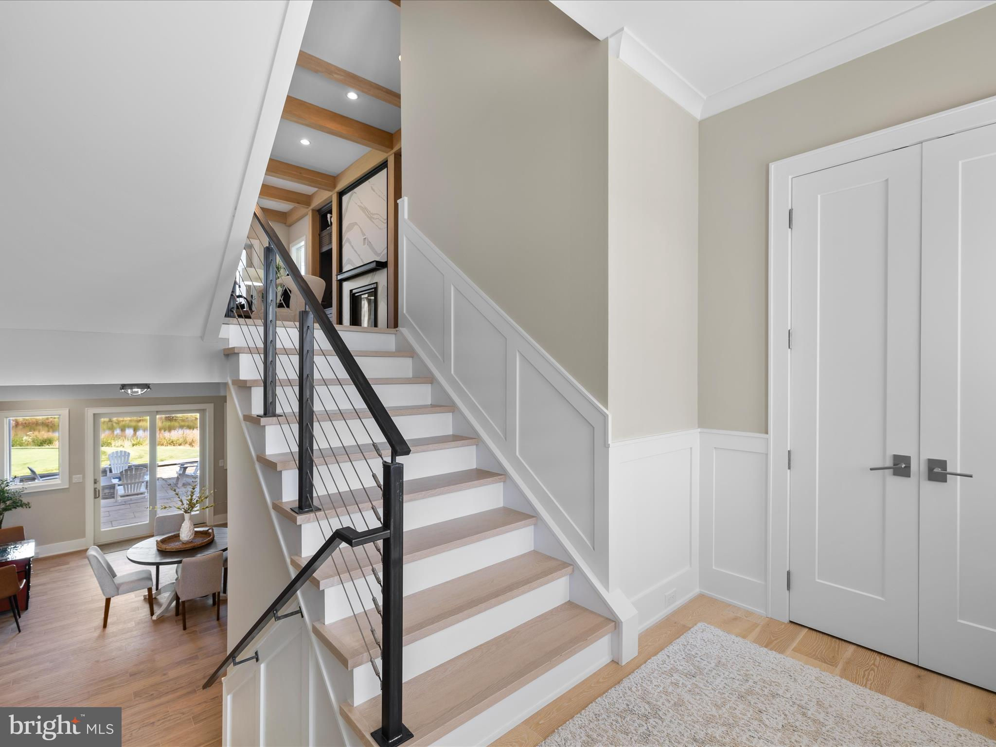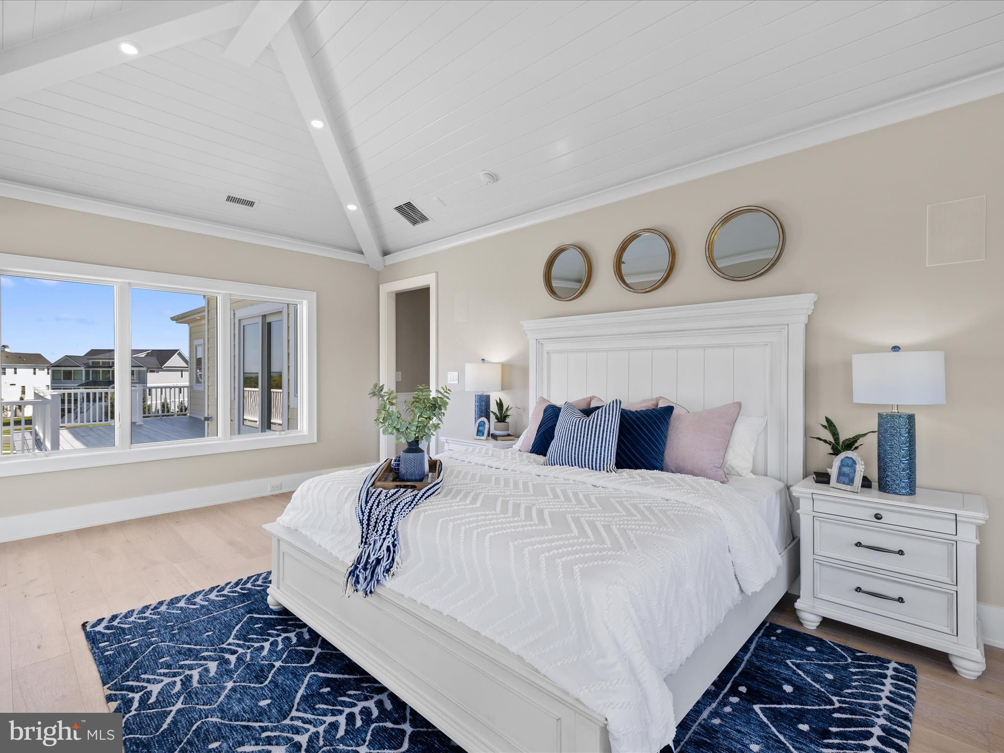 A Sanctuary of Coastal Elegance with Endless Views A one-of-a-kind masterpiece by Echelon Homes, this custom-designed residence marries contemporary coastal style with subtle industrial cues, delivering awe-inspiring luxury at every turn. Nestled within the prestigious Jack Nicklaus Signature Golf Course community of The Peninsula, this extraordinary home rises in the exclusive Sanctuary enclave, perched on the pinnacle of Sand Dollar Drive. Designed to maximize its spectacular position, the residence offers three levels of living with sweeping 360-degree views of the Indian River Bay, Lingo Creek, and the 8th Tee. From the moment you arrive, casual elegance blends seamlessly with quality craftsmanship and coastal sensibility. Wide-plank hardwood floors, shiplap, judges paneling, beamed ceilings, and custom built-ins unify the interiors, while designer lighting adds glimmering sophistication. The main level foyer opens to the great room, where floor-to-ceiling atrium sliders flood the space with natural light, showcase breathtaking views, and extend effortlessly to an expansive balcony deck. The living room is anchored by a soaring quartz-clad fireplace, accented with black steel and flanked by elegant glass-and-wood display cabinets. An open-beamed ceiling heightens the drama, creating a stunning focal point. This central gathering space flows into the gourmet kitchen and dining area, a showcase for both entertaining and daily life. Quartz surfaces span generous work areas and the oversized center island, complete with abundant storage, beverage and wine refrigerators, deep undermount sink, and built-in oven. A striking glass tile backsplash highlights the GE Monogram six-burner range with custom vent hood, while a suite of professional-grade stainless appliances completes the space. A walk-in pantry with custom floor-to-ceiling storage ensures both beauty and function. Dine casually at the breakfast bar, host formal meals in the adjacent dining room, or step through sliders to the screened porch, where dazzling sunsets over the bay make every evening extraordinary. This level also offers a refined home office with balcony access, a stylish hall bath, and the first of five bedrooms, complete with ensuite. Ride the elevator to the primary suite retreat, where panoramic views greet you from bed beneath a soaring cathedral ceiling of shiplap and beams. The spa-inspired ensuite rivals a five-star resort, with two vanities, soaking tub, walk-in shower, private water closet, and dual walk-in closets with abundant storage. Two additional guest suites, each uniquely styled with private ensuites, one with balcony access, ensure comfort for family and friends. A second-floor laundry adds convenience, while a welcoming family room with balcony access serves as the perfect gathering spot. From here, a staircase leads to a bonus loft and the crowning jewel of the home: a rooftop terrace offering unrivaled 360-degree views. The lower level, filled with natural light, high ceilings, and precise millwork, is designed for entertaining. A game and lounge room, sizable guest bedroom, hall bath, second laundry, and mudroom entry complement the oversized two-car garage and additional third garage. Beyond the garages, a pool bath leads to the outdoor oasis. Here, a hardscaped paradise awaits: heated pool, spa, firepit, lounging areas, covered bar patio, and a screened pavilion, all perfectly positioned to embrace the home’s remarkable setting. As a resident of The Peninsula, you’ll enjoy world-class amenities, including gated security, a stunning clubhouse, the Jack Nicklaus golf course and driving range, a state-of-the-art fitness center with indoor, outdoor, and wave pools, hot tubs, saunas, spa rooms, tennis and pickleball courts, dog park, community garden, nature center, bay beach, fishing pier, and miles of walking trails. Come home to comfort, luxury, and resort living at its finest.