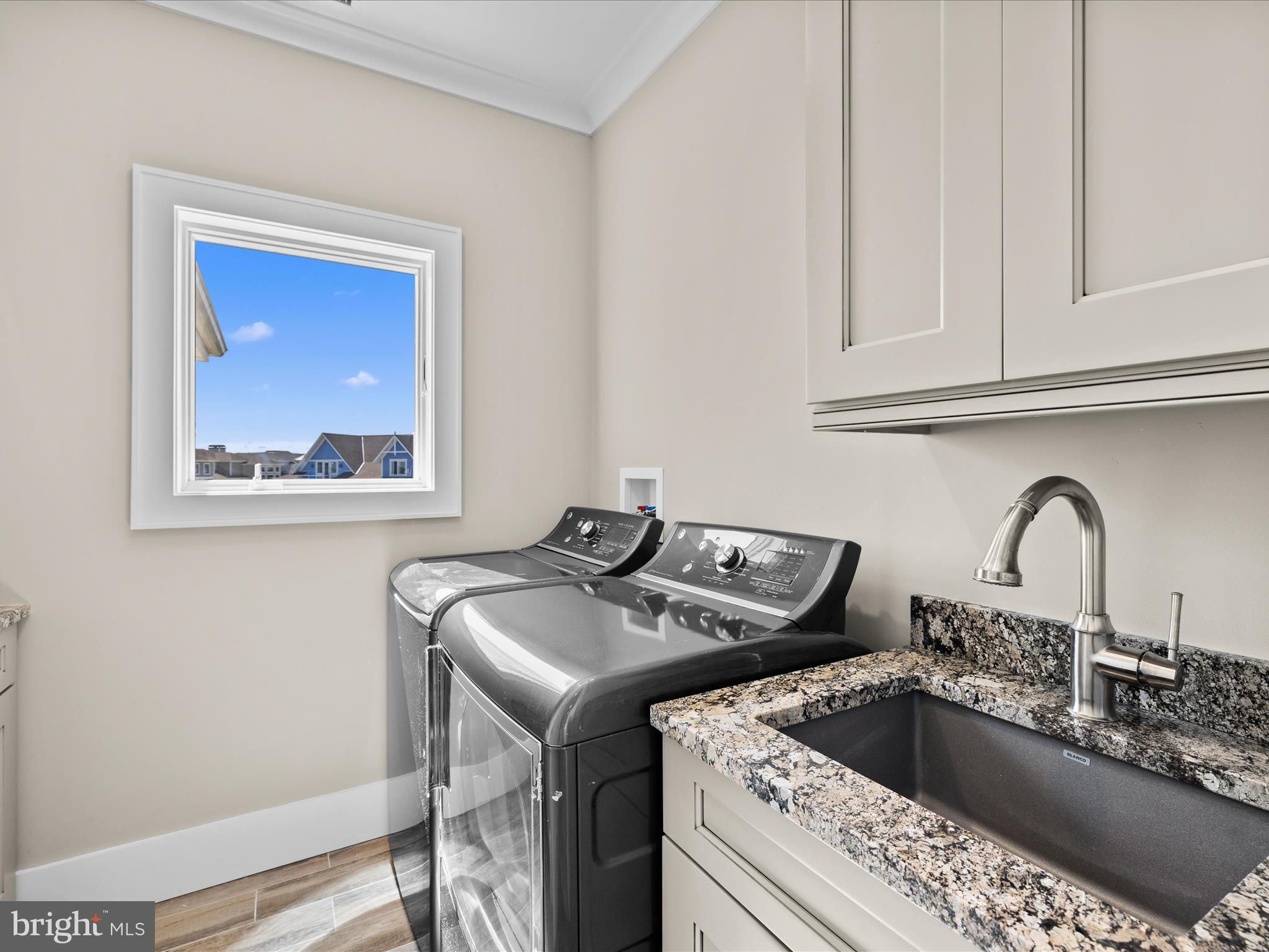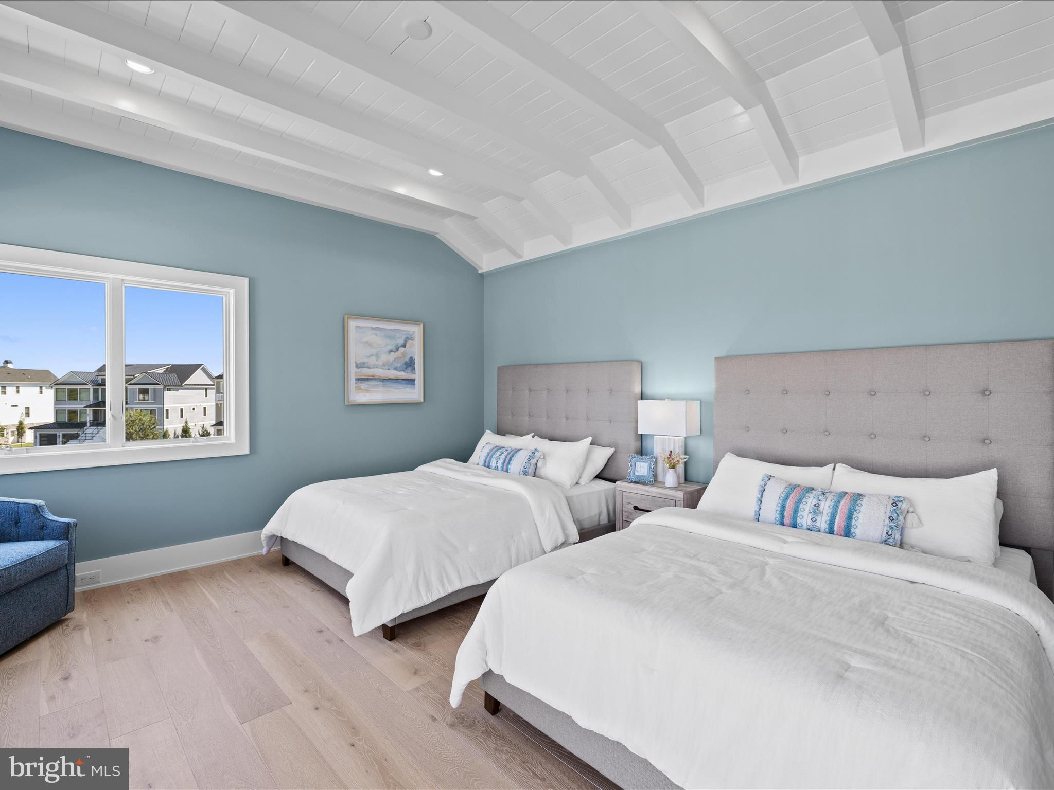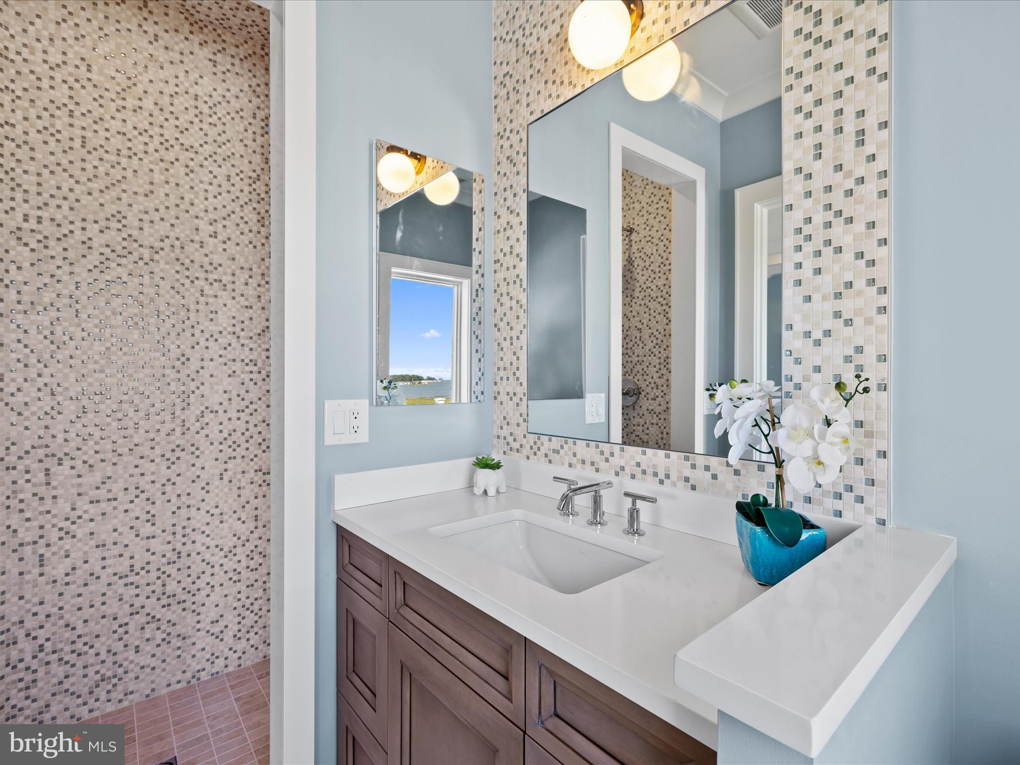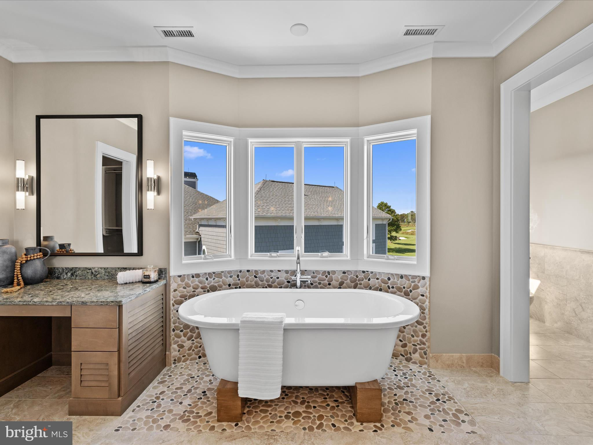 A Sanctuary of Coastal Elegance with Endless Views A one-of-a-kind masterpiece by Echelon Homes, this custom-designed residence marries contemporary coastal style with subtle industrial cues, delivering awe-inspiring luxury at every turn. Nestled within the prestigious Jack Nicklaus Signature Golf Course community of The Peninsula, this extraordinary home rises in the exclusive Sanctuary enclave, perched on the pinnacle of Sand Dollar Drive. Designed to maximize its spectacular position, the residence offers three levels of living with sweeping 360-degree views of the Indian River Bay, Lingo Creek, and the 8th Tee. From the moment you arrive, casual elegance blends seamlessly with quality craftsmanship and coastal sensibility. Wide-plank hardwood floors, shiplap, judges paneling, beamed ceilings, and custom built-ins unify the interiors, while designer lighting adds glimmering sophistication. The main level foyer opens to the great room, where floor-to-ceiling atrium sliders flood the space with natural light, showcase breathtaking views, and extend effortlessly to an expansive balcony deck. The living room is anchored by a soaring quartz-clad fireplace, accented with black steel and flanked by elegant glass-and-wood display cabinets. An open-beamed ceiling heightens the drama, creating a stunning focal point. This central gathering space flows into the gourmet kitchen and dining area, a showcase for both entertaining and daily life. Quartz surfaces span generous work areas and the oversized center island, complete with abundant storage, beverage and wine refrigerators, deep undermount sink, and built-in oven. A striking glass tile backsplash highlights the GE Monogram six-burner range with custom vent hood, while a suite of professional-grade stainless appliances completes the space. A walk-in pantry with custom floor-to-ceiling storage ensures both beauty and function. Dine casually at the breakfast bar, host formal meals in the adjacent dining room, or step through sliders to the screened porch, where dazzling sunsets over the bay make every evening extraordinary. This level also offers a refined home office with balcony access, a stylish hall bath, and the first of five bedrooms, complete with ensuite. Ride the elevator to the primary suite retreat, where panoramic views greet you from bed beneath a soaring cathedral ceiling of shiplap and beams. The spa-inspired ensuite rivals a five-star resort, with two vanities, soaking tub, walk-in shower, private water closet, and dual walk-in closets with abundant storage. Two additional guest suites, each uniquely styled with private ensuites, one with balcony access, ensure comfort for family and friends. A second-floor laundry adds convenience, while a welcoming family room with balcony access serves as the perfect gathering spot. From here, a staircase leads to a bonus loft and the crowning jewel of the home: a rooftop terrace offering unrivaled 360-degree views. The lower level, filled with natural light, high ceilings, and precise millwork, is designed for entertaining. A game and lounge room, sizable guest bedroom, hall bath, second laundry, and mudroom entry complement the oversized two-car garage and additional third garage. Beyond the garages, a pool bath leads to the outdoor oasis. Here, a hardscaped paradise awaits: heated pool, spa, firepit, lounging areas, covered bar patio, and a screened pavilion, all perfectly positioned to embrace the home’s remarkable setting. As a resident of The Peninsula, you’ll enjoy world-class amenities, including gated security, a stunning clubhouse, the Jack Nicklaus golf course and driving range, a state-of-the-art fitness center with indoor, outdoor, and wave pools, hot tubs, saunas, spa rooms, tennis and pickleball courts, dog park, community garden, nature center, bay beach, fishing pier, and miles of walking trails. Come home to comfort, luxury, and resort living at its finest.